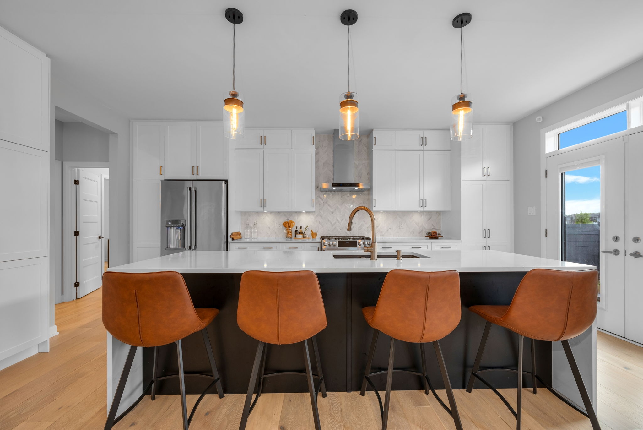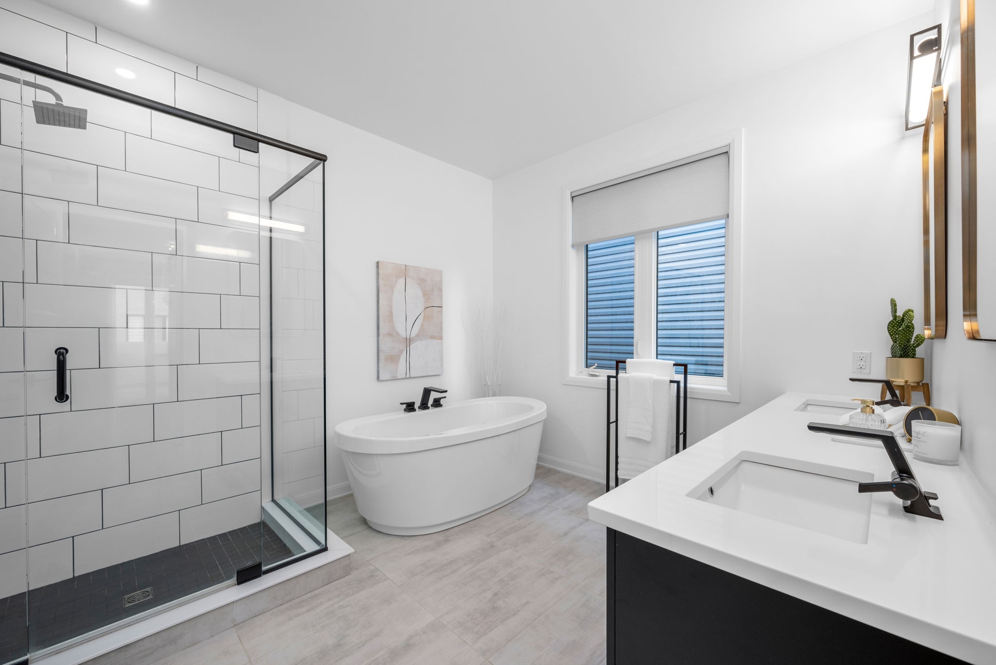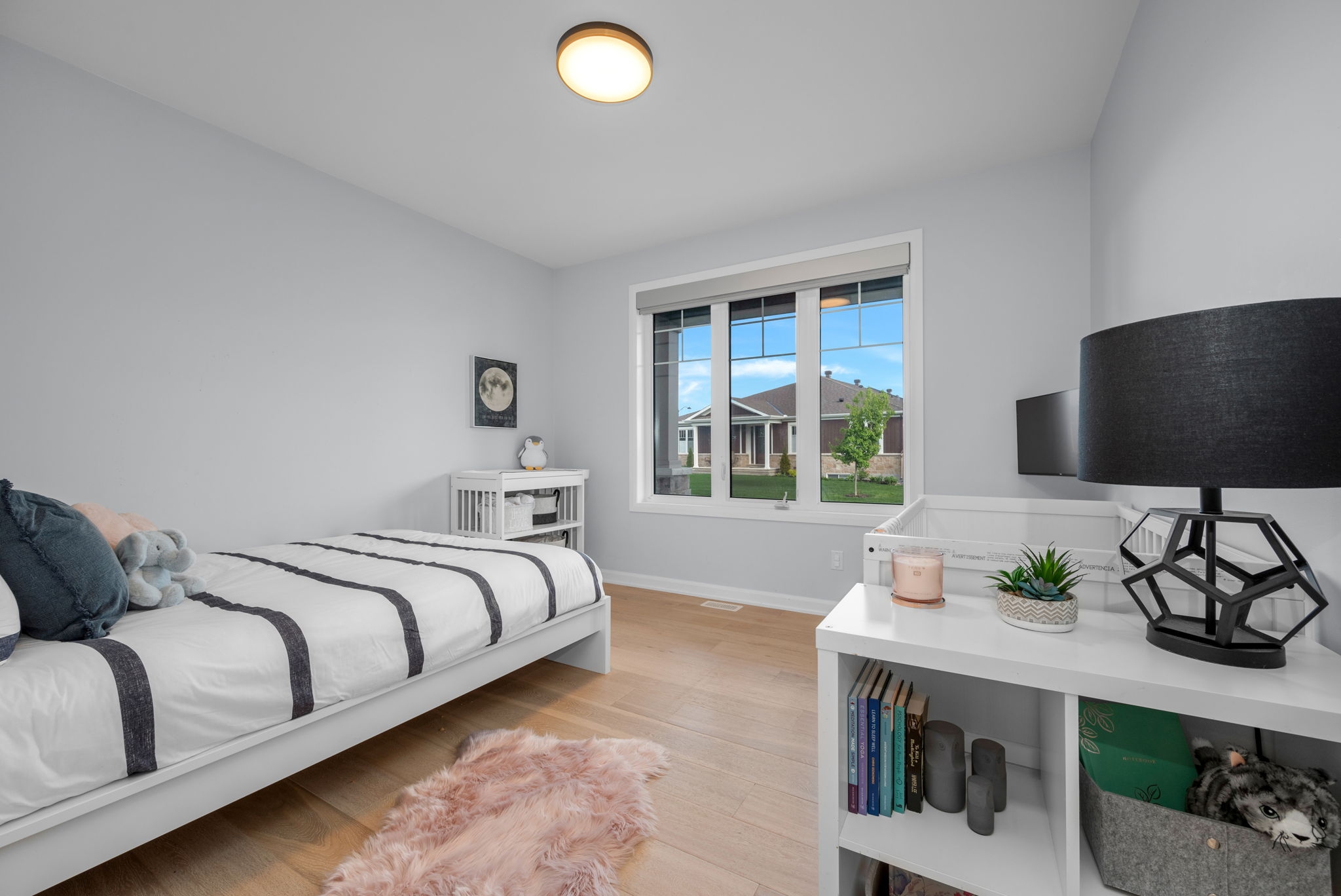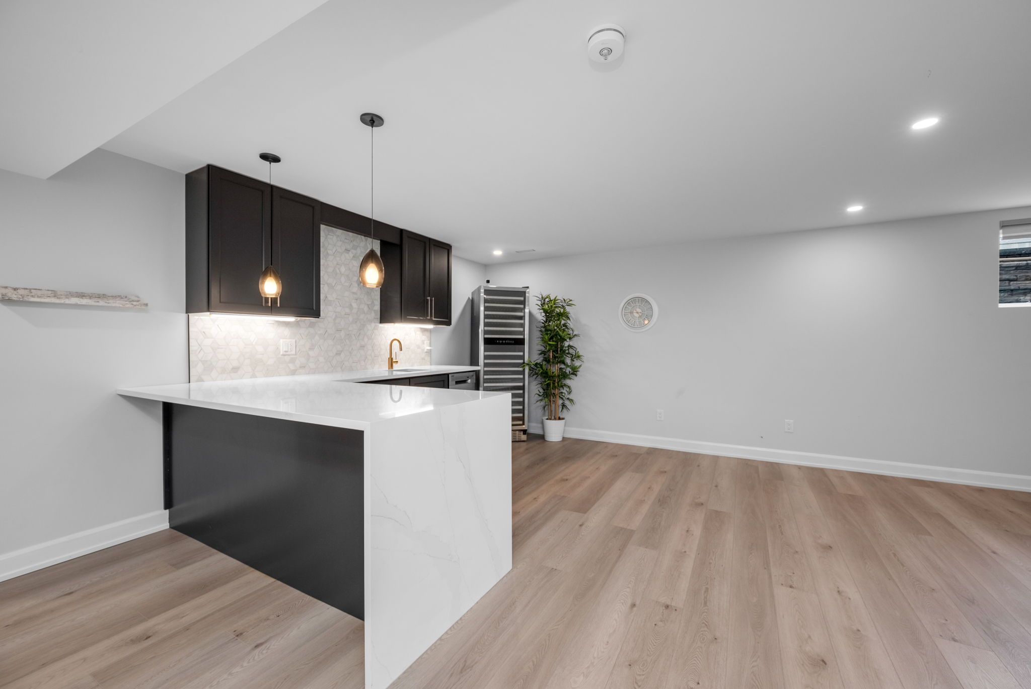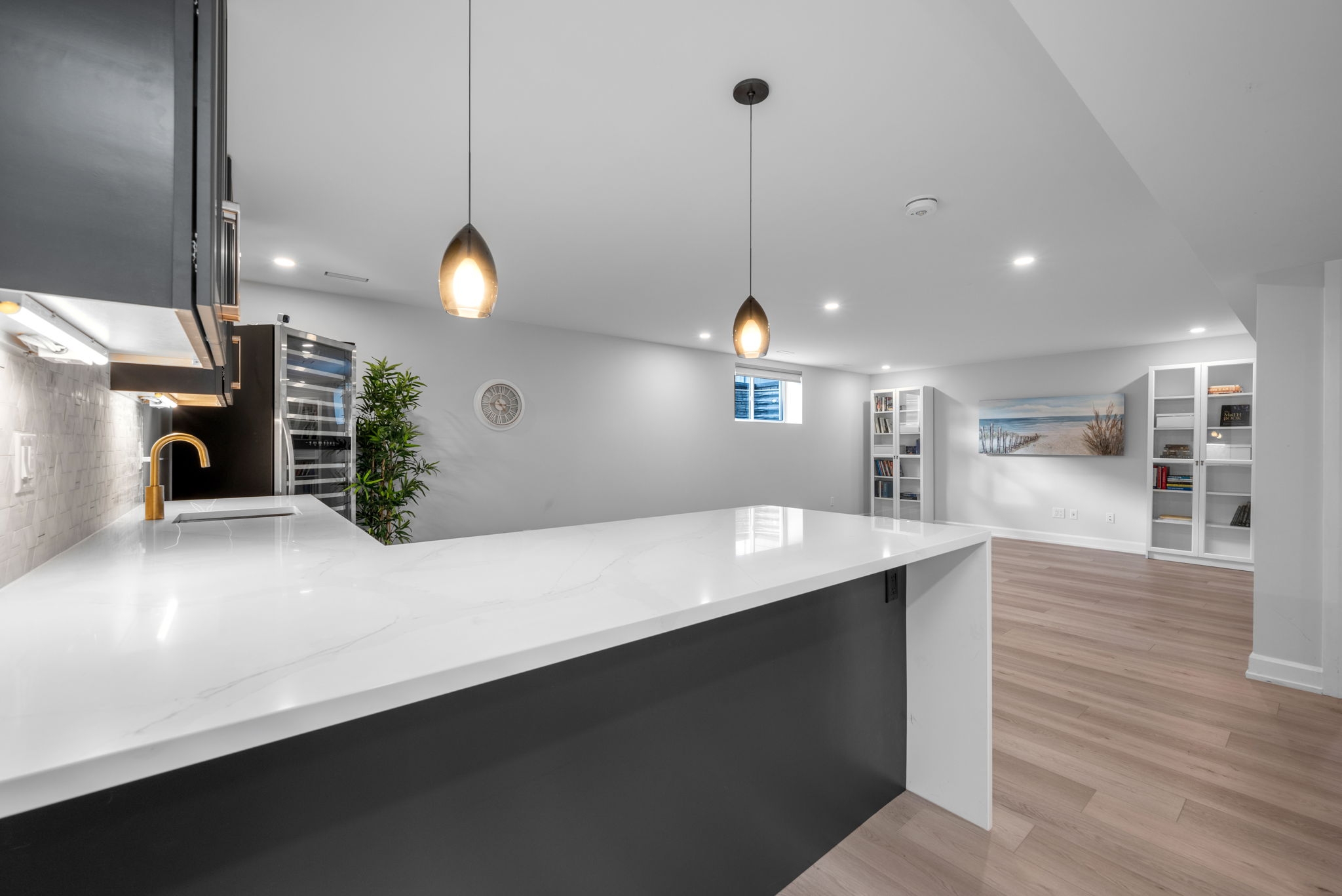 Experience elegance in this stunning 2+2 bedroom bungalow, showcasing refined décor and exceptional features. Permanent celebration lighting and upgraded exterior fixtures enhance its curb appeal, complemented by the interlock walkway and covered veranda with pot lights. A full security system ensures peace of mind.Step through the grand 8-foot high front door into a foyer with oversized tile, high baseboards, and 9-foot flat ceilings. Sophistication continues with five-panel interior doors, wide-plank hardwood floors, and upgraded light fixtures throughout.The chefs kitchen features a centre island with breakfast bar, quartz countertops with a striking waterfall edge, and stylish two-tone cabinetry. Most blinds are motorized, effortlessly controlling natural light. Twin dining room windows brighten the space, while the living room boasts a bold vertical gas fireplace.The primary suite offers a walk-in closet and a luxurious 5-piece ensuite with a glass shower, standalone tub, and twin sink vanity. A second bedroom with an oversized window and a well-appointed 5-piece main bath complete the main level.Main-floor laundry includes quartz countertops. An open hardwood staircase leads to an expansive lower level with a rec room, den, and two additional bedrooms. The kitchenette has quartz countertops and a wine fridge, while the spa-like 5-piece bath features radiant floor heating, a full-body wash shower, linen storage, and a private sauna.The PVC fenced yard provides a retreat with an interlock patio. The fully custom heated garage features a natural gas heater, EV charger, custom storage, and newly re-finished flooring in 2024, plus floor-to-ceiling slatwalls for optimal organization. Upgrades include an automatic natural gas generator (2023), three rear gas hookups for BBQs and fire pits, California Closets (2023), and interlock landscaping (2023).
