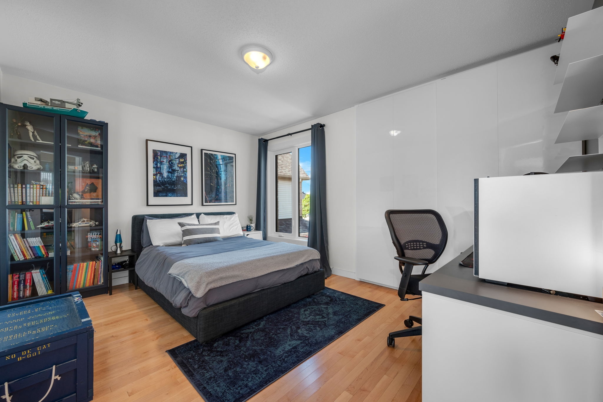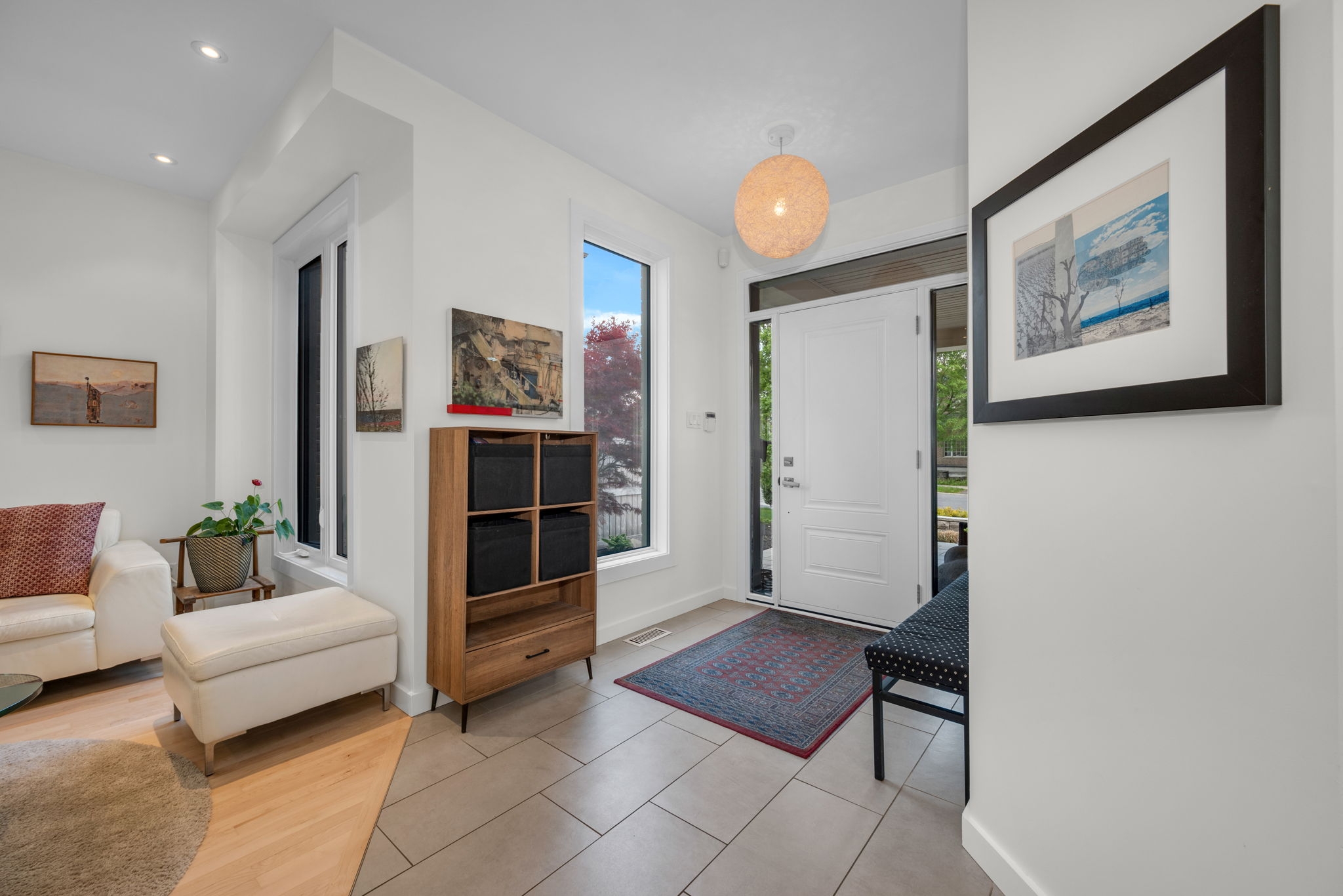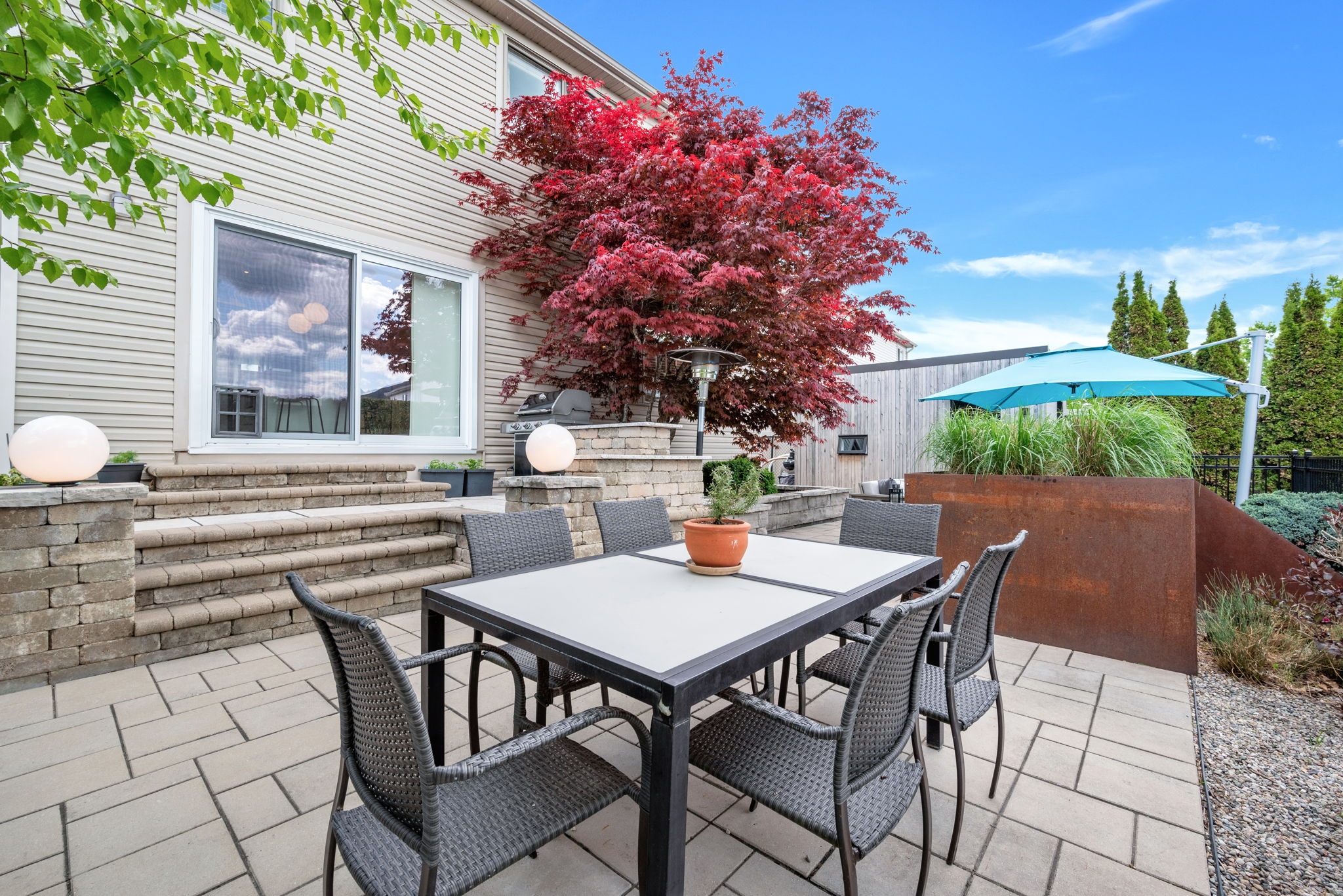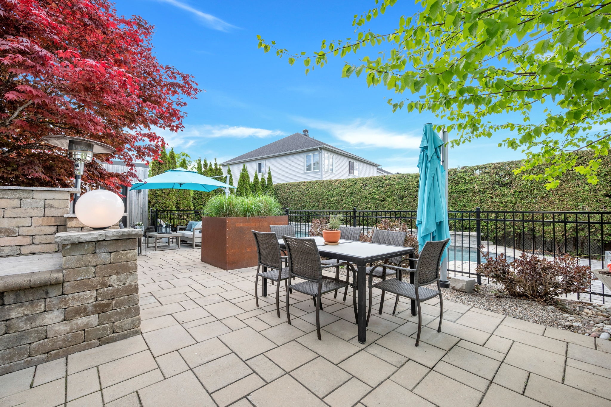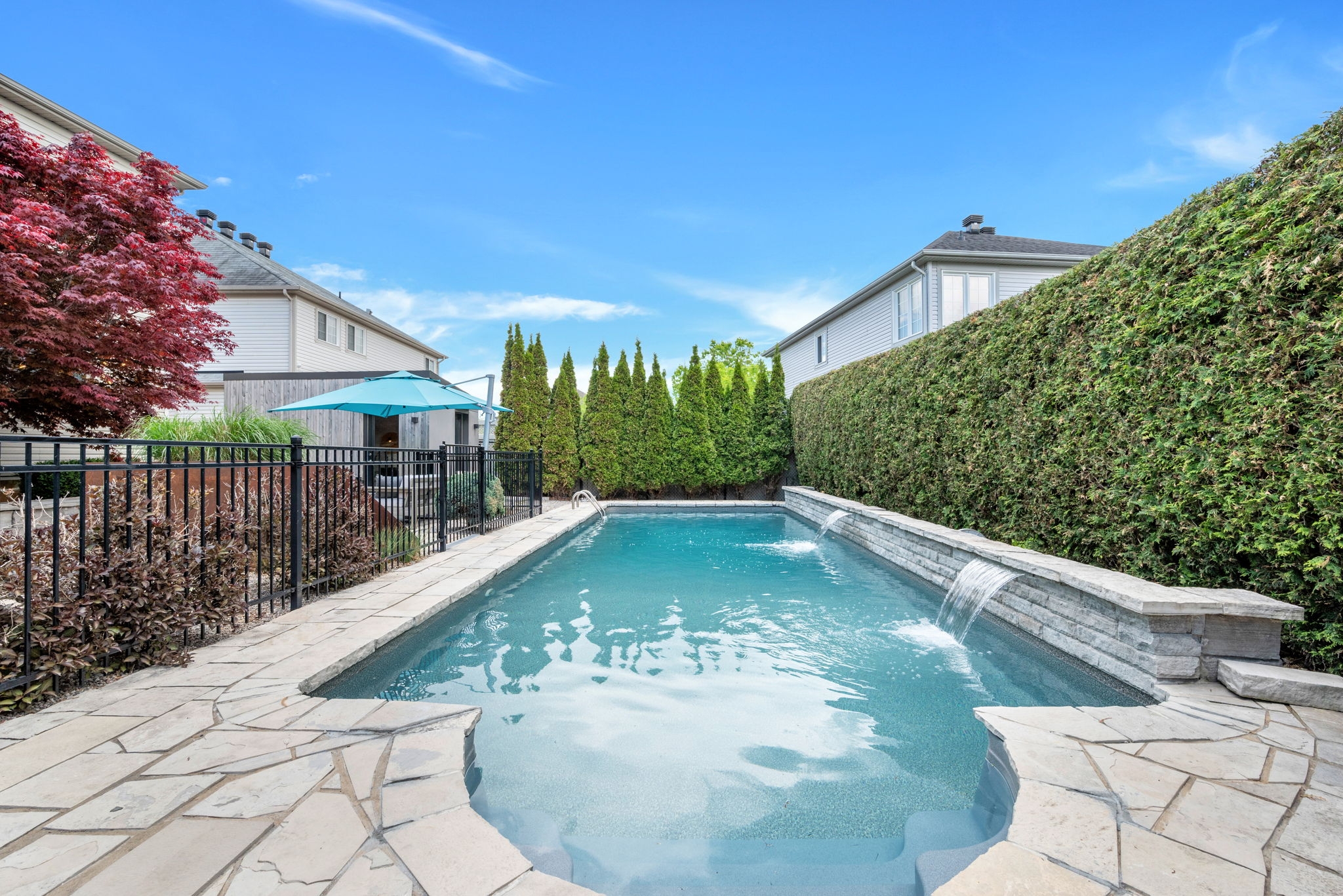 Welcome to 107 Joshua –With easy access to nature trails, schools, and just 15 minutes from downtown, this four-bedroom residence has been reimagined with timeless design and intentional living. A transformative renovation introduced a fluid, open-concept layout with hardwood flooring on both main and upper levels. A glass wall anchors the central staircase. The redesigned kitchen now serves as the home’s heart, while the finished basement continues the elevated aesthetic. Outdoors, the landscaping is more than curb appeal – it’s a curated extension of the living space. Situated on a pie-shaped oversized lot, the property features 360-degree site accessibility. The pool anchors the yard, surrounded by mature greenery and complementary hardscaping. Layered plantings and strategic spatial planning preserve visual and auditory privacy, creating a discreet environment that feels both open and comfortably secluded. A standout feature is the detached studio – completed in 2021 and outfitted with its own electrical panel, telecom infrastructure, heat pump, and energy exchanger. Designed for four-season use, it functions as a home office with secure communications capability. Whether used as a creative retreat, wellness space, or private getaway, it offers notable versatility.