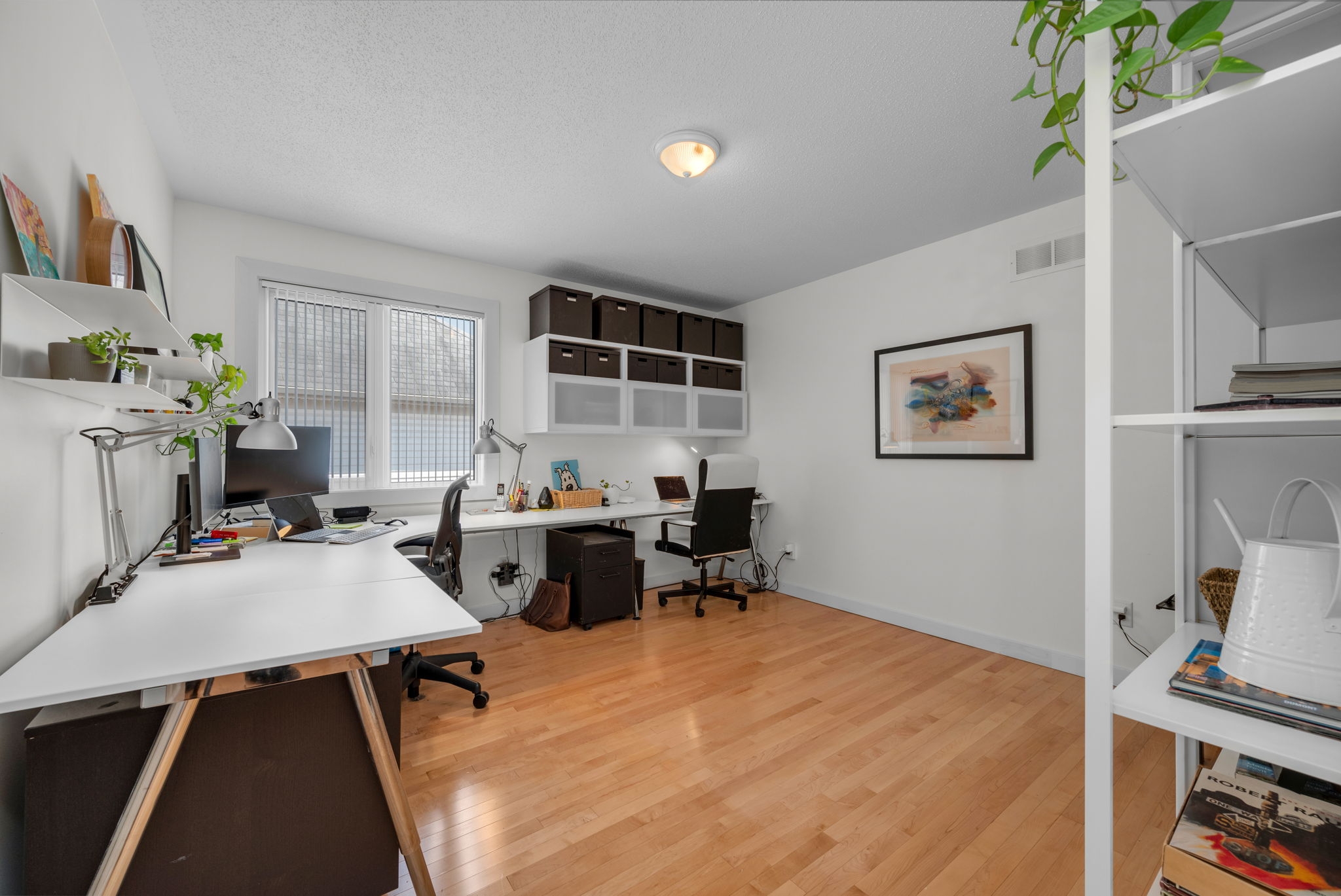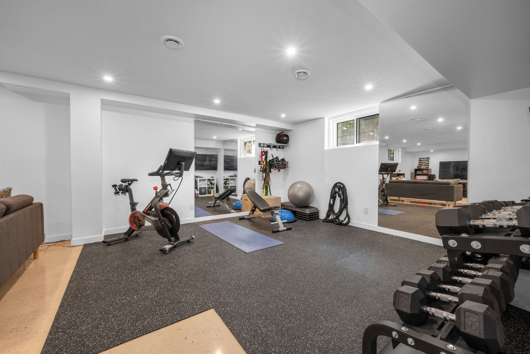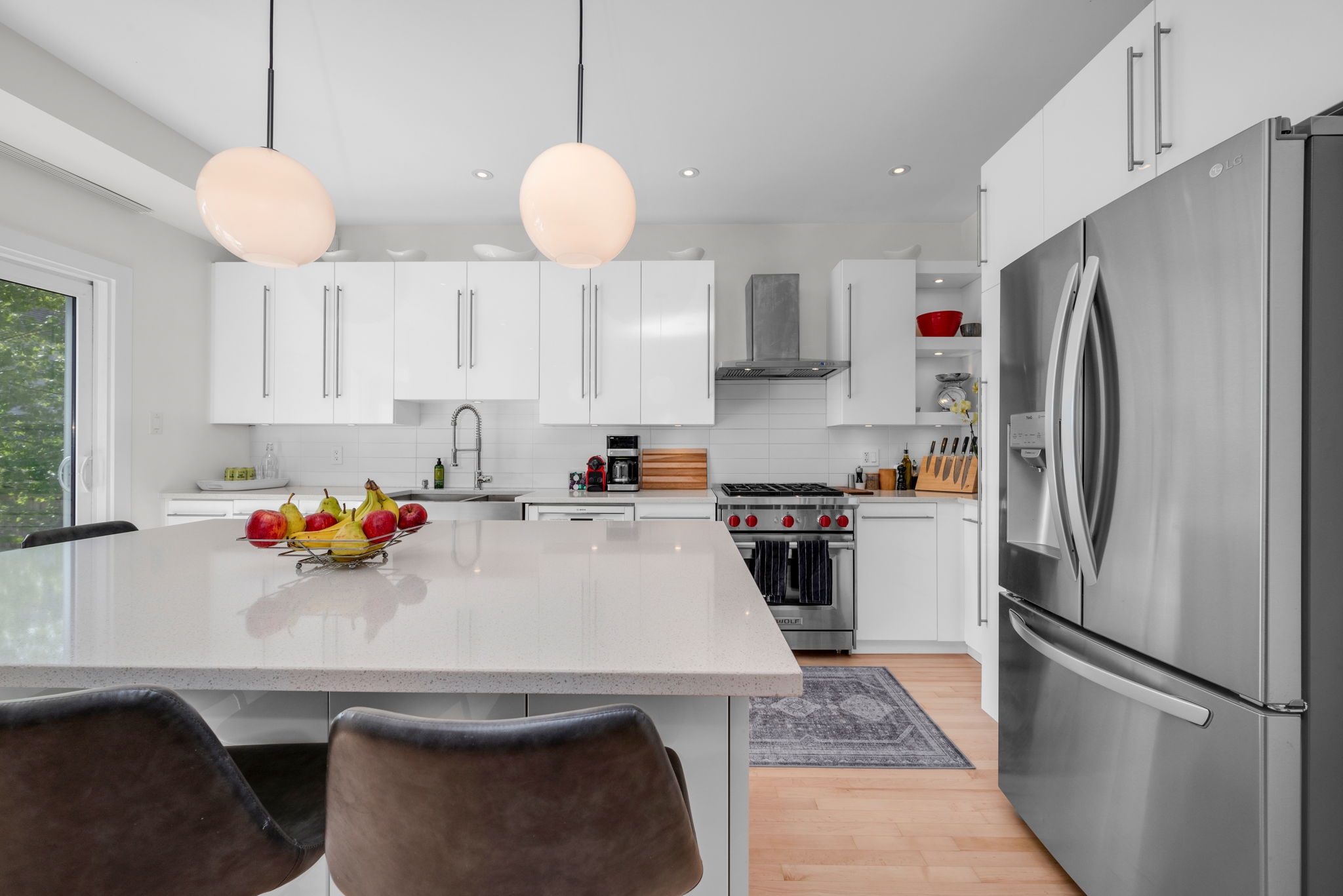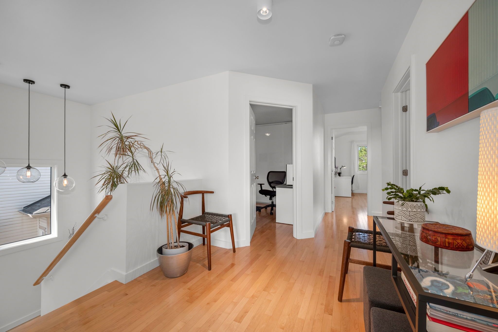 Welcome to 107 Joshua –With easy access to nature trails, schools, and just 15 minutes from downtown, this four-bedroom residence has been reimagined with timeless design and intentional living. A transformative renovation introduced a fluid, open-concept layout with hardwood flooring on both main and upper levels. A glass wall anchors the central staircase. The redesigned kitchen now serves as the home’s heart, while the finished basement continues the elevated aesthetic. Outdoors, the landscaping is more than curb appeal – it’s a curated extension of the living space. Situated on a pie-shaped oversized lot, the property features 360-degree site accessibility. The pool anchors the yard, surrounded by mature greenery and complementary hardscaping. Layered plantings and strategic spatial planning preserve visual and auditory privacy, creating a discreet environment that feels both open and comfortably secluded. A standout feature is the detached studio – completed in 2021 and outfitted with its own electrical panel, telecom infrastructure, heat pump, and energy exchanger. Designed for four-season use, it functions as a home office with secure communications capability. Whether used as a creative retreat, wellness space, or private getaway, it offers notable versatility.