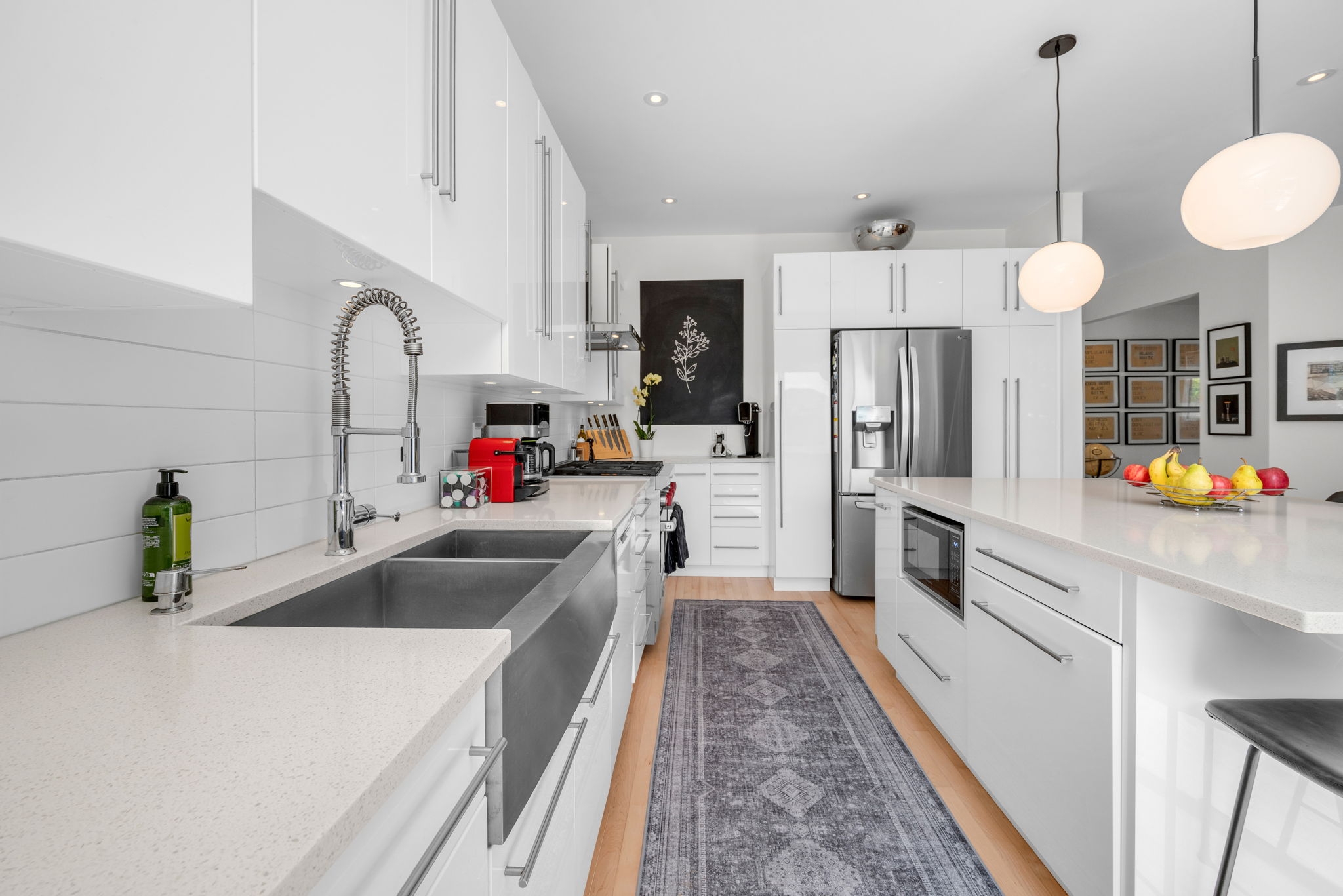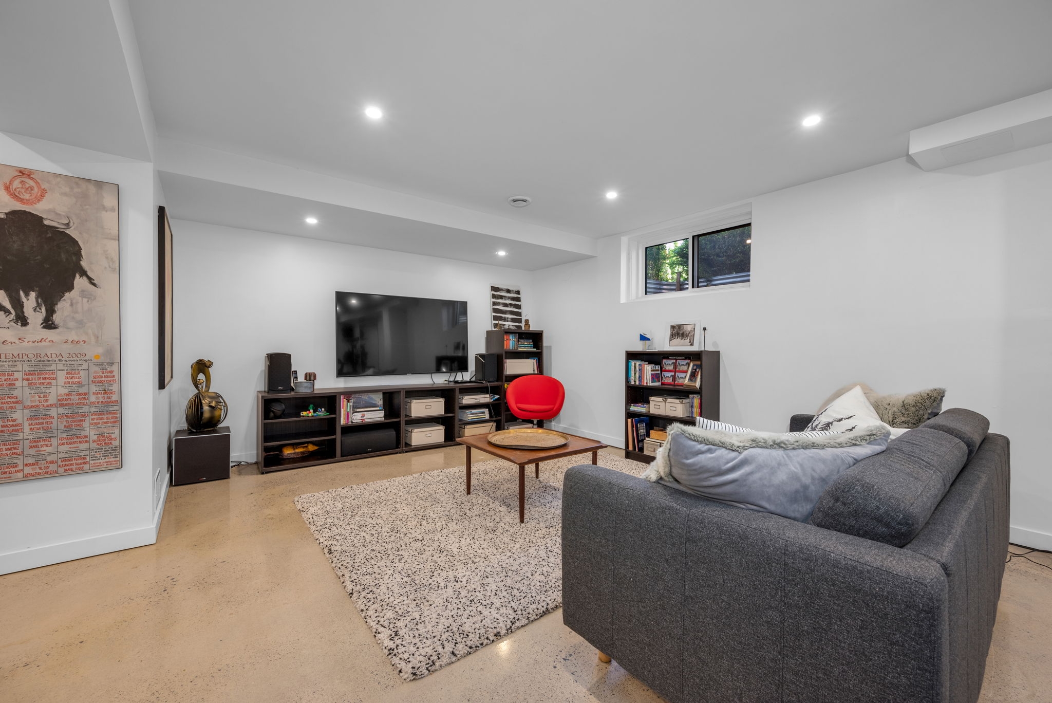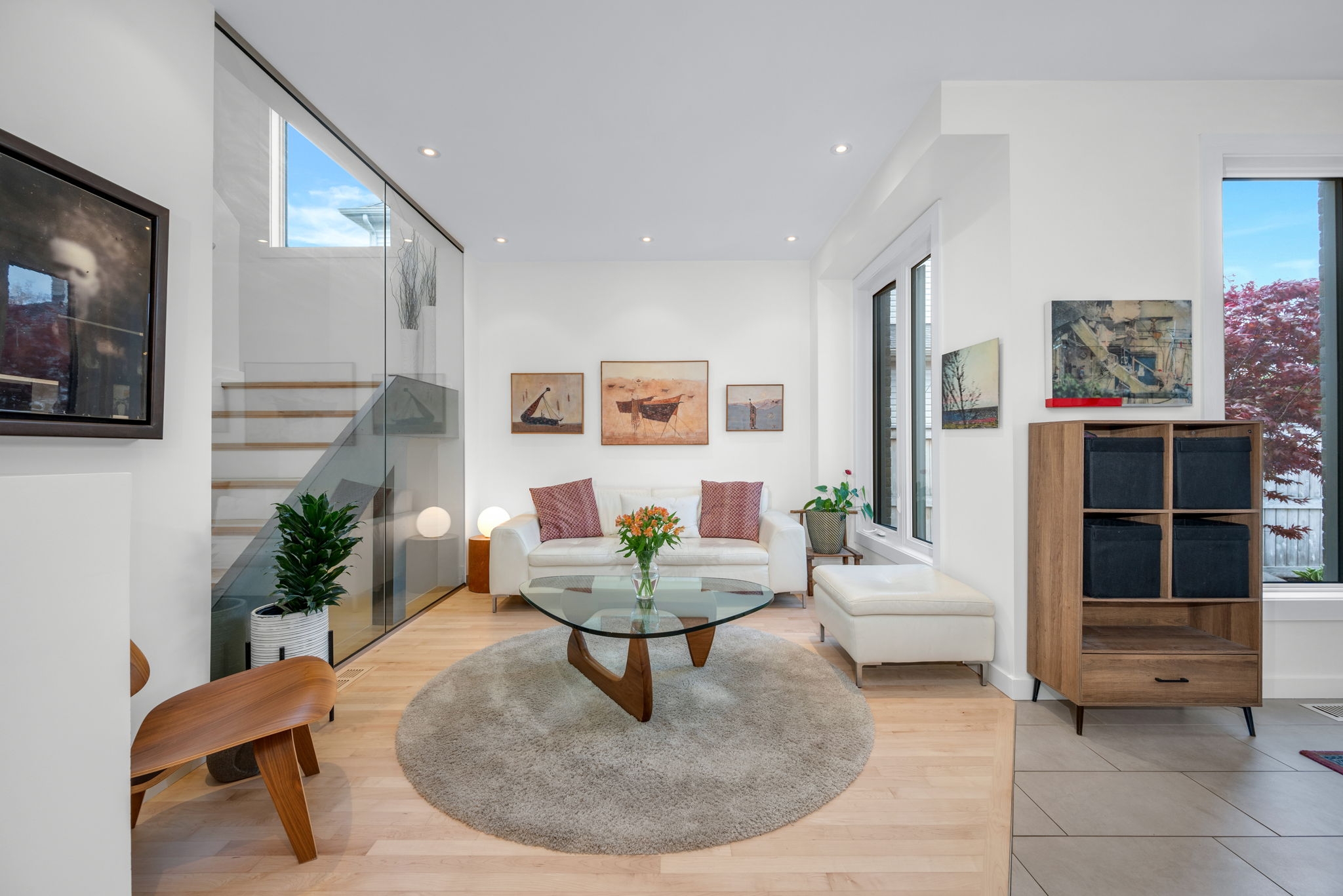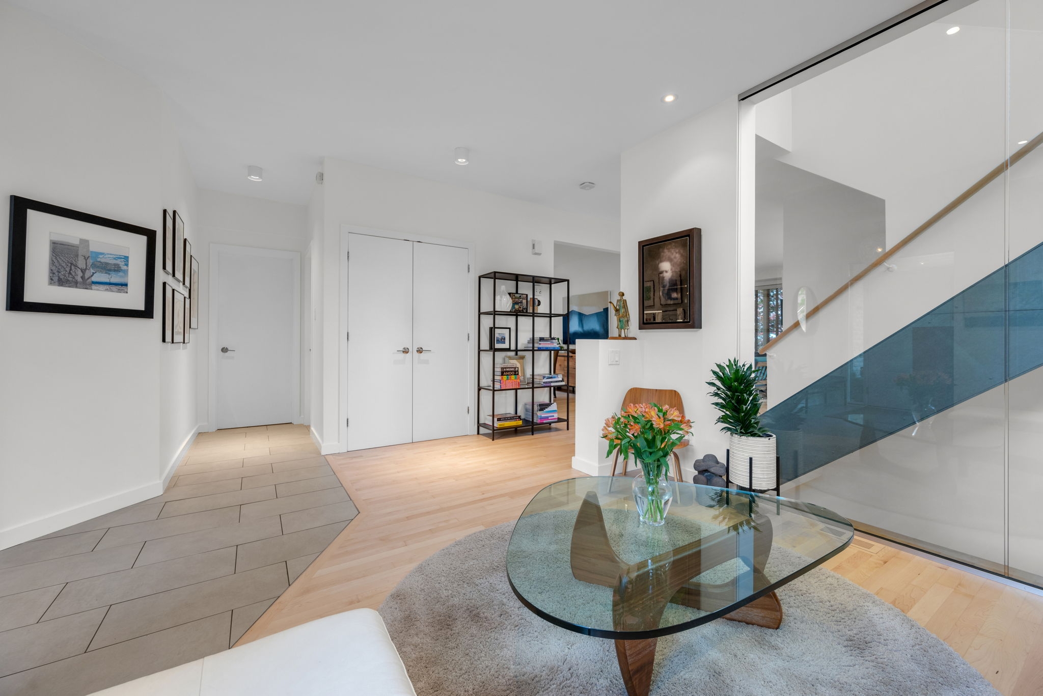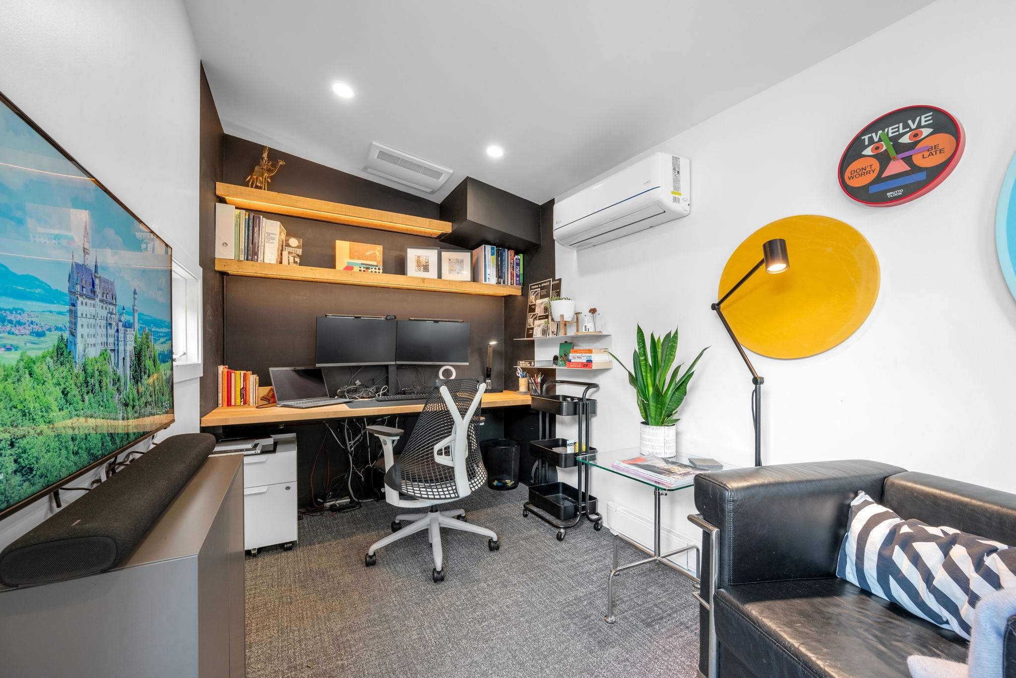 Welcome to 107 Joshua –With easy access to nature trails, schools, and just 15 minutes from downtown, this four-bedroom residence has been reimagined with timeless design and intentional living. A transformative renovation introduced a fluid, open-concept layout with hardwood flooring on both main and upper levels. A glass wall anchors the central staircase. The redesigned kitchen now serves as the home’s heart, while the finished basement continues the elevated aesthetic. Outdoors, the landscaping is more than curb appeal – it’s a curated extension of the living space. Situated on a pie-shaped oversized lot, the property features 360-degree site accessibility. The pool anchors the yard, surrounded by mature greenery and complementary hardscaping. Layered plantings and strategic spatial planning preserve visual and auditory privacy, creating a discreet environment that feels both open and comfortably secluded. A standout feature is the detached studio – completed in 2021 and outfitted with its own electrical panel, telecom infrastructure, heat pump, and energy exchanger. Designed for four-season use, it functions as a home office with secure communications capability. Whether used as a creative retreat, wellness space, or private getaway, it offers notable versatility.