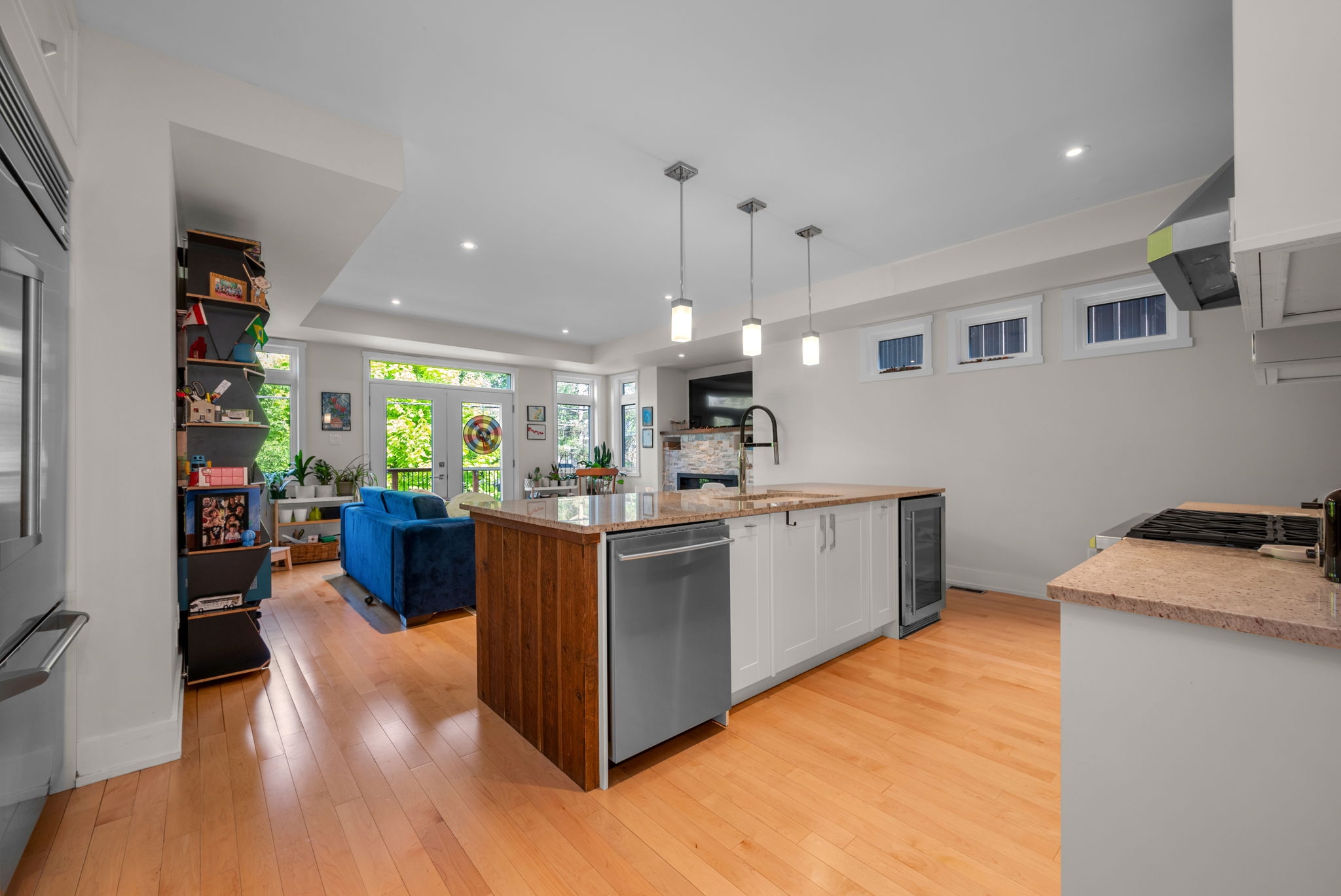 This stunning semi-detached home in the heart of Westboro Beach offers modern elegance and breathtaking views. This home is thoughtfully designed, it features rich hardwood flooring, soaring ceilings that create a timeless and sophisticated atmosphere. The rooftop deck provides panoramic views of the Ottawa River and Gatineau Hills, making it the perfect space to relax and entertain.The second floor boasts three bright and spacious bedrooms, while the lower level includes a versatile room with ten-foot ceilings that can be used as a home theatre, office, or gym. The home offers three full bathrooms, each with luxurious walk-in showers, and two half baths for added convenience. The spectacular en-suite features a rain shower and floating tub, adding to the home's spa-like ambiance. An inviting foyer leads into the open-concept living and dining area, complete with a cozy fireplace. The gourmet kitchen is a chefs dream, equipped with granite countertops, Monogram appliances, a large island, and a pantry. A custom maple staircase with an open riser design beautifully complements the maple floors throughout the home.Located in a prime neighbourhood, this home seamlessly blends modern design with comfort and sophistication. A rare find in an incredible location.