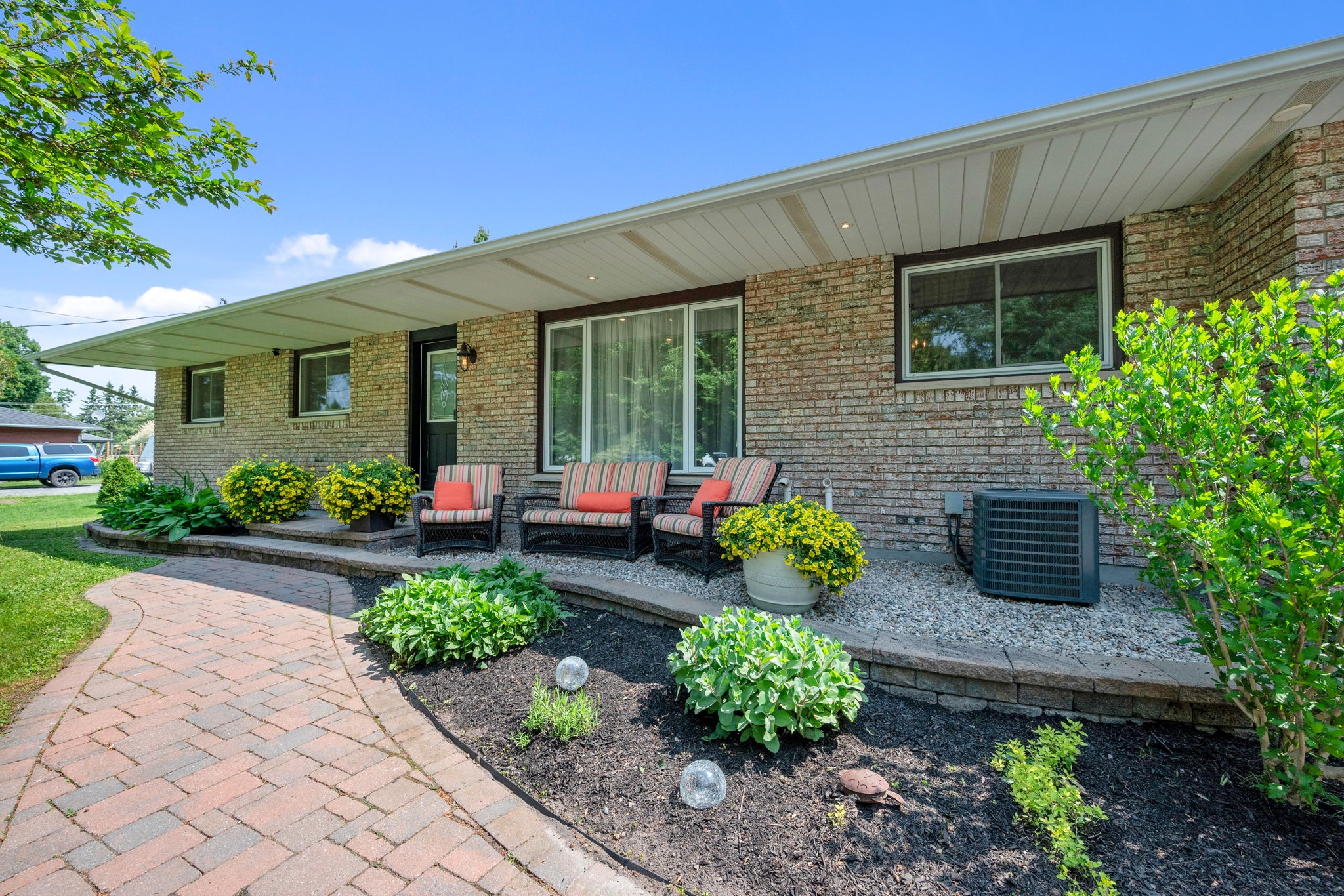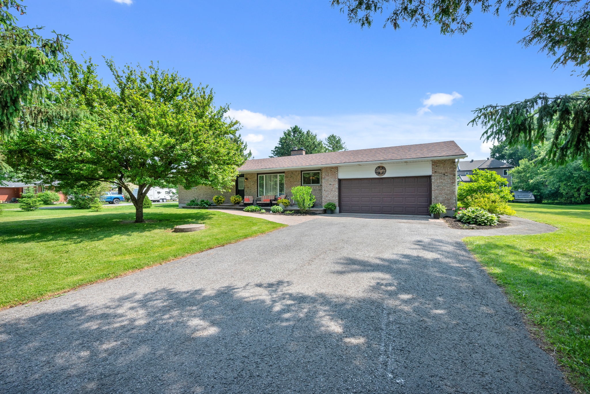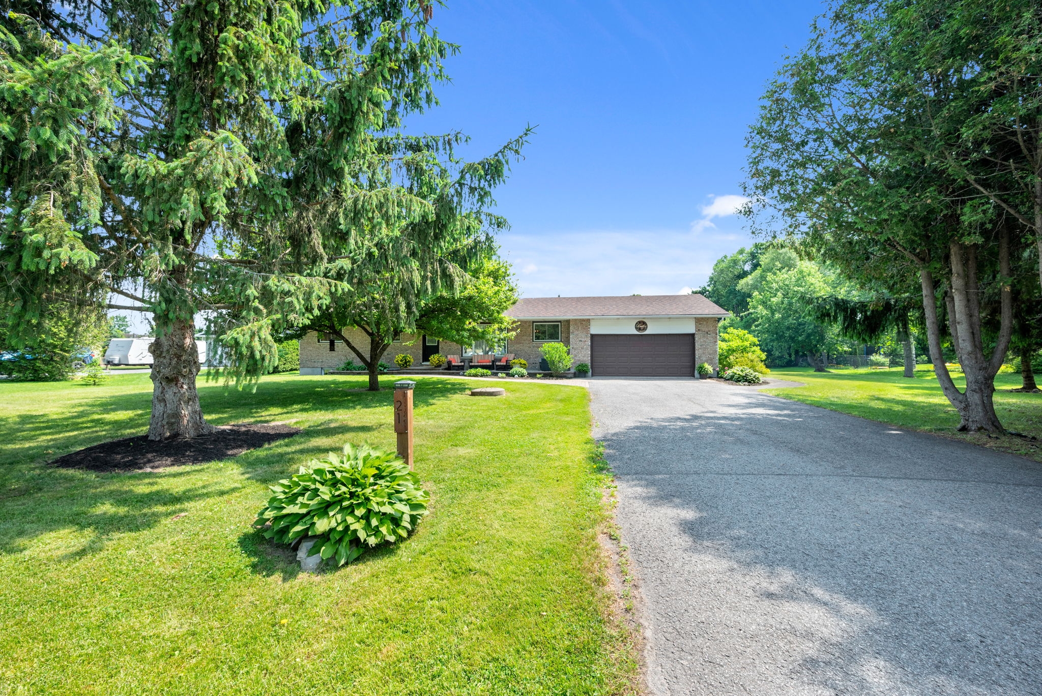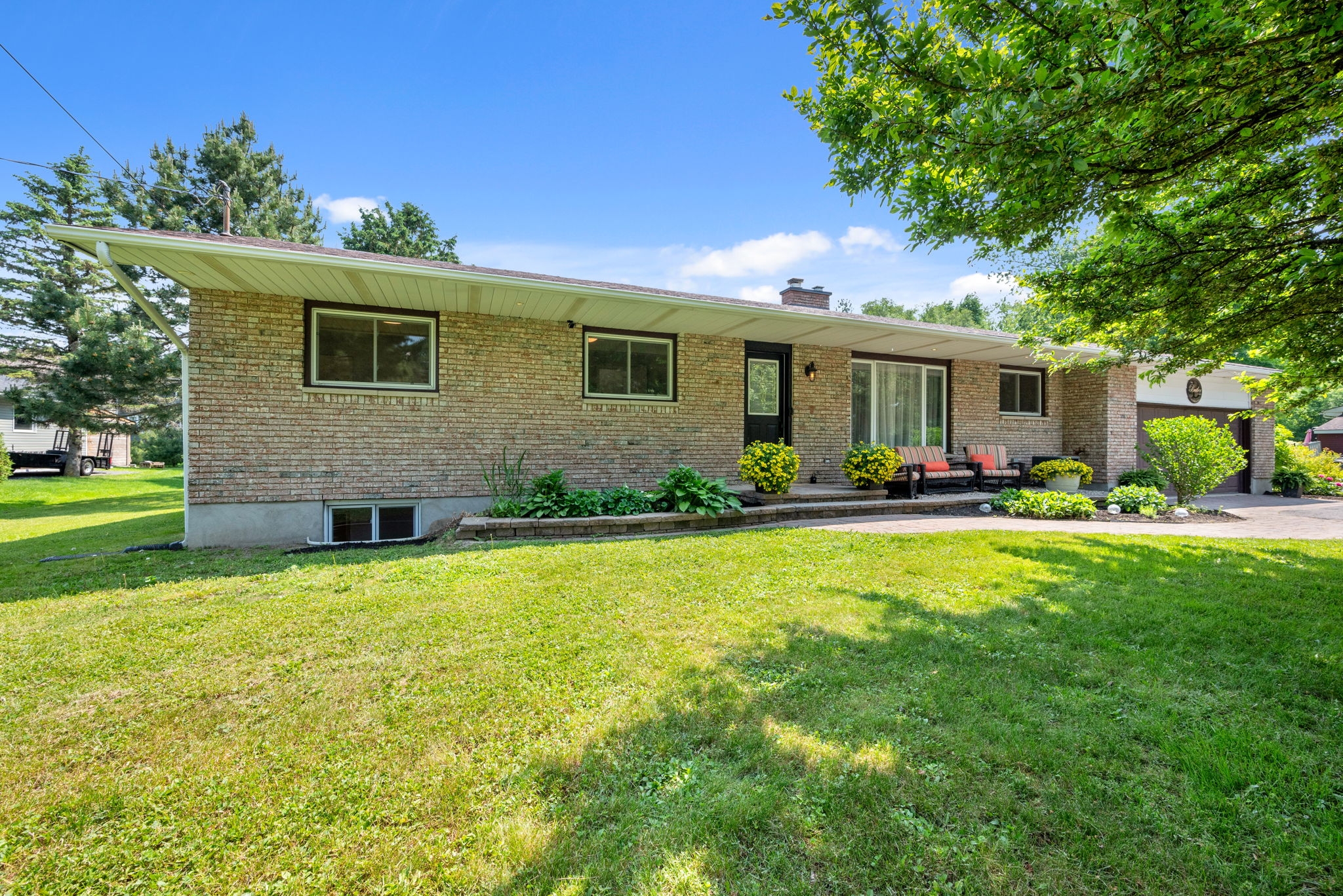 Welcome to your dream home! Pride of ownership shines in this renovated 3 + 2 bedroom, all brick bungalow on a spacious lot! This beautiful home boasts meticulous attention to detail. Step inside and be greeted by a stylish decor that flows throughout the home, creating an inviting and cohesive atmosphere.The elegant open-concept living/dining area is perfect for entertaining or cozy family gatherings. The unique stone, gas fireplace is a showstopper. The custom kitchen, featuring new countertops in 2025, comes fully equipped with all appliances ensuring a seamless culinary experience. Well appointed main bathroom conveniently located close to the main living space. The primary suite is a true retreat, showcasing a lux ensuite, complete with a walk-in shower. Two additional bedrooms provide ample space for family or guests. The fully finished basement offers a versatile recreation room, two bedrooms, a convenient two-piece bathroom and ample storage for seasonal organization. Egress windows, with new weeping tile, provide a safety feature along with the potential for an in-law suite or multi-generational living. Step outside and admire the professionally designed front and rear hardscaping, which complement the mature trees and enhance your outdoor living experience. The beautifully landscaped backyard is perfect for relaxation or entertaining, with a hot tub ready for your enjoyment along with two firepits and mature perennial gardens. The oversized garage allows ample space for vehicles and a bonus room at the back, ideal for a home office or den. Recent improvements include freshly painted walls, new trim, and crown molding throughout , updated insulation, & a new sump pump and laundry tub and new small garage door off the back den.This home is truly a gem, combining modern luxury with the warmth of a family haven. With everything you need and more, this property is a must-see. Don't miss your opportunity to own this amazing bungalow.