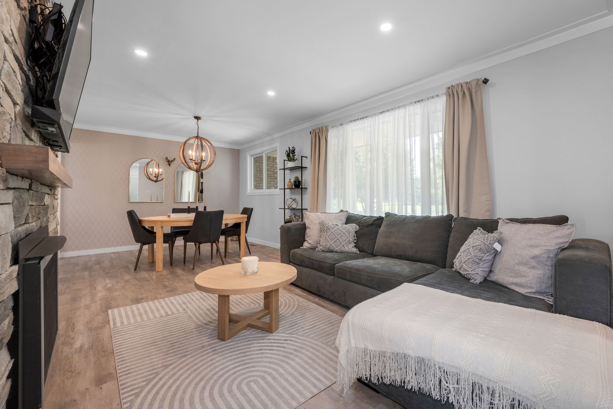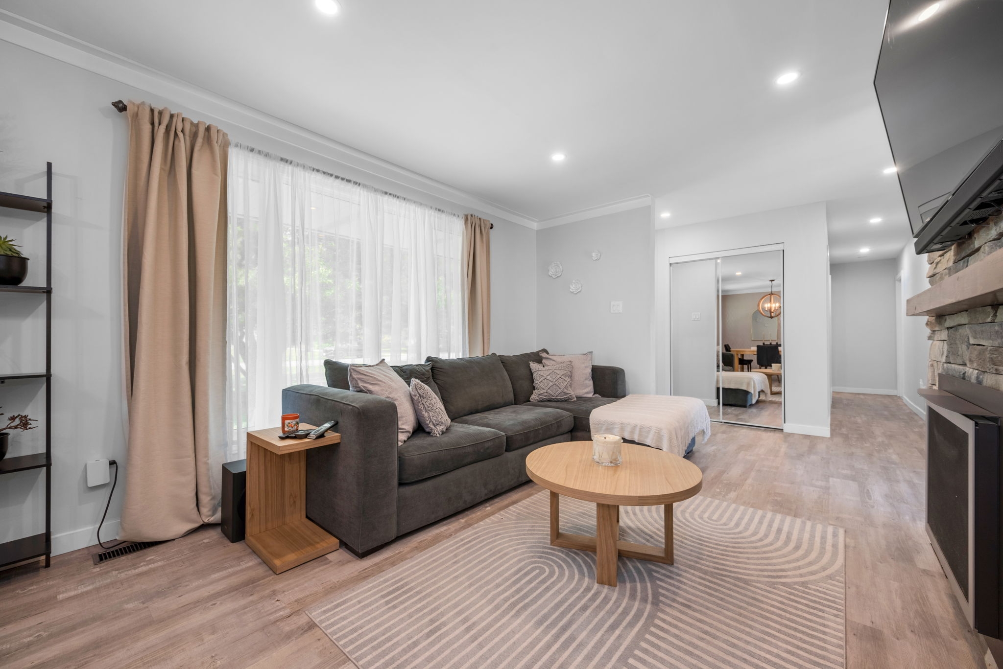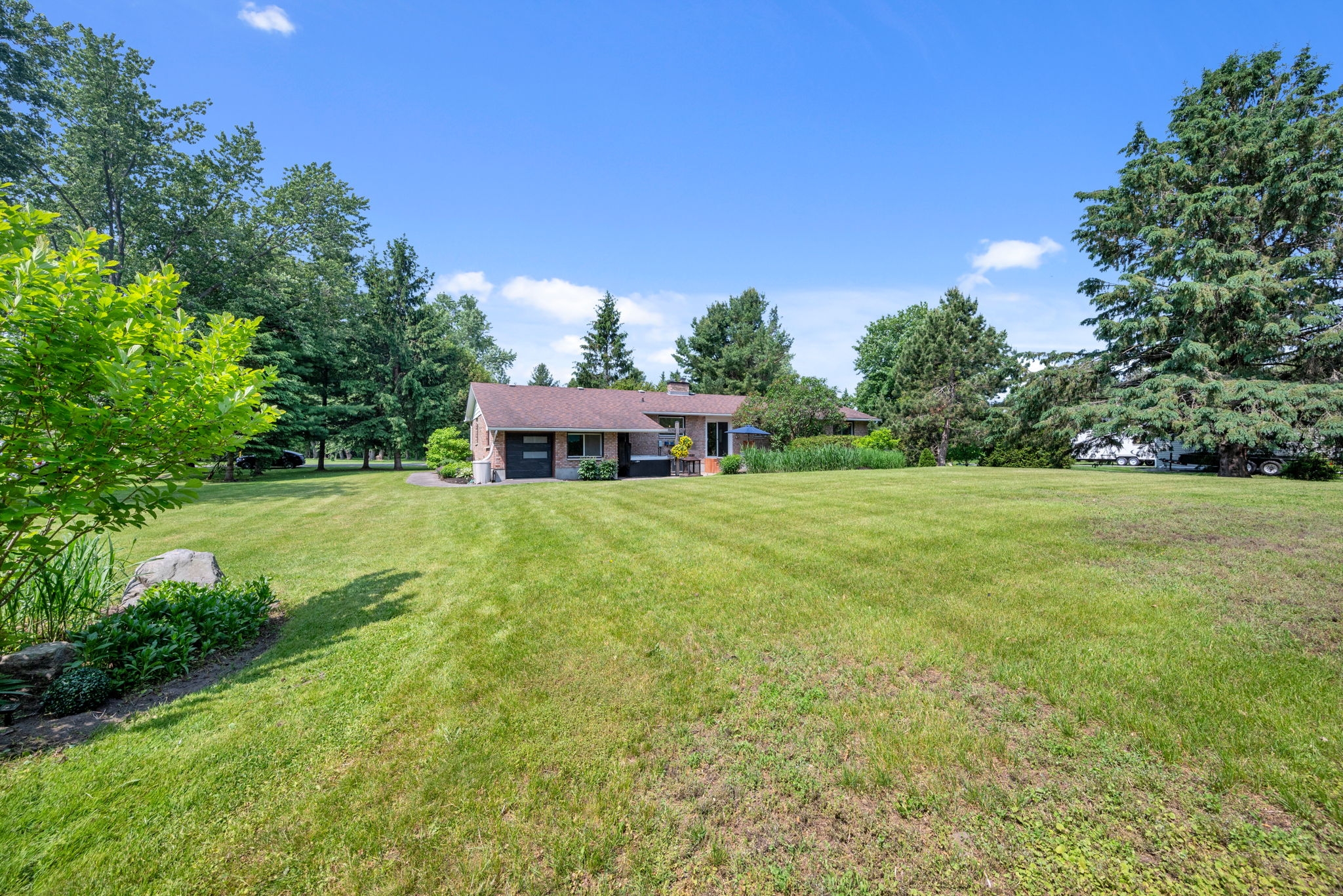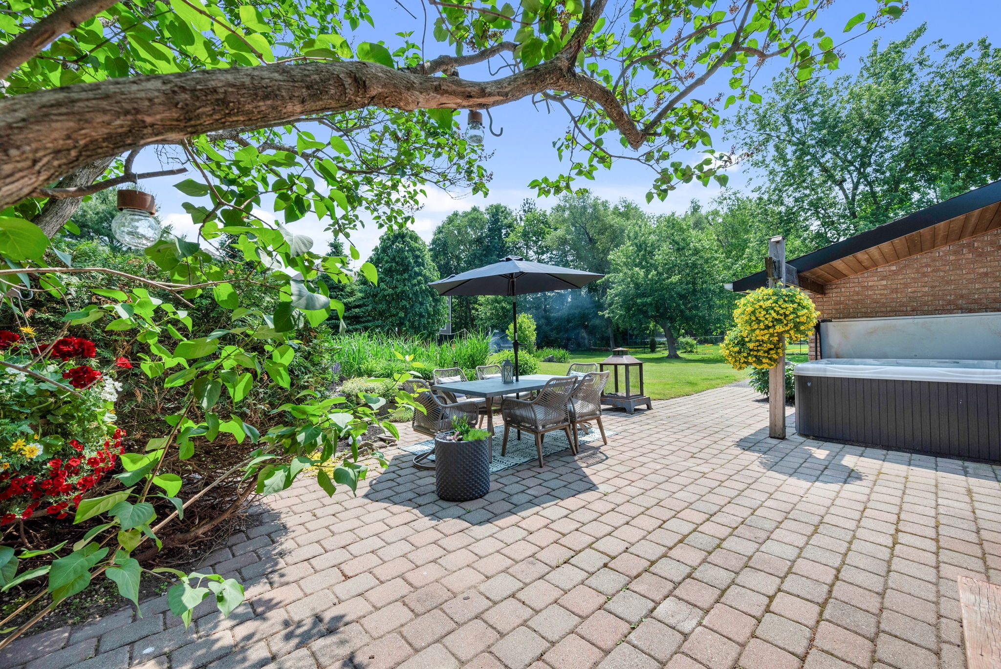 Welcome to your dream home! Pride of ownership shines in this renovated 3 + 2 bedroom, all brick bungalow on a spacious lot! This beautiful home boasts meticulous attention to detail. Step inside and be greeted by a stylish decor that flows throughout the home, creating an inviting and cohesive atmosphere.The elegant open-concept living/dining area is perfect for entertaining or cozy family gatherings. The unique stone, gas fireplace is a showstopper. The custom kitchen, featuring new countertops in 2025, comes fully equipped with all appliances ensuring a seamless culinary experience. Well appointed main bathroom conveniently located close to the main living space. The primary suite is a true retreat, showcasing a lux ensuite, complete with a walk-in shower. Two additional bedrooms provide ample space for family or guests. The fully finished basement offers a versatile recreation room, two bedrooms, a convenient two-piece bathroom and ample storage for seasonal organization. Egress windows, with new weeping tile, provide a safety feature along with the potential for an in-law suite or multi-generational living. Step outside and admire the professionally designed front and rear hardscaping, which complement the mature trees and enhance your outdoor living experience. The beautifully landscaped backyard is perfect for relaxation or entertaining, with a hot tub ready for your enjoyment along with two firepits and mature perennial gardens. The oversized garage allows ample space for vehicles and a bonus room at the back, ideal for a home office or den. Recent improvements include freshly painted walls, new trim, and crown molding throughout , updated insulation, & a new sump pump and laundry tub and new small garage door off the back den.This home is truly a gem, combining modern luxury with the warmth of a family haven. With everything you need and more, this property is a must-see. Don't miss your opportunity to own this amazing bungalow.