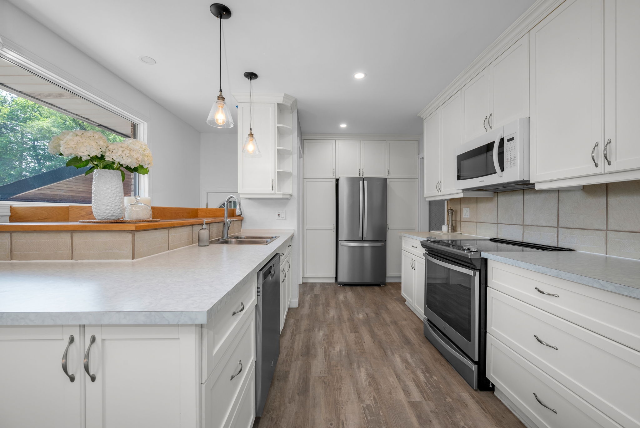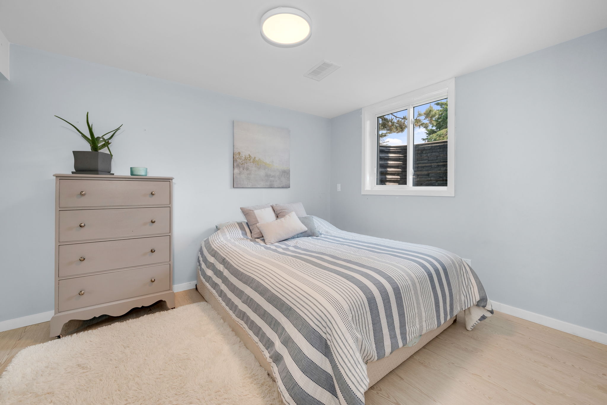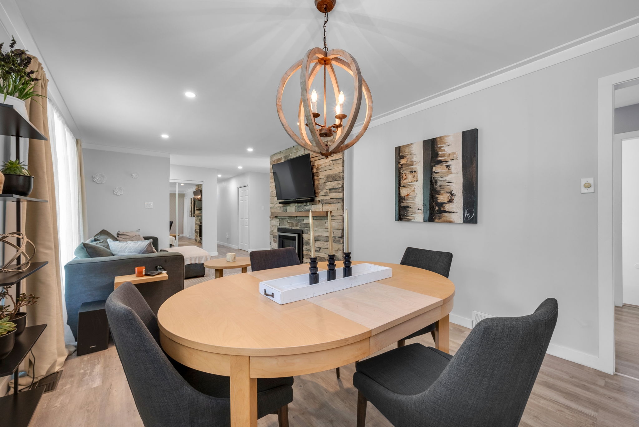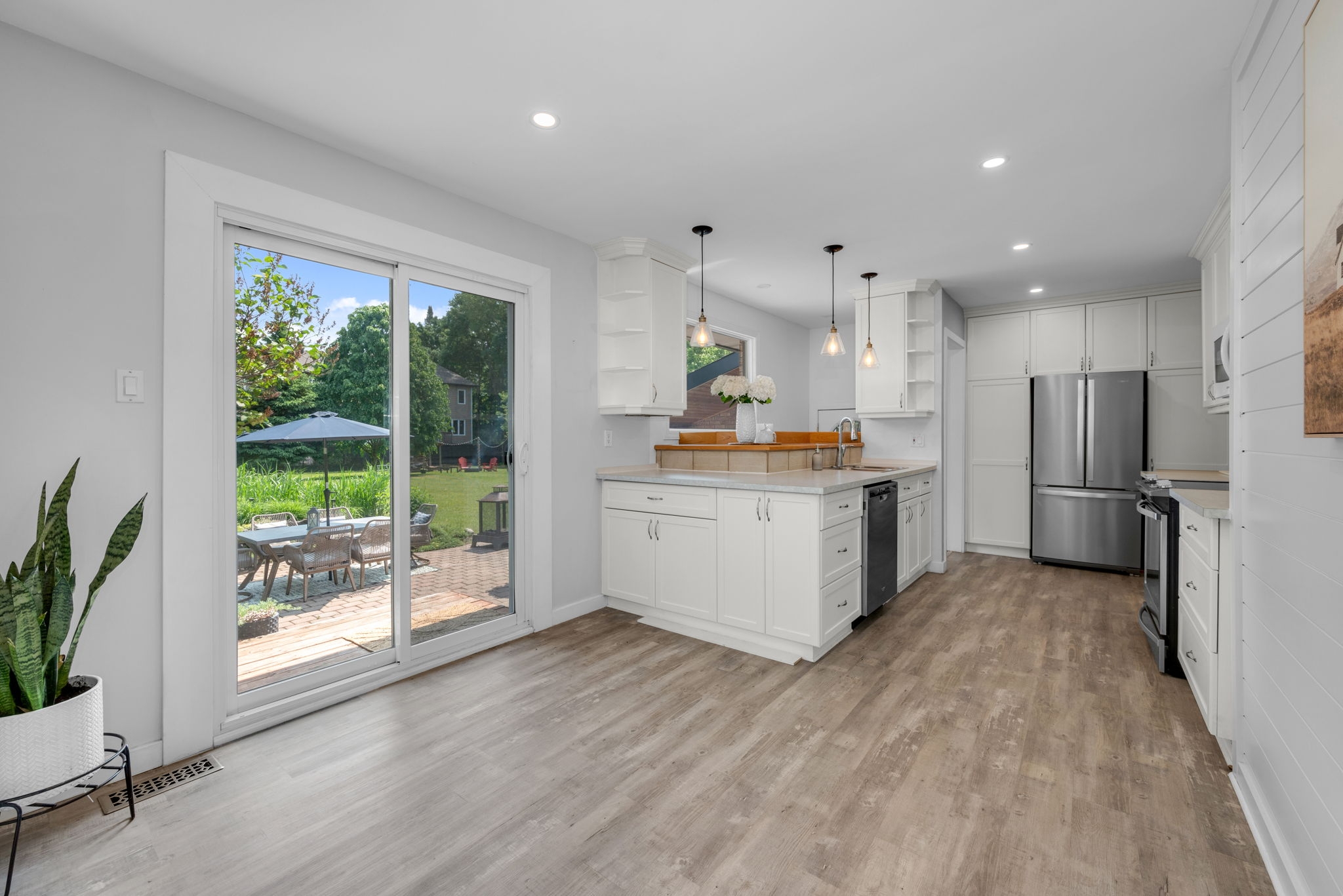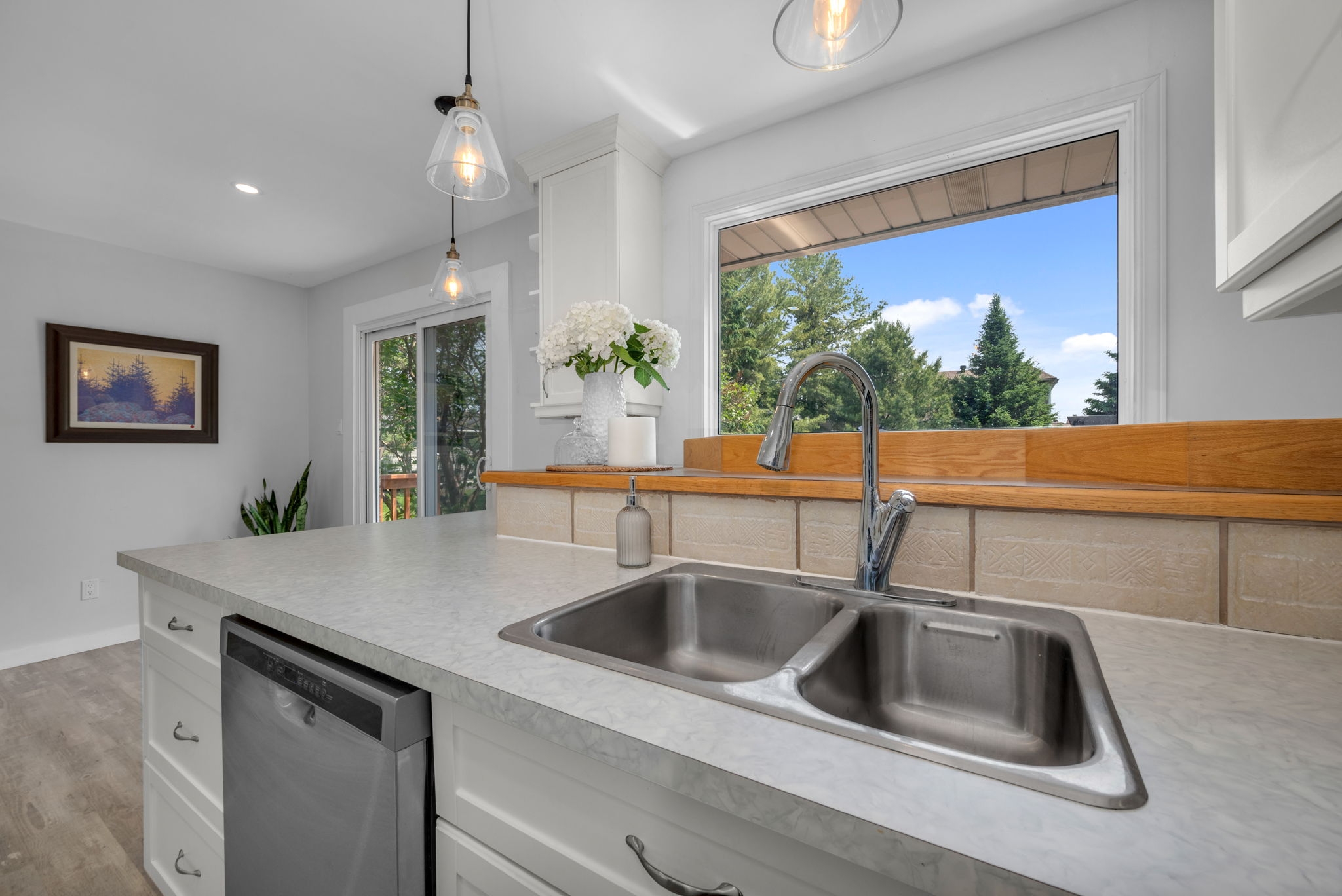 Welcome to your dream home! Pride of ownership shines in this renovated 3 + 2 bedroom, all brick bungalow on a spacious lot! This beautiful home boasts meticulous attention to detail. Step inside and be greeted by a stylish decor that flows throughout the home, creating an inviting and cohesive atmosphere.The elegant open-concept living/dining area is perfect for entertaining or cozy family gatherings. The unique stone, gas fireplace is a showstopper. The custom kitchen, featuring new countertops in 2025, comes fully equipped with all appliances ensuring a seamless culinary experience. Well appointed main bathroom conveniently located close to the main living space. The primary suite is a true retreat, showcasing a lux ensuite, complete with a walk-in shower. Two additional bedrooms provide ample space for family or guests. The fully finished basement offers a versatile recreation room, two bedrooms, a convenient two-piece bathroom and ample storage for seasonal organization. Egress windows, with new weeping tile, provide a safety feature along with the potential for an in-law suite or multi-generational living. Step outside and admire the professionally designed front and rear hardscaping, which complement the mature trees and enhance your outdoor living experience. The beautifully landscaped backyard is perfect for relaxation or entertaining, with a hot tub ready for your enjoyment along with two firepits and mature perennial gardens. The oversized garage allows ample space for vehicles and a bonus room at the back, ideal for a home office or den. Recent improvements include freshly painted walls, new trim, and crown molding throughout , updated insulation, & a new sump pump and laundry tub and new small garage door off the back den.This home is truly a gem, combining modern luxury with the warmth of a family haven. With everything you need and more, this property is a must-see. Don't miss your opportunity to own this amazing bungalow.