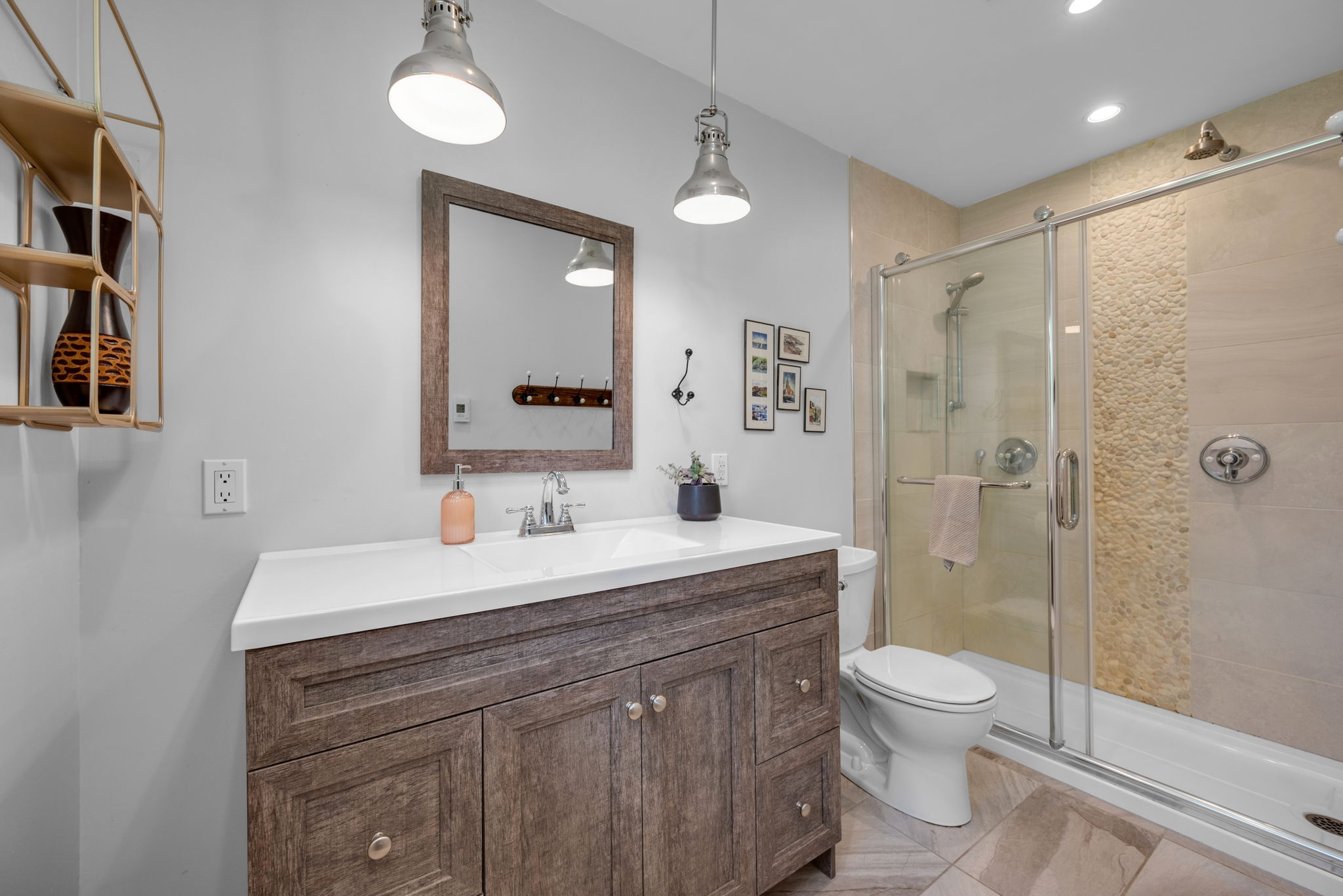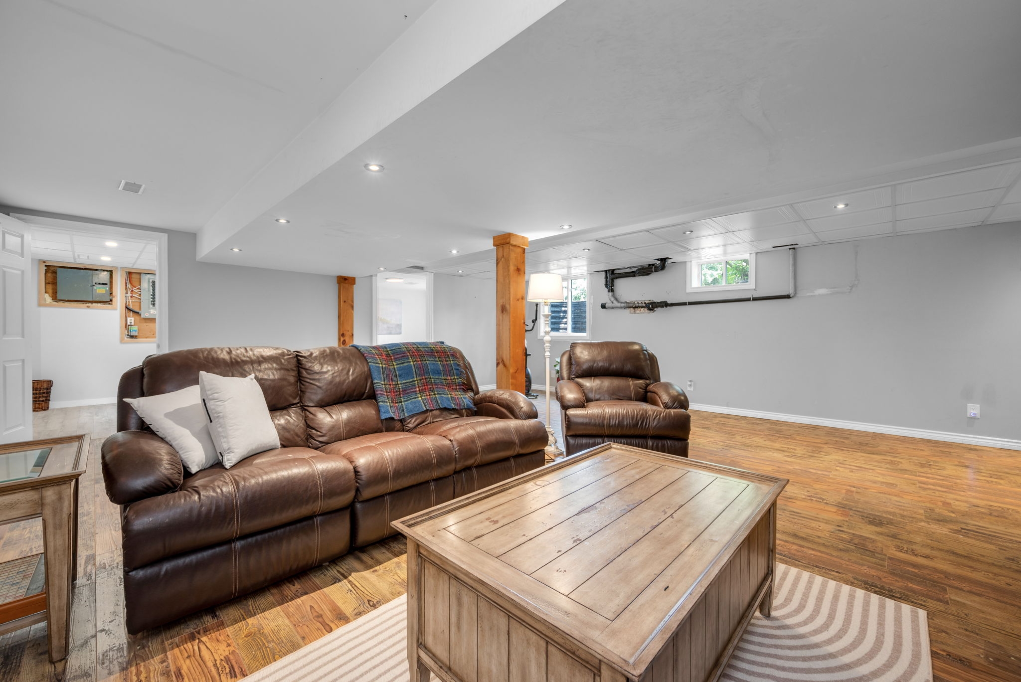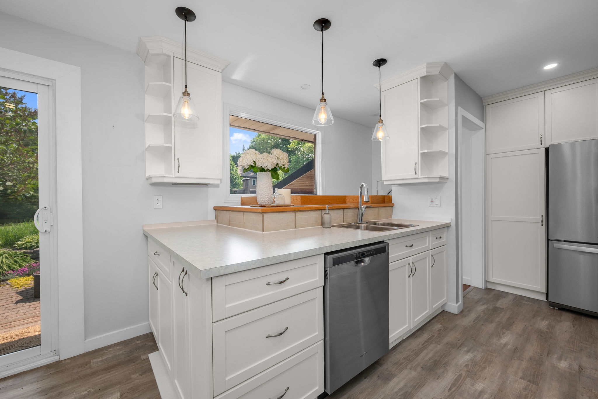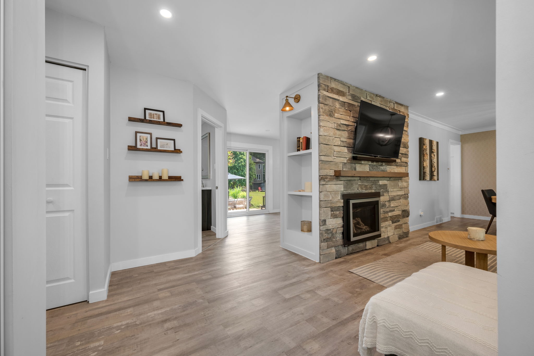 Welcome to your dream home! Pride of ownership shines in this renovated 3 + 2 bedroom, all brick bungalow on a spacious lot! This beautiful home boasts meticulous attention to detail. Step inside and be greeted by a stylish decor that flows throughout the home, creating an inviting and cohesive atmosphere.The elegant open-concept living/dining area is perfect for entertaining or cozy family gatherings. The unique stone, gas fireplace is a showstopper. The custom kitchen, featuring new countertops in 2025, comes fully equipped with all appliances ensuring a seamless culinary experience. Well appointed main bathroom conveniently located close to the main living space. The primary suite is a true retreat, showcasing a lux ensuite, complete with a walk-in shower. Two additional bedrooms provide ample space for family or guests. The fully finished basement offers a versatile recreation room, two bedrooms, a convenient two-piece bathroom and ample storage for seasonal organization. Egress windows, with new weeping tile, provide a safety feature along with the potential for an in-law suite or multi-generational living. Step outside and admire the professionally designed front and rear hardscaping, which complement the mature trees and enhance your outdoor living experience. The beautifully landscaped backyard is perfect for relaxation or entertaining, with a hot tub ready for your enjoyment along with two firepits and mature perennial gardens. The oversized garage allows ample space for vehicles and a bonus room at the back, ideal for a home office or den. Recent improvements include freshly painted walls, new trim, and crown molding throughout , updated insulation, & a new sump pump and laundry tub and new small garage door off the back den.This home is truly a gem, combining modern luxury with the warmth of a family haven. With everything you need and more, this property is a must-see. Don't miss your opportunity to own this amazing bungalow.