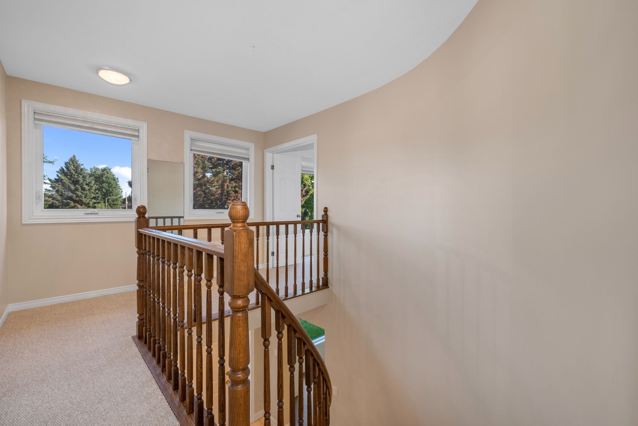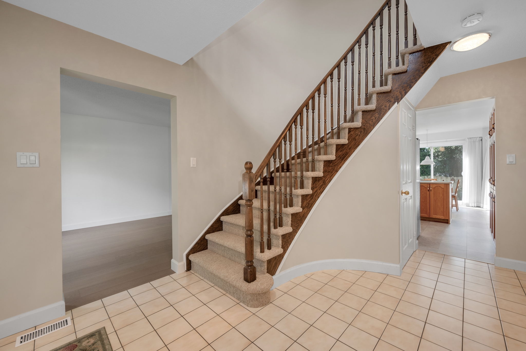Situated in Fallingbrook, Orleans, this beautifully updated 4-bedroom, 3-bathroom home offers timeless charm and exceptional functionality. Inside, enjoy newly updated flooring and fresh paint throughout, a bright open-concept living/dining area, a sun-filled eat-in kitchen with wall pantry and backyard views. The adjacent family room features a cozy wood-burning fireplace, while the main floor also includes a laundry/mudroom with side entry and garage access, and a 2-piece bath. A curved staircase leads to the second floor with a sitting area and a balcony. The large primary suite with walk-in closet and 4-piece ensuite, plus three additional bedrooms and a full bath. The partially finished basement offers a rec room and workshop. The fully fenced backyard offers lots of space for customization. Recent updates include windows (2016), furnace & A/C (2014), and driveway (2023). Located close to schools, parks, shops, recreation, and transit. Some photos are virtually staged.