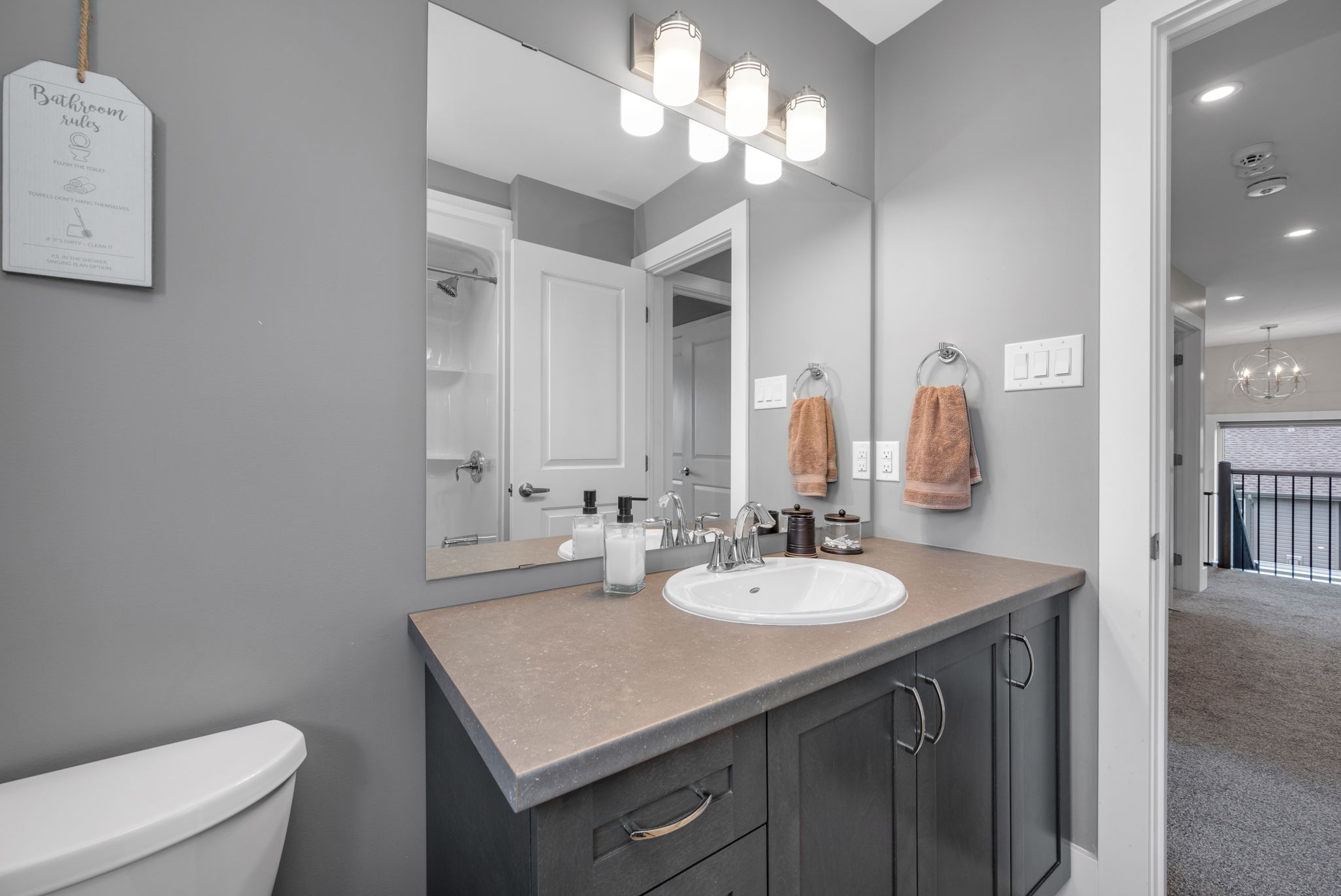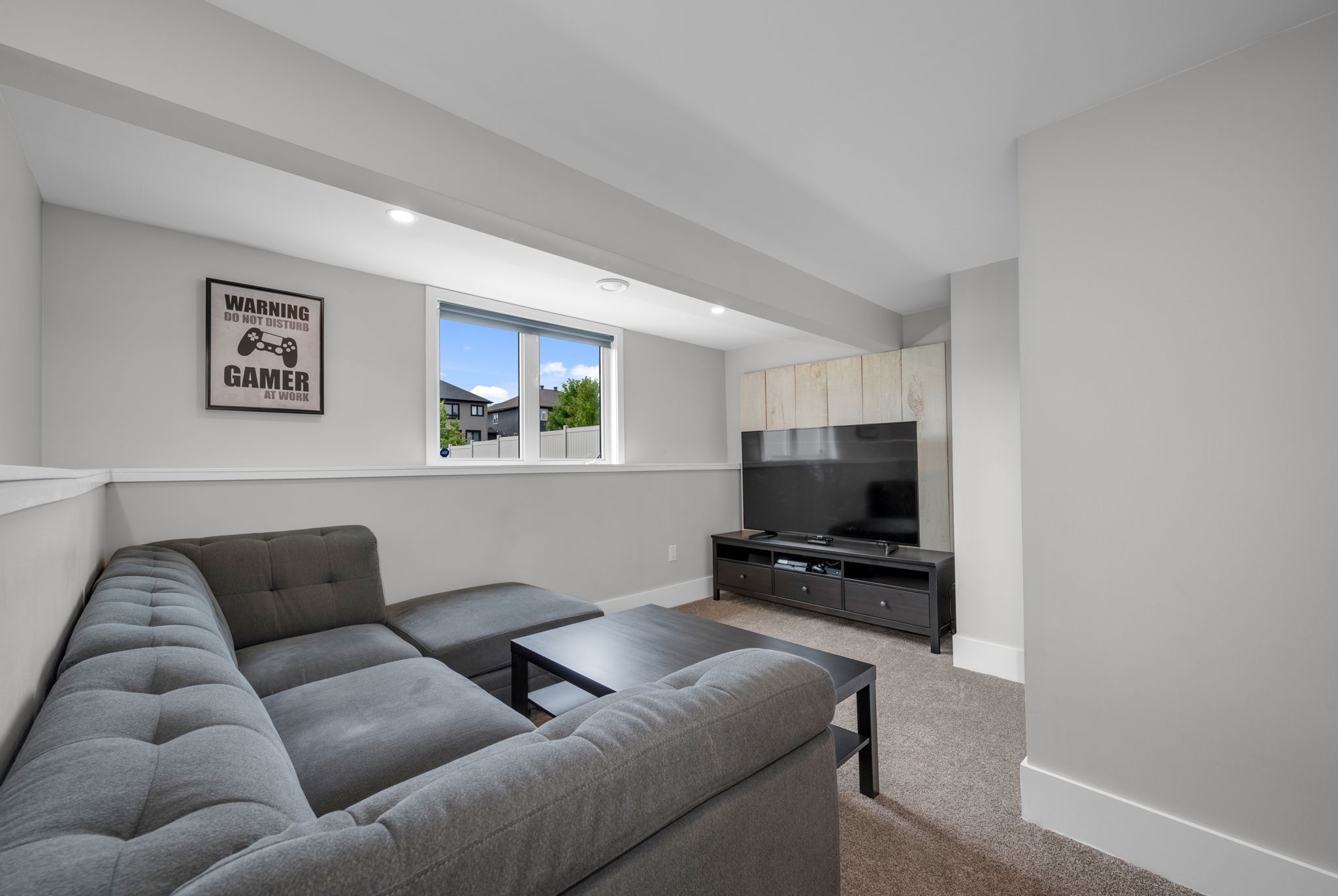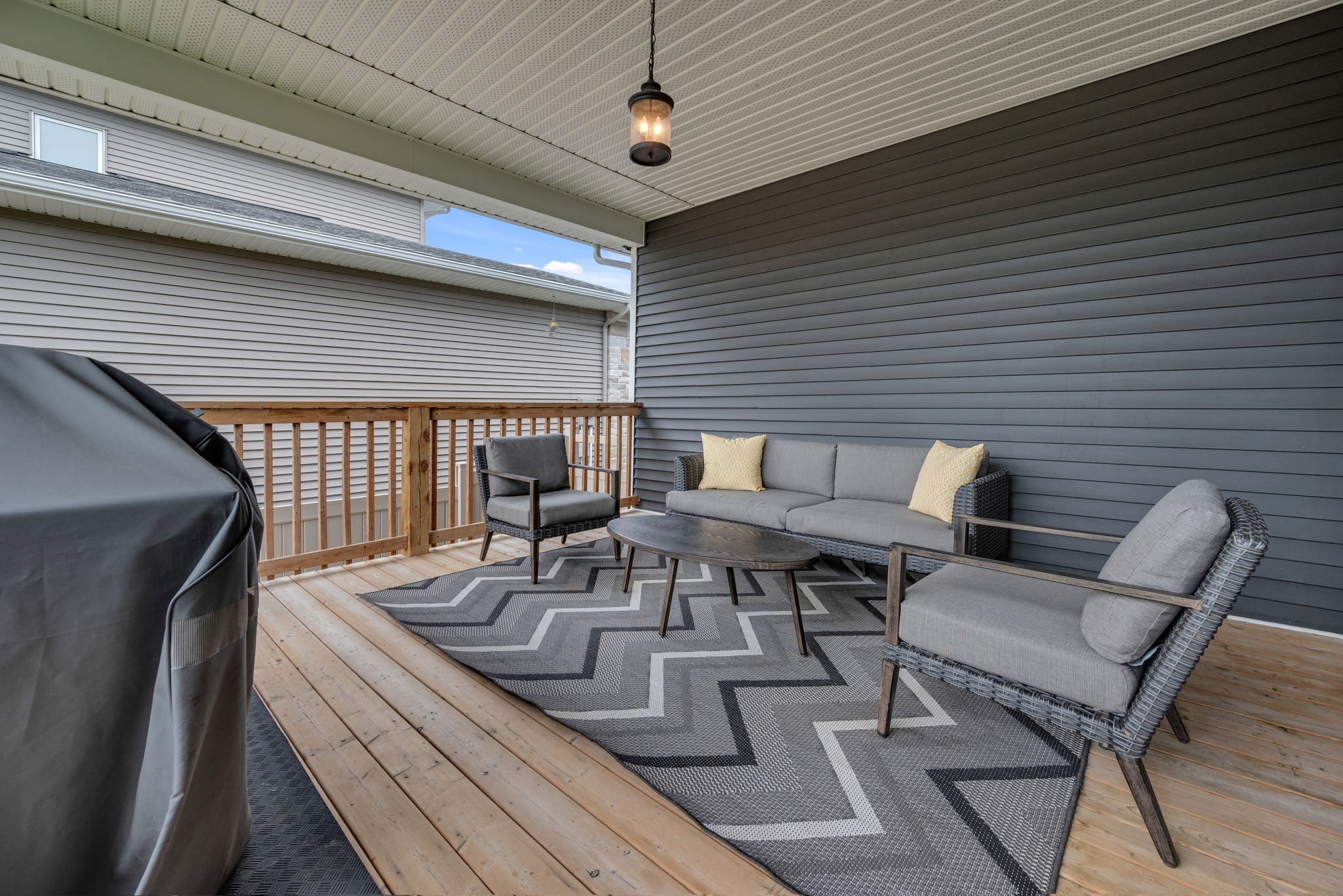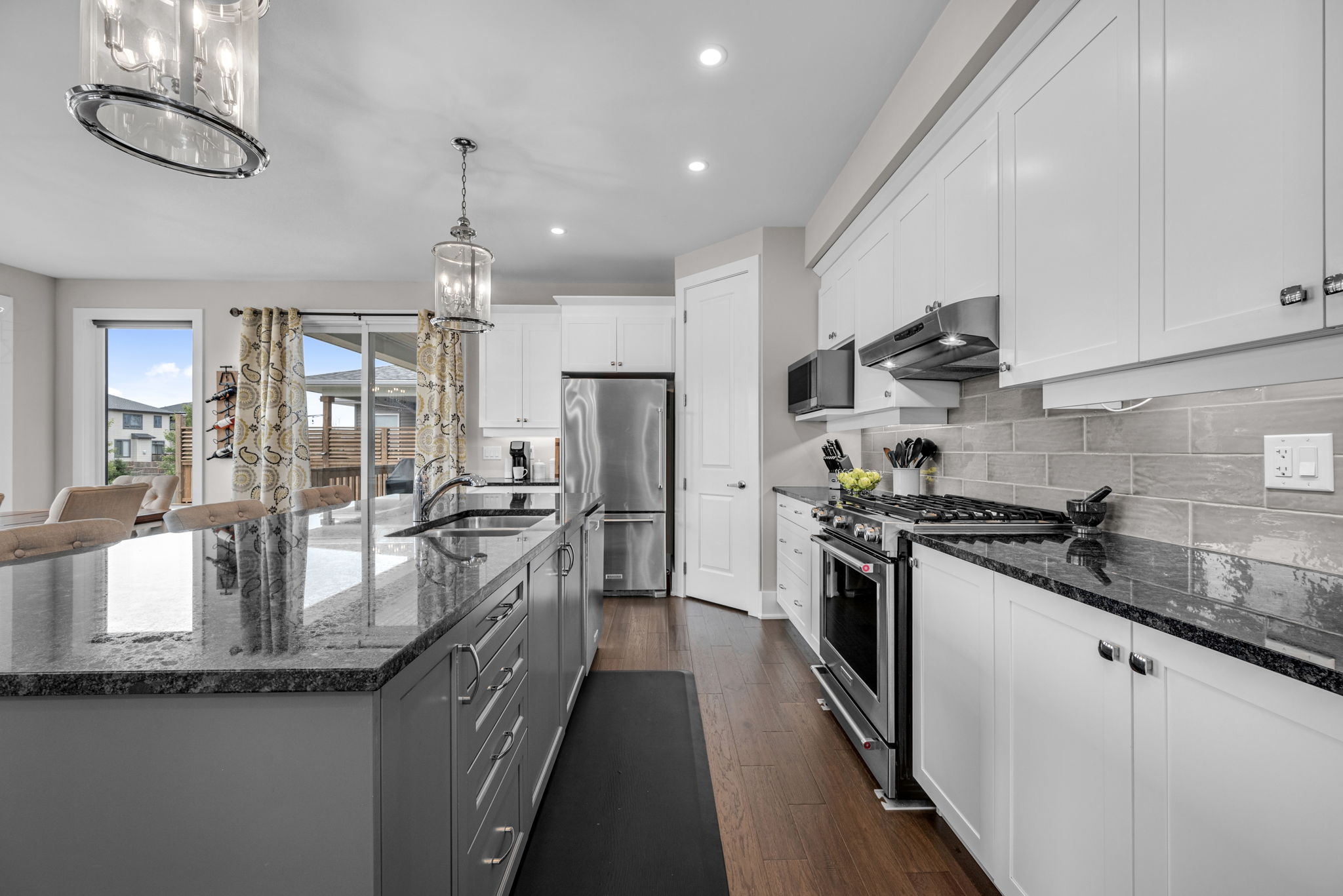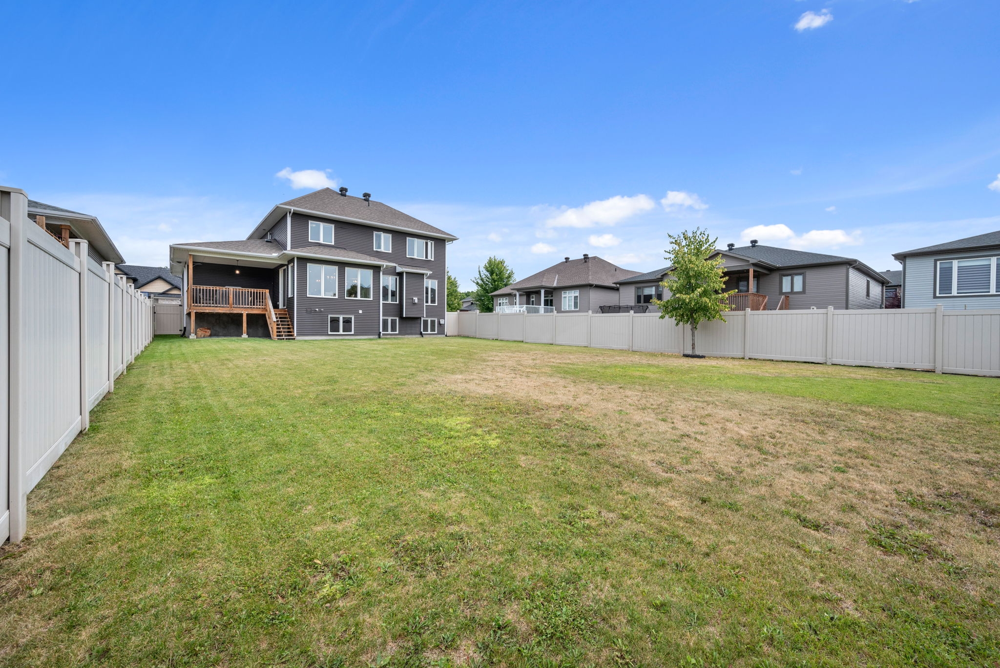Nestled on a premium cul-de-sac lot in the sought-after HighGate Subdivision, this beautifully appointed 4 bed + den, 3.5 bath home offers both comfort and sophistication. Built in 2017, it blends modern construction with thoughtful upgrades throughout. Step inside to an open-concept main floor filled with natural light, highlighted by hardwood floors, pot lights, and a warm, welcoming layout perfect for everyday living and entertaining. The spacious kitchen boasts granite countertops, generous cabinetry, and a bright, sunlit eating area overlooking the expansive backyard. Hardwood stairs lead to the upper level, where you'll find four generous bedrooms, including a primary suite with a walk-in closet and spa-inspired ensuite. A standout feature is the oversized second-floor laundry room flooded with natural light and providing ample space for storage and organization. The fully finished basement includes a full bathroom, offering additional living space for guests, hobbies, or a home gym. Outside, enjoy the professionally landscaped yard with a full irrigation system covering the front, back, and garden areas perfect for low- maintenance outdoor living. The deep lot offers space to unwind or entertain, and the quiet, family-friendly street adds to the appeal. Located just minutes from schools, parks, restaurants, and recreation with Mississippi Lake nearby for year-round activities this home offers the best of small-town living with easy access to the city.