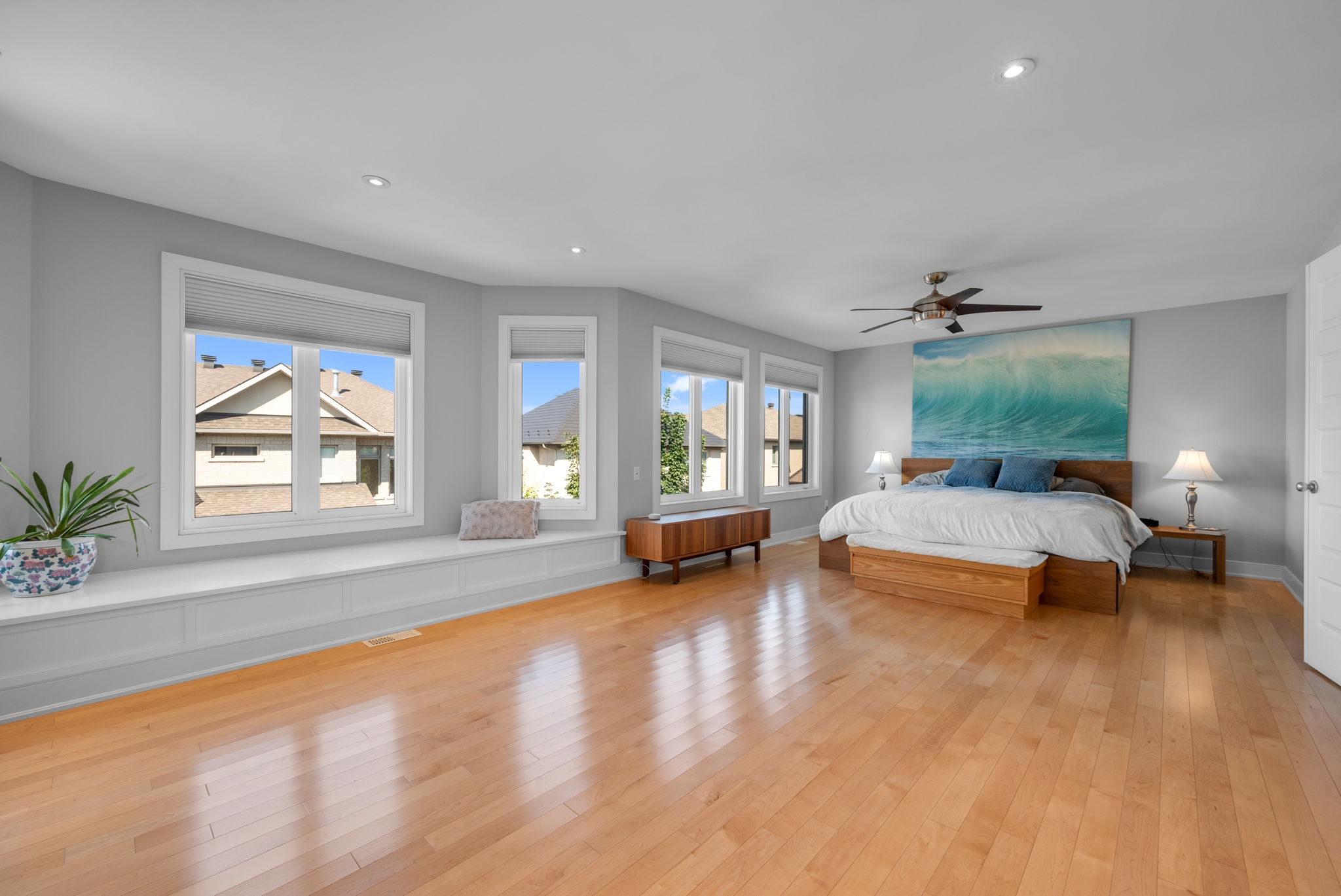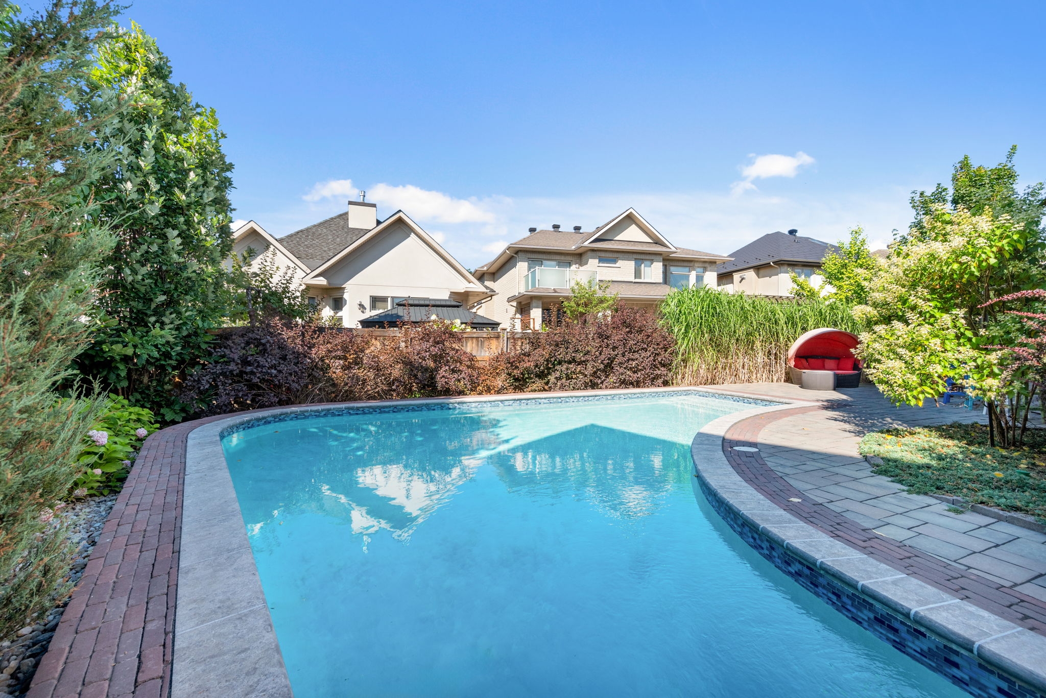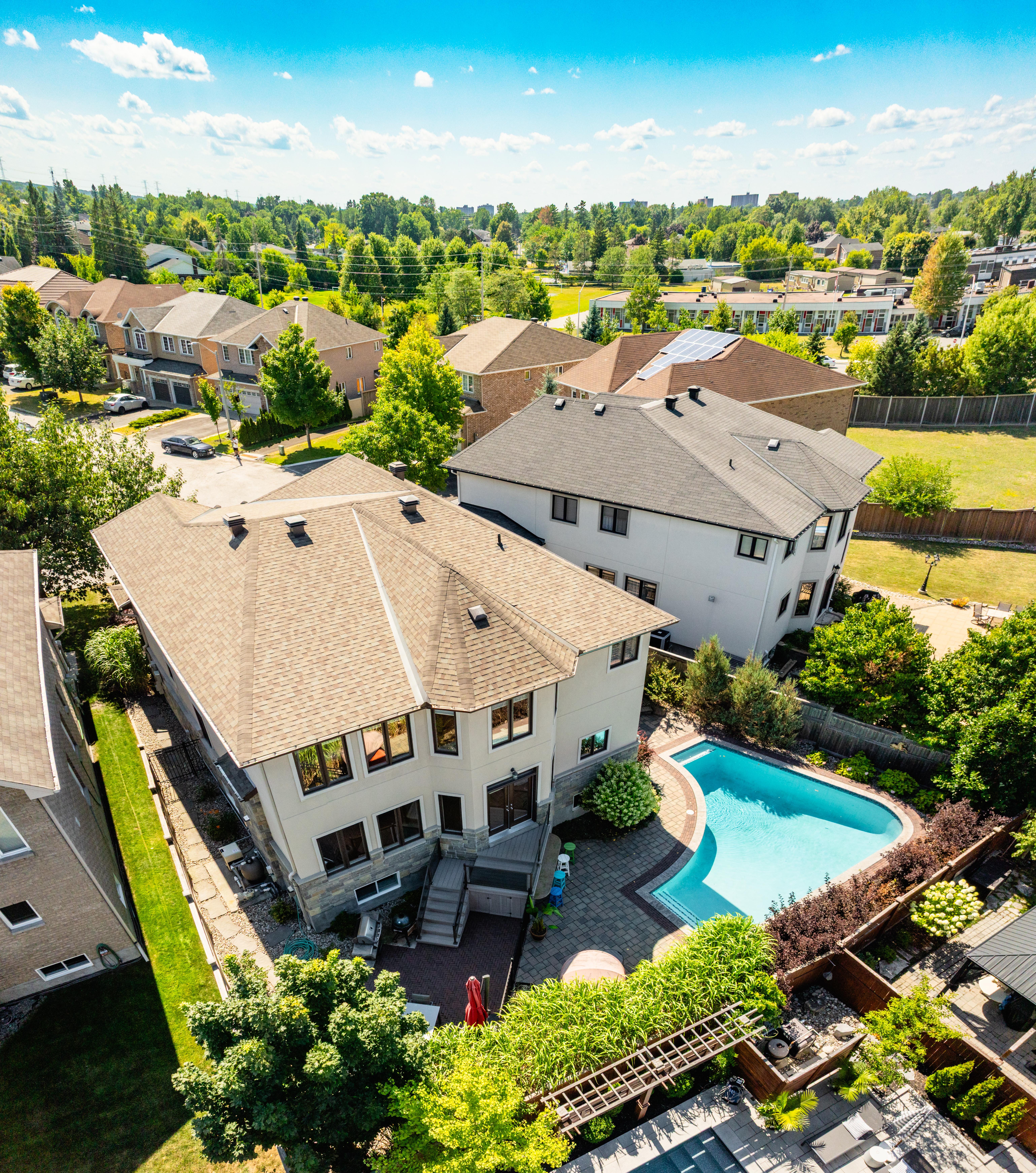 Experience the perfect blend of elegance and comfort in one of Ottawas most coveted, centrally located neighbourhoodsjust steps from Mooneys Bay, Moffat Farm, and NCC parkland. This exceptional custom-built home offers over 3,600 sq. ft. of thoughtfully designed living space where style meets functionality.Rich hardwood floors flow throughout a versatile layout featuring five bedrooms and five bathrooms. A bright, welcoming foyer opens to a private home office or den, while the formal living and dining rooms create the perfect space for formal entertaining. At the heart of the home lies the gourmet kitchen featuring quartz countertops, built-in appliances, bar seating, and a sun-filled breakfast nookflowing seamlessly into the inviting family room. Anchored by a beautiful stone fireplace, its an ideal space for relaxing with friends and family.Upstairs, the expansive primary suite boasts an inviting window seat, an updated 5-piece ensuite, and a walk-in closet. Two generous bedrooms connect through a Jack-and-Jill 5-piece bathroom, while a fourth bedroom enjoys a private ensuite perfect for guests or growing families. The fully finished lower level adds incredible versatility with direct mudroom access, making it ideal for older children or extended family. Here, you will find a large recreation room that is ideal for a home theatre, gym, or playroom, a fifth bedroom with a walk-in closet, a full 3-piece bathroom, and ample storage space.Outside, the backyard oasis is designed for ultimate enjoyment. A professionally landscaped retreat surrounds the shimmering saltwater Gunite pool with new heater, accented by extensive stonework, interlock paths, and mature privacy hedging. The private terrace and built-in BBQ area set the stage for lively summer entertaining or serene mornings by the pool.
