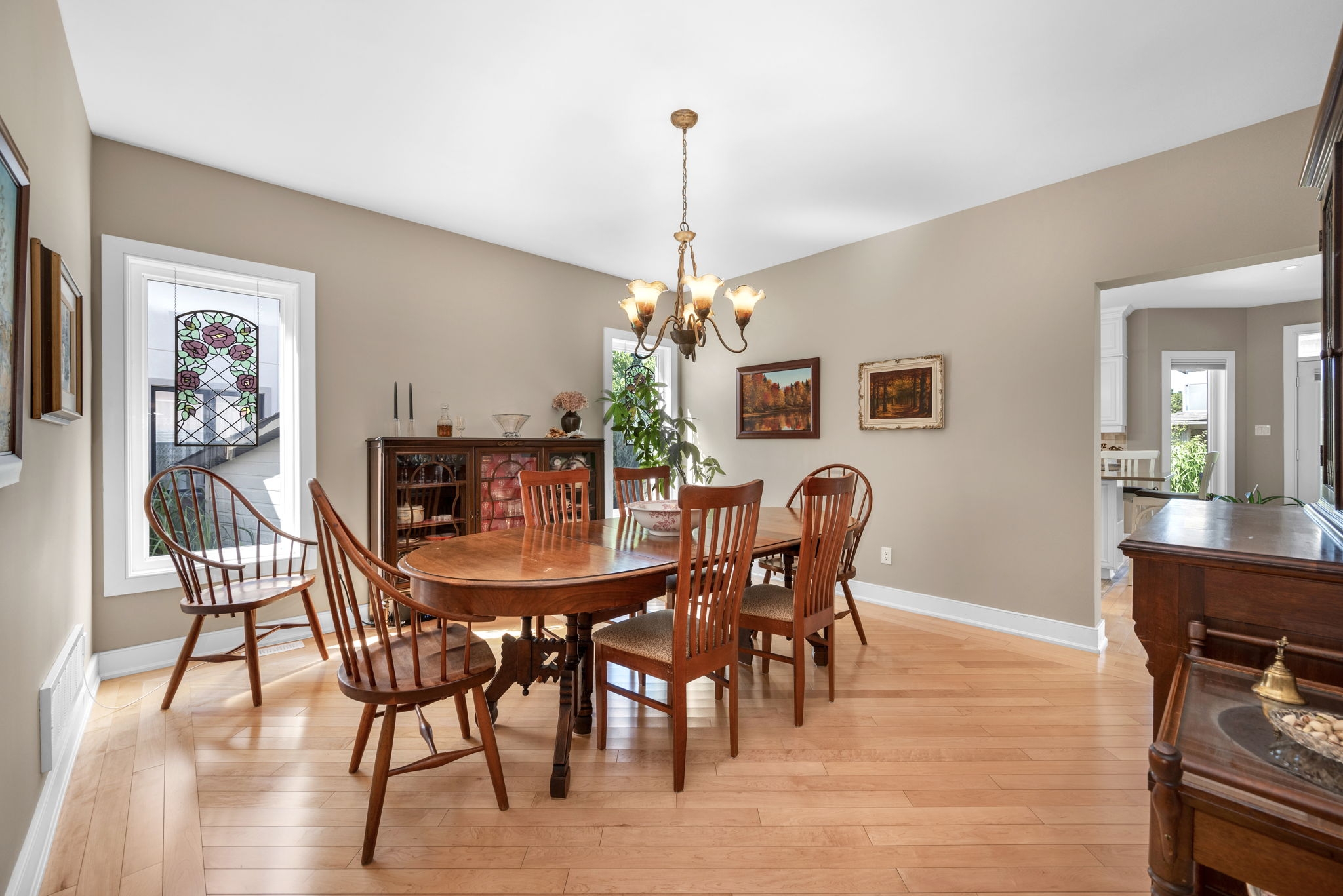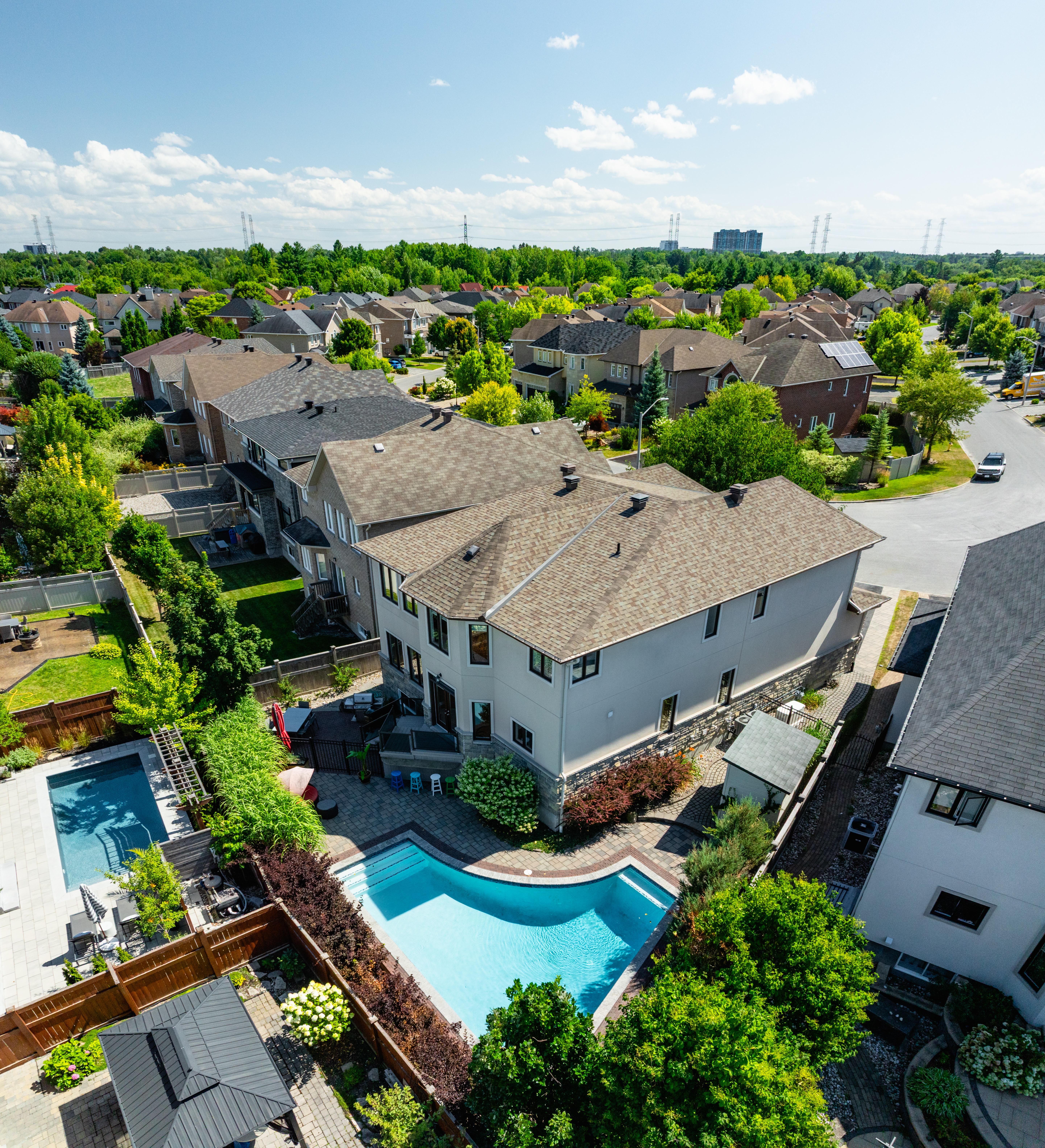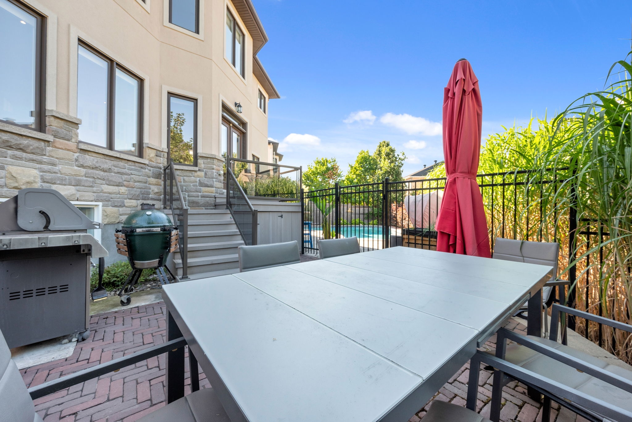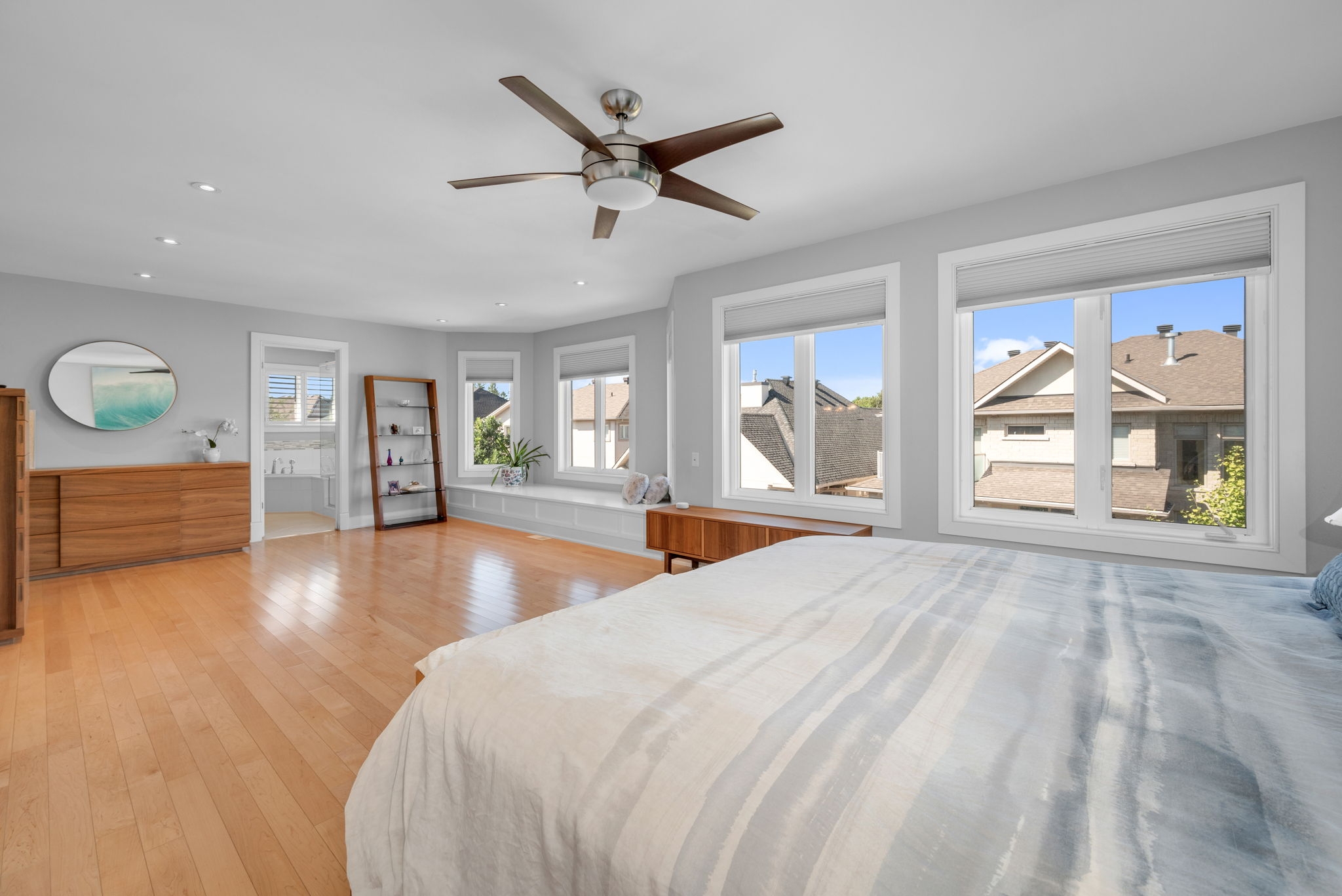Experience the perfect blend of elegance and comfort in one of Ottawas most coveted, centrally located neighbourhoodsjust steps from Mooneys Bay, Moffat Farm, and NCC parkland. This exceptional custom-built home offers over 3,600 sq. ft. of thoughtfully designed living space where style meets functionality.Rich hardwood floors flow throughout a versatile layout featuring five bedrooms and five bathrooms. A bright, welcoming foyer opens to a private home office or den, while the formal living and dining rooms create the perfect space for formal entertaining. At the heart of the home lies the gourmet kitchen featuring quartz countertops, built-in appliances, bar seating, and a sun-filled breakfast nookflowing seamlessly into the inviting family room. Anchored by a beautiful stone fireplace, its an ideal space for relaxing with friends and family.Upstairs, the expansive primary suite boasts an inviting window seat, an updated 5-piece ensuite, and a walk-in closet. Two generous bedrooms connect through a Jack-and-Jill 5-piece bathroom, while a fourth bedroom enjoys a private ensuite perfect for guests or growing families. The fully finished lower level adds incredible versatility with direct mudroom access, making it ideal for older children or extended family. Here, you will find a large recreation room that is ideal for a home theatre, gym, or playroom, a fifth bedroom with a walk-in closet, a full 3-piece bathroom, and ample storage space.Outside, the backyard oasis is designed for ultimate enjoyment. A professionally landscaped retreat surrounds the shimmering saltwater Gunite pool with new heater, accented by extensive stonework, interlock paths, and mature privacy hedging. The private terrace and built-in BBQ area set the stage for lively summer entertaining or serene mornings by the pool.