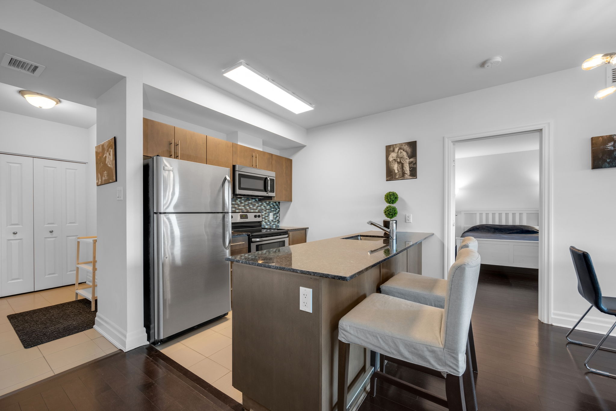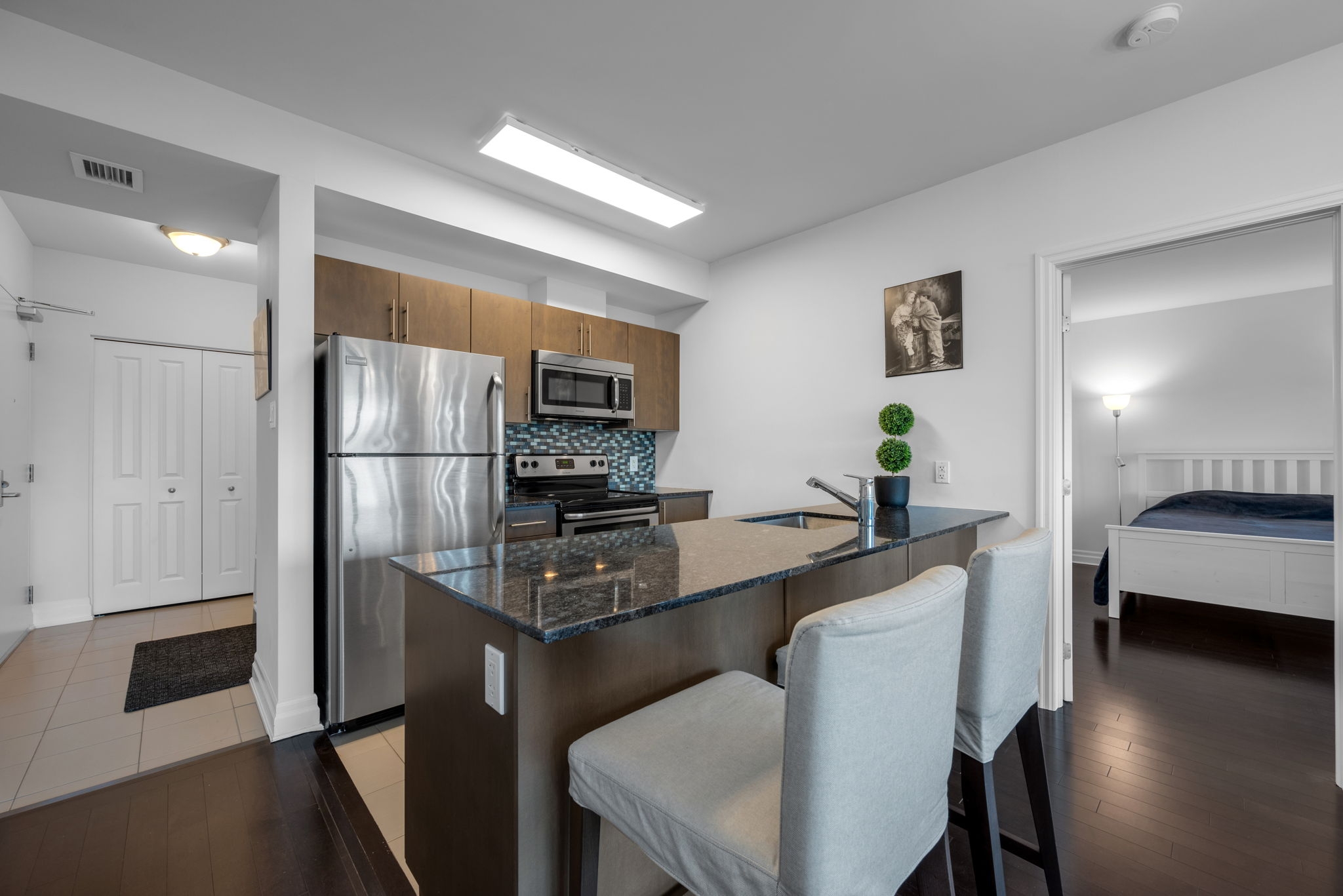 Welcome to this stylish and furnished two-bedroom, two-bathroom condo that perfectly blends comfort, flexibility, and modern elegance. Flooded with natural light from expansive windows, this bright and airy condo offers views of the city skyline.The sleek kitchen is a showstopper, featuring granite countertops, stainless steel appliances, and a breakfast bar ideal for casual dining or entertaining. The open-concept layout seamlessly connects the kitchen, dining, and living areas, leading to a private balcony-your own perfect spot to unwind and take in the view. Beautiful hardwood flooring runs throughout, adding warmth and sophistication. The spacious primary bedroom boasts a walk-in closet and a private ensuite, while the second bedroom and full bath offer flexibility for guests, a home office, or additional living space. Enjoy an exceptional lifestyle with access to premium building amenities, including a fitness centre, indoor pool, and party room. All of this just steps from scenic walking and biking trails, the boutiques and cafés of Beechwood Village, and minutes from the ByWard Market and downtown Ottawa.