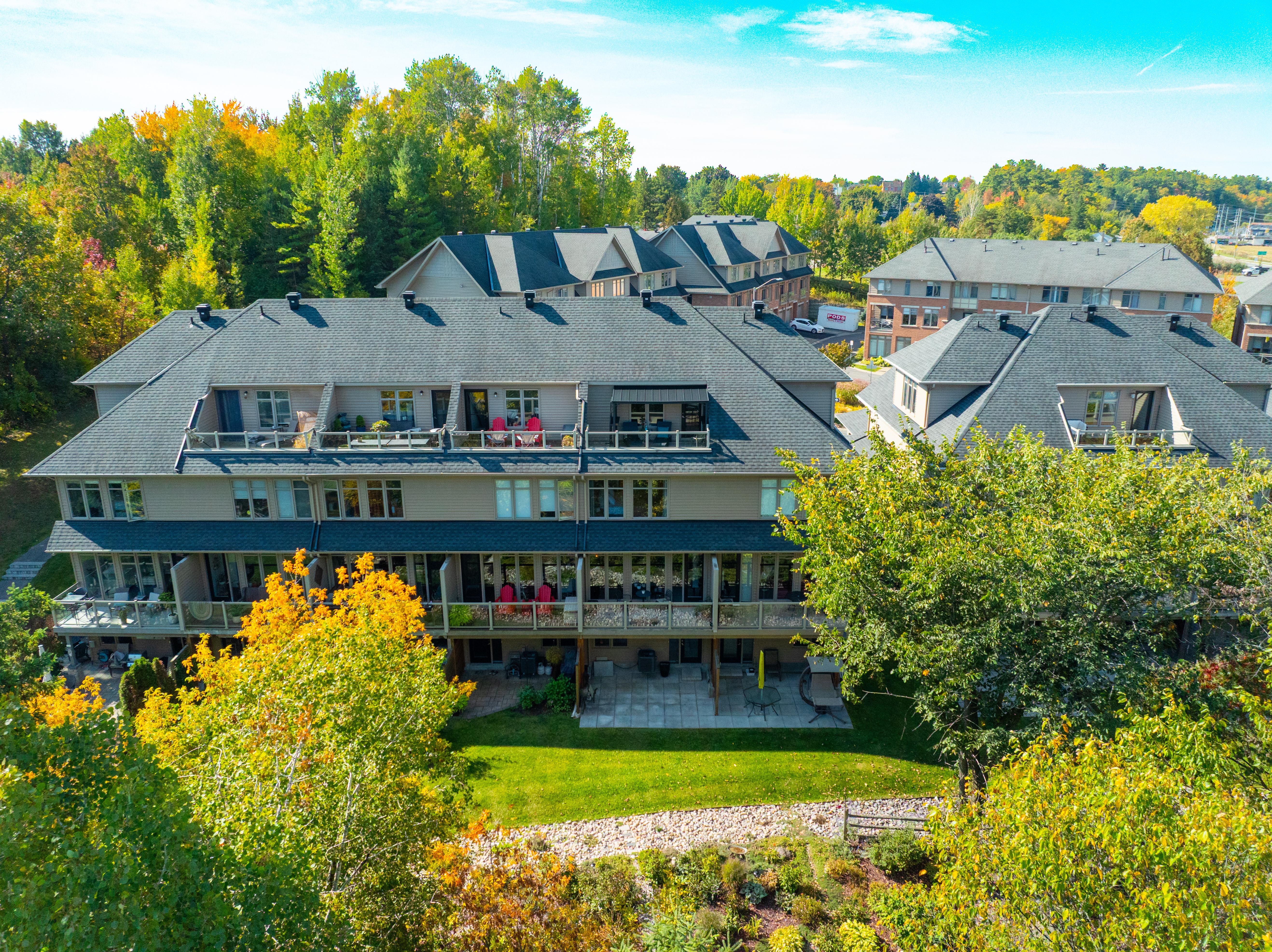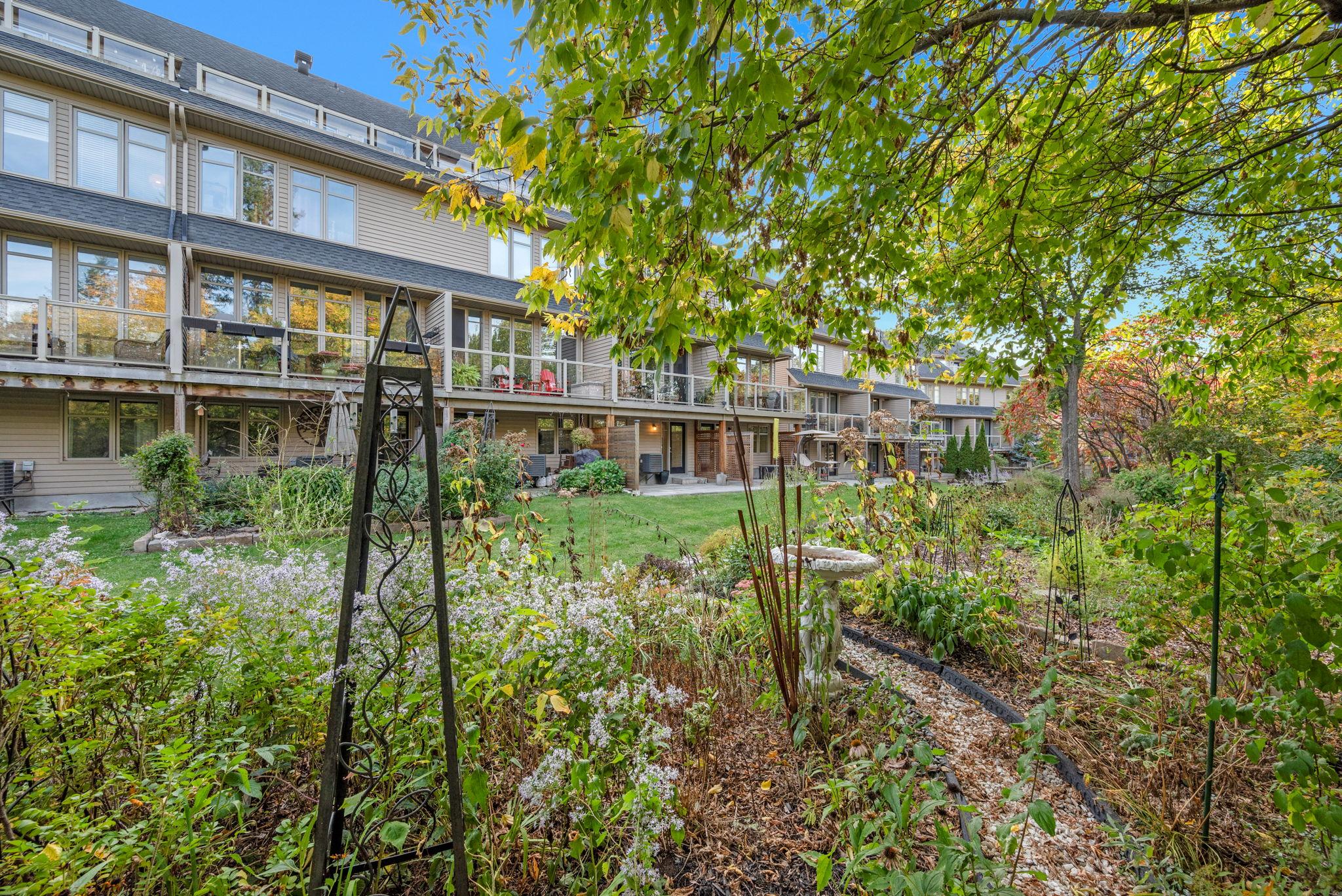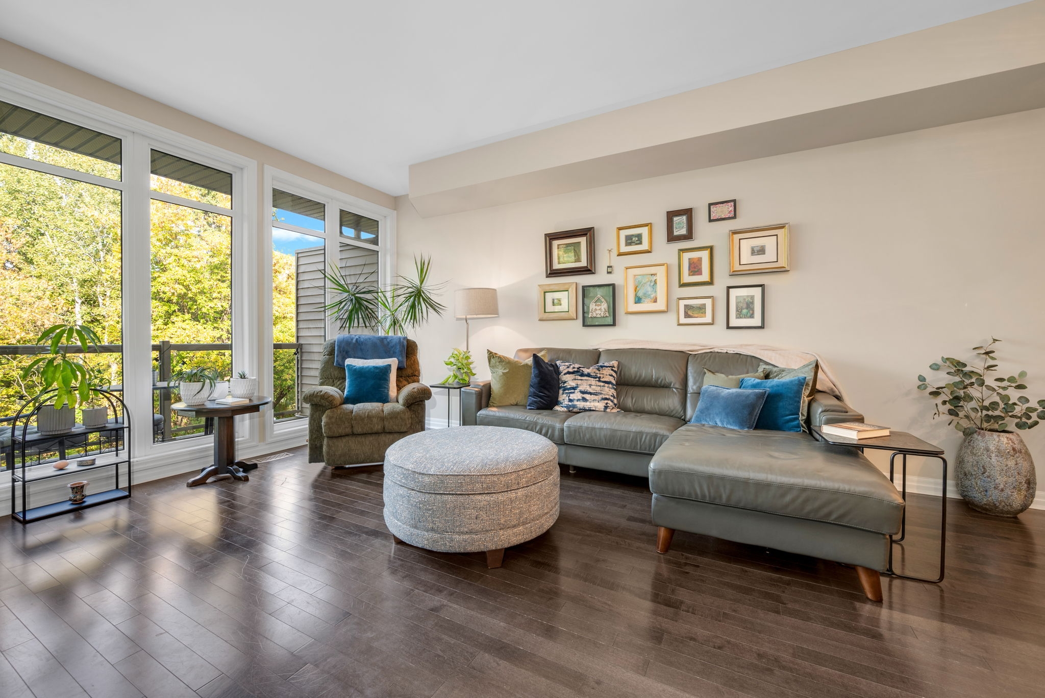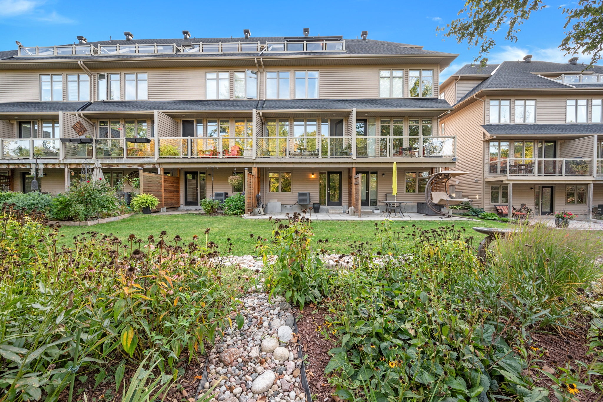 Welcome to 49 Aveia Private, a truly unique townhome located on a quiet cul-de-sac with no rear neighbours and 3 large outdoor spaces overlooking Cardinal Creek Ravine. Designed for versatility by the renowned architect Barry Hobin. As you enter, you'll be greeted by soaring high ceilings and floor-to-ceiling windows that flood the space with light. The open-concept main floor is ideal for both relaxing and entertaining. The spacious kitchen with views of nature makes meal prep a true joy. The adjoining dining and living areas as well as the spacious covered deck provide the perfect setting for both hosting guests and enjoying quiet evenings at home. On the second level you'll find the serene primary suite, a true retreat featuring soaring ravine views, double closets and a spa-inspired 5-piece ensuite. The second bedroom includes a 4-piece ensuite bath and a walk-in closet which easily accommodates a workspace. The convenient second-floor laundry rounds out this level. The impressive third-floor loft, also with its own 4-piece ensuite, opens onto a large rooftop terrace with gazebo. The expansive and serene treetop views make this level a wonderful den, gym, or bedroom. Finally, the walk-out lower level features a den area and a family room which opens to another outdoor space, featuring a large stone patio. This level has large windows, lots of storage space, and is ready to accommodate a 5th bathroom if desired. Additional highlights include a main floor powder room, inside entry to an insulated garage with wall panel storage, and instant tankless hot water. The private road is professionally managed, fees cover snow removal, road upkeep, and lawn care, offering truly low-maintenance living. Located just steps from the LRT and a short stroll from parks, shops, and restaurants, this home delivers an unmatched lifestyle. Embrace the perfect blend of nature and convenience!