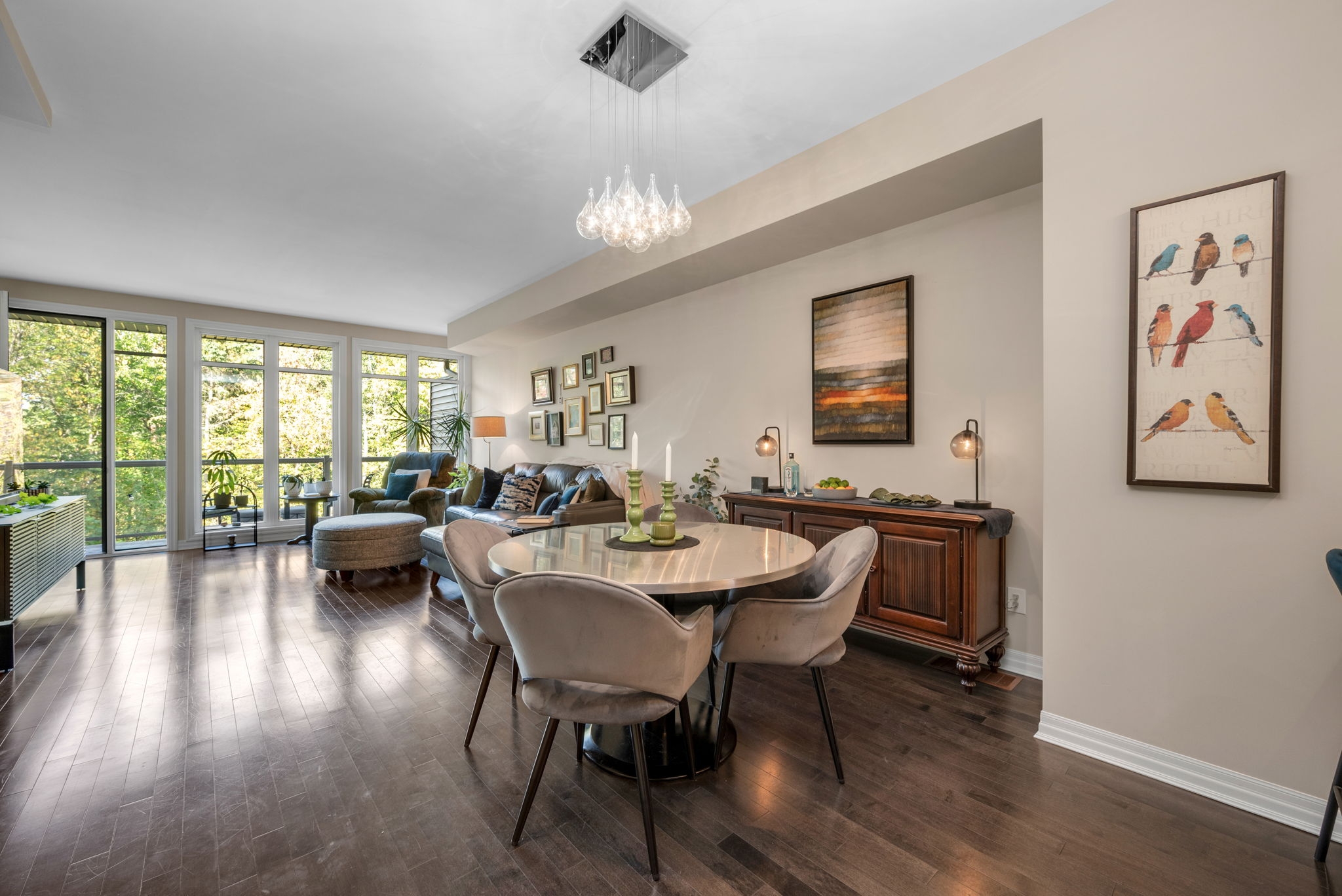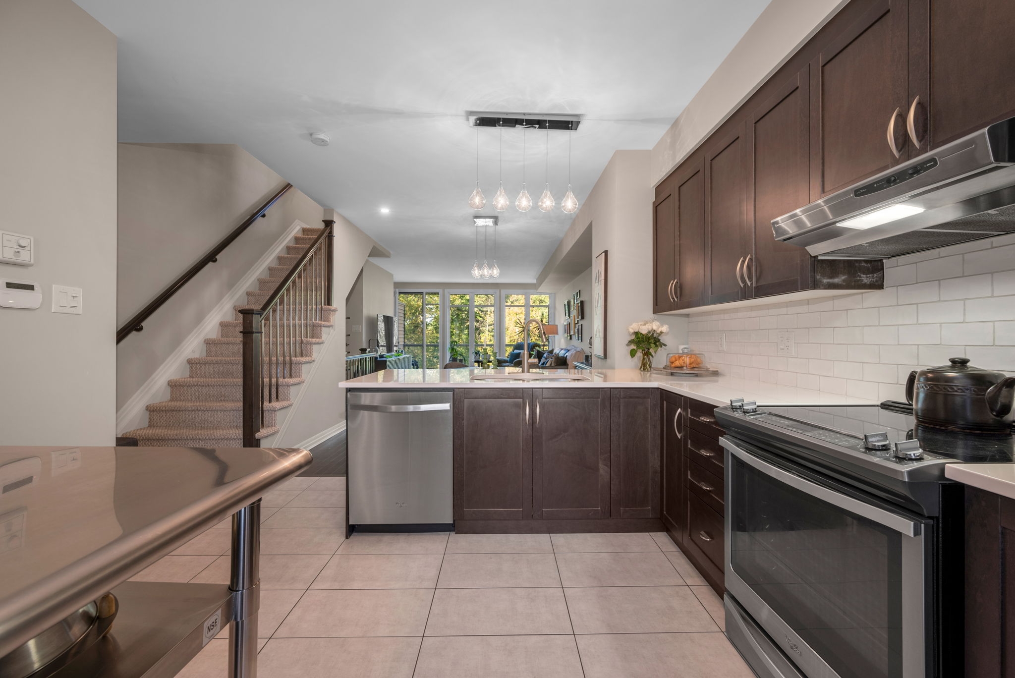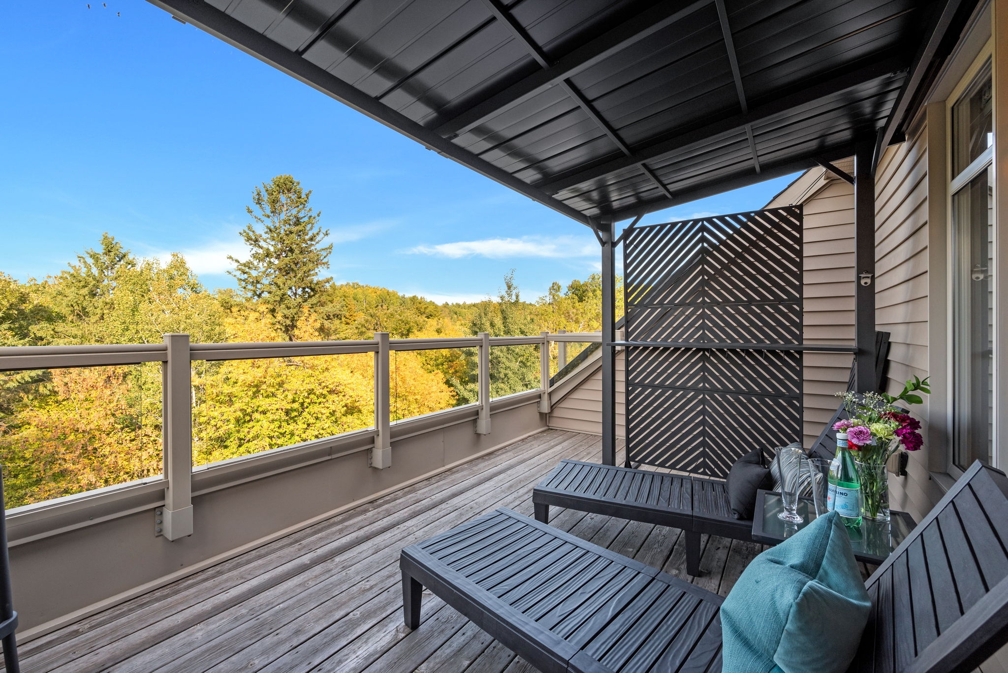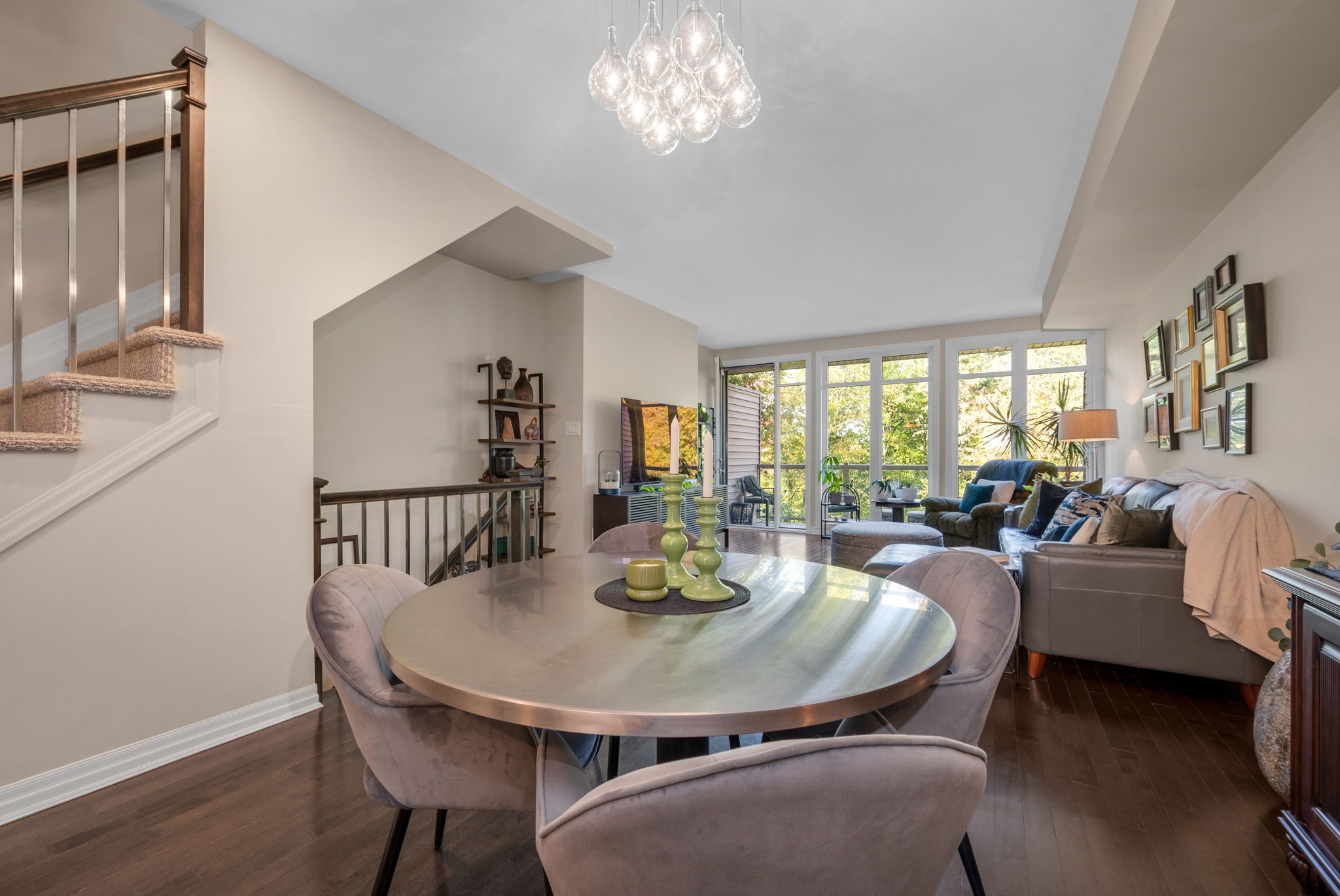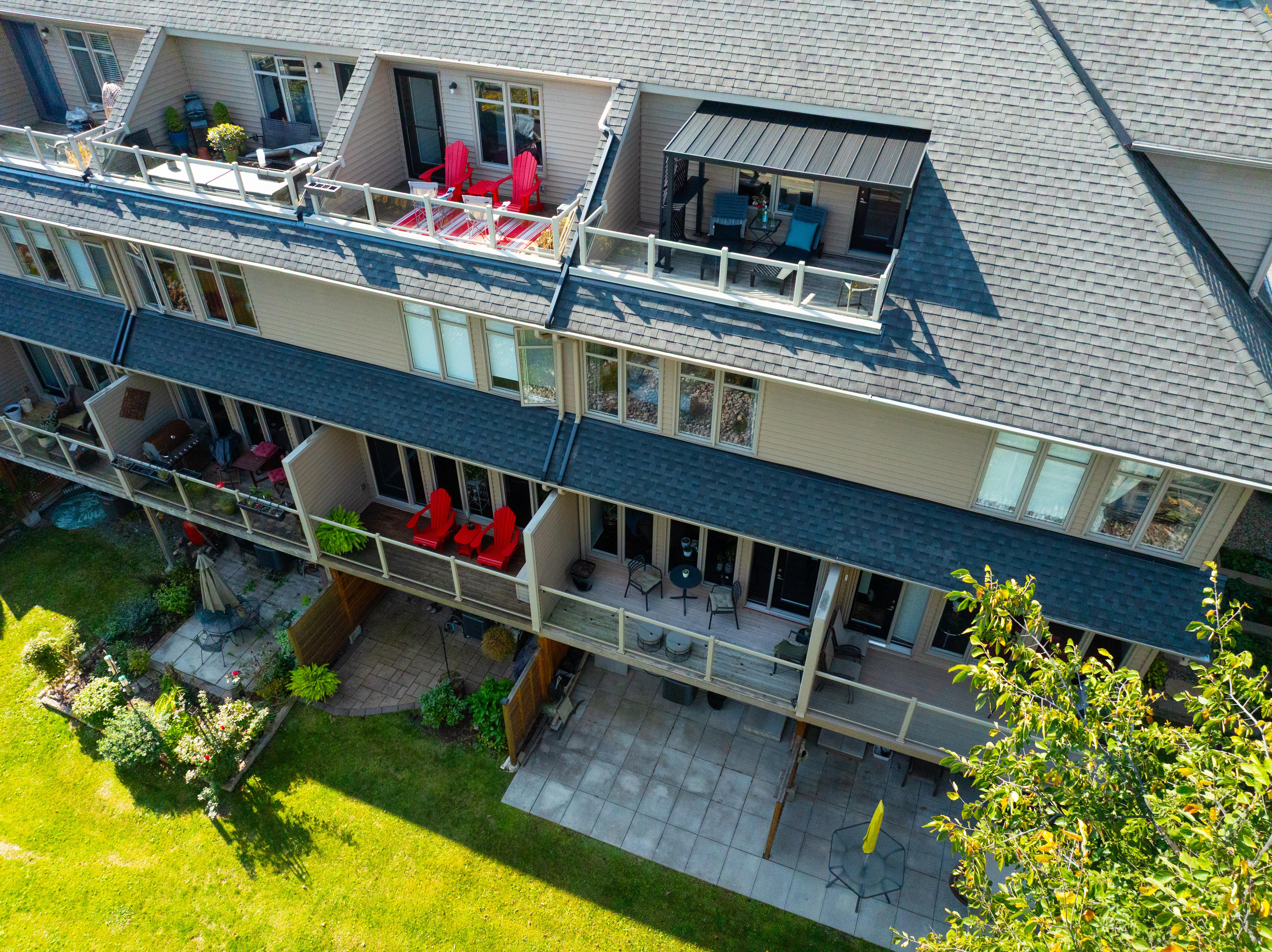 Welcome to 49 Aveia Private, a truly unique townhome located on a quiet cul-de-sac with no rear neighbours and 3 large outdoor spaces overlooking Cardinal Creek Ravine. Designed for versatility by the renowned architect Barry Hobin. As you enter, you'll be greeted by soaring high ceilings and floor-to-ceiling windows that flood the space with light. The open-concept main floor is ideal for both relaxing and entertaining. The spacious kitchen with views of nature makes meal prep a true joy. The adjoining dining and living areas as well as the spacious covered deck provide the perfect setting for both hosting guests and enjoying quiet evenings at home. On the second level you'll find the serene primary suite, a true retreat featuring soaring ravine views, double closets and a spa-inspired 5-piece ensuite. The second bedroom includes a 4-piece ensuite bath and a walk-in closet which easily accommodates a workspace. The convenient second-floor laundry rounds out this level. The impressive third-floor loft, also with its own 4-piece ensuite, opens onto a large rooftop terrace with gazebo. The expansive and serene treetop views make this level a wonderful den, gym, or bedroom. Finally, the walk-out lower level features a den area and a family room which opens to another outdoor space, featuring a large stone patio. This level has large windows, lots of storage space, and is ready to accommodate a 5th bathroom if desired. Additional highlights include a main floor powder room, inside entry to an insulated garage with wall panel storage, and instant tankless hot water. The private road is professionally managed, fees cover snow removal, road upkeep, and lawn care, offering truly low-maintenance living. Located just steps from the LRT and a short stroll from parks, shops, and restaurants, this home delivers an unmatched lifestyle. Embrace the perfect blend of nature and convenience!