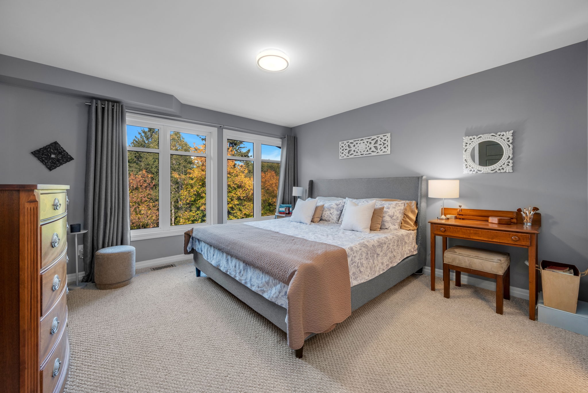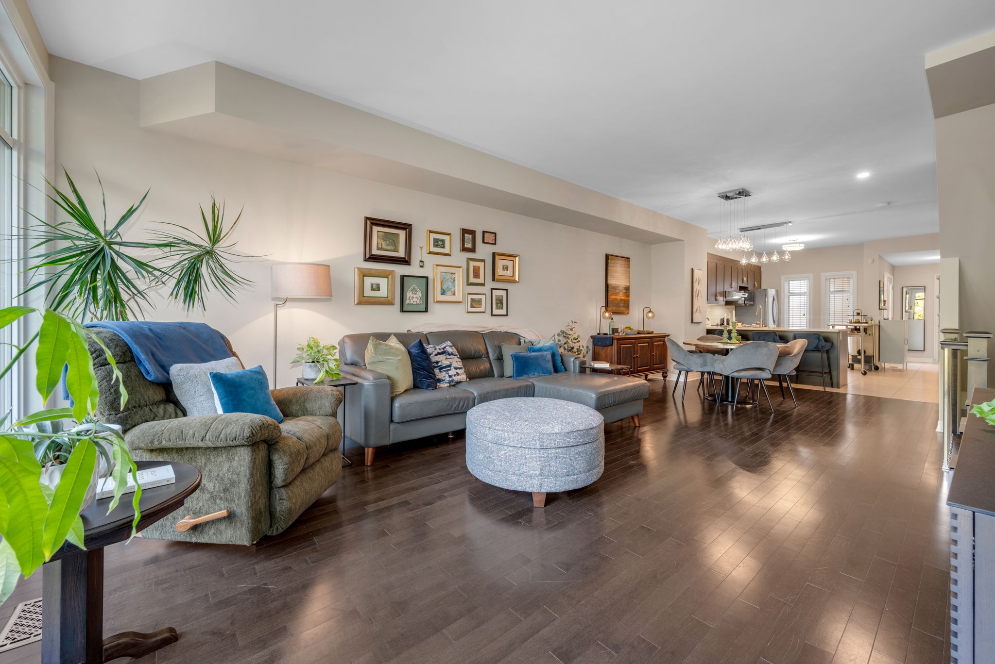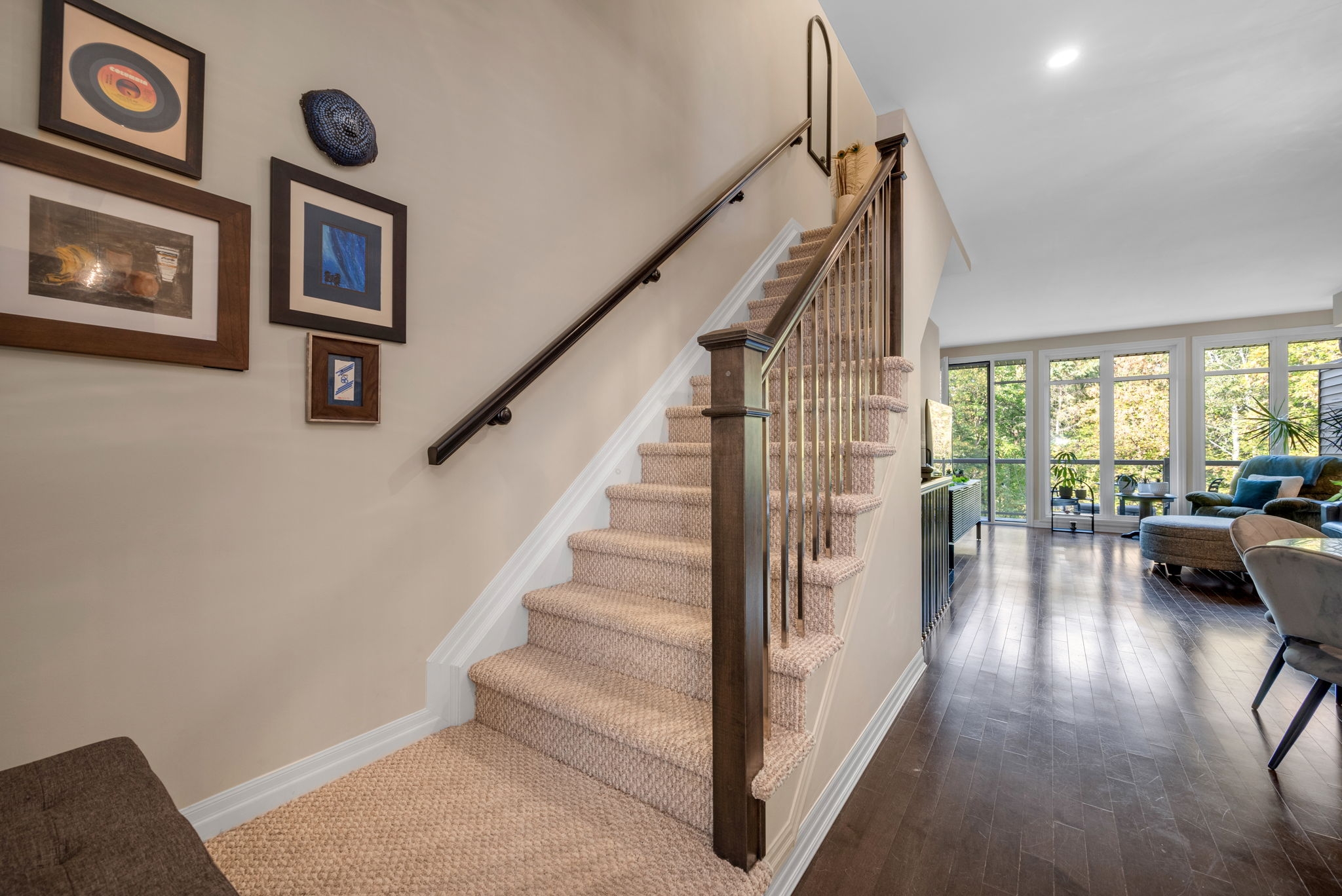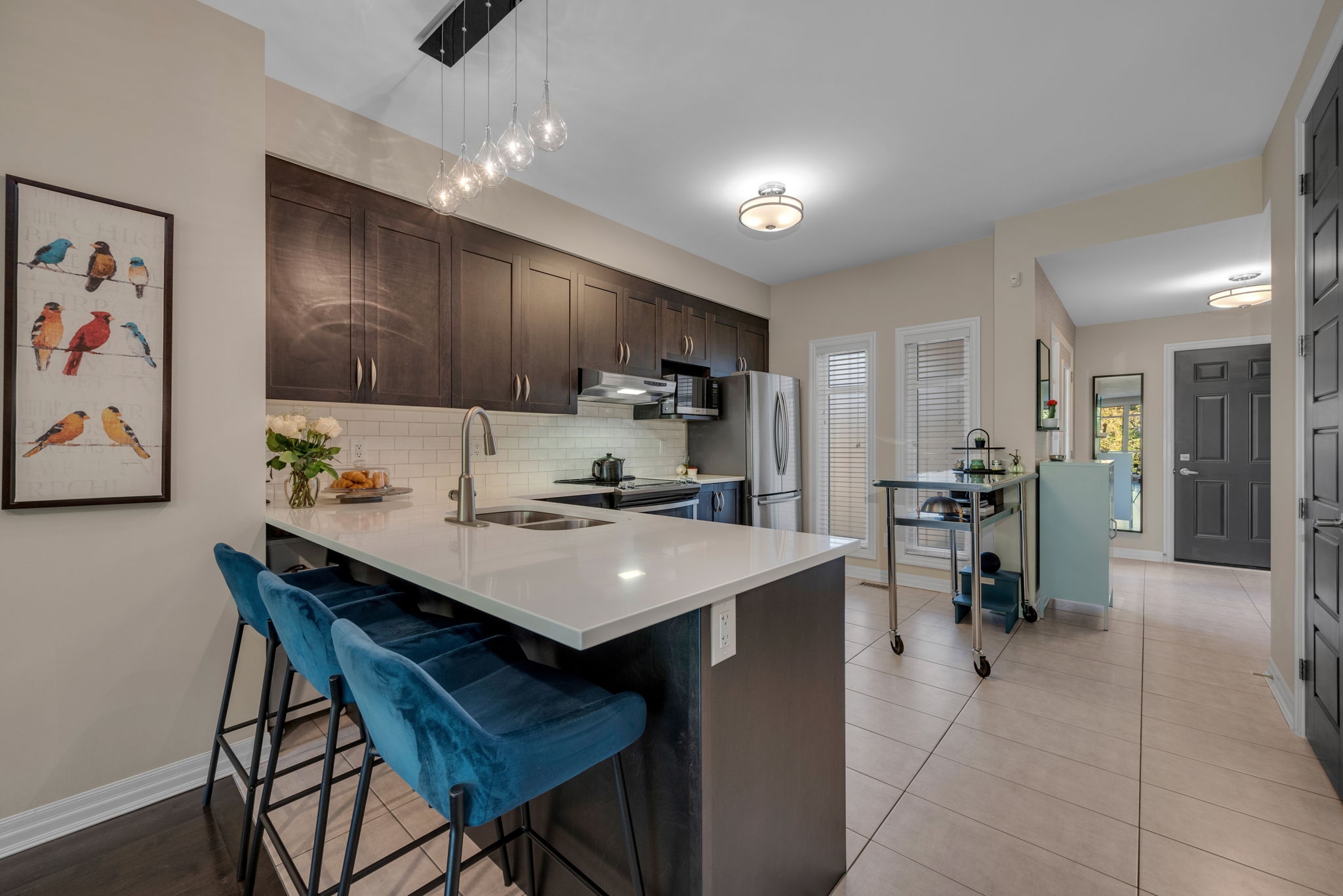 Welcome to 49 Aveia Private, a truly unique townhome located on a quiet cul-de-sac with no rear neighbours and 3 large outdoor spaces overlooking Cardinal Creek Ravine. Designed for versatility by the renowned architect Barry Hobin. As you enter, you'll be greeted by soaring high ceilings and floor-to-ceiling windows that flood the space with light. The open-concept main floor is ideal for both relaxing and entertaining. The spacious kitchen with views of nature makes meal prep a true joy. The adjoining dining and living areas as well as the spacious covered deck provide the perfect setting for both hosting guests and enjoying quiet evenings at home. On the second level you'll find the serene primary suite, a true retreat featuring soaring ravine views, double closets and a spa-inspired 5-piece ensuite. The second bedroom includes a 4-piece ensuite bath and a walk-in closet which easily accommodates a workspace. The convenient second-floor laundry rounds out this level. The impressive third-floor loft, also with its own 4-piece ensuite, opens onto a large rooftop terrace with gazebo. The expansive and serene treetop views make this level a wonderful den, gym, or bedroom. Finally, the walk-out lower level features a den area and a family room which opens to another outdoor space, featuring a large stone patio. This level has large windows, lots of storage space, and is ready to accommodate a 5th bathroom if desired. Additional highlights include a main floor powder room, inside entry to an insulated garage with wall panel storage, and instant tankless hot water. The private road is professionally managed, fees cover snow removal, road upkeep, and lawn care, offering truly low-maintenance living. Located just steps from the LRT and a short stroll from parks, shops, and restaurants, this home delivers an unmatched lifestyle. Embrace the perfect blend of nature and convenience!