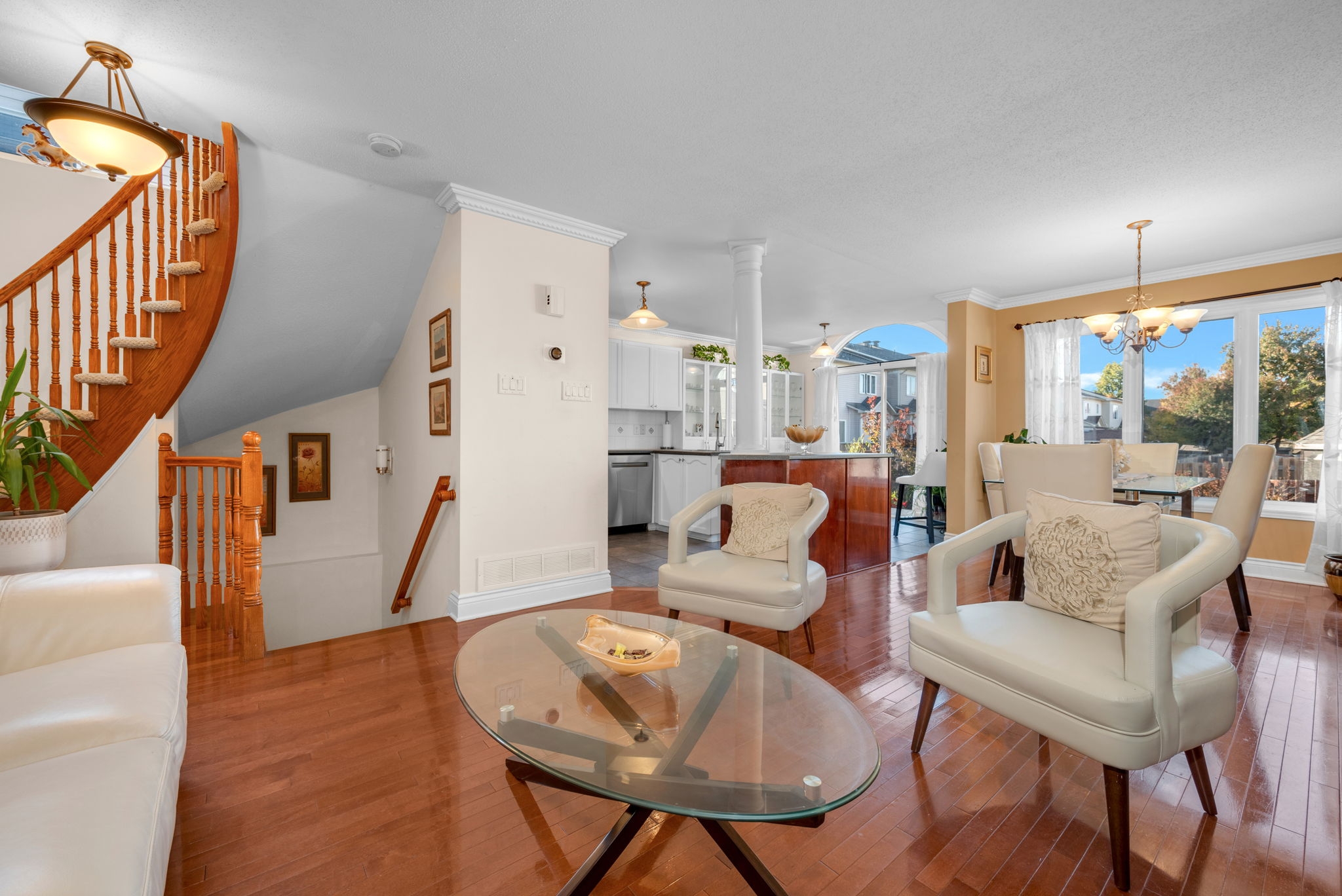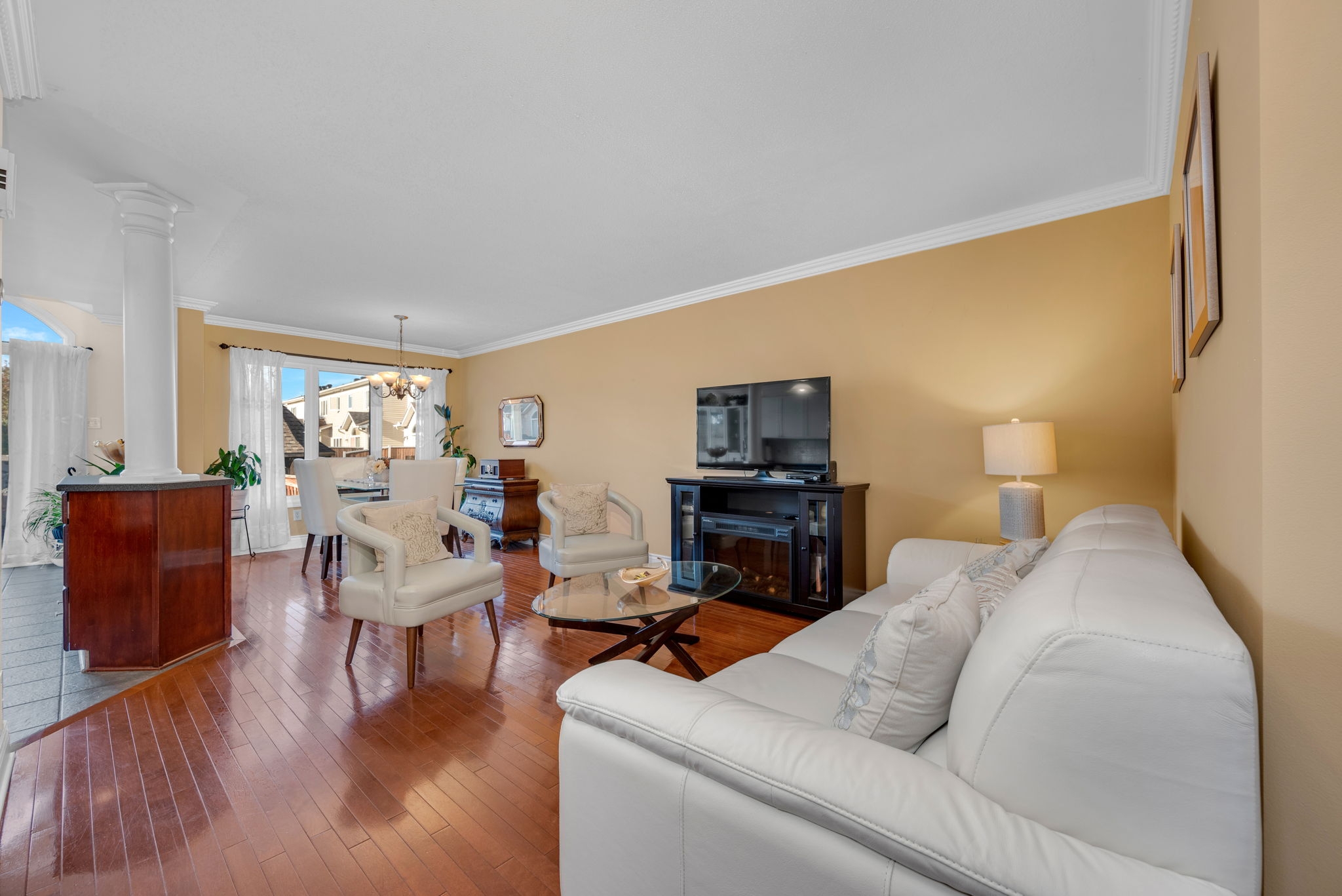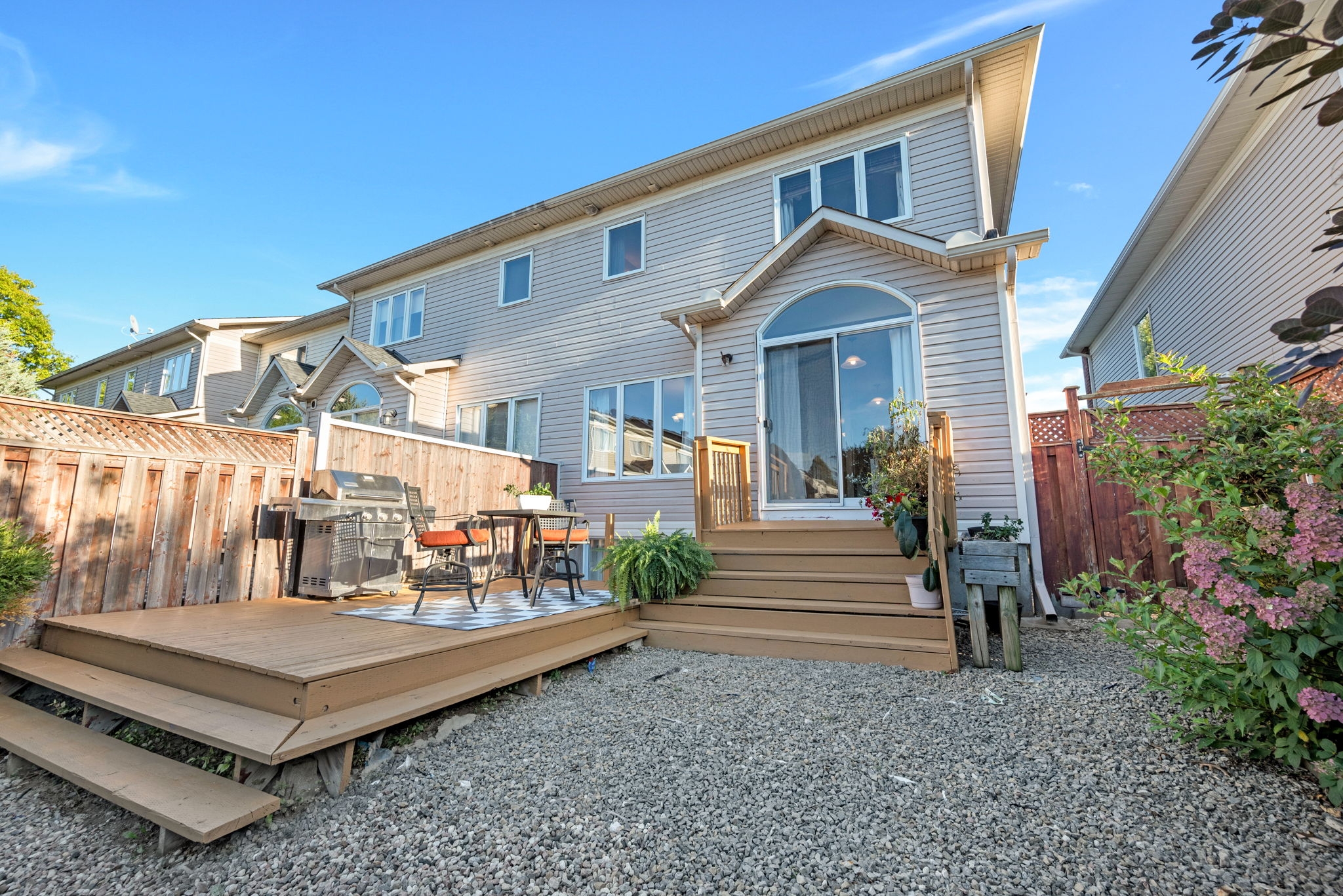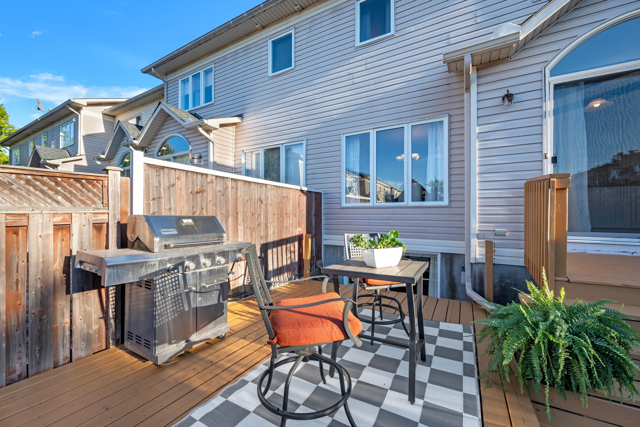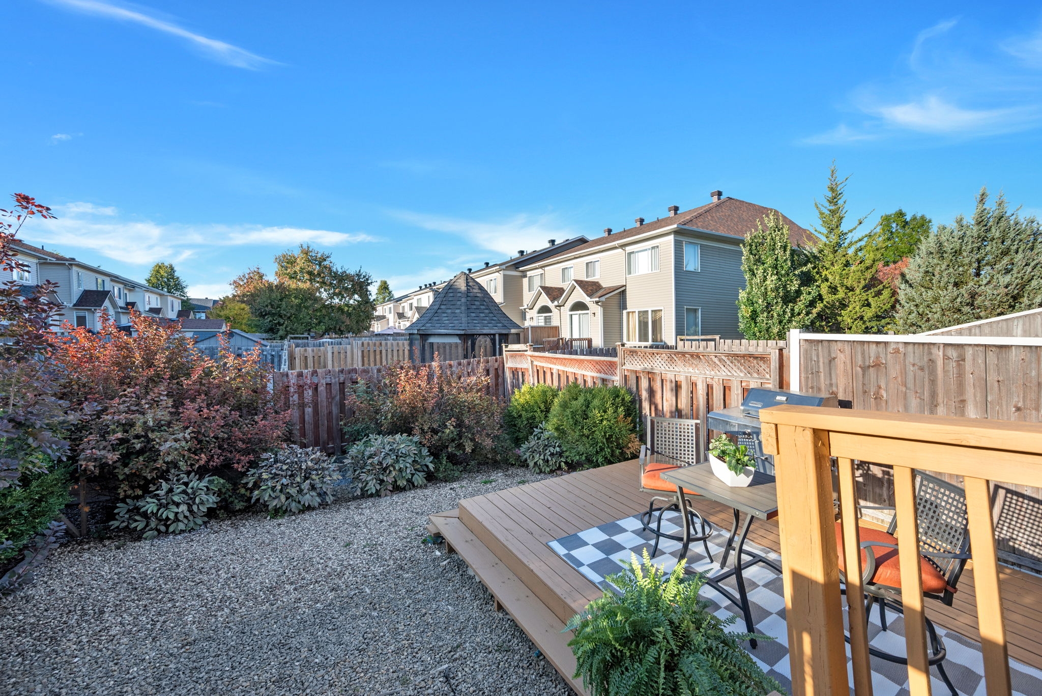 Step into this bright and beautifully maintained END UNIT 3-bedroom townhome, perfectly located in the heart of Avalon, just steps from the pond, parks, schools, shopping, and transit! This popular open-concept main floor features gleaming hardwood, spacious living and dining areas, and a bright eat-in kitchen with an island and access to the landscaped backyard with deck, perfect for outdoor entertaining. Upstairs, you will discover hardwood floors throughout, updated carpet on the stairs, a generous primary bedroom with walk-in closet and 4-piece ensuite, plus two additional bedrooms and a full bathroom. The finished lower level adds great bonus space for a growing household with laminate flooring, a cozy gas fireplace, laundry, and plenty of storage.
