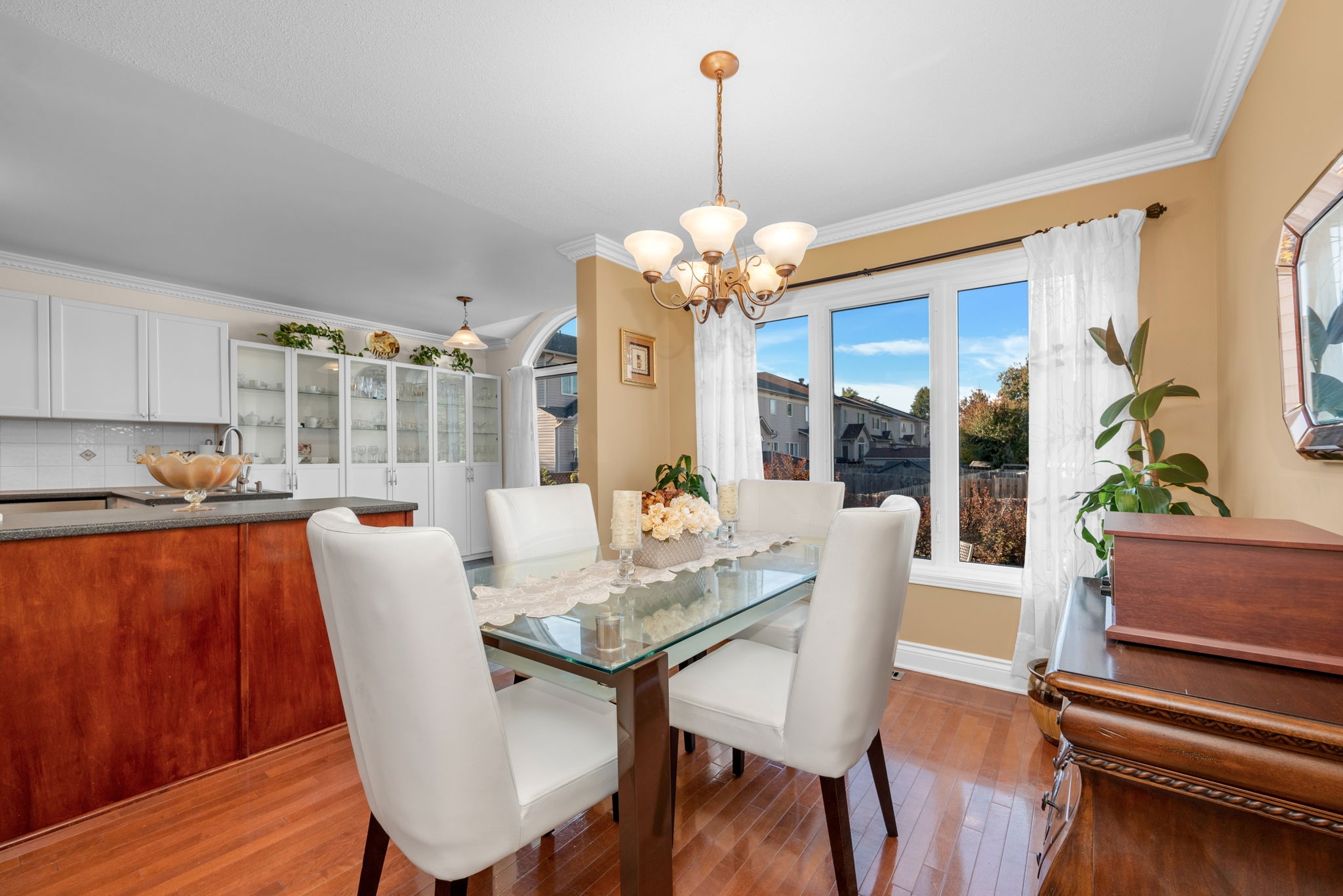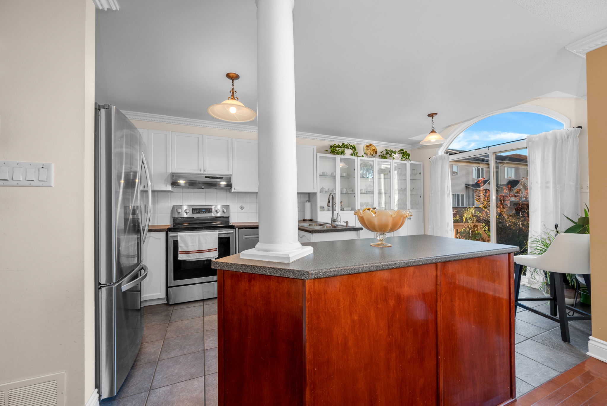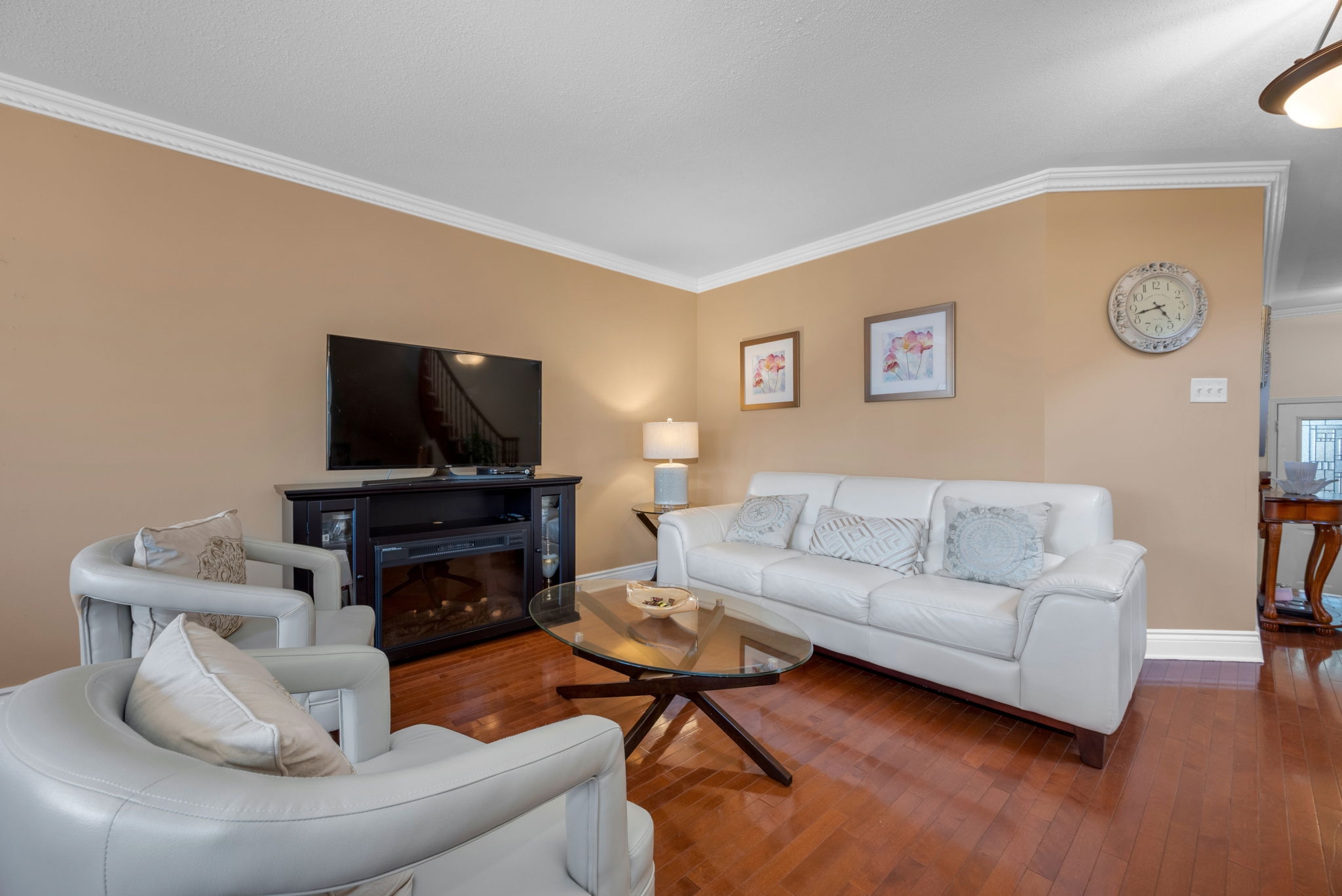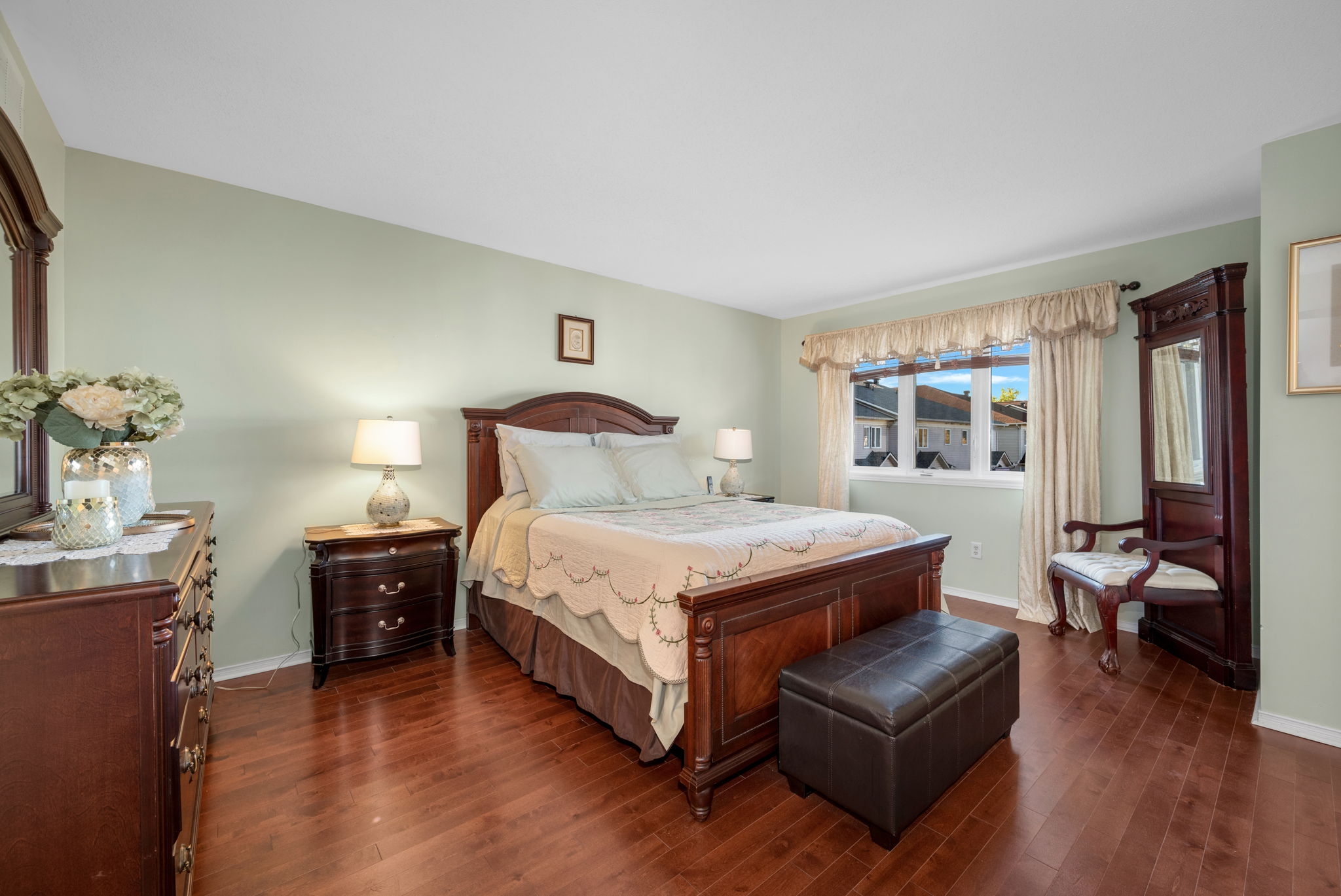 Step into this bright and beautifully maintained END UNIT 3-bedroom townhome, perfectly located in the heart of Avalon, just steps from the pond, parks, schools, shopping, and transit! This popular open-concept main floor features gleaming hardwood, spacious living and dining areas, and a bright eat-in kitchen with an island and access to the landscaped backyard with deck, perfect for outdoor entertaining. Upstairs, you will discover hardwood floors throughout, updated carpet on the stairs, a generous primary bedroom with walk-in closet and 4-piece ensuite, plus two additional bedrooms and a full bathroom. The finished lower level adds great bonus space for a growing household with laminate flooring, a cozy gas fireplace, laundry, and plenty of storage.