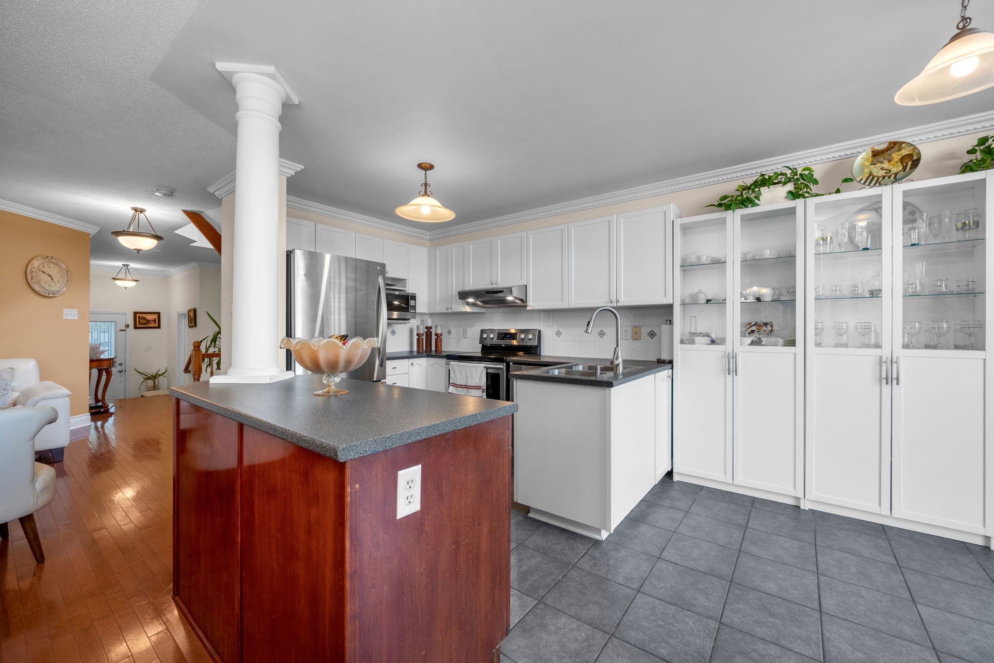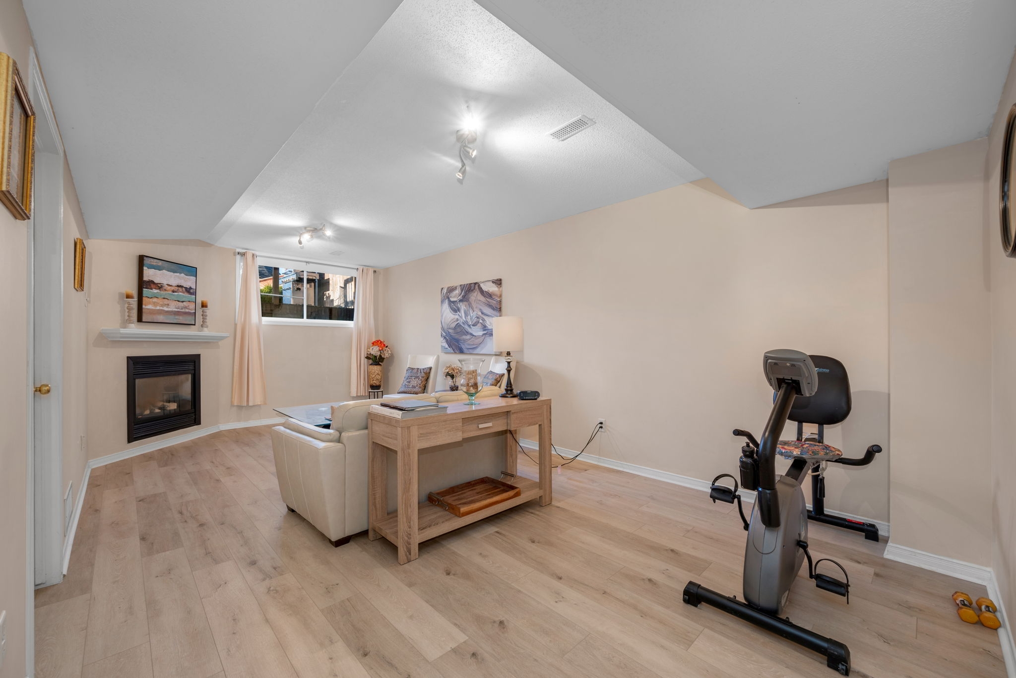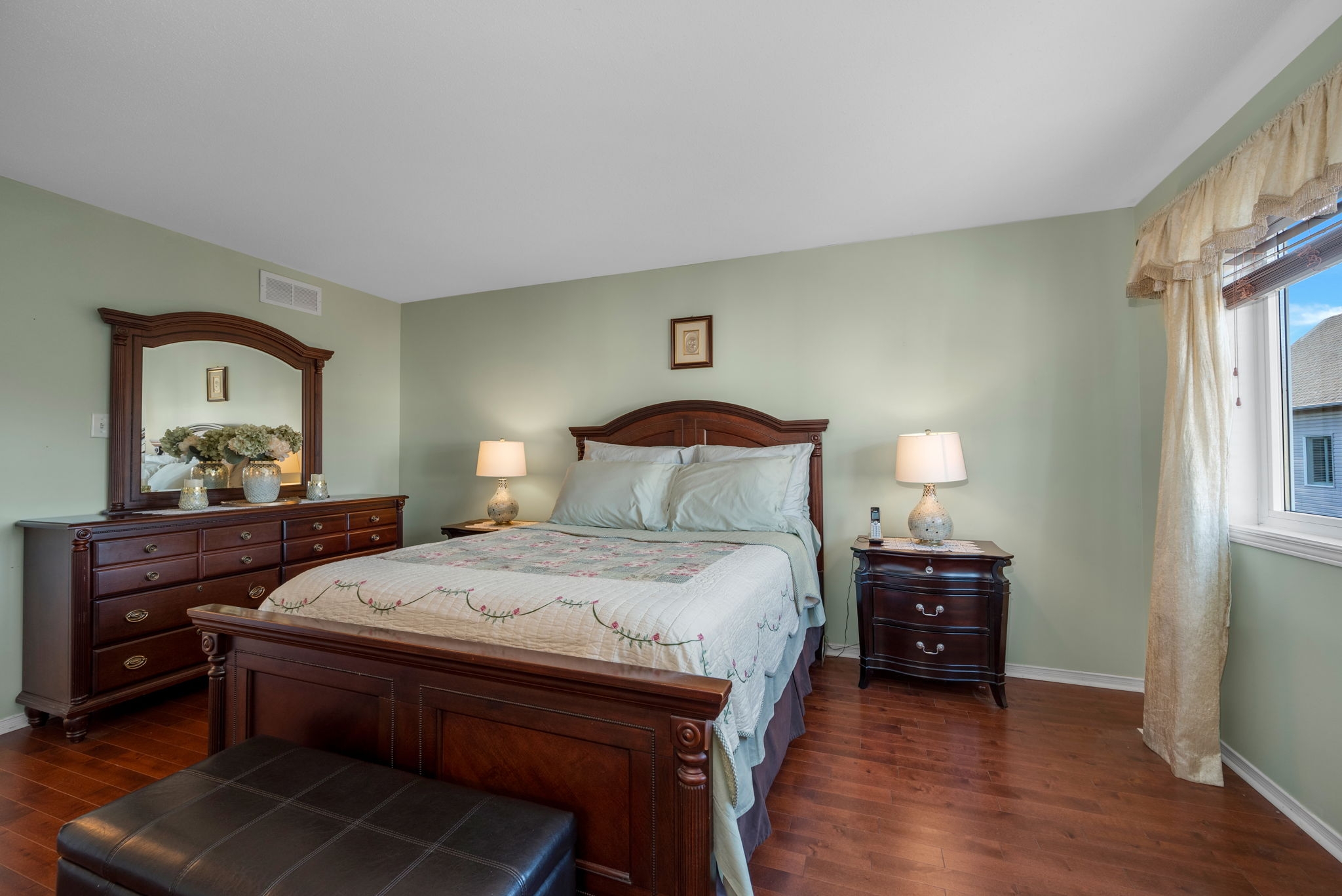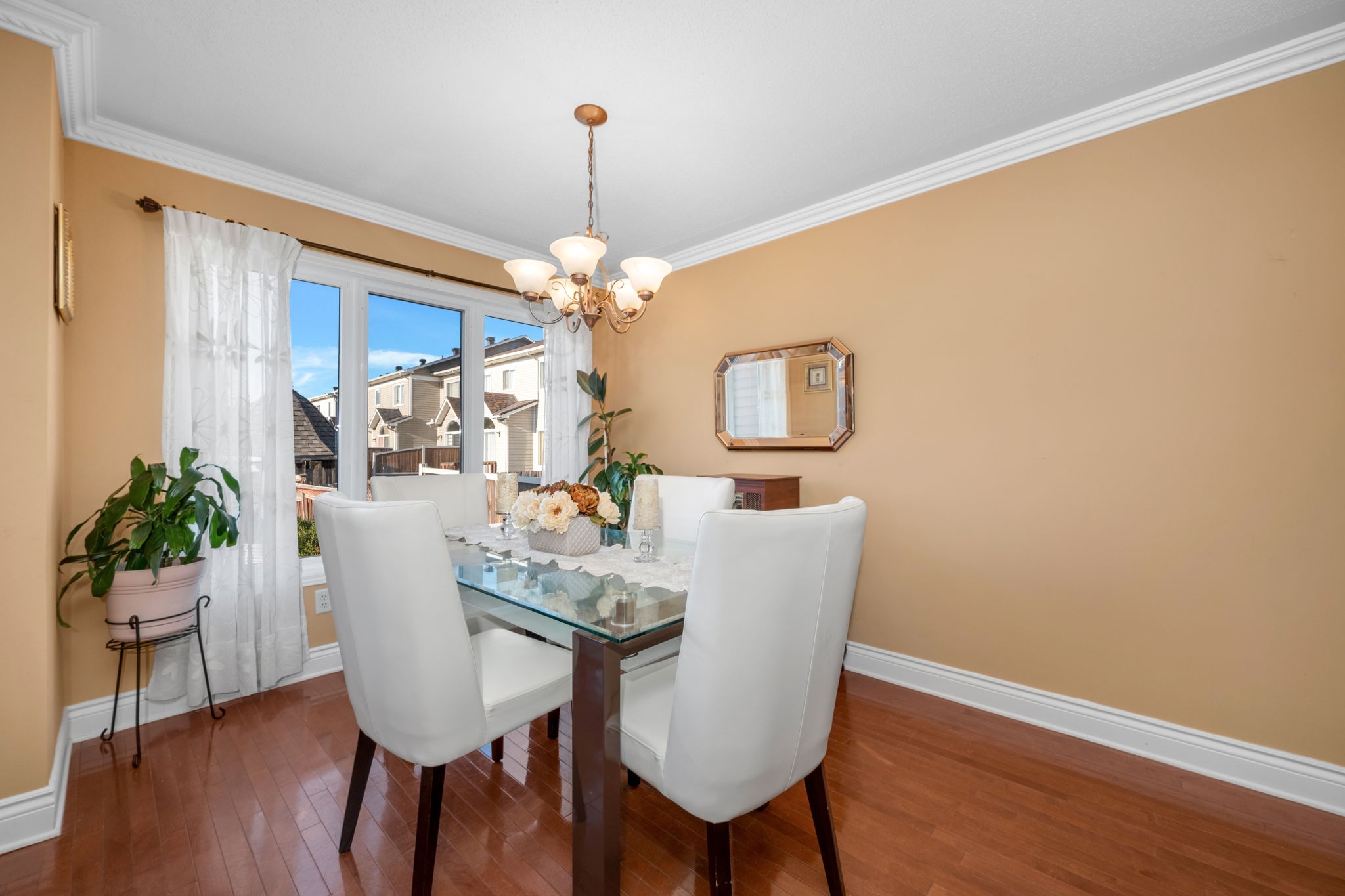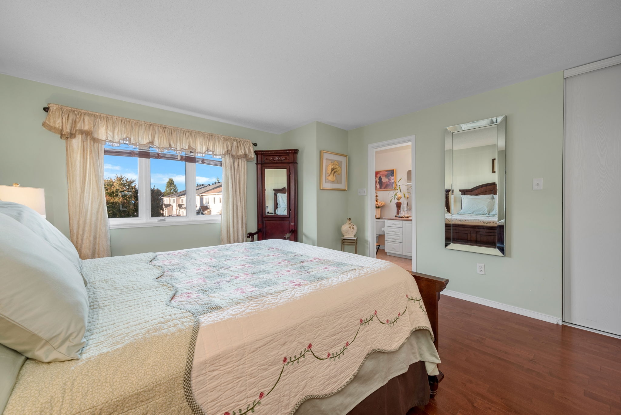 Step into this bright and beautifully maintained END UNIT 3-bedroom townhome, perfectly located in the heart of Avalon, just steps from the pond, parks, schools, shopping, and transit! This popular open-concept main floor features gleaming hardwood, spacious living and dining areas, and a bright eat-in kitchen with an island and access to the landscaped backyard with deck, perfect for outdoor entertaining. Upstairs, you will discover hardwood floors throughout, updated carpet on the stairs, a generous primary bedroom with walk-in closet and 4-piece ensuite, plus two additional bedrooms and a full bathroom. The finished lower level adds great bonus space for a growing household with laminate flooring, a cozy gas fireplace, laundry, and plenty of storage.