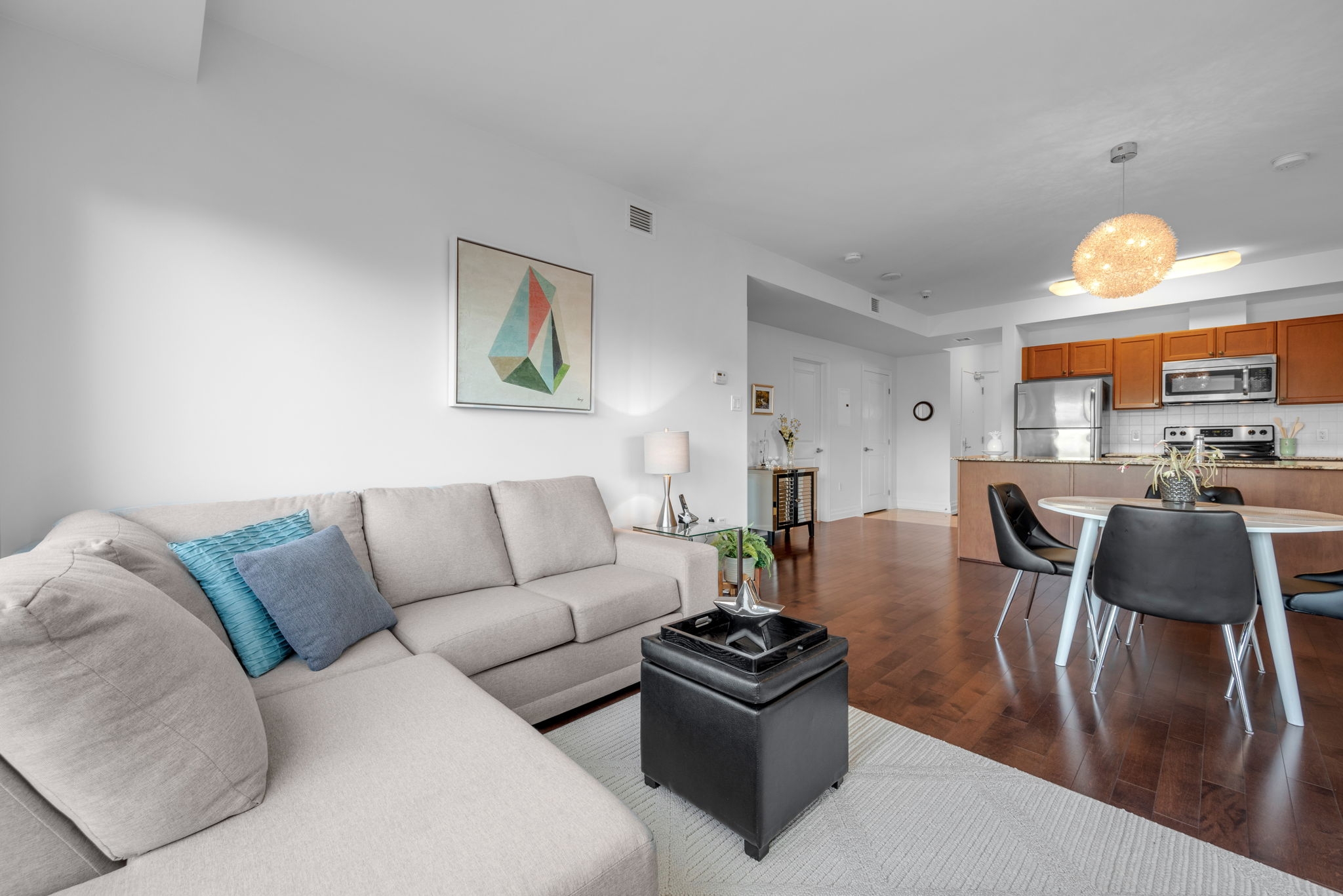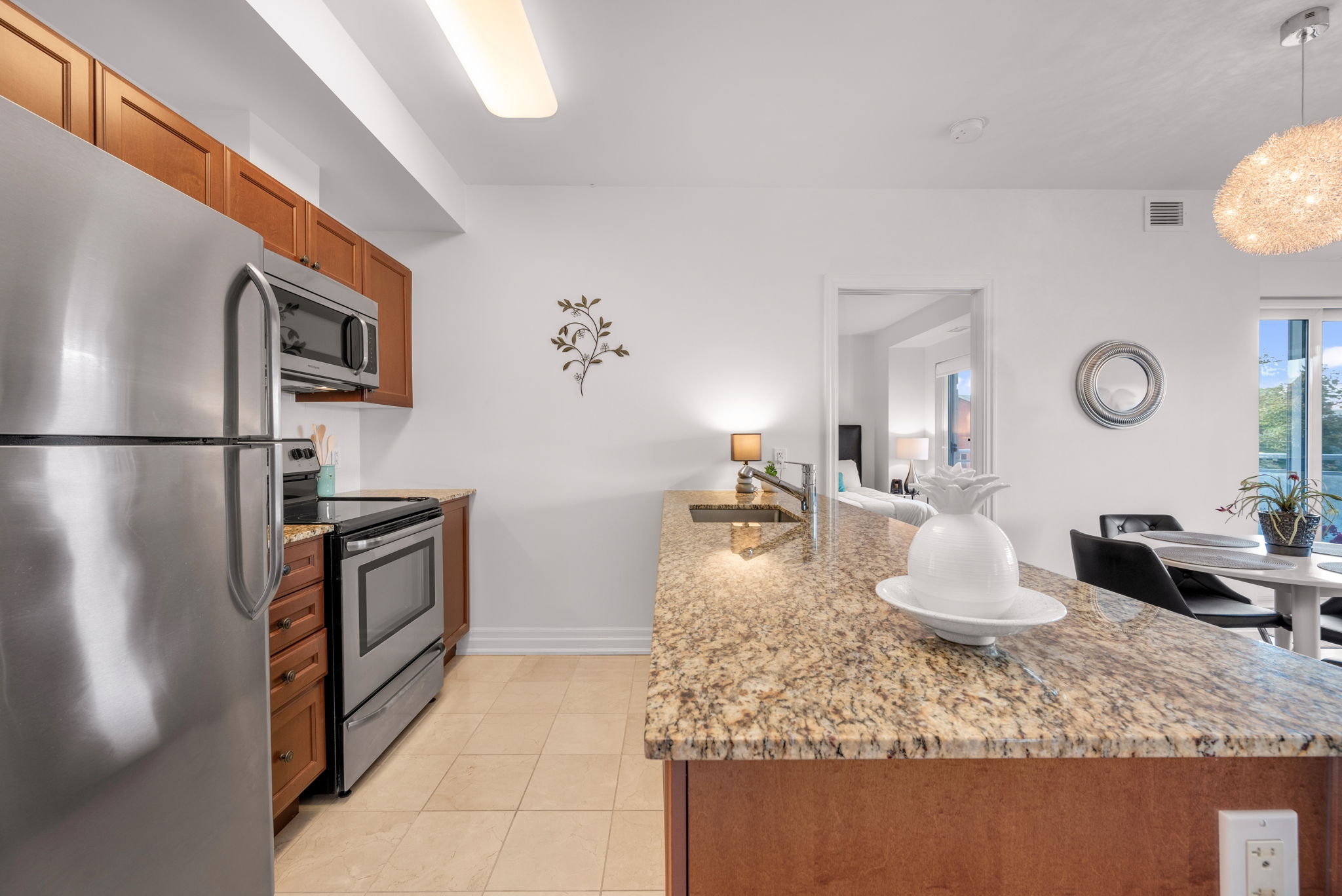 Step into this beautifully upgraded 2-bedroom, 2-bathroom condo at La Tiffani, offering style, comfort, and everyday convenience. Once a model suite, this condo suite showcases elegant Maple hardwood flooring, an open-concept layout, and a bright, contemporary design. Designed for both comfort and style, the generous living and dining areas open to a private balcony, shared with the primary bedroom, creating a wonderful indoor-outdoor flow. The sleek kitchen, appointed with granite countertops, stainless steel appliances, and convenient bar seating, overlooks the warm and welcoming living space. The primary bedroom provides a tranquil retreat with a 4-piece ensuite featuring a jet tub, a walk-in closet while a second bedroom is equally spacious and bright and is complemented by a stylish second bathroom with an upgraded glass shower. Enjoy added convenience with in-suite laundry and an extra deep underground parking space large enough to accommodate both a car and a motorcycle and ideally positioned away from other vehicles for added peace of mind. Residents of La Tiffani enjoy a range of amenities, including an indoor pool, fitness centre, and party room. Conveniently located within walking distance of grocery stores, pharmacies, Starbucks, banks, eateries, parks, trails, and just minutes from Downtown Ottawa. This condo offers a vibrant urban lifestyle. Option to purchase fully furnished is available.