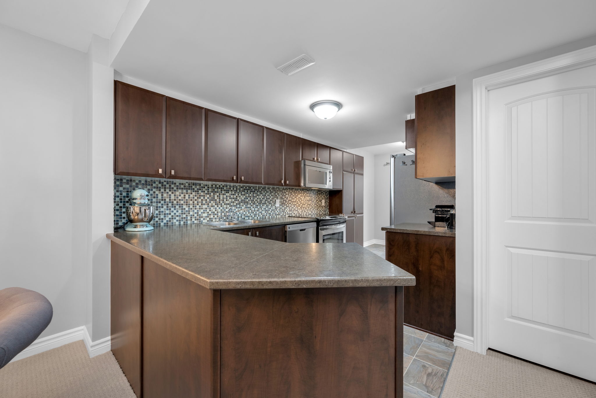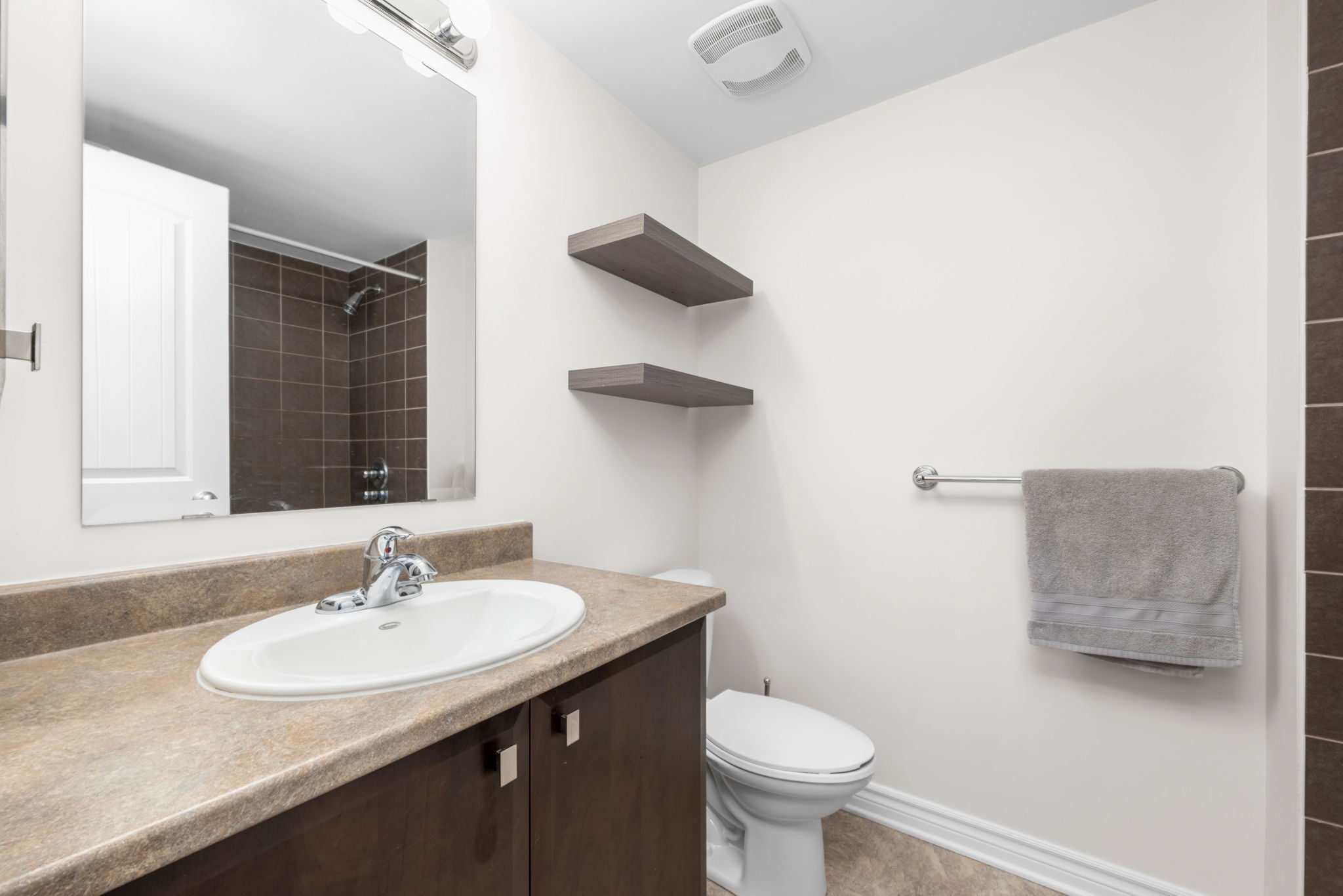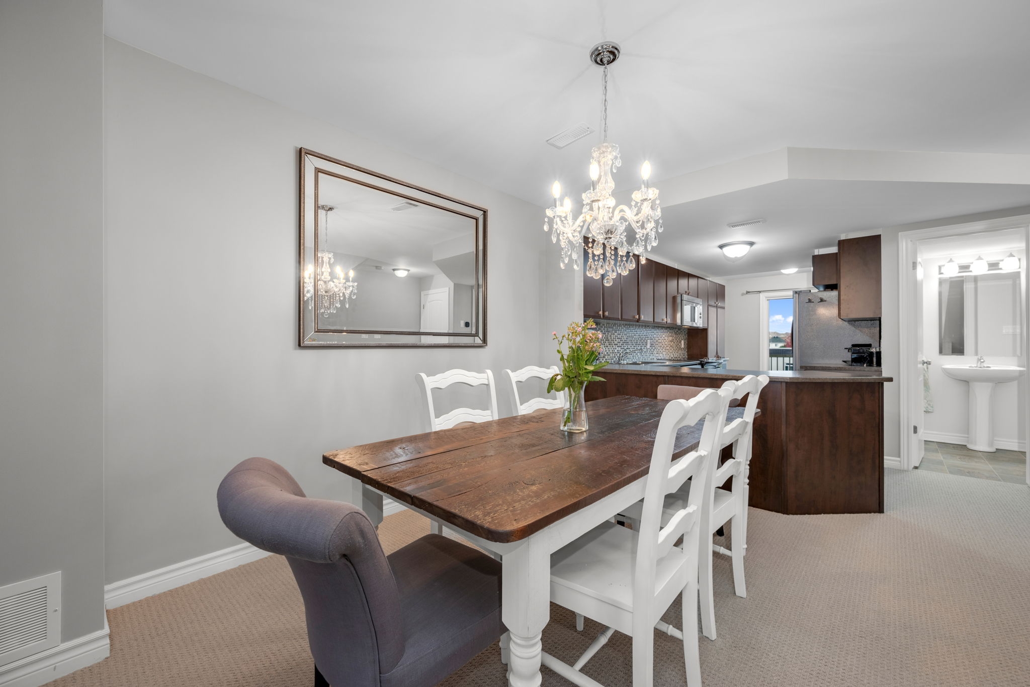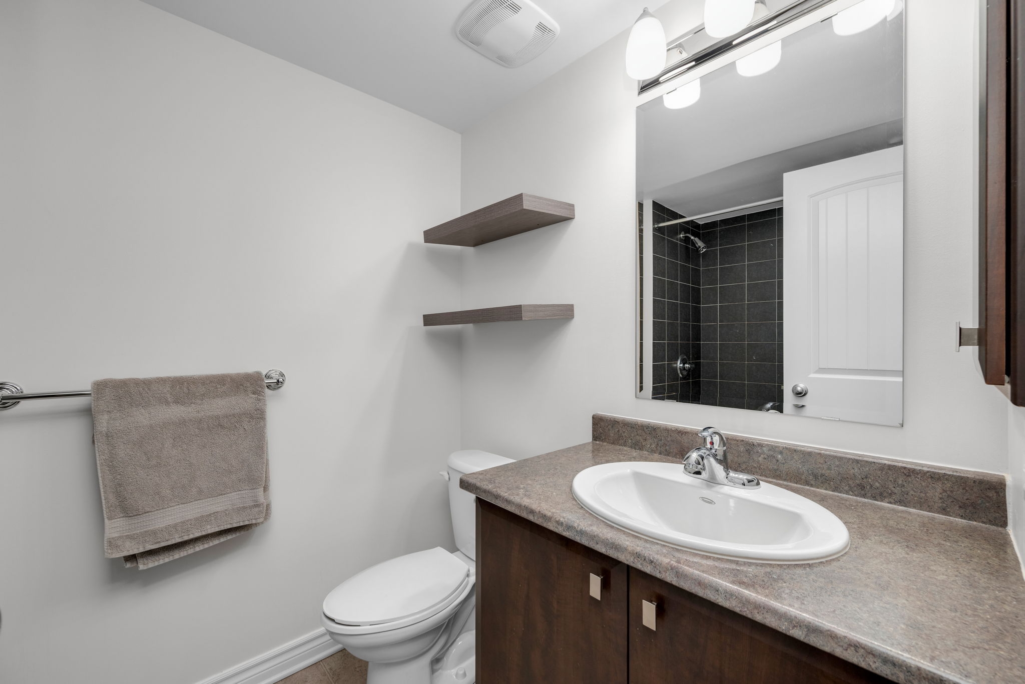 Stylish and move-in-ready upper-unit terrace home in the heart of Avalon. This beautifully maintained 2-bedroom, 2.5-bathroom condo comes with parking and offers modern style and comfort. The open-concept main level features a bright living and dining area, ideal for everyday living or entertaining. A contemporary kitchen with rich dark cabinetry and a generous eating area can double as a home office with access a spacious balcony with no rear neighbours, offering plenty of privacy. Upstairs, you will find two large bedrooms, each with a private ensuite bathroom. The primary bedroom boasts a full wall of closet space and a second private balcony.Ideally located close to transit, parks, schools, shopping, and recreation