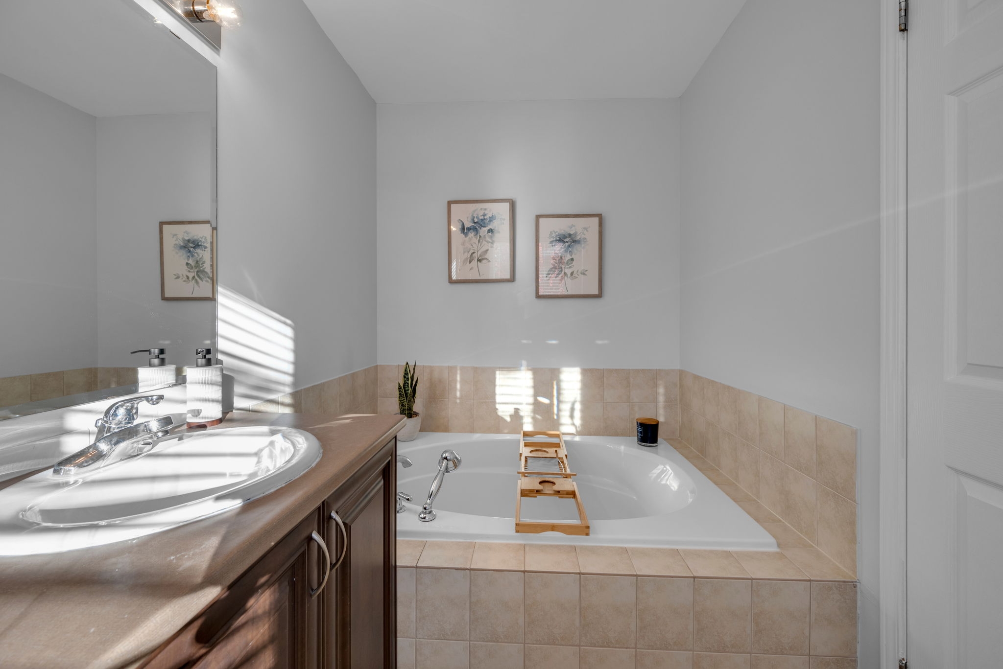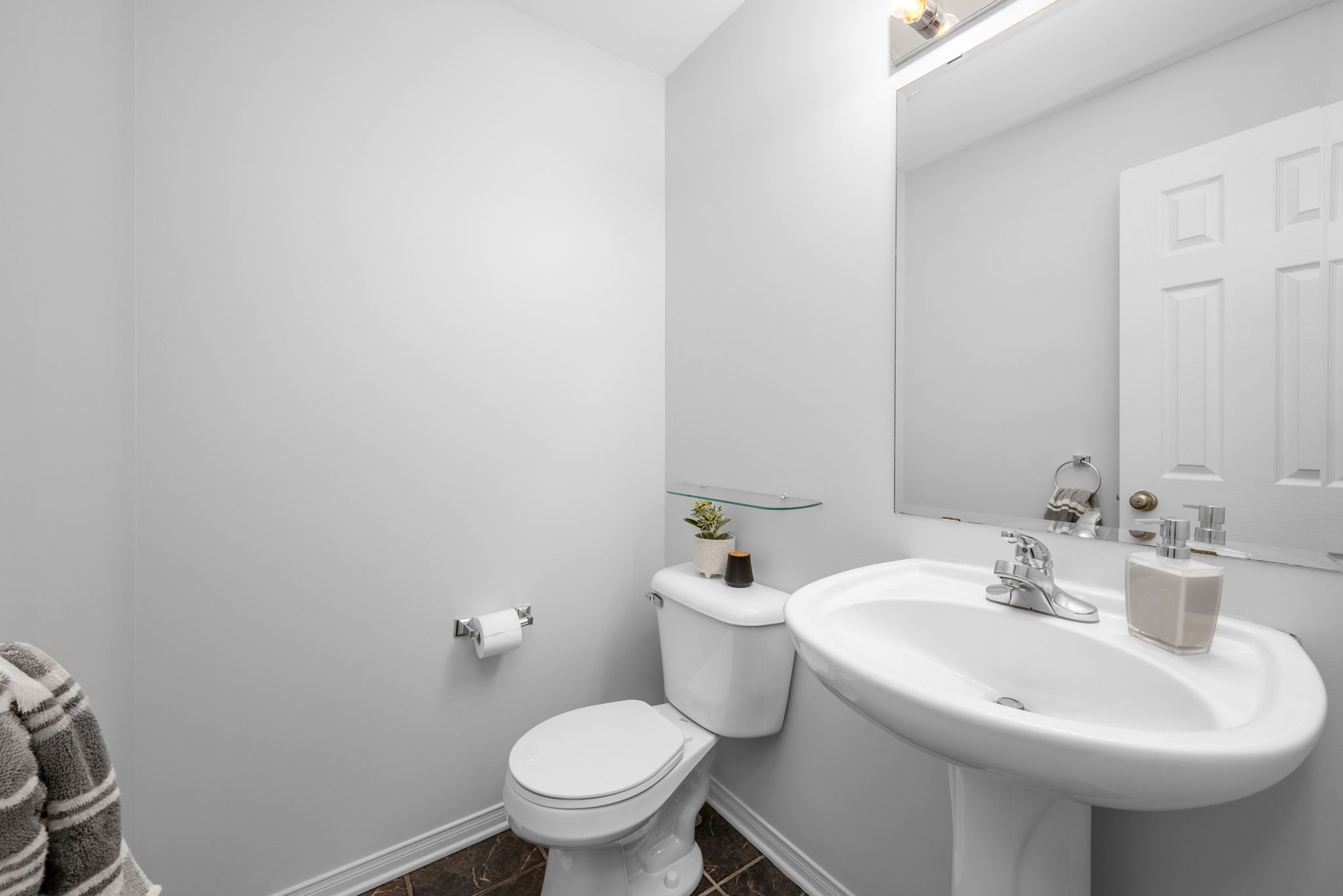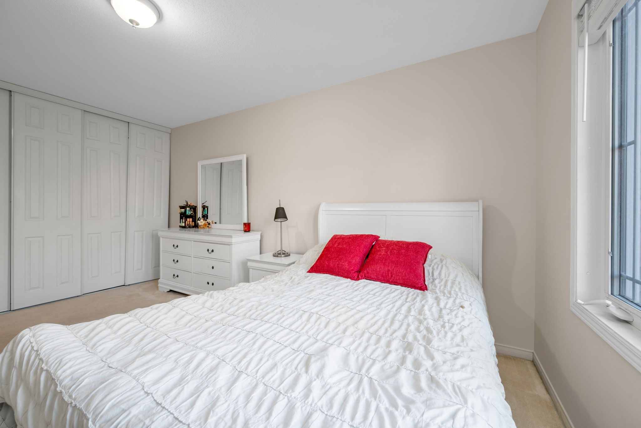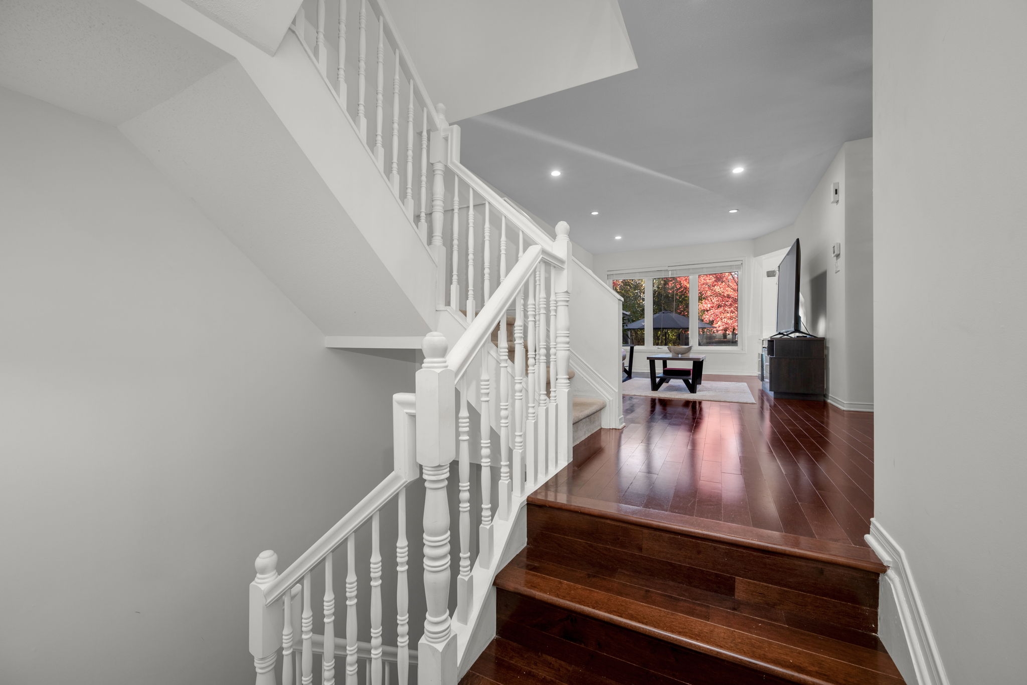 Seize this rare opportunity to own an outstanding Minto executive townhome in the highly desirable Chapel Hill neighbourhood! This beautiful home backs directly onto a scenic park featuring tennis and volleyball courts, picturesque trails, and lush nature-all while offering the privacy of having NO REAR NEIGHBOURS!Step inside to discover a meticulously maintained interior, showcasing a spacious eat-in kitchen equipped with brand-new stainless steel smart appliances. The bright and inviting living and dining areas are adorned with gleaming hardwood floors and stylish pot lights, creating an elegant atmosphere. Patio doors in the dining area provide direct access to the private yard, complete with a BBQ area and deck-perfect for outdoor gatherings.The upper level is home to three generously sized bedrooms, including a luxurious primary suite featuring a 4-piece ensuite with a relaxing soaker tub and a convenient walk-in closet. The finished basement serves as a fantastic retreat, providing ample natural light through a large window and a cozy gas fireplace-ideal for both relaxation and entertaining. The basement also includes a laundry room and ample storage space to meet all your needs.Ideally located, this home offers easy access to public transit, recreational facilities, schools, restaurants, and Highway 174, making it perfectly suited for any lifestyle.Don't miss out on this exceptional opportunity in Chapel Hill! Recent updates include smart stainless steel kitchen appliances, a fresh coat of paint throughout, a new roof (2022), a new AC unit (2022), water line added for the fridge, pot lights across the main level, and an automatic garage door opener.Schedule your viewing today and make this stunning townhome your own!