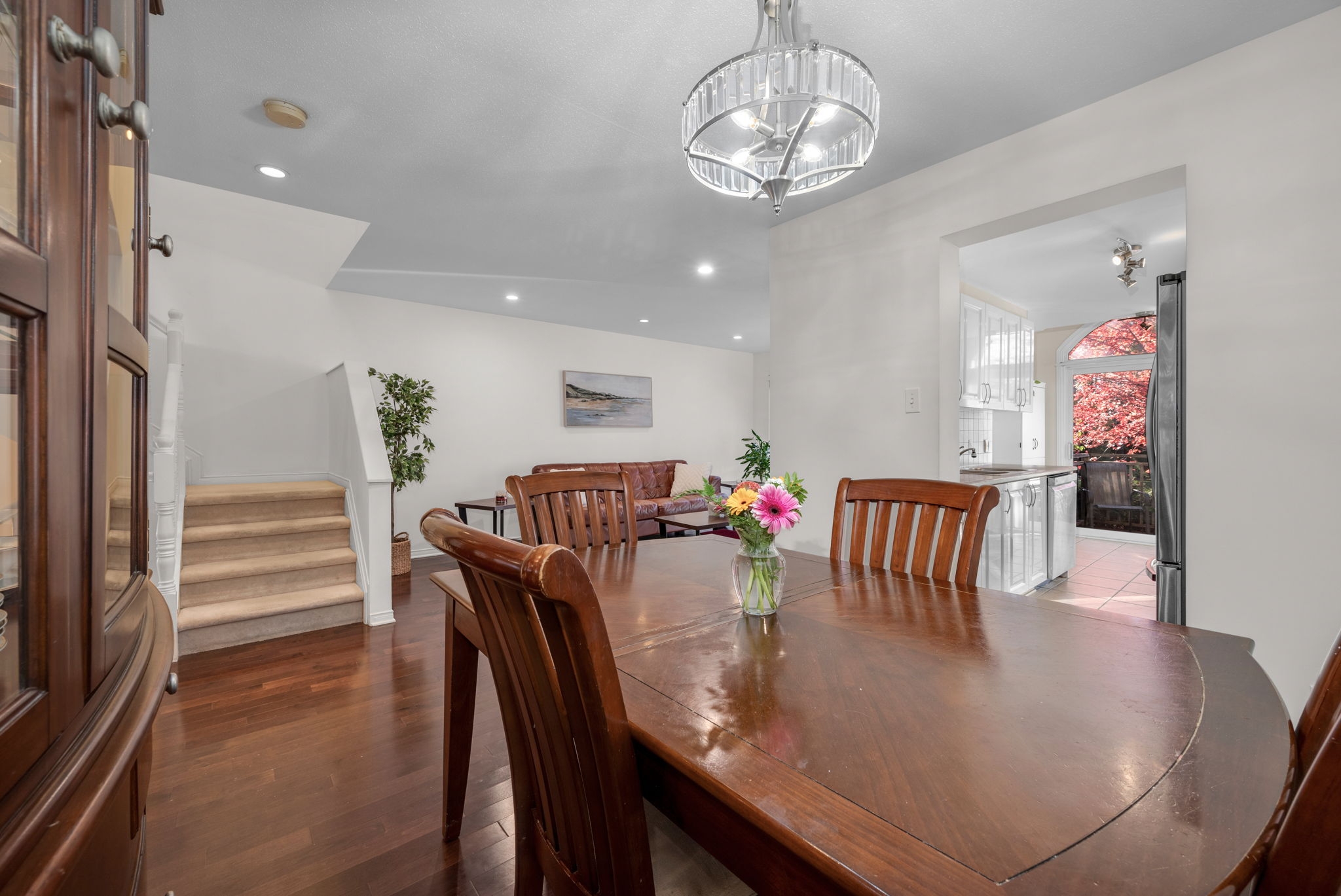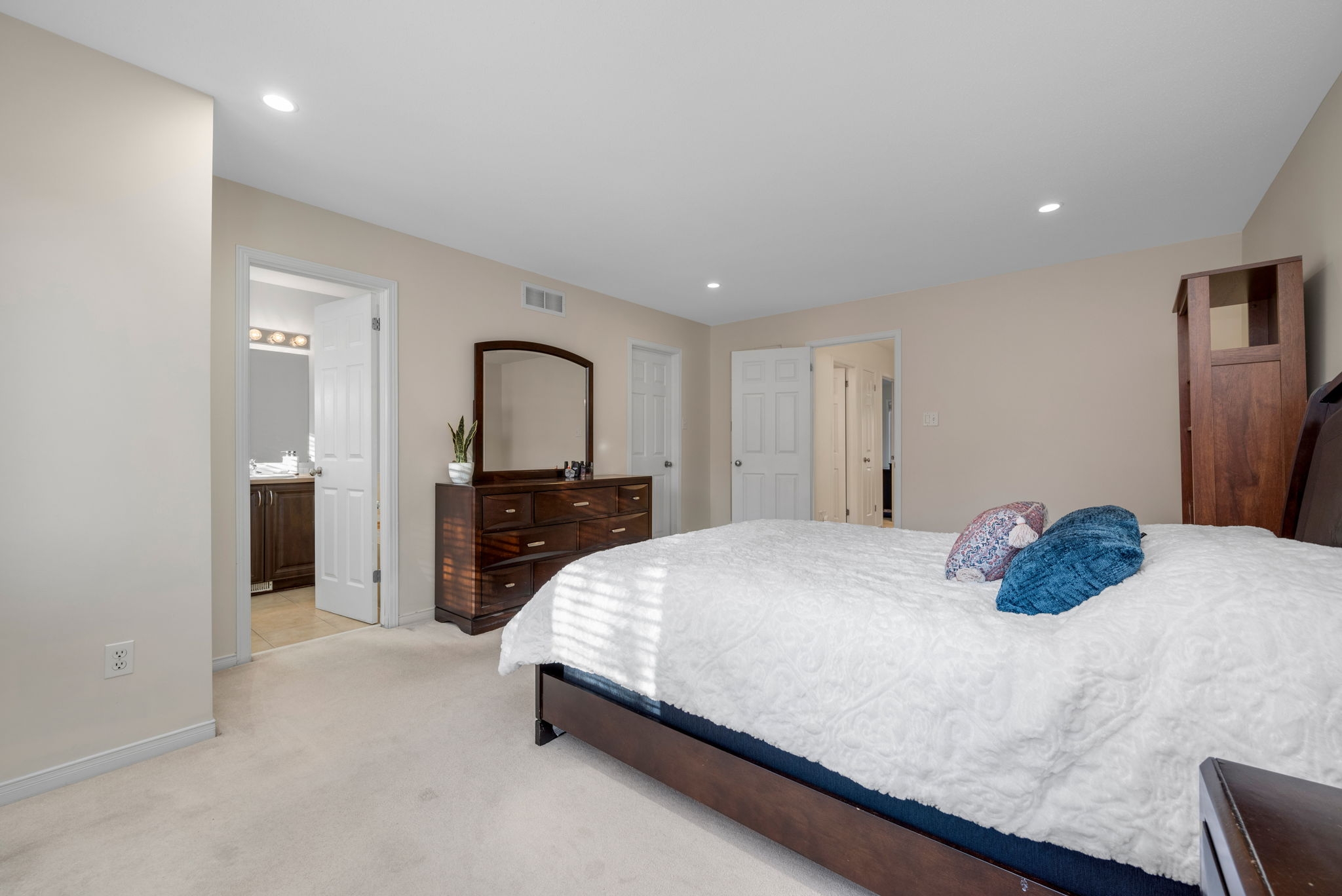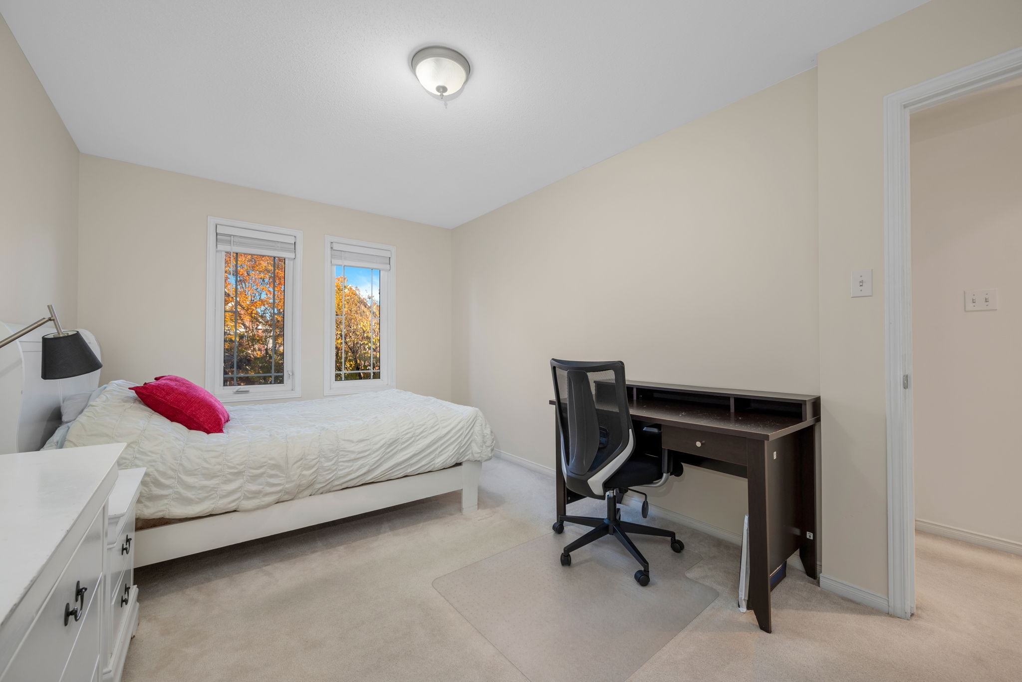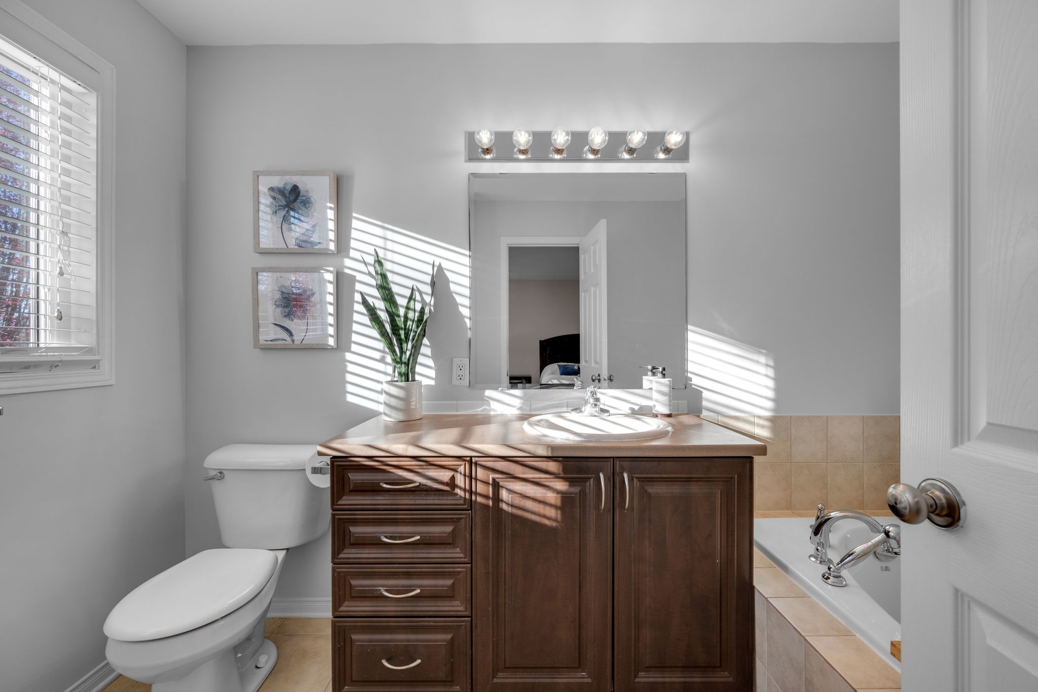Seize this rare opportunity to own an outstanding Minto executive townhome in the highly desirable Chapel Hill neighbourhood! This beautiful home backs directly onto a scenic park featuring tennis and volleyball courts, picturesque trails, and lush nature-all while offering the privacy of having NO REAR NEIGHBOURS!Step inside to discover a meticulously maintained interior, showcasing a spacious eat-in kitchen equipped with brand-new stainless steel smart appliances. The bright and inviting living and dining areas are adorned with gleaming hardwood floors and stylish pot lights, creating an elegant atmosphere. Patio doors in the dining area provide direct access to the private yard, complete with a BBQ area and deck-perfect for outdoor gatherings.The upper level is home to three generously sized bedrooms, including a luxurious primary suite featuring a 4-piece ensuite with a relaxing soaker tub and a convenient walk-in closet. The finished basement serves as a fantastic retreat, providing ample natural light through a large window and a cozy gas fireplace-ideal for both relaxation and entertaining. The basement also includes a laundry room and ample storage space to meet all your needs.Ideally located, this home offers easy access to public transit, recreational facilities, schools, restaurants, and Highway 174, making it perfectly suited for any lifestyle.Don't miss out on this exceptional opportunity in Chapel Hill! Recent updates include smart stainless steel kitchen appliances, a fresh coat of paint throughout, a new roof (2022), a new AC unit (2022), water line added for the fridge, pot lights across the main level, and an automatic garage door opener.Schedule your viewing today and make this stunning townhome your own!