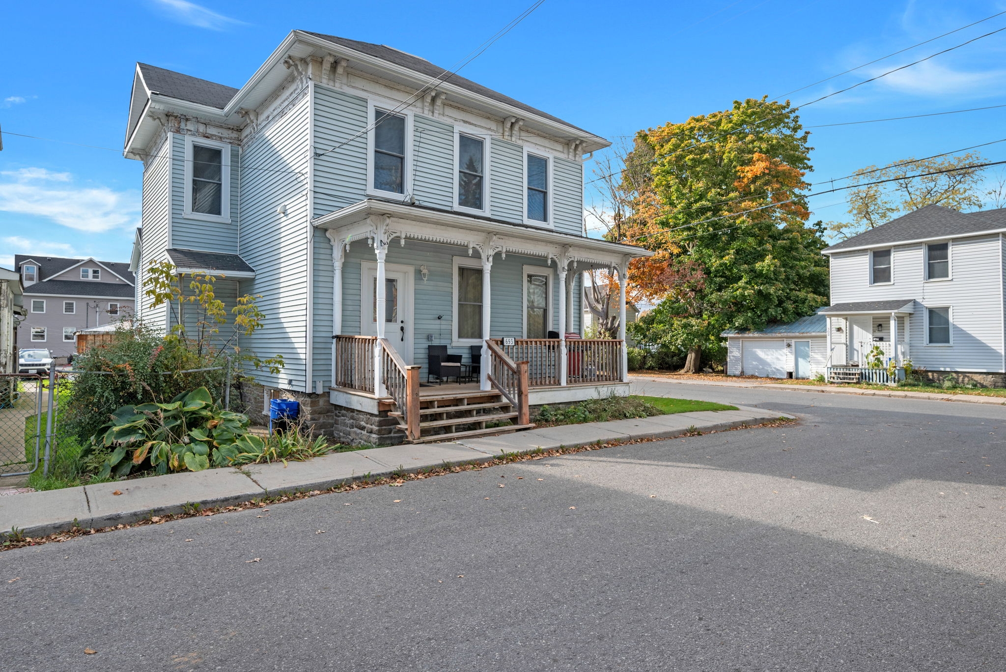 Welcome to 321 Wood St & 693 George St - a fully renovated duplex offering excellent cash flow and a cap rate approaching 7%. Perfect for investors seeking a turnkey property with modern updates and reliable income.321 Wood St features 3 bedrooms plus a loft, 1.5 baths, and exclusive use of the large fenced backyard - ideal for families. The home offers modern comfort with a dedicated 2020 furnace, 2020 AC, and 2021 gas hot water tank.693 George St is a bright and spacious 2-bedroom, 1-bath unit with impressive 9-ft ceilings, creating a sense of openness and charm. Recent mechanical updates include a 2025 furnace, 2020AC, and 2023 electric hot water tank.Both units benefit from a complete property overhaul completed between 2019-2020, including all-new plumbing, wiring, drywall, pot lights, flooring, kitchens, and bathrooms - ensuring peace of mind for years to come. Situated in the heart of Prescott, this property is steps from amenities, schools, and the river front. With strong rental potential and low maintenance requirements, this duplex is an exceptional opportunity to add a high-performing asset to your portfolio.