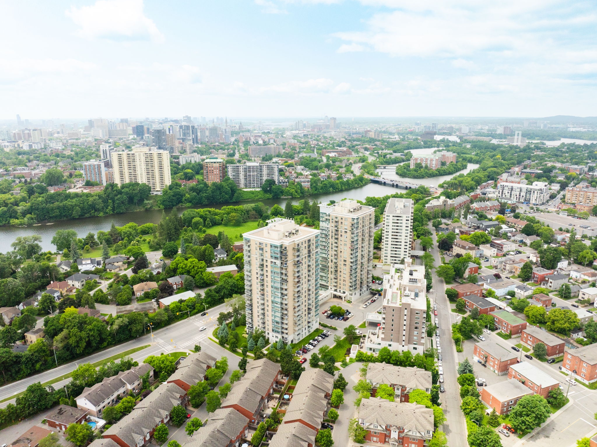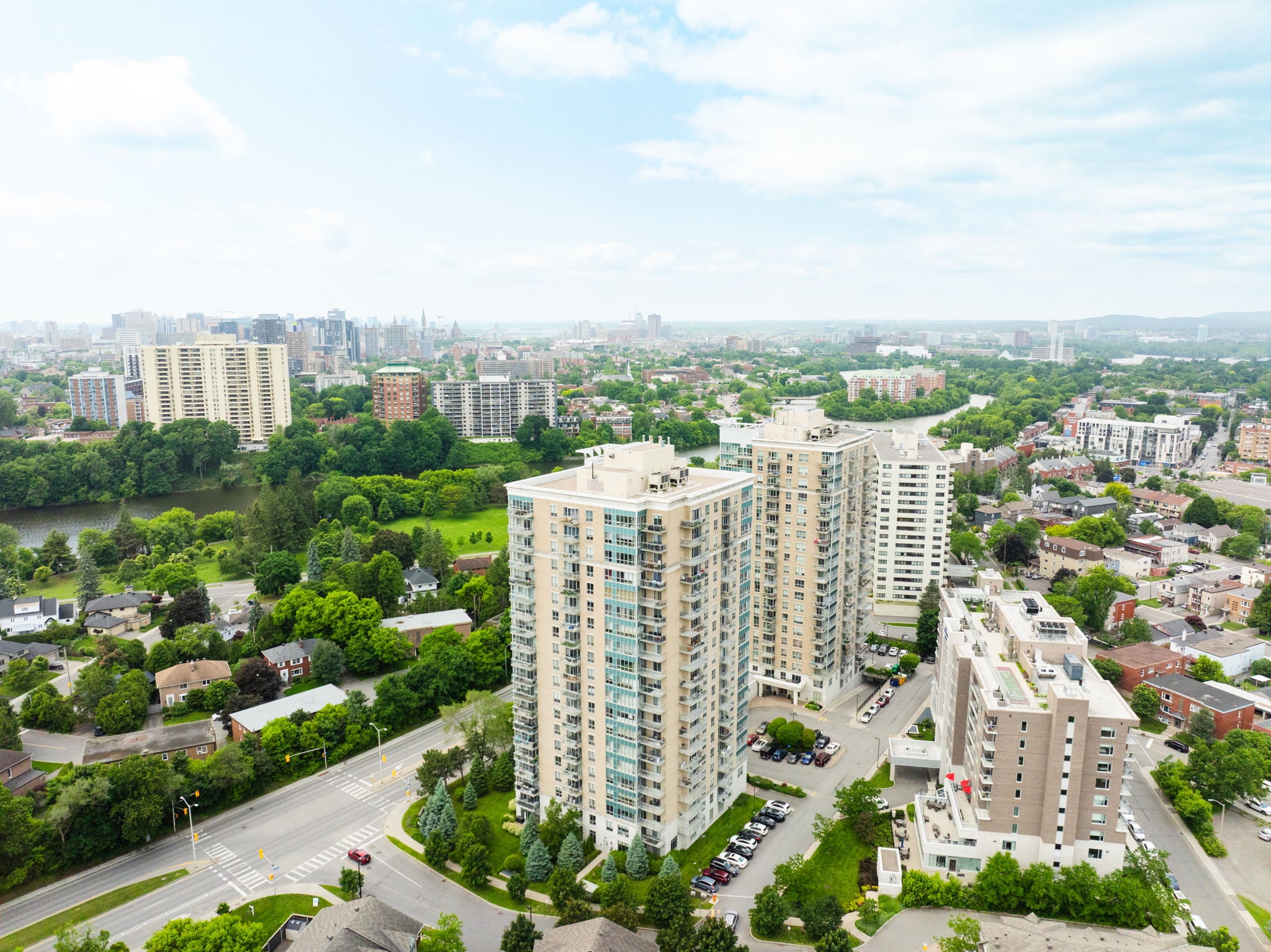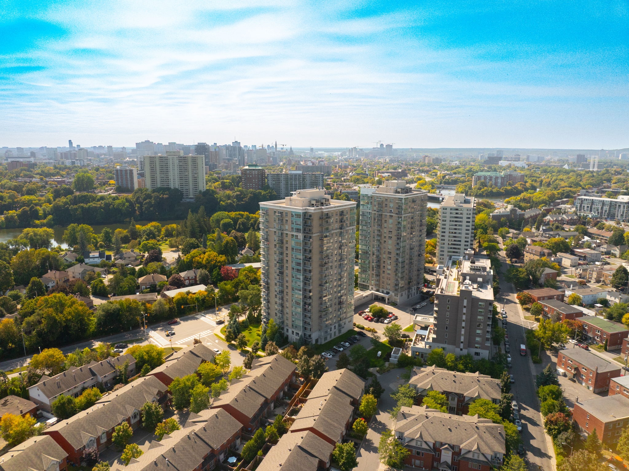 Welcome to Unit 1002 at the sought-after La Tiffani. This bright and airy corner unit features 2 bedrooms, 2 bathrooms, and a den, all within a spacious open-concept layout. Nearly floor-to-ceiling windows fill the space with natural light and showcase sweeping views of the city and the Rideau River. The kitchen is perfectly positioned to enjoy the stunning backdrop while you cook.Additional features include in-unit laundry, an excellent underground parking space, and a convenient storage locker. La Tiffani offers top-tier amenities such as an indoor pool, fitness centre, party/meeting room, and ample visitor parking.Located in the heart of Beechwood, you're just steps from grocery stores, cafés, and restaurants. This beautiful unit delivers comfort, style, and unbeatable views - the perfect place to call home.