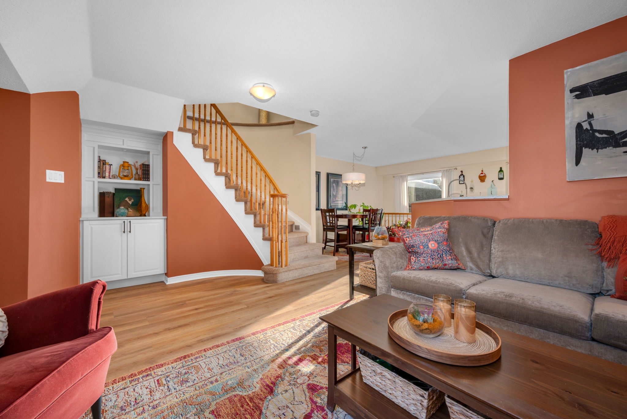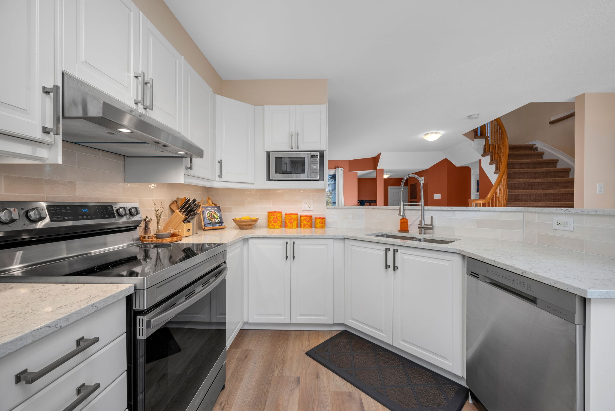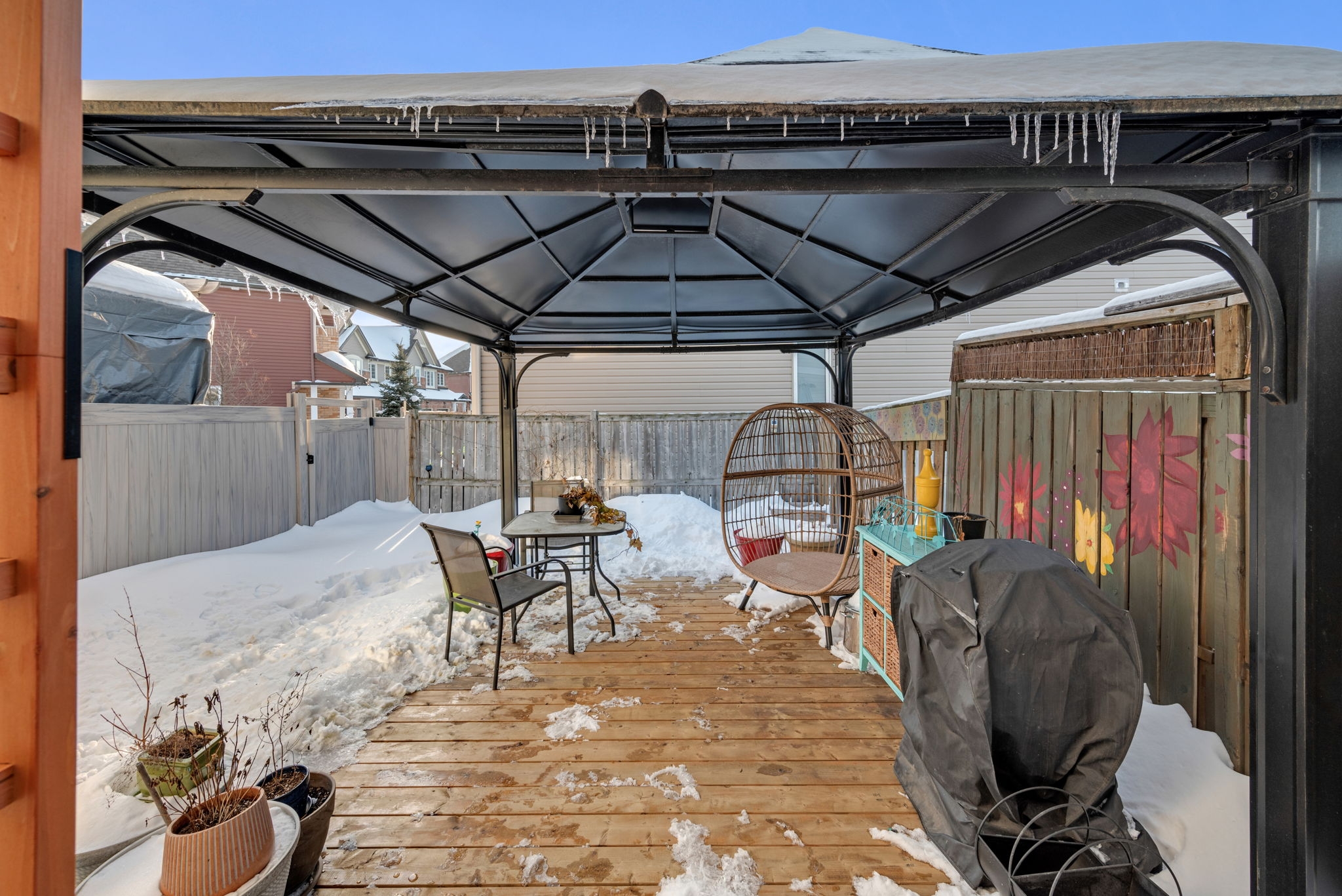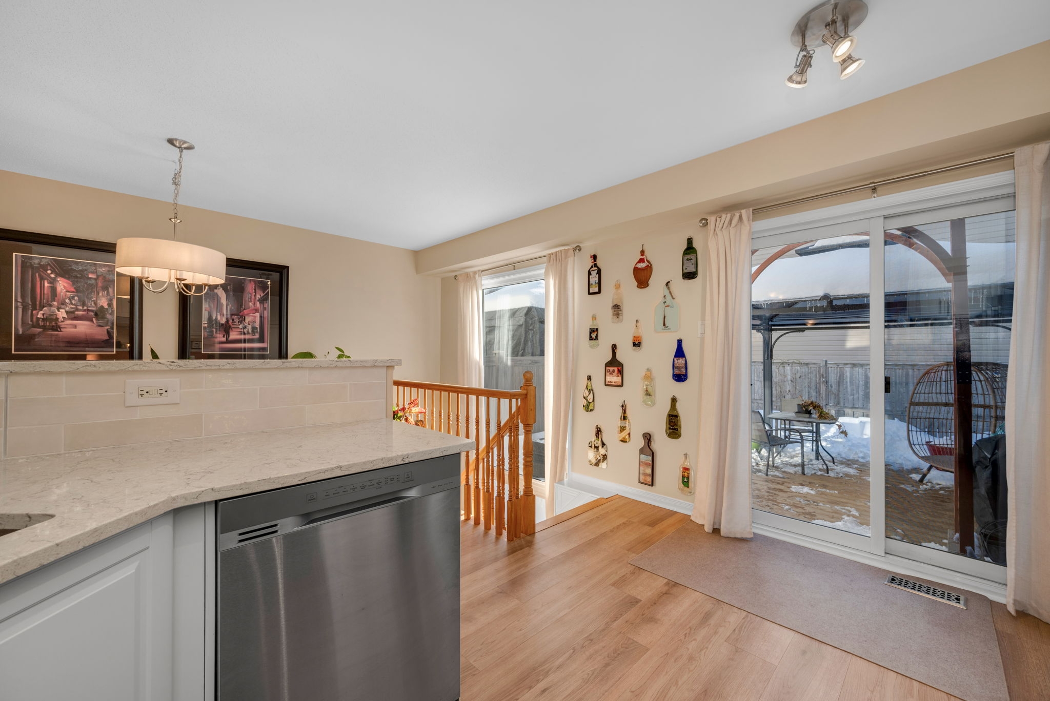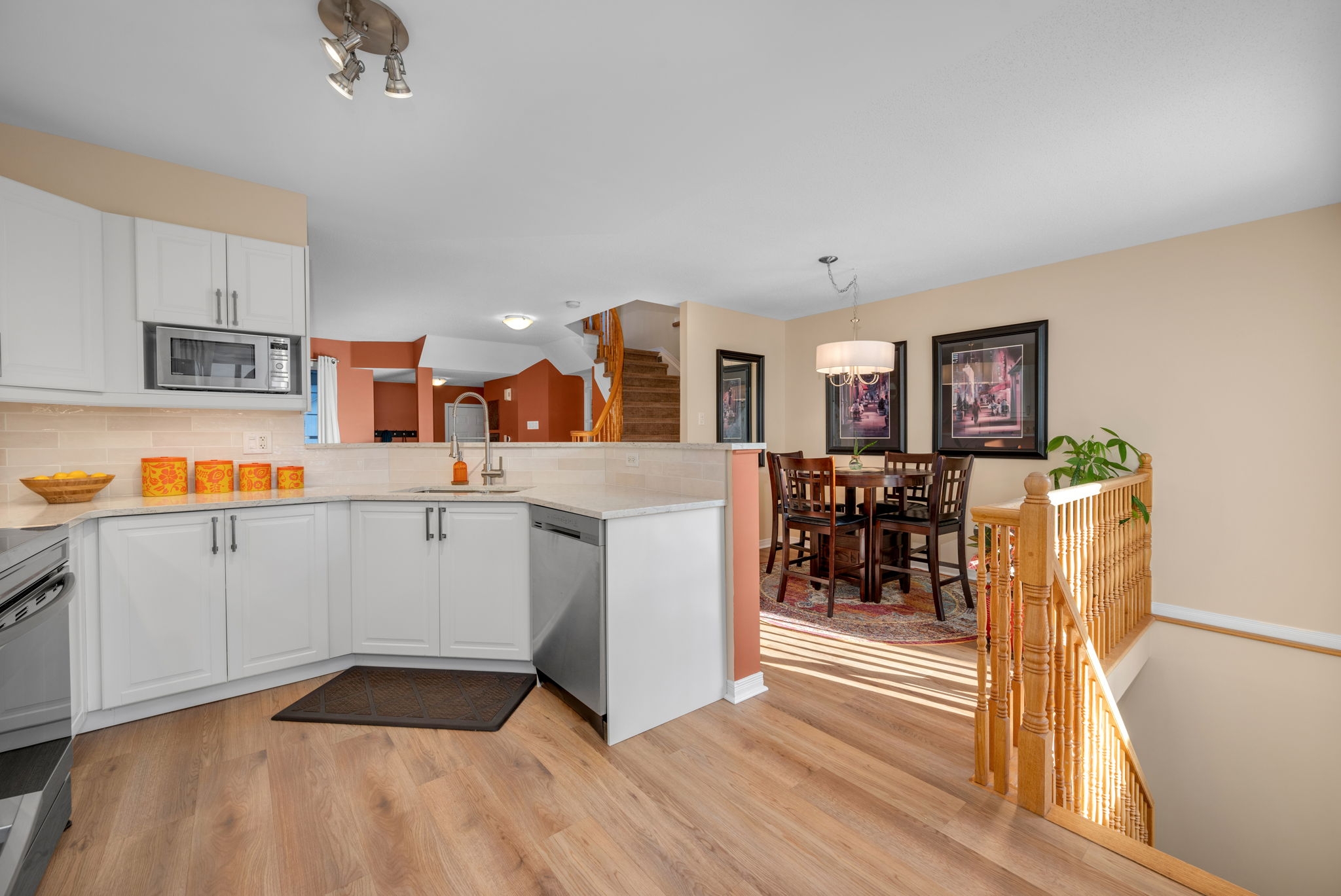 Welcome to this meticulously maintained and updated, 3 bedroom, 2 bath townhouse nestled in the sought after East Village community of Orléans. From the moment you step inside, you're greeted by an inviting main entrance filled with an abundance of natural light.The bright and airy living and dining areas feature large windows that flood the space with sunlight, creating a warm and welcoming atmosphere. The classic white kitchen is complete with quartz countertops, stainless steel appliances, ample cabinetry, and plenty of workspace for cooking and entertaining. The open concept layout seamlessly connects the kitchen to the living and dining areas, with patio doors providing easy access to the backyard. Upstairs, you'll find three generously sized bedrooms, including a spacious primary retreat with a walk-in closet. The spa-like four piece bath offers an opportunity to relax in the soaker tub. Two additional bedrooms offer plenty of space and natural light, perfect for family, guests, or a home office. The finished lower level adds valuable living space with a versatile recreation room ideal for kids, movie nights, or a home gym, along with ample storage.Step outside to a fully fenced backyard featuring a great sized deck with a pergola, perfect for outdoor dining, relaxing, and entertaining all summer long.This home offers comfort, style, and functionality in a fantastic family-friendly neighbourhood close to walking trails Cardinal Creek park, public transit, schools, and amenities.