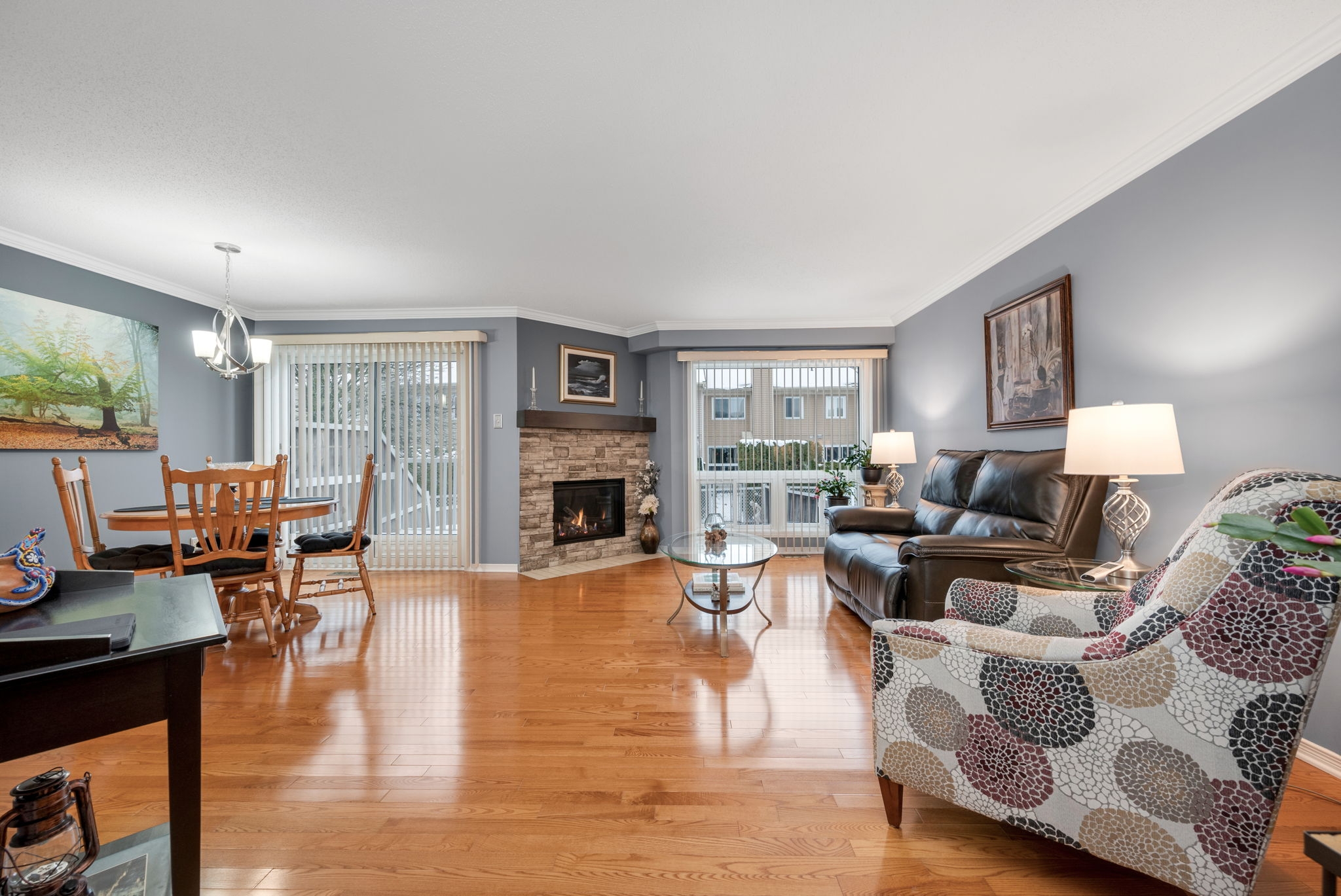 Welcome to this beautifully maintained 3-bedroom, 3-bathroom townhome in the heart of Chapel Hill, where comfort, style, and convenience come together seamlessly. Warm and inviting, this home offers a spacious, well-designed floor plan ideal for both everyday living and elegant entertaining. The main level features spacious principal rooms anchored by a stylishly updated fireplace, creating a sophisticated and cozy atmosphere. The kitchen has been enhanced with updated countertops and offers a cozy breakfast nook. Upstairs, the generous primary suite serves as a private retreat, complete with a walk-in closet and a beautifully updated 4-piece ensuite. Two additional well-proportioned bedrooms offer flexibility for family, guests, or a dedicated home office and the main bathroom has also been thoughtfully modernized with contemporary finishes. A finished lower level extends the living space, offering a versatile area ideal for a media room, fitness space, or children's playroom. Step outside to enjoy the added convenience of a walking path directly behind the backyard leading to visitor parking, a thoughtful feature for both homeowners and guests. Recent improvements including the roof (2025), furnace, and air conditioning provide exceptional peace of mind. Ideally situated close to schools, Heritage park, shopping, and everyday amenities, this home delivers an exceptional lifestyle in a desirable community. Recent improvements including the roof, furnace, and air conditioning provide exceptional peace of mind.