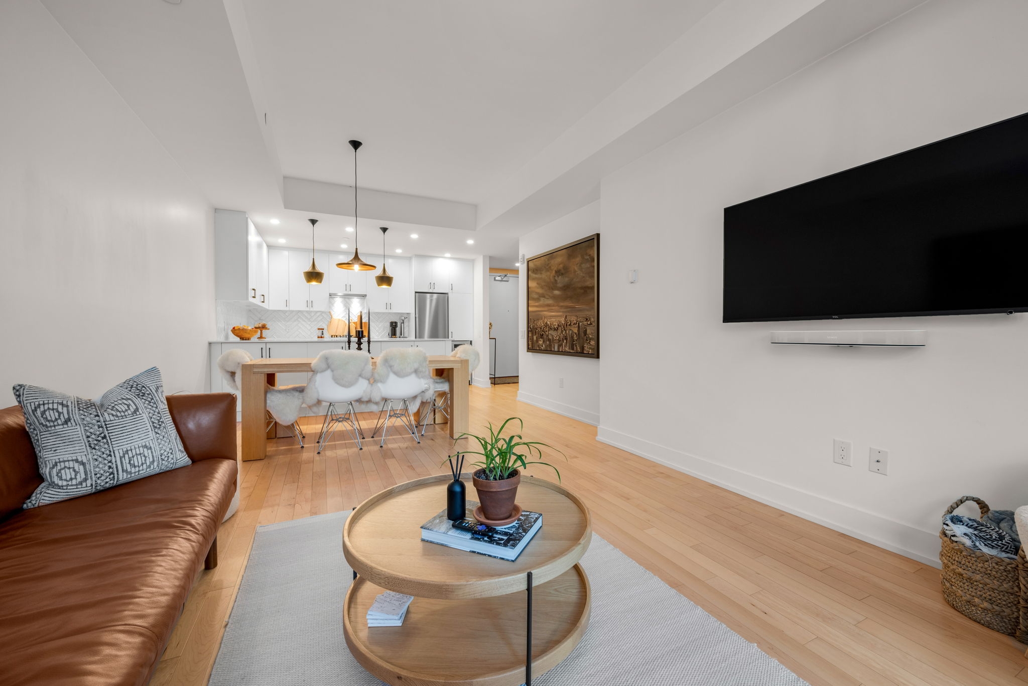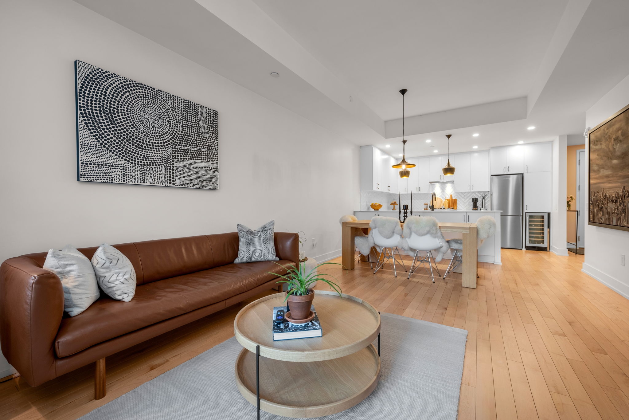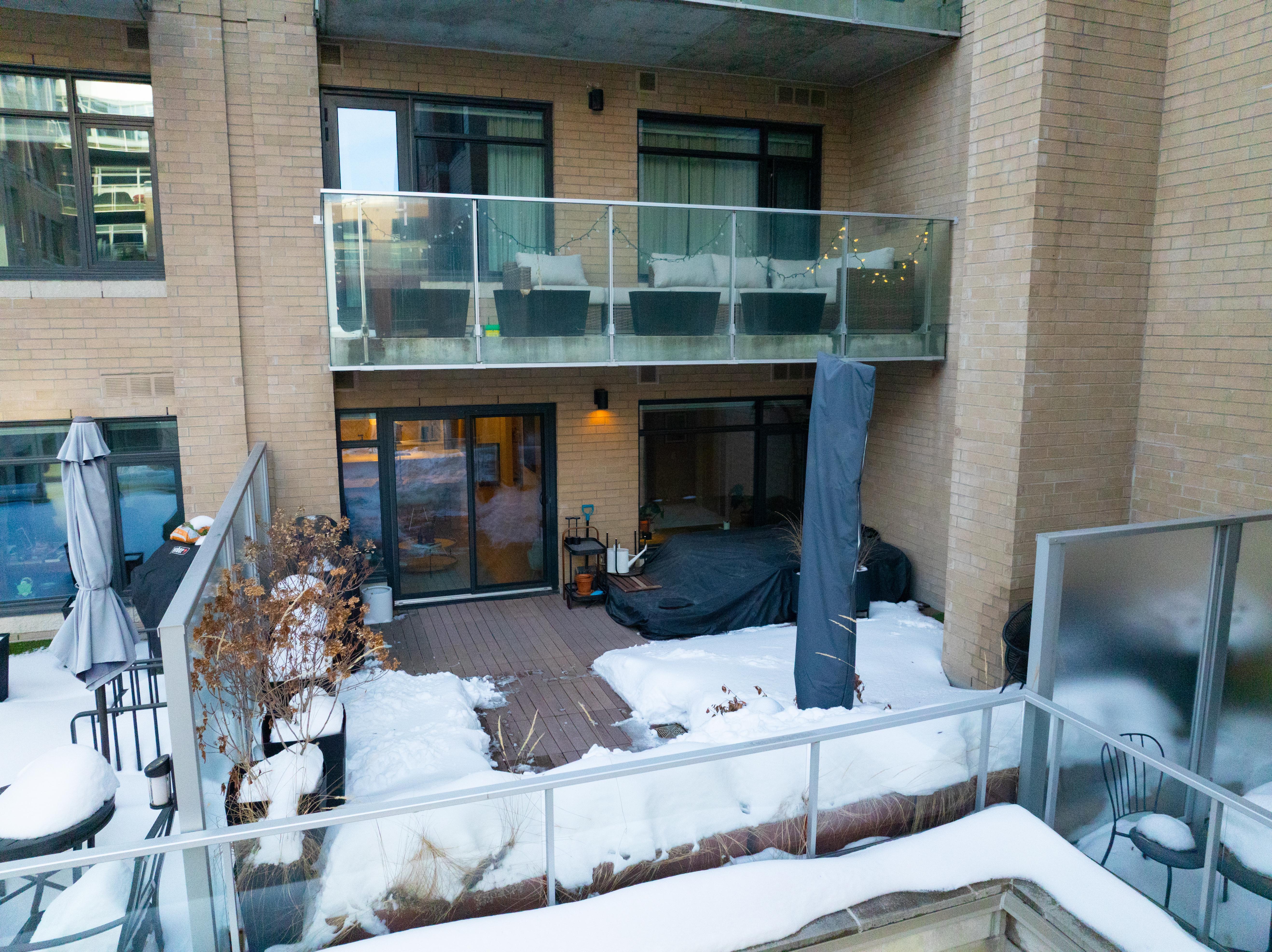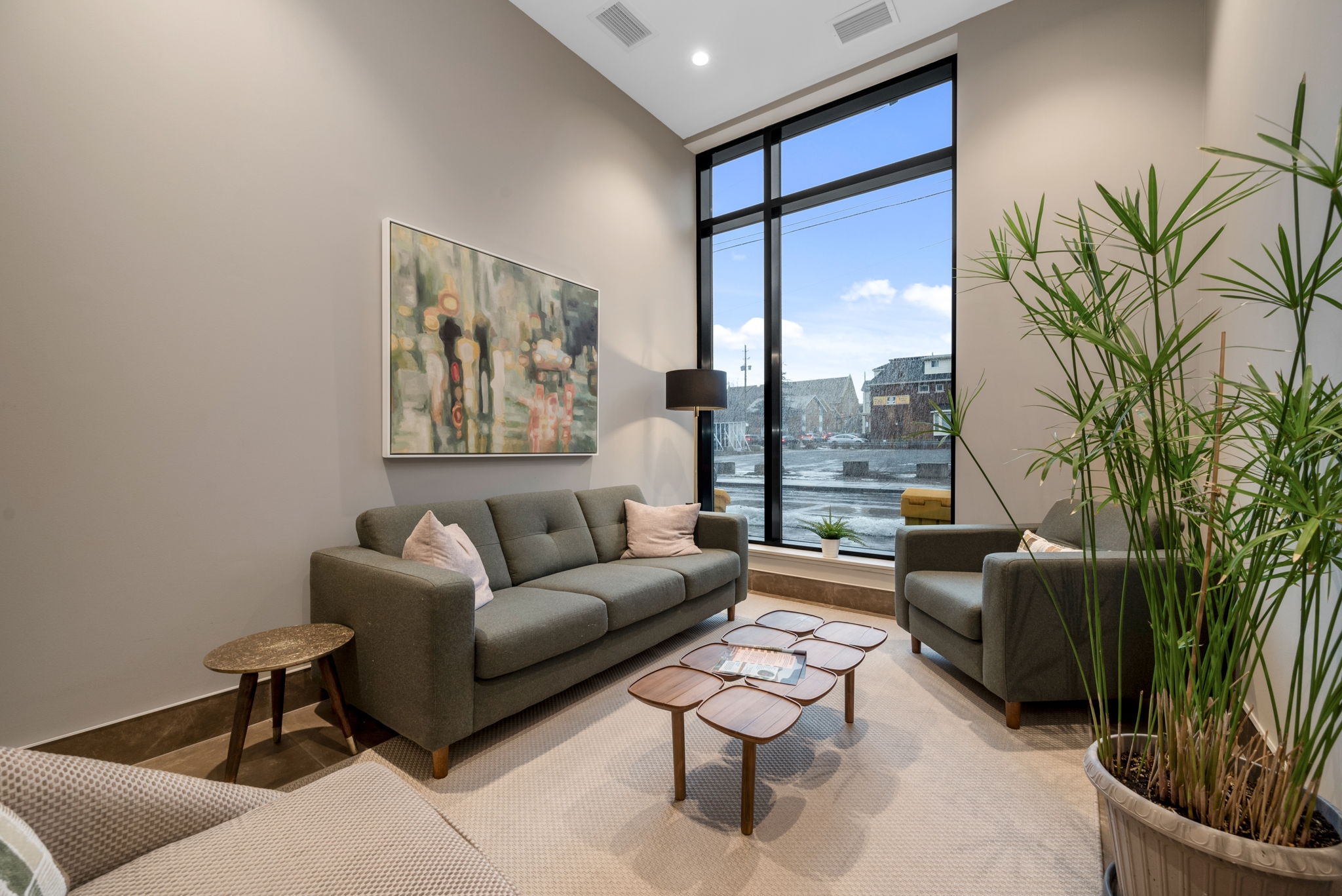 Live where convenience meets contemporary style at The Corners on Main. Built by Domicile, this bright and spacious 850 sq ft Harvey model offers one bedroom, two bathrooms, and thoughtfully curated upgrades throughout. High ceilings and oversized windows flood the space with natural light, while the upgraded kitchen steals the spotlight featuring quartz countertops, a chic herringbone backsplash, premium cabinetry with added storage at the island, and high-end appliances. A custom wine fridge seamlessly integrated into the pantry adds both function and flair. An extraordinary 400 sq ft private terrace is a standout feature, ideal for morning coffee, summer evenings, and entertaining under the stars. Convenience continues with exceptional amenities located on the same floor, including a fully equipped fitness room, stylish party room, guest suite, and a rooftop terrace. Underground parking and a storage locker provide added ease and practicality. All just steps from vibrant cafés, restaurants, green space, and the canal, this is urban living without compromise. Condo fees include building insurance, property management, maintenance, and reserve fund.