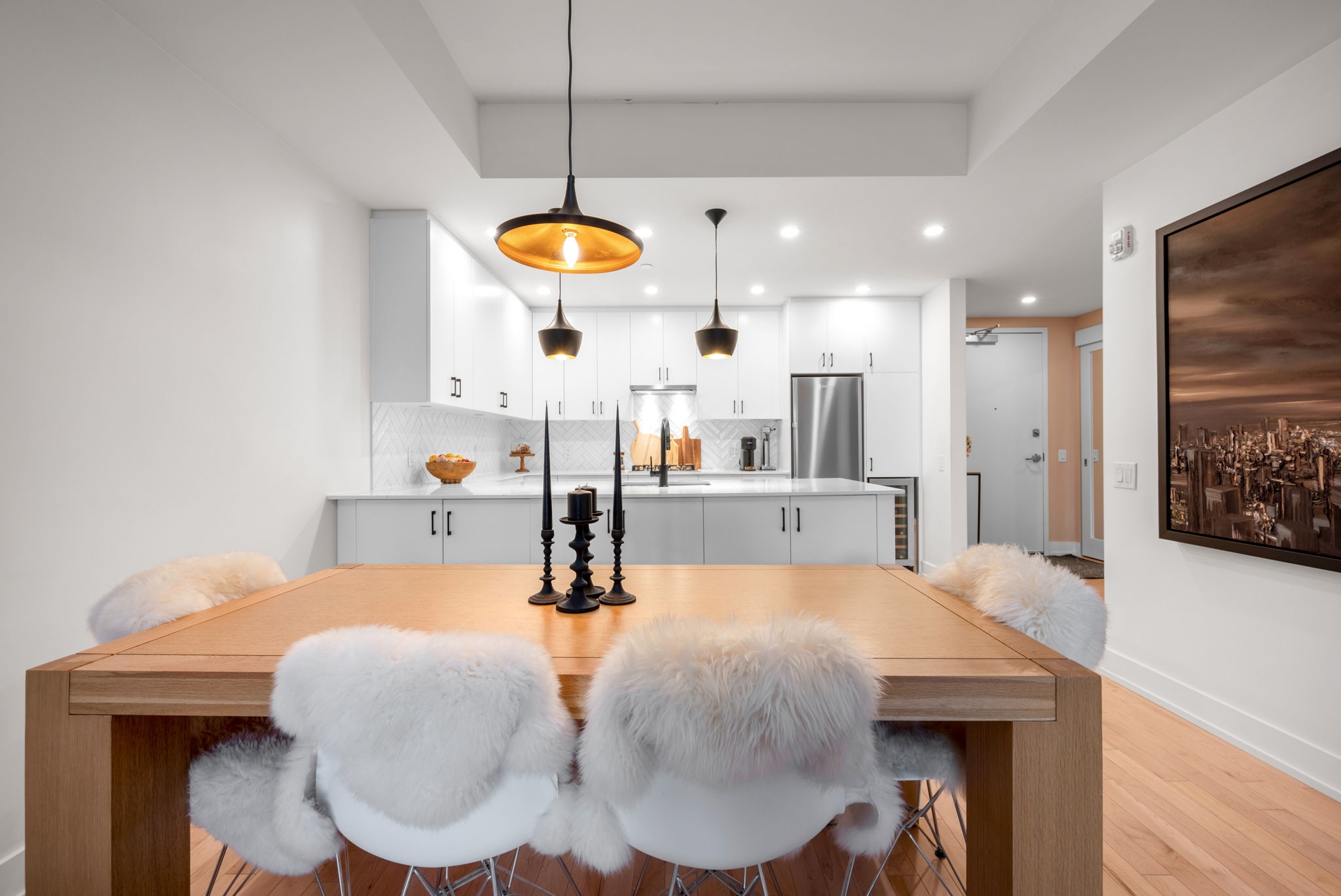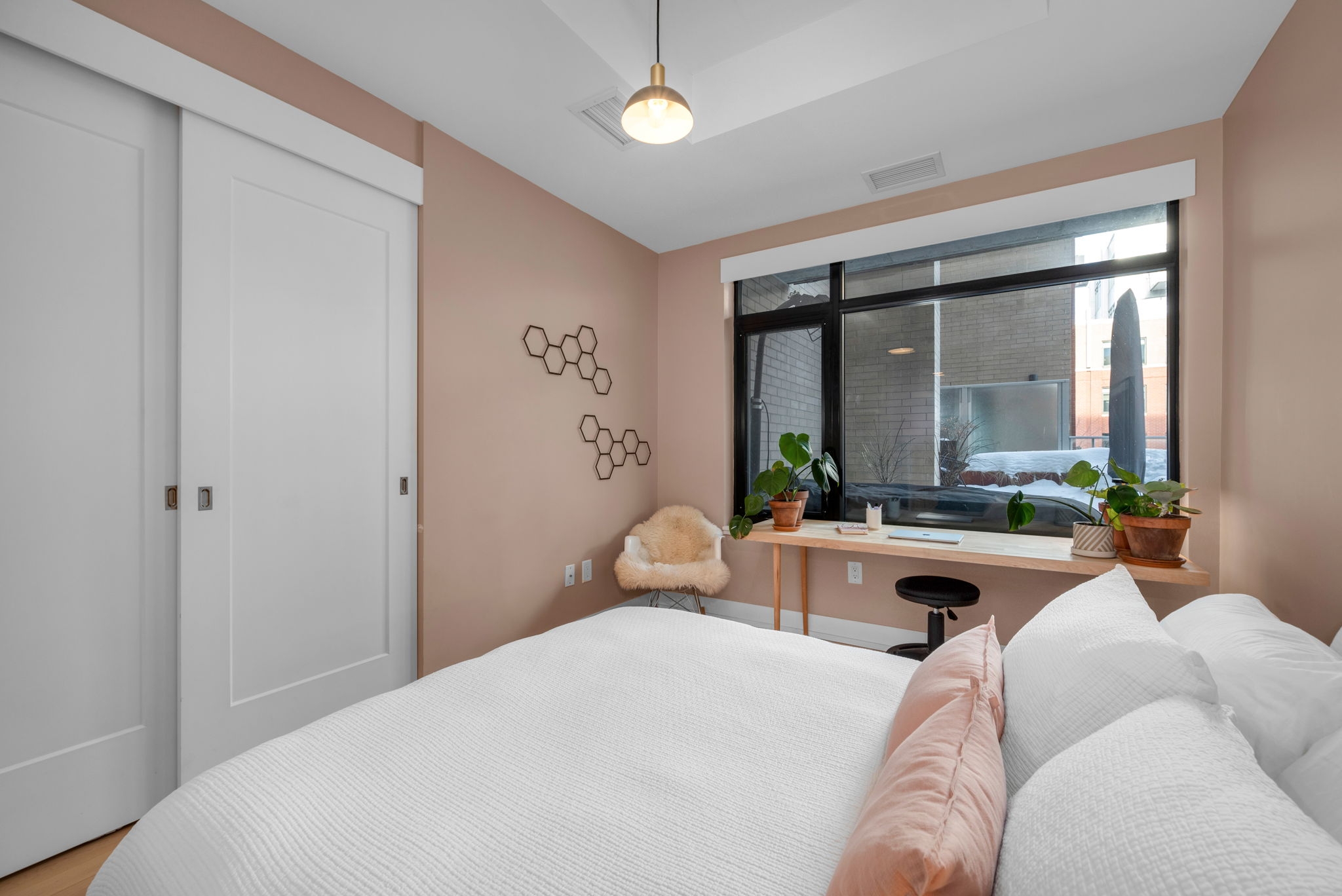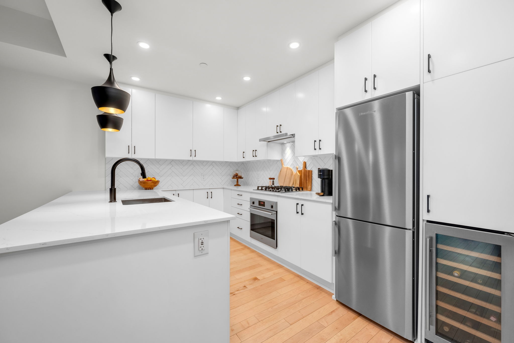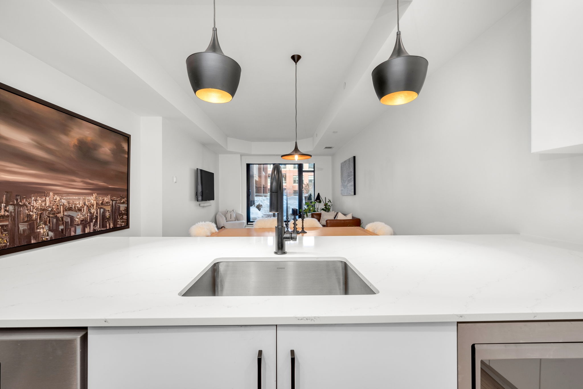 Live where convenience meets contemporary style at The Corners on Main. Built by Domicile, this bright and spacious 850 sq ft Harvey model offers one bedroom, two bathrooms, and thoughtfully curated upgrades throughout. High ceilings and oversized windows flood the space with natural light, while the upgraded kitchen steals the spotlight featuring quartz countertops, a chic herringbone backsplash, premium cabinetry with added storage at the island, and high-end appliances. A custom wine fridge seamlessly integrated into the pantry adds both function and flair. An extraordinary 400 sq ft private terrace is a standout feature, ideal for morning coffee, summer evenings, and entertaining under the stars. Convenience continues with exceptional amenities located on the same floor, including a fully equipped fitness room, stylish party room, guest suite, and a rooftop terrace. Underground parking and a storage locker provide added ease and practicality. All just steps from vibrant cafés, restaurants, green space, and the canal, this is urban living without compromise. Condo fees include building insurance, property management, maintenance, and reserve fund.