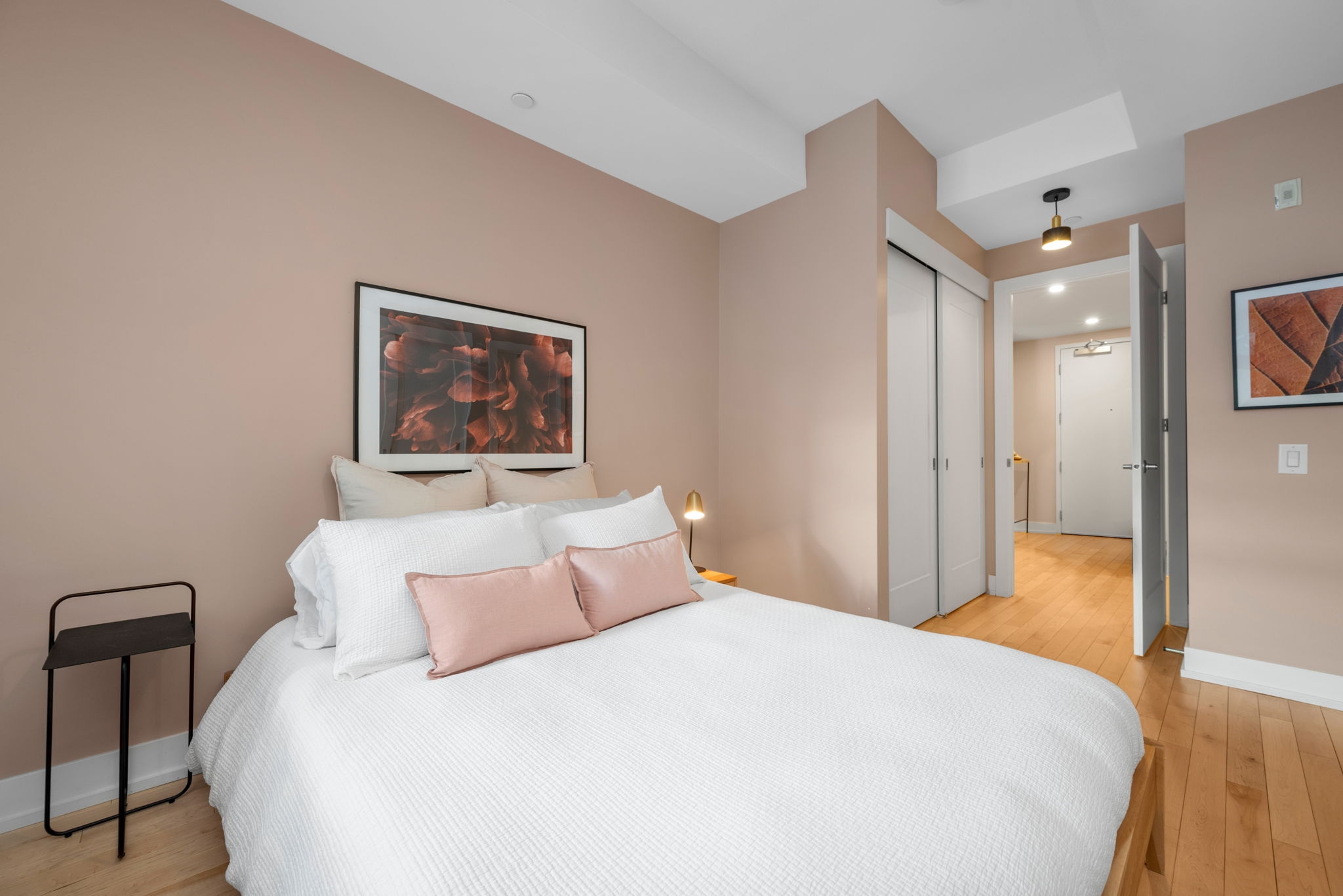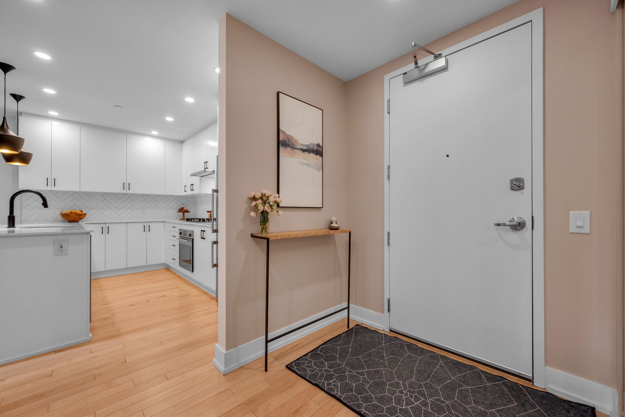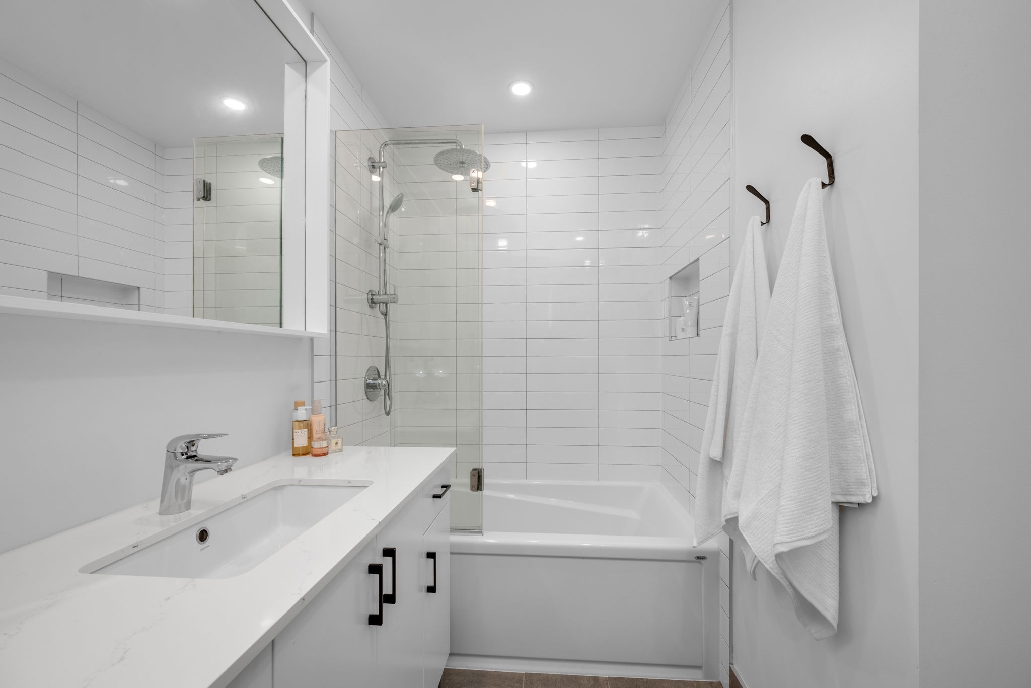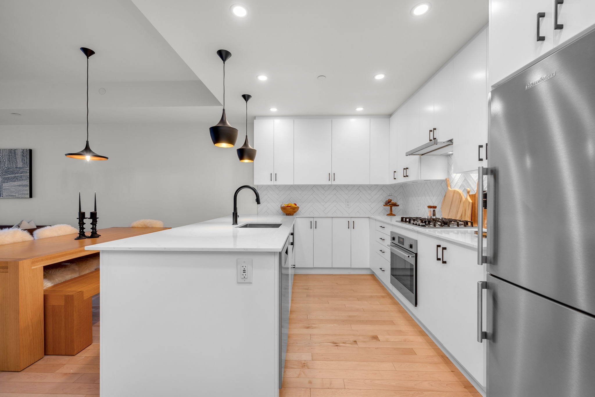 Live where convenience meets contemporary style at The Corners on Main. Built by Domicile, this bright and spacious 850 sq ft Harvey model offers one bedroom, two bathrooms, and thoughtfully curated upgrades throughout. High ceilings and oversized windows flood the space with natural light, while the upgraded kitchen steals the spotlight featuring quartz countertops, a chic herringbone backsplash, premium cabinetry with added storage at the island, and high-end appliances. A custom wine fridge seamlessly integrated into the pantry adds both function and flair. An extraordinary 400 sq ft private terrace is a standout feature, ideal for morning coffee, summer evenings, and entertaining under the stars. Convenience continues with exceptional amenities located on the same floor, including a fully equipped fitness room, stylish party room, guest suite, and a rooftop terrace. Underground parking and a storage locker provide added ease and practicality. All just steps from vibrant cafés, restaurants, green space, and the canal, this is urban living without compromise. Condo fees include building insurance, property management, maintenance, and reserve fund.