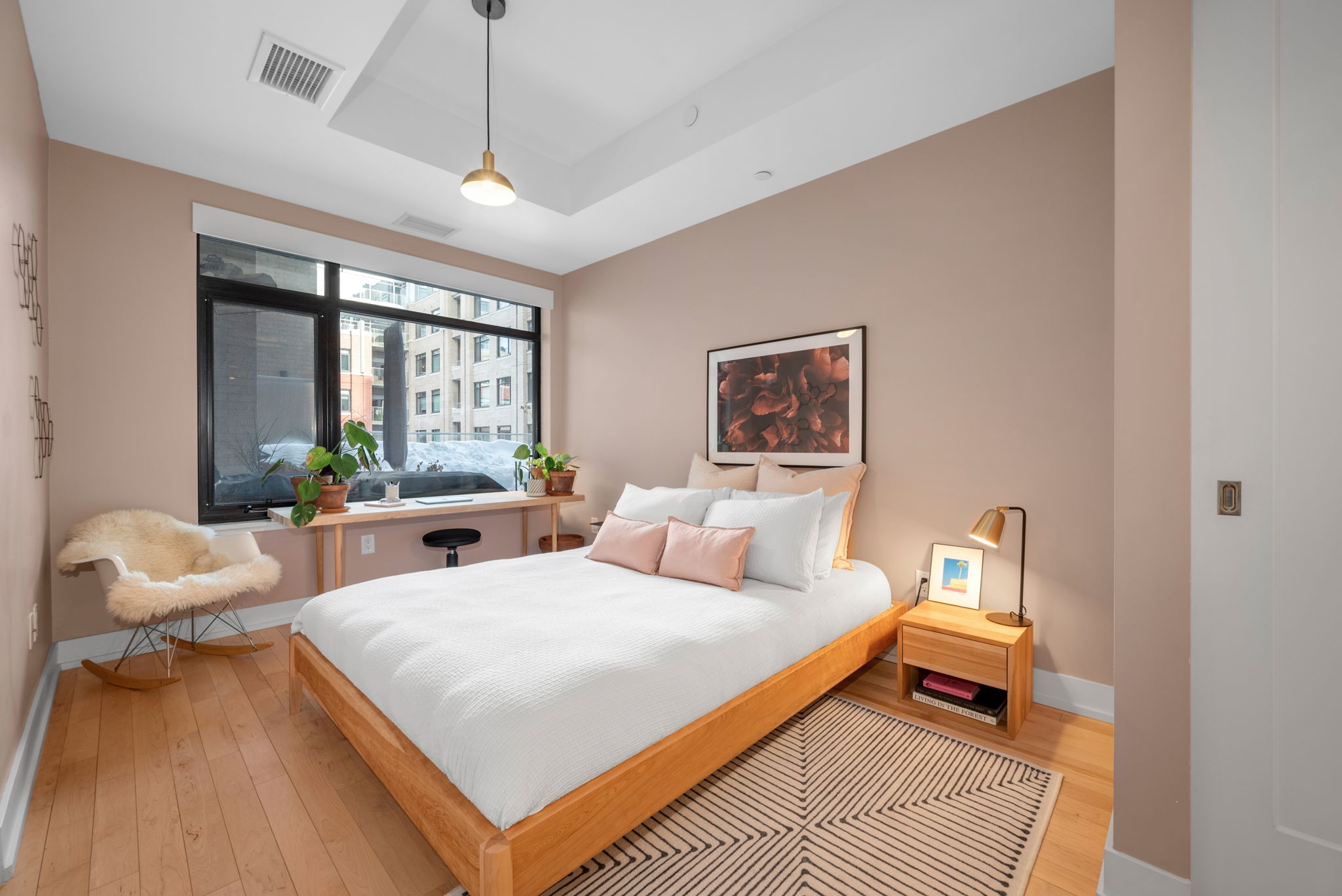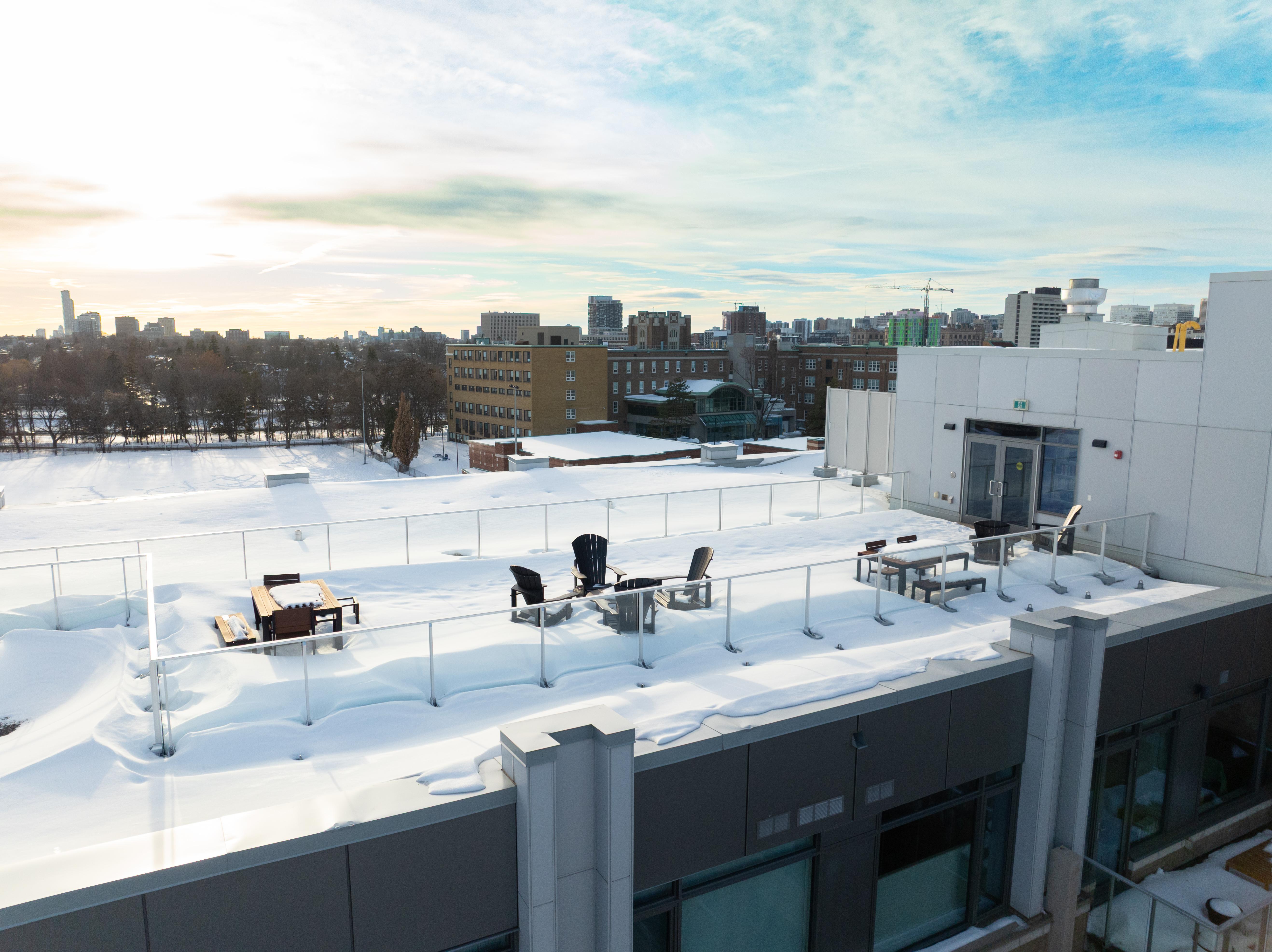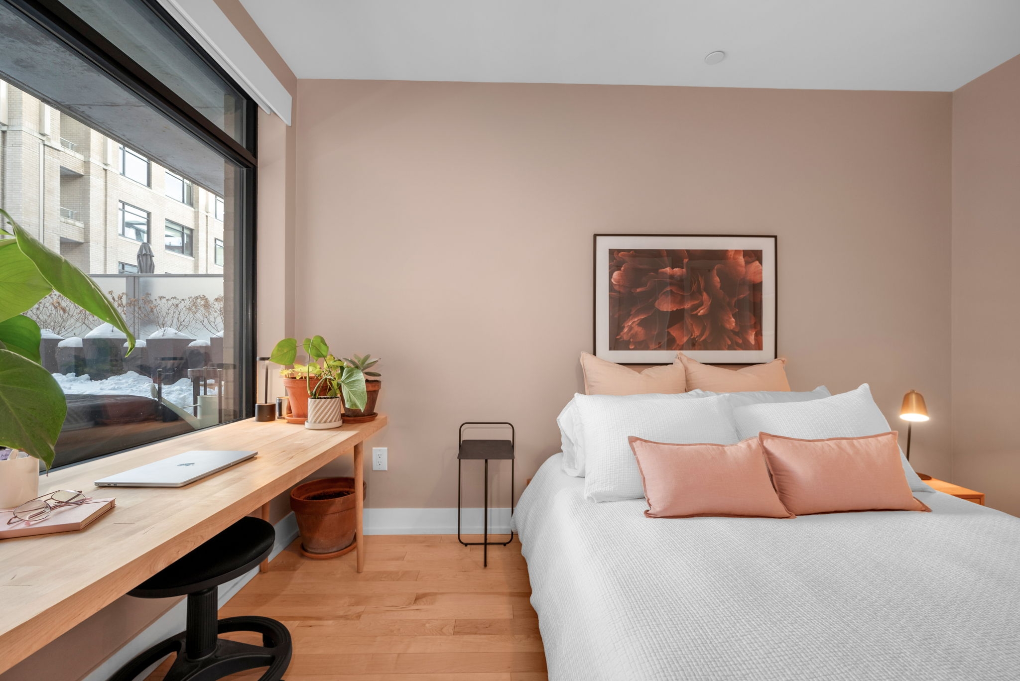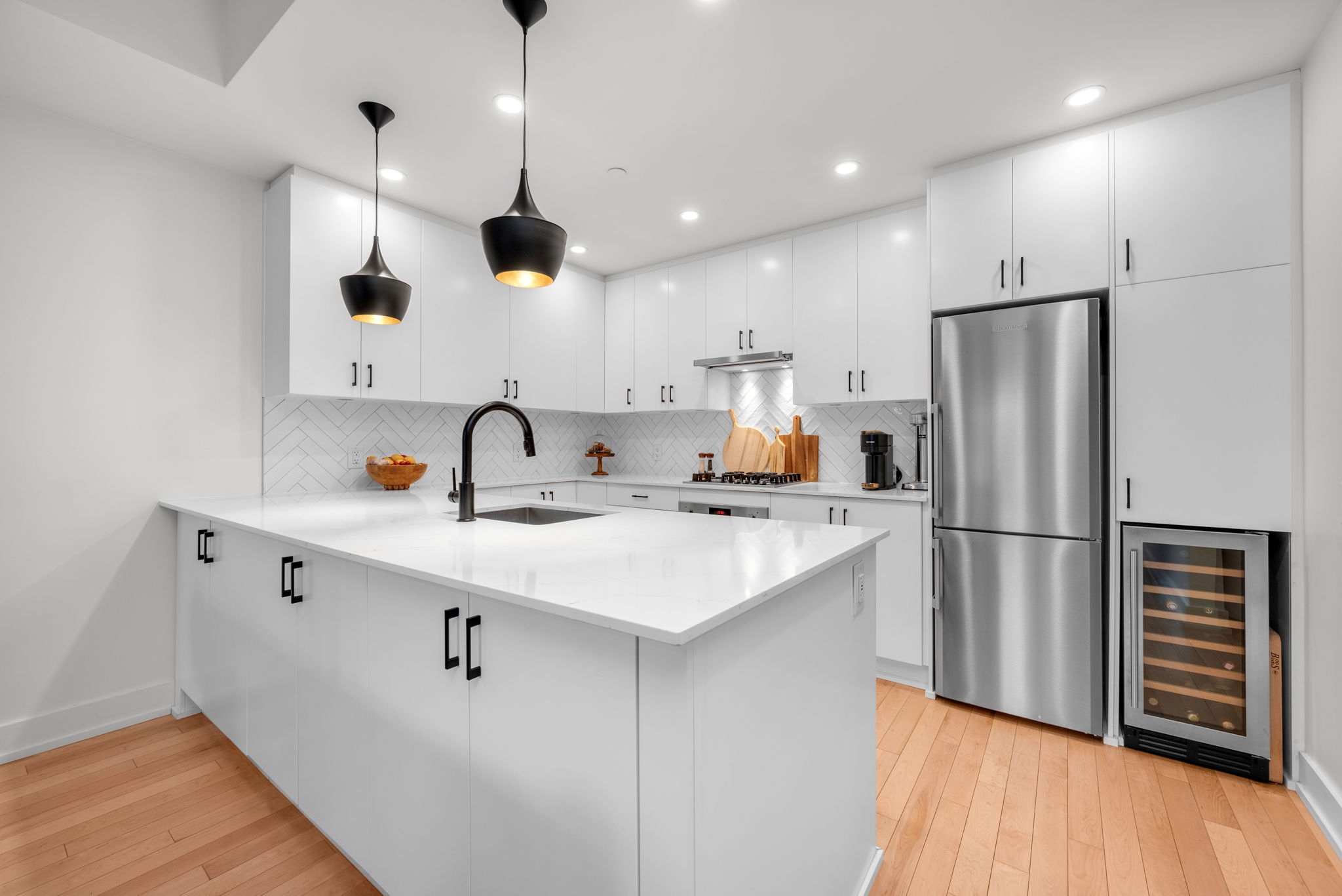 Live where convenience meets contemporary style at The Corners on Main. Built by Domicile, this bright and spacious 850 sq ft Harvey model offers one bedroom, two bathrooms, and thoughtfully curated upgrades throughout. High ceilings and oversized windows flood the space with natural light, while the upgraded kitchen steals the spotlight featuring quartz countertops, a chic herringbone backsplash, premium cabinetry with added storage at the island, and high-end appliances. A custom wine fridge seamlessly integrated into the pantry adds both function and flair. An extraordinary 400 sq ft private terrace is a standout feature, ideal for morning coffee, summer evenings, and entertaining under the stars. Convenience continues with exceptional amenities located on the same floor, including a fully equipped fitness room, stylish party room, guest suite, and a rooftop terrace. Underground parking and a storage locker provide added ease and practicality. All just steps from vibrant cafés, restaurants, green space, and the canal, this is urban living without compromise. Condo fees include building insurance, property management, maintenance, and reserve fund.