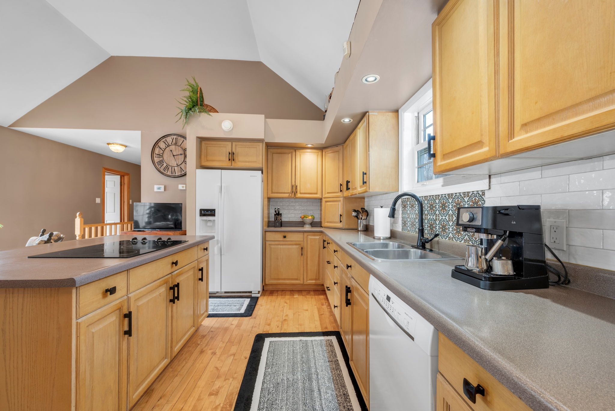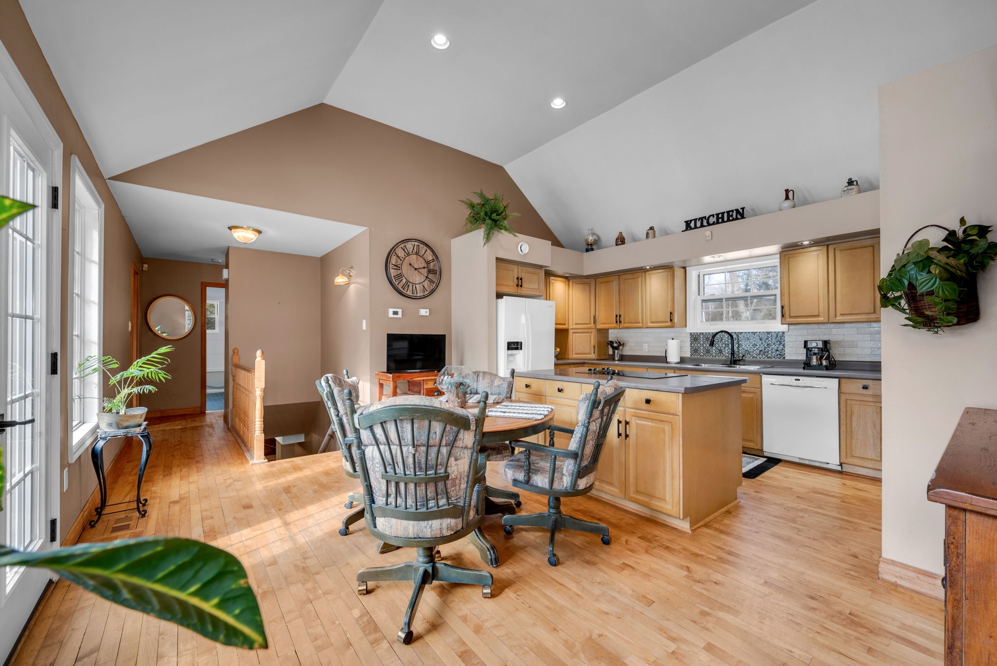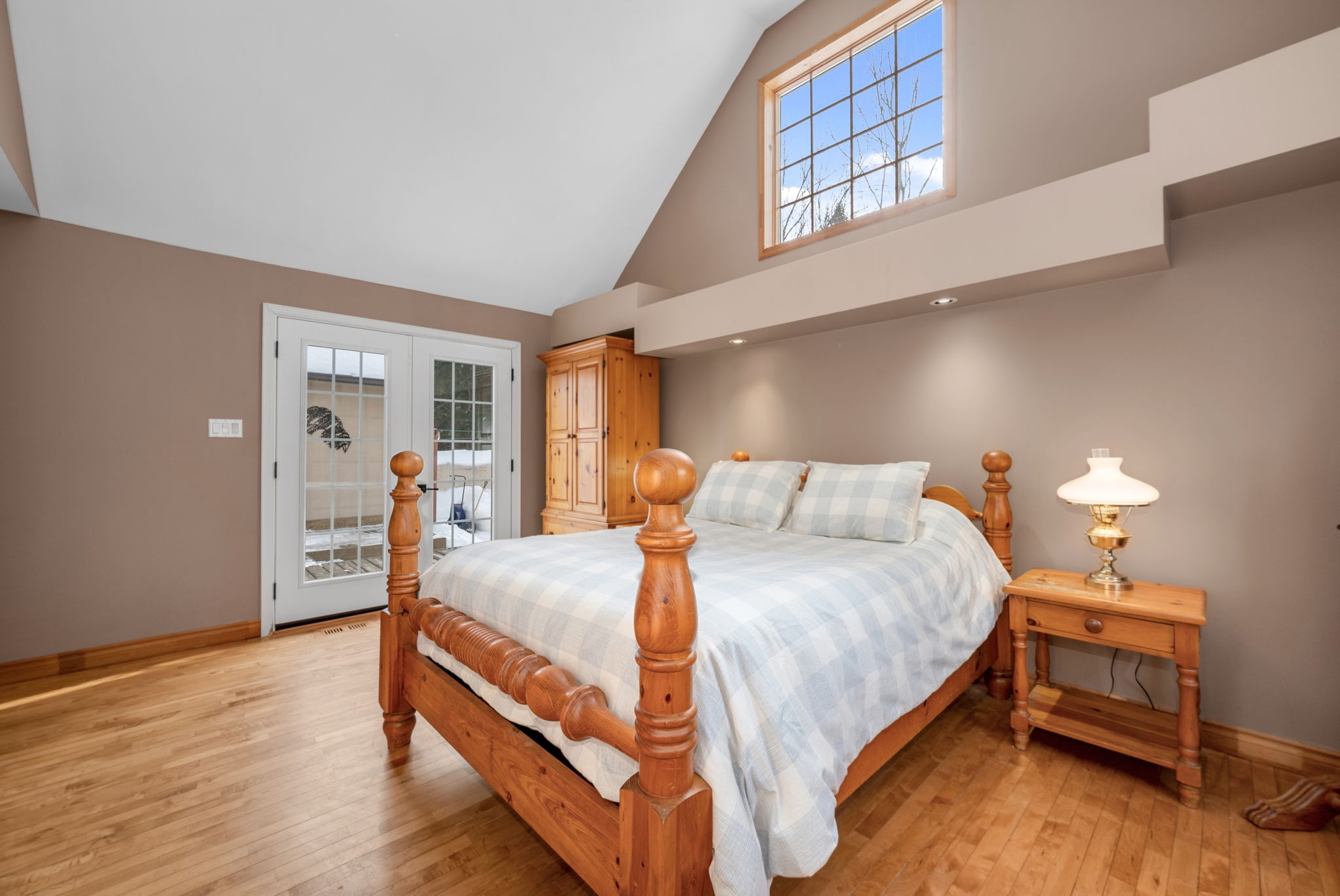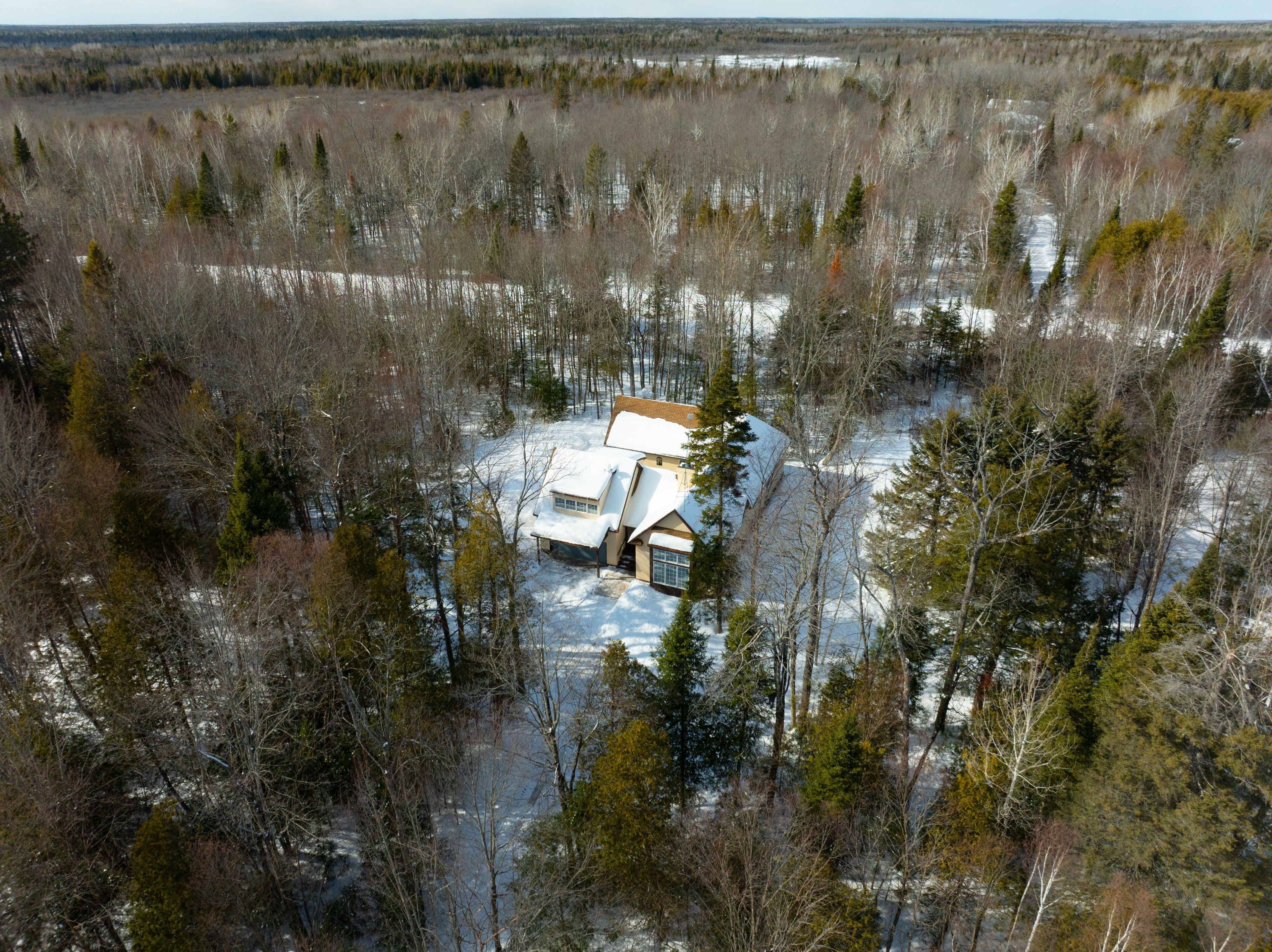 Space, privacy, and a home that feels like a private sanctuary. From the moment you enter, there's an instant sense of calm. Natural light pouring through expansive picture windows, soaring vaulted ceilings, and beautiful hardwood floors flowing throughout. The atmosphere is open yet inviting, elegant yet comfortable. At the center of it all, the sunken living room anchored by a classic wood-burning fireplace, is a space made for gathering, quiet nights by the fire, and conversations that stretch long into the evening. The kitchen blends function and charm, offering generous counter space, abundant cabinetry, and an effortless connection to the separate dining room. Whether it's everyday meals or hosting family and friends, the layout is designed to make gathering feel effortless. The spacious primary suite serves as a peaceful retreat from the day-to-day. A large walk-in closet provides ample storage, while the beautifully appointed ensuite complete with a rain shower, deep soaker tub, and dual vanities offers a calming, spa-inspired experience designed for true relaxation. Two additional bedrooms are bright and versatile, complemented by an updated family bathroom that balances comfort and style. Just when you think you have seen it all, a bonus loft above the garage adds exceptional flexibility, ideal for a home office, reading lounge, creative studio, or quiet hideaway. The finished basement further expands your living space, perfectly suited for a gym, rec room, media area, or workspace. Set on two picturesque acres, the property delivers the privacy and breathing room you've been searching for. A private courtyard with a new firepit sets the scene for memorable summer evenings under the stars, while the double car garage adds everyday convenience. For added peace of mind, the home is equipped with a generator ensuring reliability year-round. This isn't simply a home; it is a space to live fully. Come experience it for yourself.