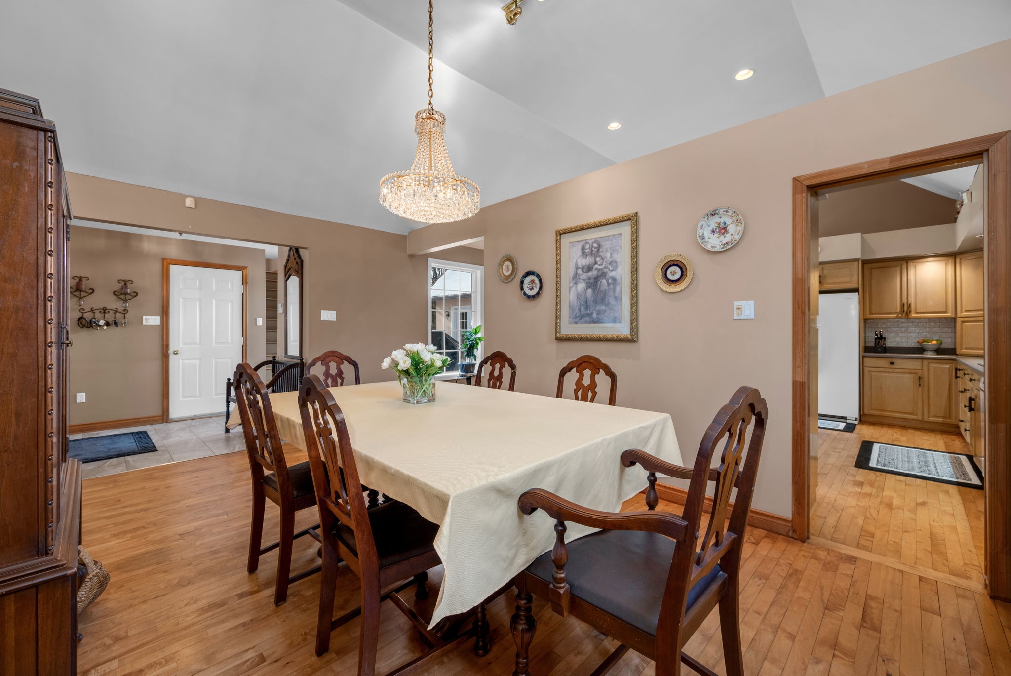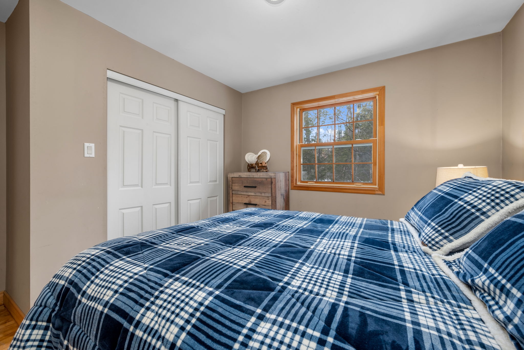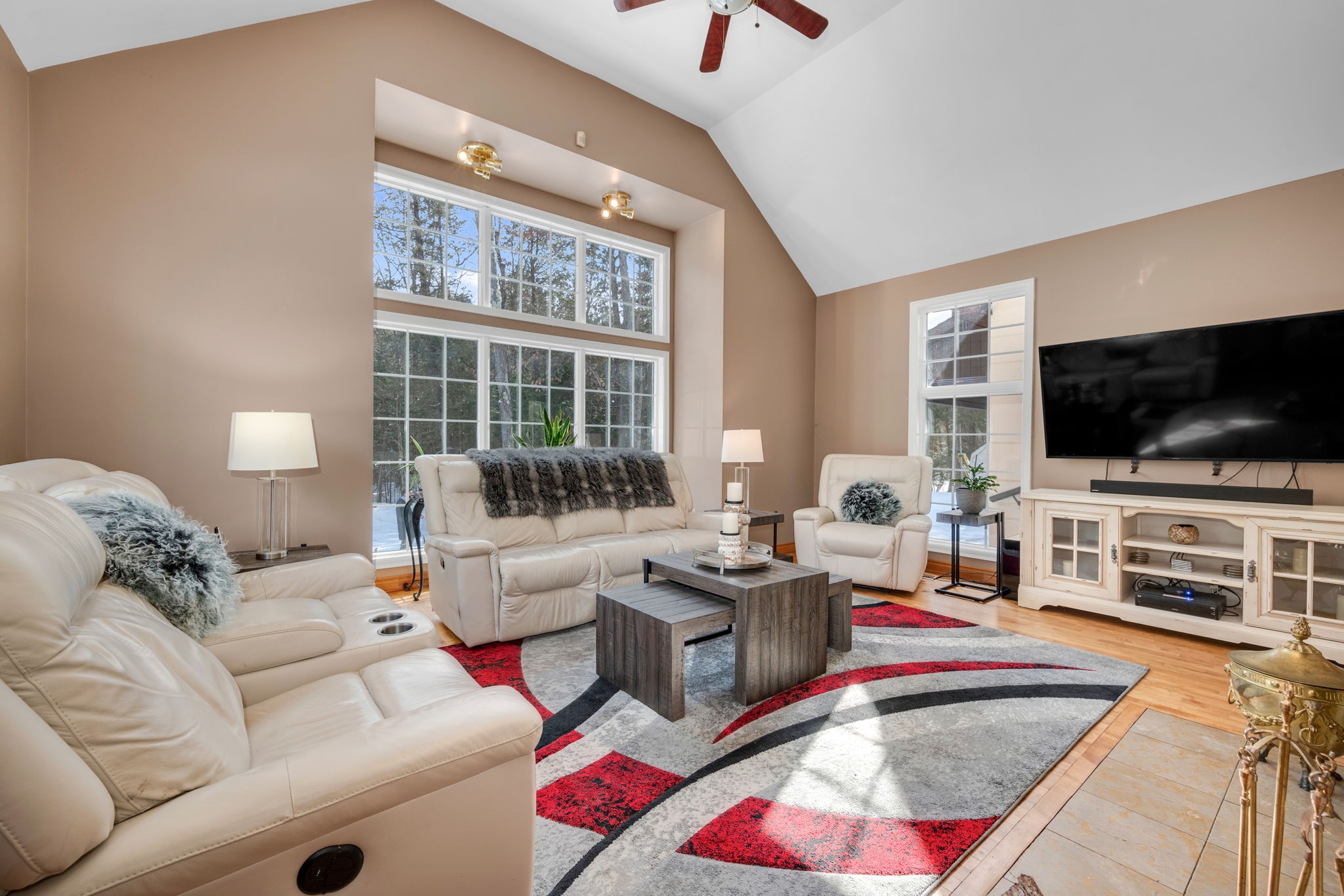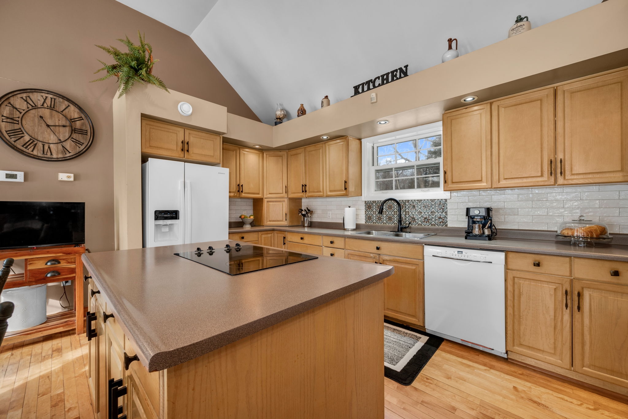 Space, privacy, and a home that feels like a private sanctuary. From the moment you enter, there's an instant sense of calm. Natural light pouring through expansive picture windows, soaring vaulted ceilings, and beautiful hardwood floors flowing throughout. The atmosphere is open yet inviting, elegant yet comfortable. At the center of it all, the sunken living room anchored by a classic wood-burning fireplace, is a space made for gathering, quiet nights by the fire, and conversations that stretch long into the evening. The kitchen blends function and charm, offering generous counter space, abundant cabinetry, and an effortless connection to the separate dining room. Whether it's everyday meals or hosting family and friends, the layout is designed to make gathering feel effortless. The spacious primary suite serves as a peaceful retreat from the day-to-day. A large walk-in closet provides ample storage, while the beautifully appointed ensuite complete with a rain shower, deep soaker tub, and dual vanities offers a calming, spa-inspired experience designed for true relaxation. Two additional bedrooms are bright and versatile, complemented by an updated family bathroom that balances comfort and style. Just when you think you have seen it all, a bonus loft above the garage adds exceptional flexibility, ideal for a home office, reading lounge, creative studio, or quiet hideaway. The finished basement further expands your living space, perfectly suited for a gym, rec room, media area, or workspace. Set on two picturesque acres, the property delivers the privacy and breathing room you've been searching for. A private courtyard with a new firepit sets the scene for memorable summer evenings under the stars, while the double car garage adds everyday convenience. For added peace of mind, the home is equipped with a generator ensuring reliability year-round. This isn't simply a home; it is a space to live fully. Come experience it for yourself.