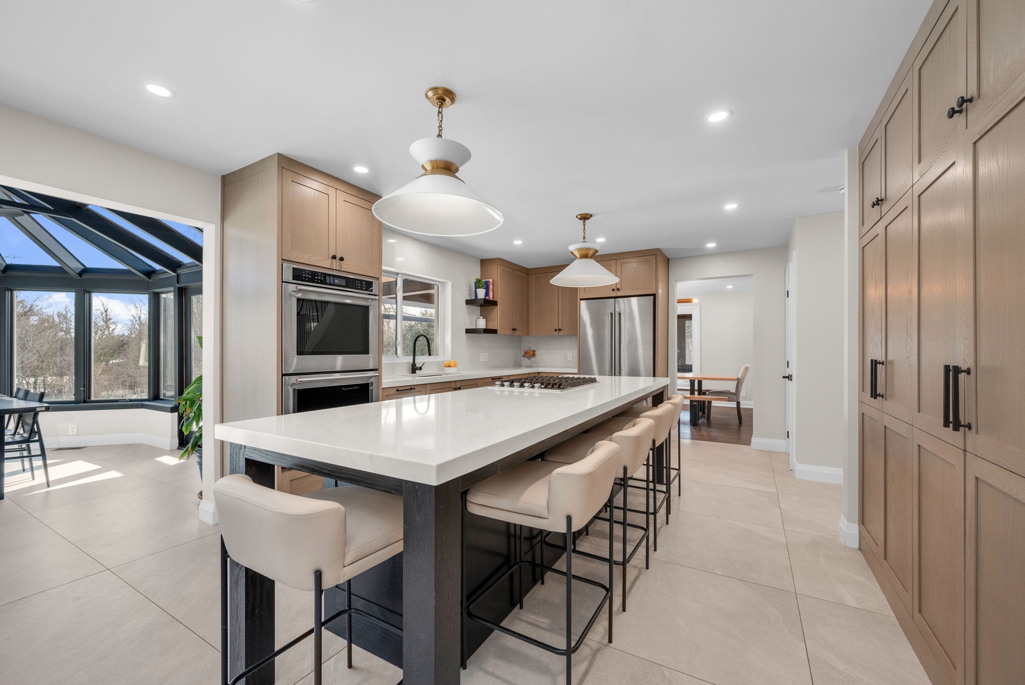 Welcome to your forever home in the heart of Metcalfe where thoughtful design, modern updates, and small-town charm come together. This extensively updated 3+1 bedroom, 4 full bathroom home offers exceptional living space designed for both everyday comfort and entertaining. The striking exterior with stone and new siding creates a stunning first impression, hinting at the style and thoughtful updates found throughout. Inside, well-designed principal rooms provide the perfect setting for holiday meals and celebrations, while warm, inviting spaces make daily life feel effortless. At the heart of the home is a stunning contemporary kitchen designed to impress while delivering exceptional functionality. Anchored by a large centre island, the space features built-in double ovens, a gas cooktop, abundant cabinetry, and a dedicated barista/beverage station. Just beyond, a sun-drenched sunroom overlooks the backyard and leads to the covered deck, creating a seamless flow between indoor and outdoor living. The inviting family room, warmed by a cozy fireplace, offers the perfect place to gather or unwind. A chic 3-piece bathroom on the main floor adds both convenience and flexibility for everyday living. Upstairs, the spacious primary bedroom offers a walk-in closet and a beautifully designed 4-piece ensuite featuring double sinks, a large walk-in shower, and a private water closet. Two additional bedrooms and a stylishly updated family bathroom provide comfortable space for family or guests. The finished basement with direct access to the garage adds versatility. Whether used as a fourth bedroom, rec room, home gym, guest suite, or teen retreat, it also includes a 3-piece bathroom for added comfort and privacy. Steps to Eldon Craig Park, the Metcalfe Loops, Community Christian School, and the village main street. Offering the perfect blend of style, space, and community living, this exceptional home is ready for its next chapter.