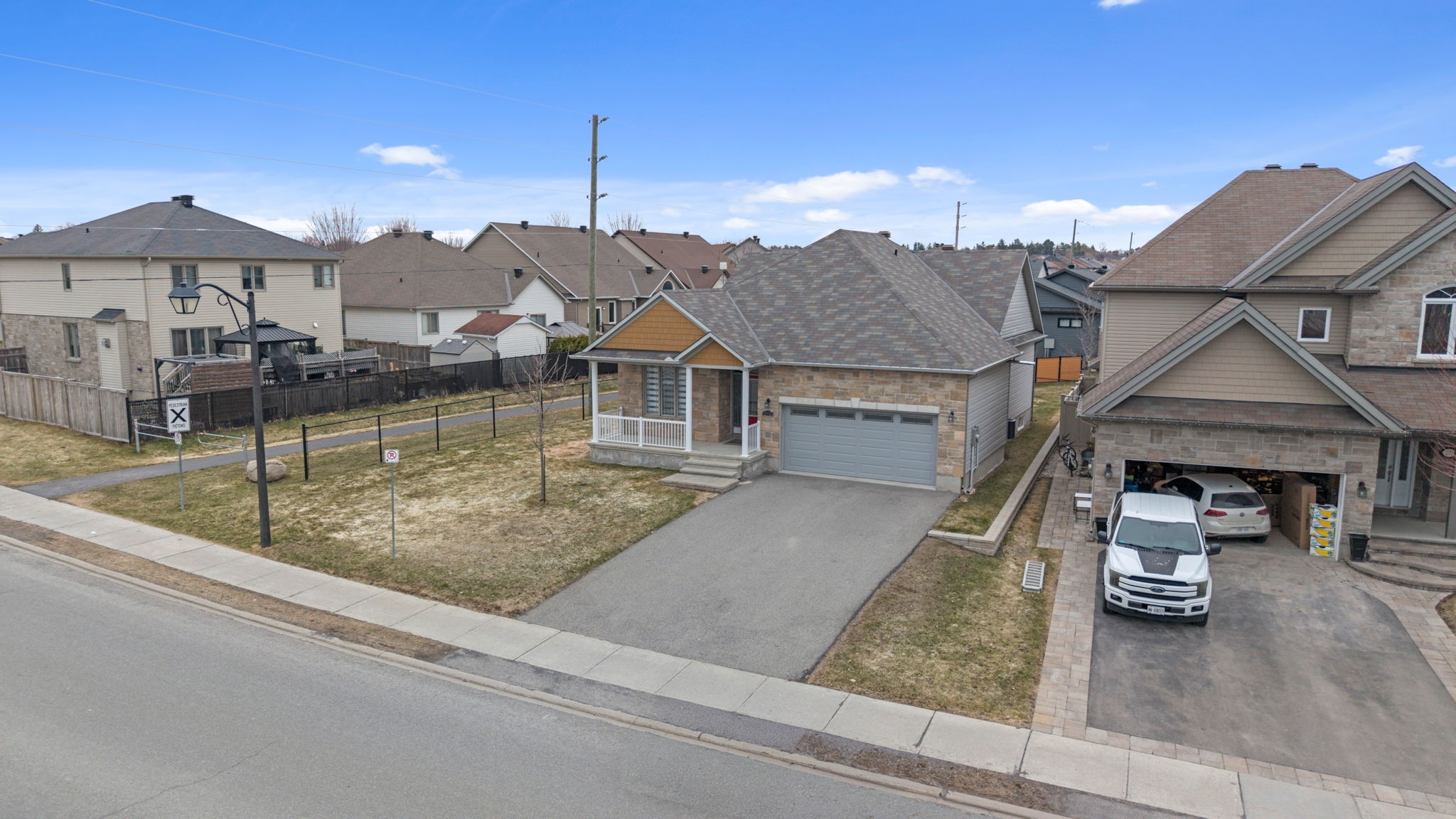 Welcome to 272 Sterling in the heart of Rockland, an inviting and well-appointed bungalow offering the perfect blend of comfort, space, and lifestyle.This beautifully maintained 2+1bedroom, 3 full bathroom home features an impressive main living area with soaring cathedral ceilings, creating a bright and airy atmosphere ideal for both everyday living and entertaining. The thoughtfully designed layout includes a spacious living room, a separate dining area for hosting, and a charming breakfast nook in the kitchen-perfect for relaxed mornings. The primary bedroom serves as a private retreat, complete with a generous walk-in closet and a luxurious 5-piece ensuite. A second bedroom and full bathroom complete the main level. The fully finished lower level expands your living space with a third bedroom, a dedicated craft room, a theatre room for movie nights, and a large storage area-offering flexibility for families, hobbies, and guests alike. Step outside to a fully fenced backyard featuring a large deck, patio area, and a storage shed-ideal for outdoor entertaining and enjoying the warmer months. For added peace of mind, the home is also equipped with a Briggs and Stratton generator. Located in a sought-after, family-friendly neighbourhood, this home is just steps from a walking path and close to schools, parks, and local amenities. A well-rounded property offering comfort, functionality, and an exceptional location-272 Sterling is ready to welcome you home.