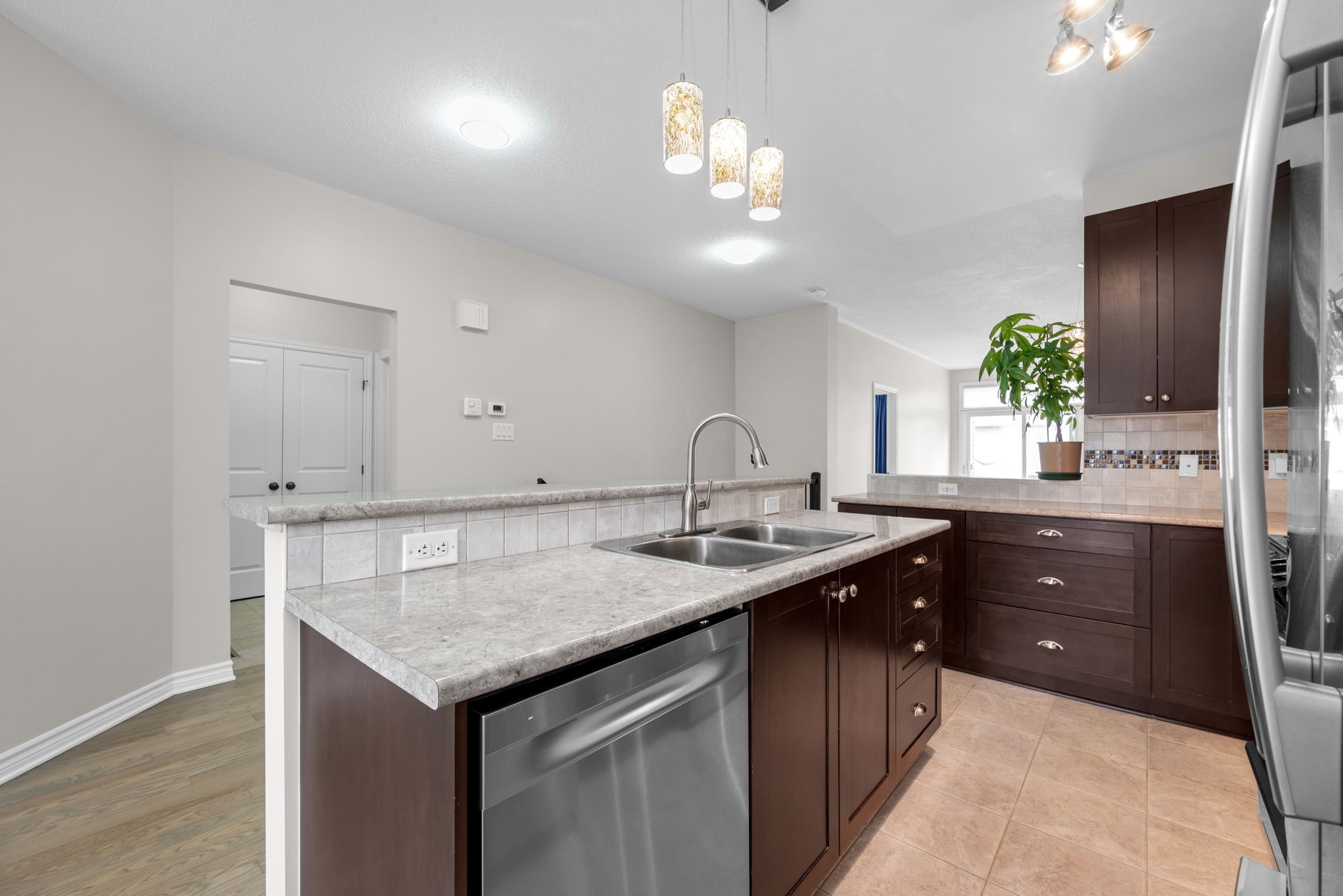 Welcome to 261 Bulrush Crescent, a well-maintained bungalow in the highly sought-after adult lifestyle community of Findlay Creek, offering low-maintenance living with convenient access to nearby amenities. The main level features a bright, open-concept layout with 9-foot ceilings and a seamless flow between the kitchen, living, and dining areas, highlighted by a gas fireplace with stone detailing. The kitchen includes a functional breakfast bar, eating area, and a brand new dishwasher, while the primary bedroom offers a walk-in closet and a private 4-piece ensuite. The finished basement extends the living space with a spacious recreation room, an additional bedroom or home office, a full bathroom, and ample storage. Recent updates include new hardwood flooring on the main level (2024), updated carpeting on the stairs (2024), luxury vinyl tile in the basement (2024), and freshly painted (2026), along with added security features on windows and doors. Outside, enjoy a west-facing backyard and a welcoming front verandah, completing this turnkey home in a well-established and desirable community.