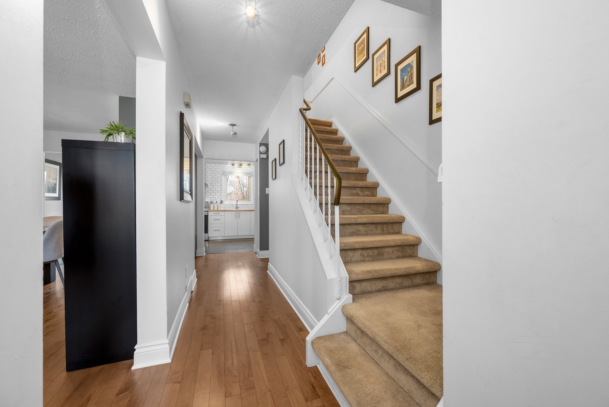Welcome to 6289 Vorlage Drive, nestled in the heart of sought-after Convent Glen North! One of Orléans most established and family-friendly communities, celebrated for its mature tree-lined streets, generous lots, and exceptional walkability. This beautifully maintained 3-bedroom, 1.5-bathroom home is tucked away on a quiet street with no rear neighbours, offering both privacy and tranquility. Set on an extra deep lot, the backyard is a true retreat, featuring fruit trees, raised garden beds, wooden deck and river rock landscaping, an ideal setting for relaxing or entertaining. Inside, the home showcases thoughtful updates throughout. The renovated kitchen (2019) is both stylish and functional, complete with white wooden cabinetry, wood countertops, stainless steel appliances, and abundant storage. Maple hardwood flooring flows seamlessly through the living and dining areas and continues across the entire second level, adding warmth and elegance. A refreshed powder room completes the main floor. Upstairs, you'll find a spacious primary bedroom, 2 secondary bedrooms, and a beautifully updated full bathroom. The finished basement extends your living space and offers great extra storage space. Key updates include a new roof (2026) and an owned hot water tank (2025), offering added peace of mind. Ideally located for active families, you're just a short walk to parks, schools, splash pads, skating rinks, and soccer and baseball fields. Enjoy quick access to the Ottawa River Pathway and the heritage cross country path for outdoor enthusiasts, along with nearby transit options including the LRT at Jeanne d'Arc Station. Shopping, dining, and everyday conveniences are minutes away and easy access to Highway 174 for a seamless commute.