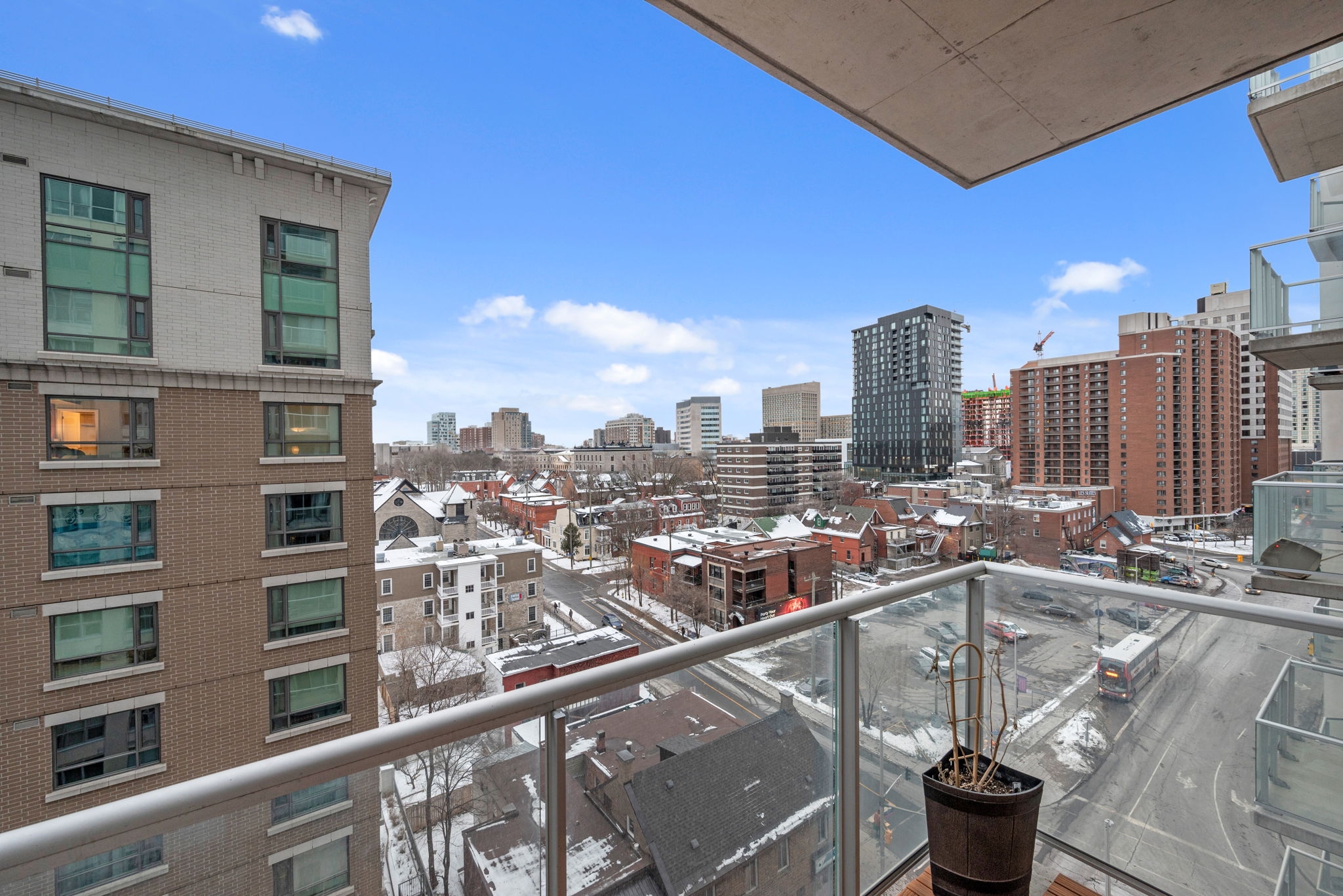 Experience the best of urban living in this stunning 1-bedroom + den condominium, offering breathtaking views and a modern open-concept design. Featuring hardwood floors and tile throughout, this spacious unit boasts both a private balcony and terrace, perfect for enjoying the city skyline. Enjoy 24-hour security for peace of mind, along with incredible building amenities designed to enhance your lifestyle. Located just steps from some of Ottawas most iconic landmarks, including the Rideau Centre, University of Ottawa, Parliament Hill, ByWard Market, and the Rideau Canal, this prime location offers unmatched convenience. Don't miss this opportunity to live in the heart of the capital! **EXTRAS** Condo Fee Includes: Heat, Water/Sewer, Gas, Building Insurance, Management Fee