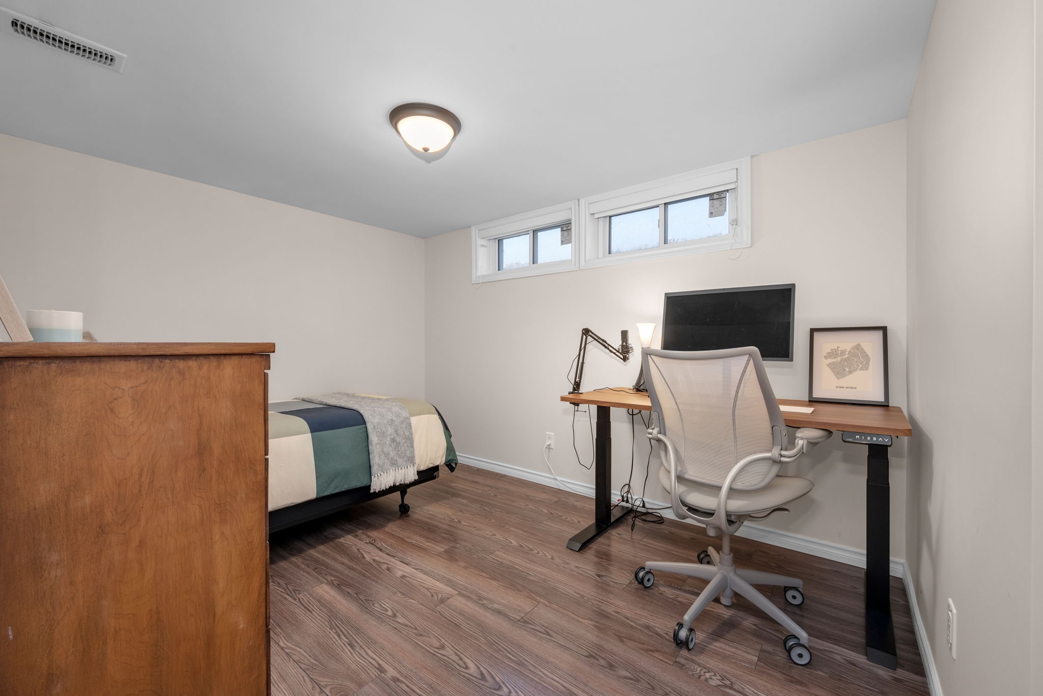 Are you looking for a turn-key home with income potential in a family-oriented neighbourhood? This meticulously maintained 3+1 bedroom, 2 full bathroom home offers exceptional versatility and pride of ownership throughout.Step inside to discover a bright and airy floor plan with an updated kitchen featuring an integrated dining area, a classic white cabinetry, stainless steel appliances, quartz countertops, a farmhouse sink, and a timeless subway tile backsplash. The sun-soaked front living room showcases a beautiful new bay window, filling the space with natural light and creating a warm, inviting setting for everyday living and entertaining.The main level offers three well-proportioned bedrooms with stylish accent walls and an updated main bathroom complete with a dual-sink vanity and stunning herringbone-tiled shower. This bathroom is also roughed in for laundry. The fully finished lower level features a 1 bedroom plus den in-law suite, ideal for extended family or generating rental income. This inviting space includes an open concept living area with a reclaimed wood accent wall, a renovated kitchen with newer appliances, butcher block countertops, subway tile backsplash, and breakfast bar. A sizeable primary bedroom, updated bathroom with in-unit laundry, and a spacious utility/storage room complete this level.Enjoy outdoor living in the fully fenced backyard, highlighted by an oversized deck, an ideal setting for summer gatherings.Ideally located in a family friendly neighbourhood, this home offers close proximity to CHEO, The Ottawa Hospital General Campus, parks, shopping, and transit, and is situated within the highly desirable Canterbury High School catchment.An ideal opportunity for the savvy buyer seeking a move-in-ready home with built-in income potential.