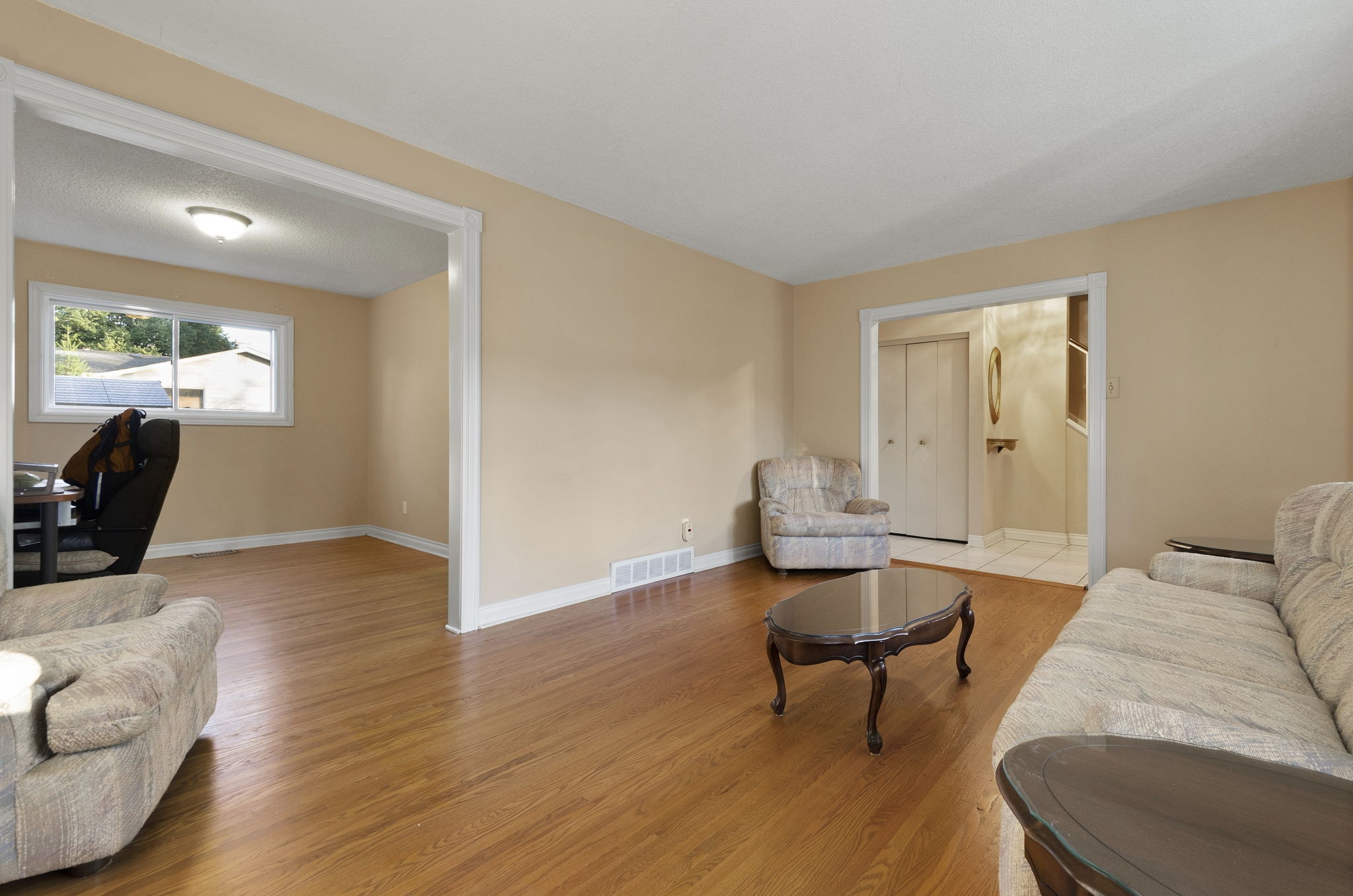 Welcome to this charming 4 bedroom home on a large lot in the family friendly neighbourhood of Redwood Park. Gifting endless potential, a traditional style and a classic layout. Bright and spacious principal rooms graced with gleaming hardwood floors and large windows offer ample space for entertaining. A spacious eat-in kitchen with loads of storage overlooks the rear yard and a convenient main floor laundry and powder room complete the main level. Hardwood floors run throughout the 2nd level, home to 4 bedrooms and a full bathroom, offering plenty of space for a growing family. Bonus square footage is available in the finished basement, perfect for a family room, home gym or office. Bounded by a mature hedge, the large back yard with stone patio offers a peaceful outdoor setting to this lovingly maintained home. Close to all amenities, parks, schools, HWY 417, transit and more!