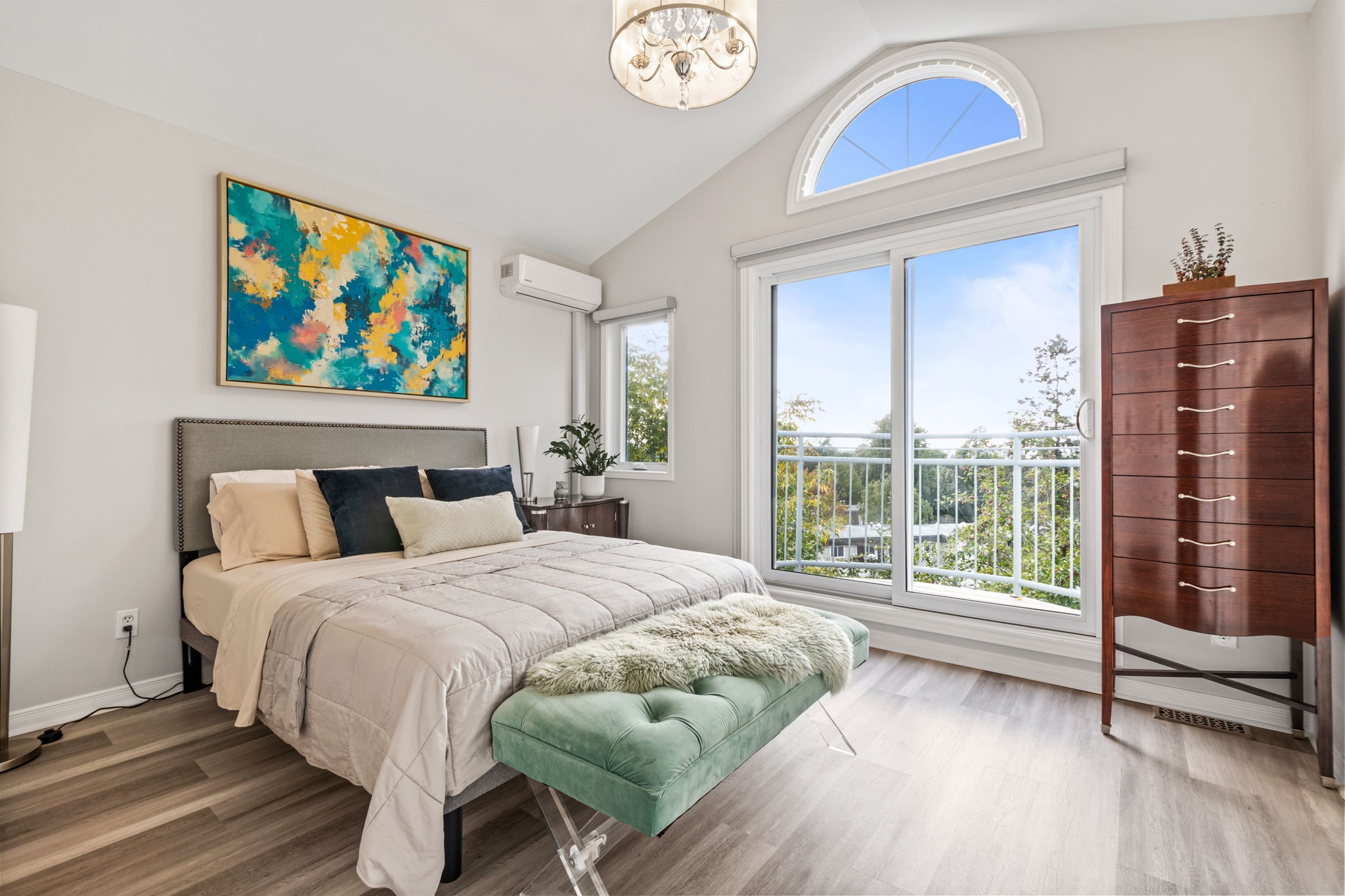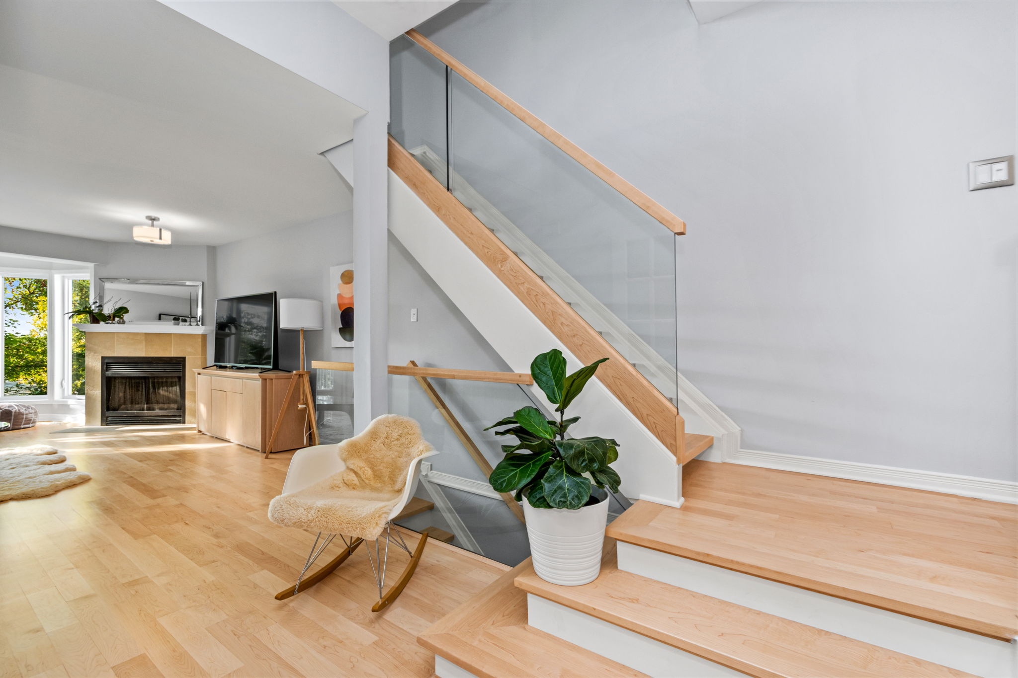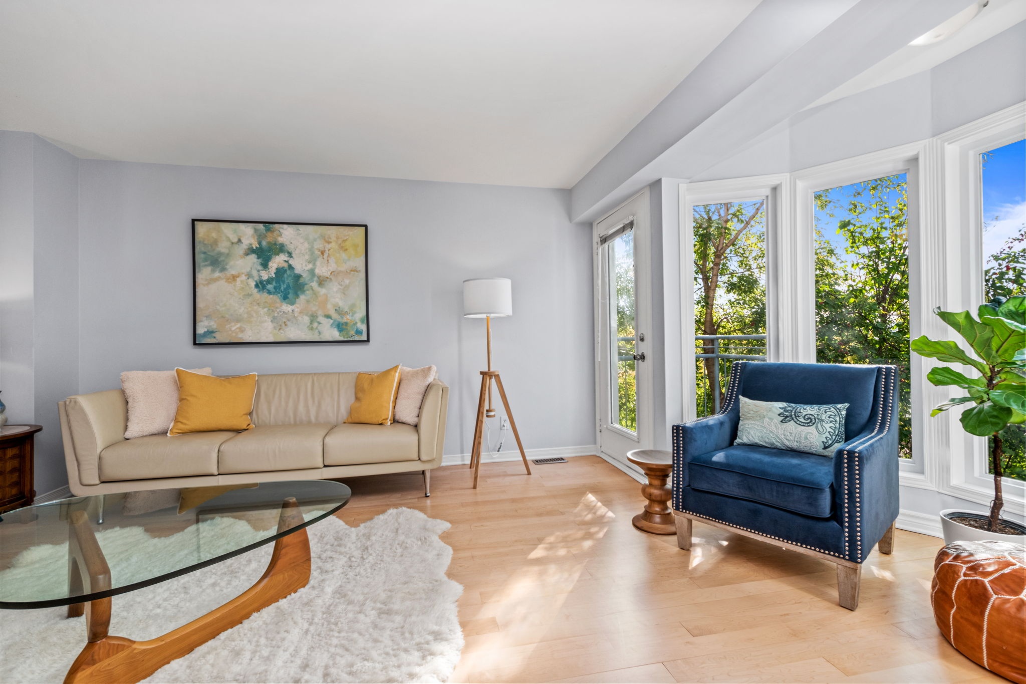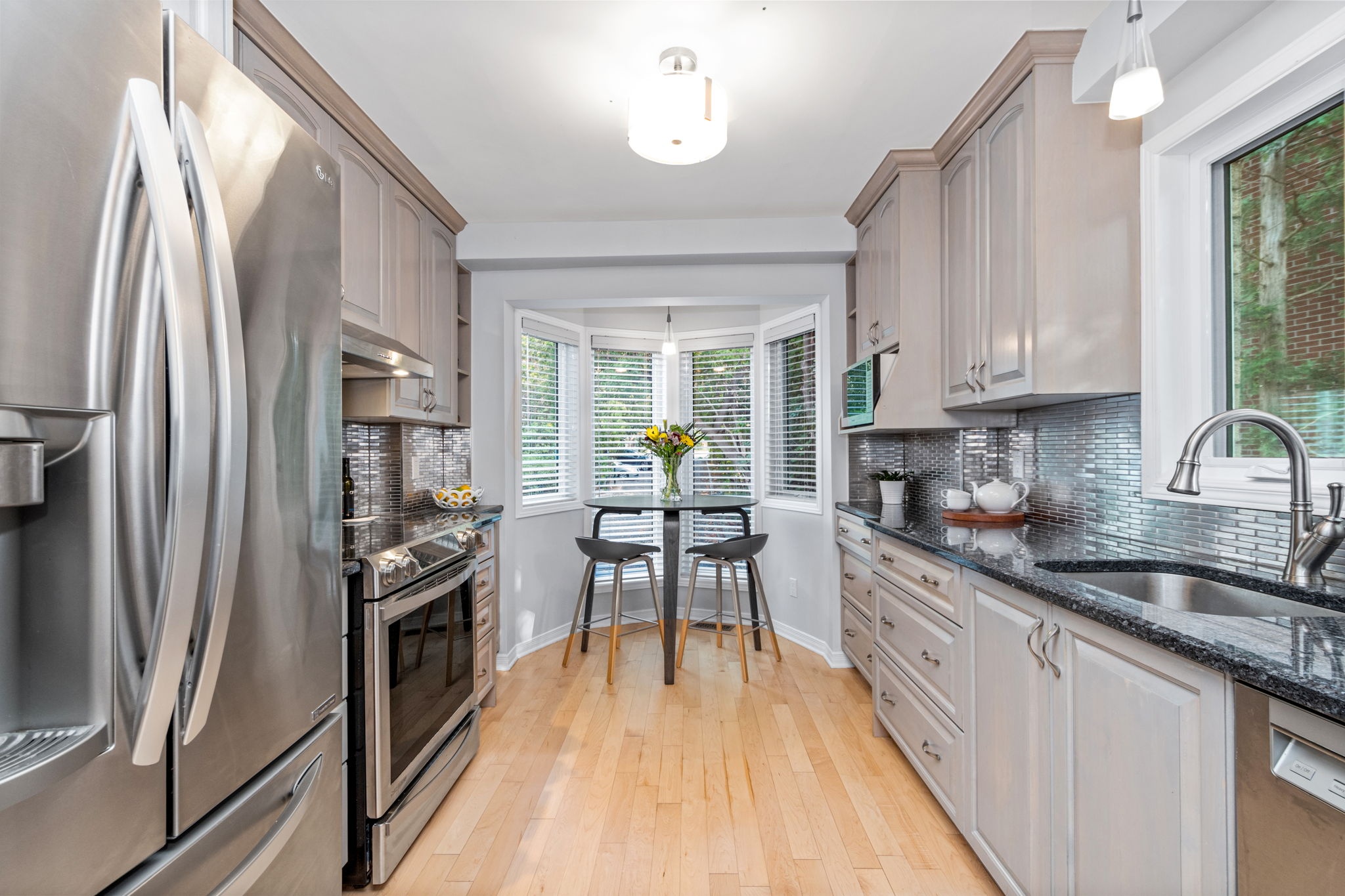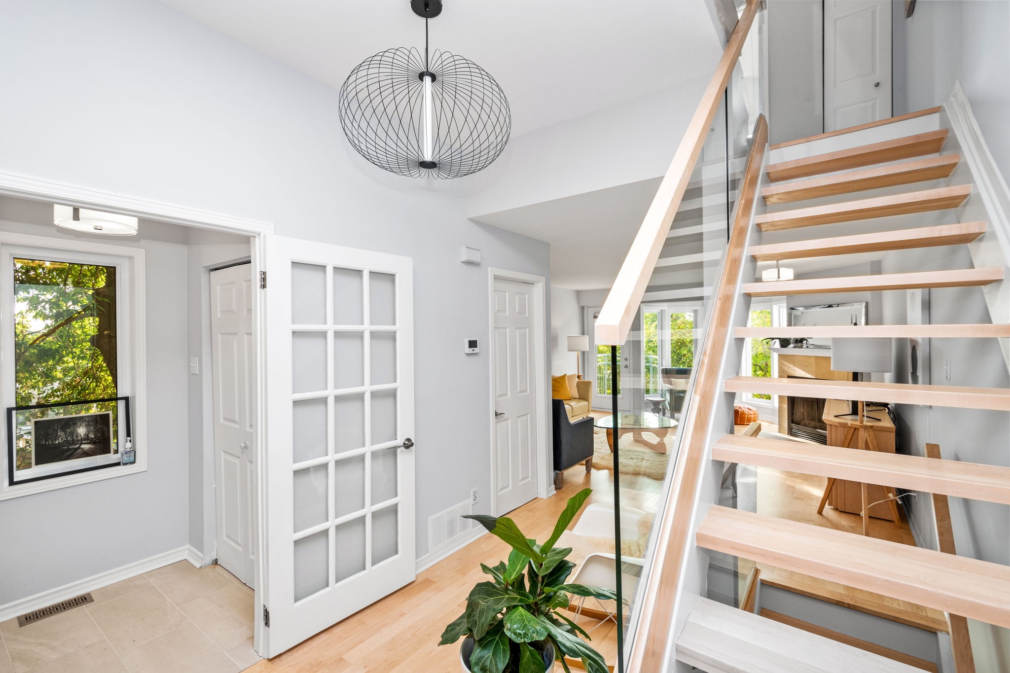 Situated in a secluded enclave in Britannia Heights, this extensively updated and tastefully finished home is a hidden gem. Glass railings, an open riser staircase and plenty of windows gift an open airy impression. Well-scaled principal rooms include a sun filled living room with corner fireplace and private balcony and a formal dining room for entertaining. An epicurean kitchen with an inviting eating nook is well-appointed with maple millwork, granite counters and unified appliances. The captivating staircase leads to the upper level with new luxury vinyl flooring. Two secondary bedrooms and a full bathroom complement the primary retreat with a cathedral ceiling, private balcony with panoramic views and a luxury ensuite with glass shower. A large family room on the lower level adds bonus living space to this stunning home with patio doors that guide you to a peaceful deck with a tree-lined backdrop. Steps to walking/biking paths. Close to shops/HWY 417,Transit & LRT. Assoc. fee for snow & grass.