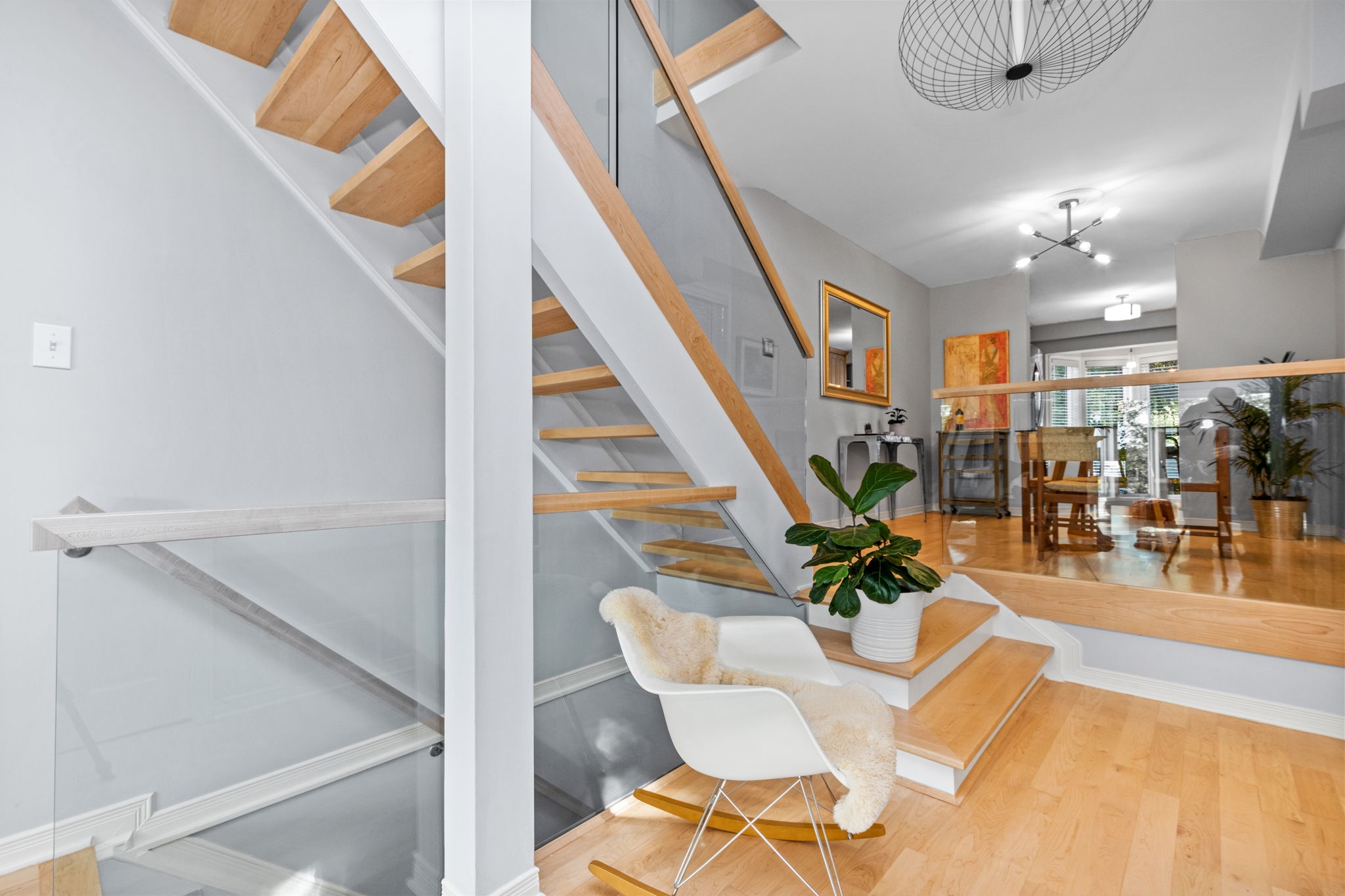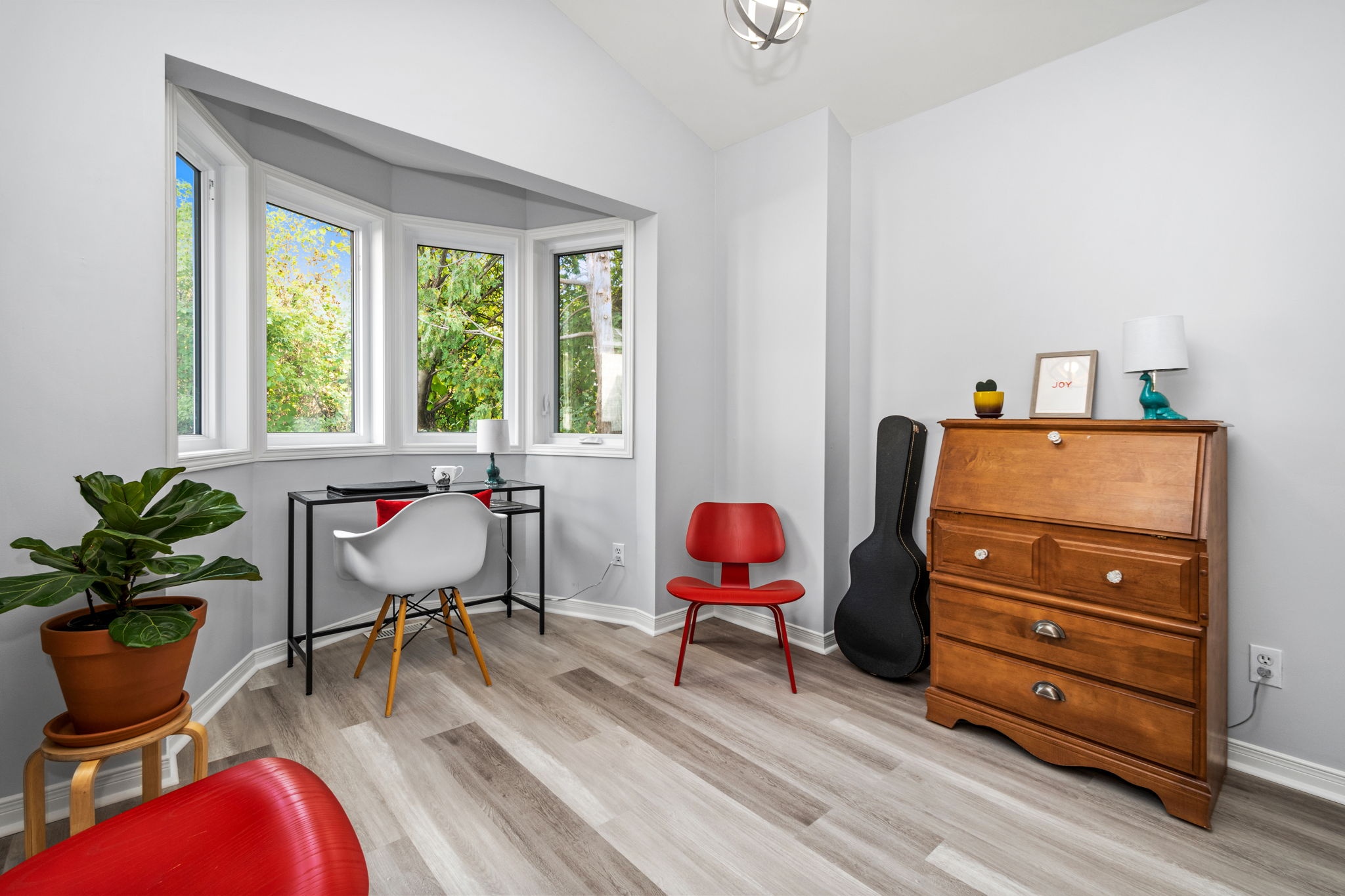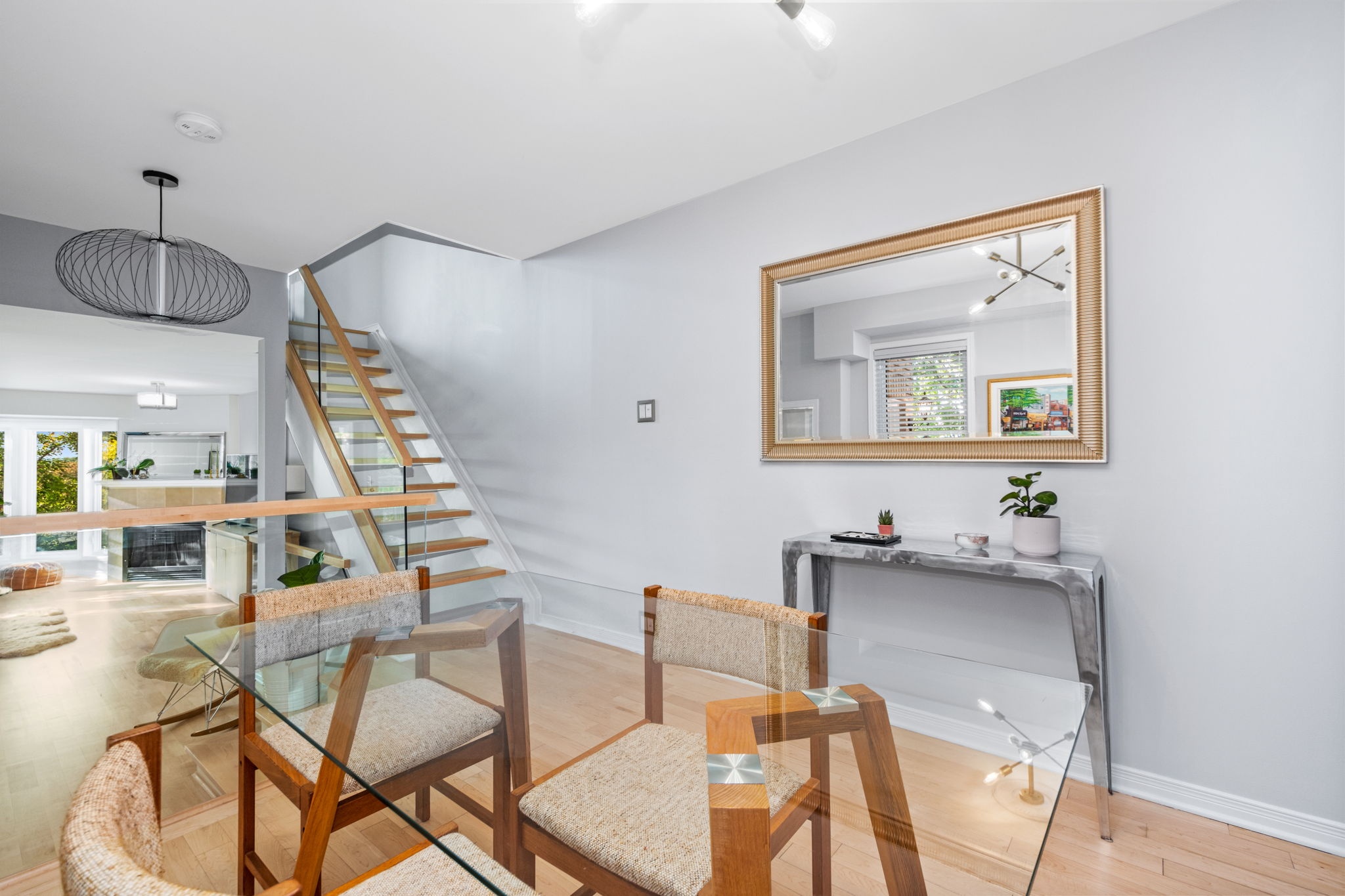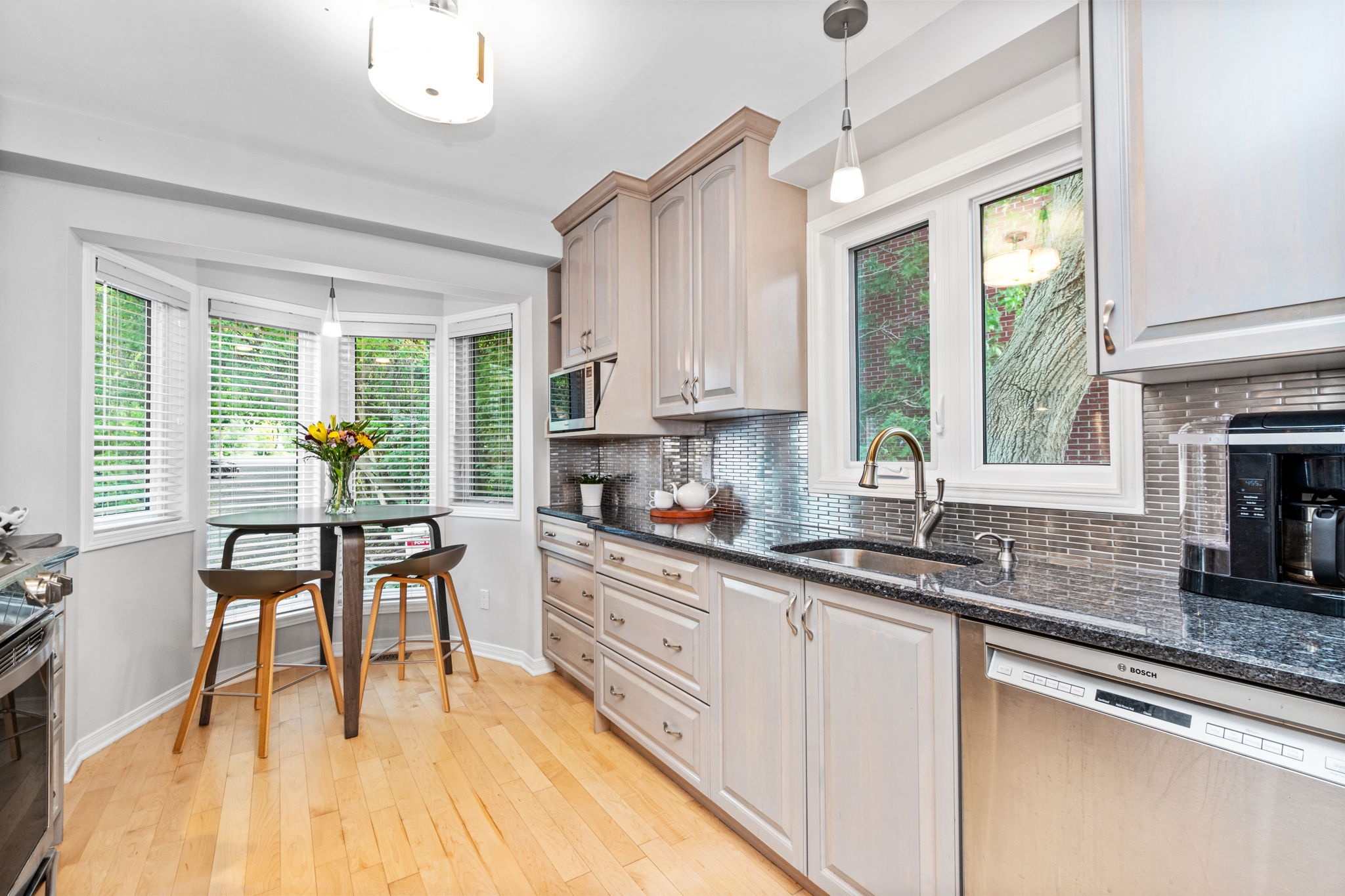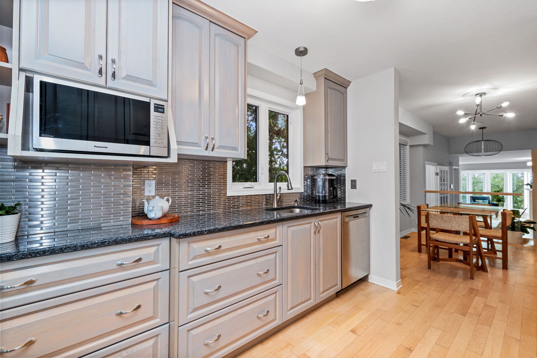 Situated in a secluded enclave in Britannia Heights, this extensively updated and tastefully finished home is a hidden gem. Glass railings, an open riser staircase and plenty of windows gift an open airy impression. Well-scaled principal rooms include a sun filled living room with corner fireplace and private balcony and a formal dining room for entertaining. An epicurean kitchen with an inviting eating nook is well-appointed with maple millwork, granite counters and unified appliances. The captivating staircase leads to the upper level with new luxury vinyl flooring. Two secondary bedrooms and a full bathroom complement the primary retreat with a cathedral ceiling, private balcony with panoramic views and a luxury ensuite with glass shower. A large family room on the lower level adds bonus living space to this stunning home with patio doors that guide you to a peaceful deck with a tree-lined backdrop. Steps to walking/biking paths. Close to shops/HWY 417,Transit & LRT. Assoc. fee for snow & grass.