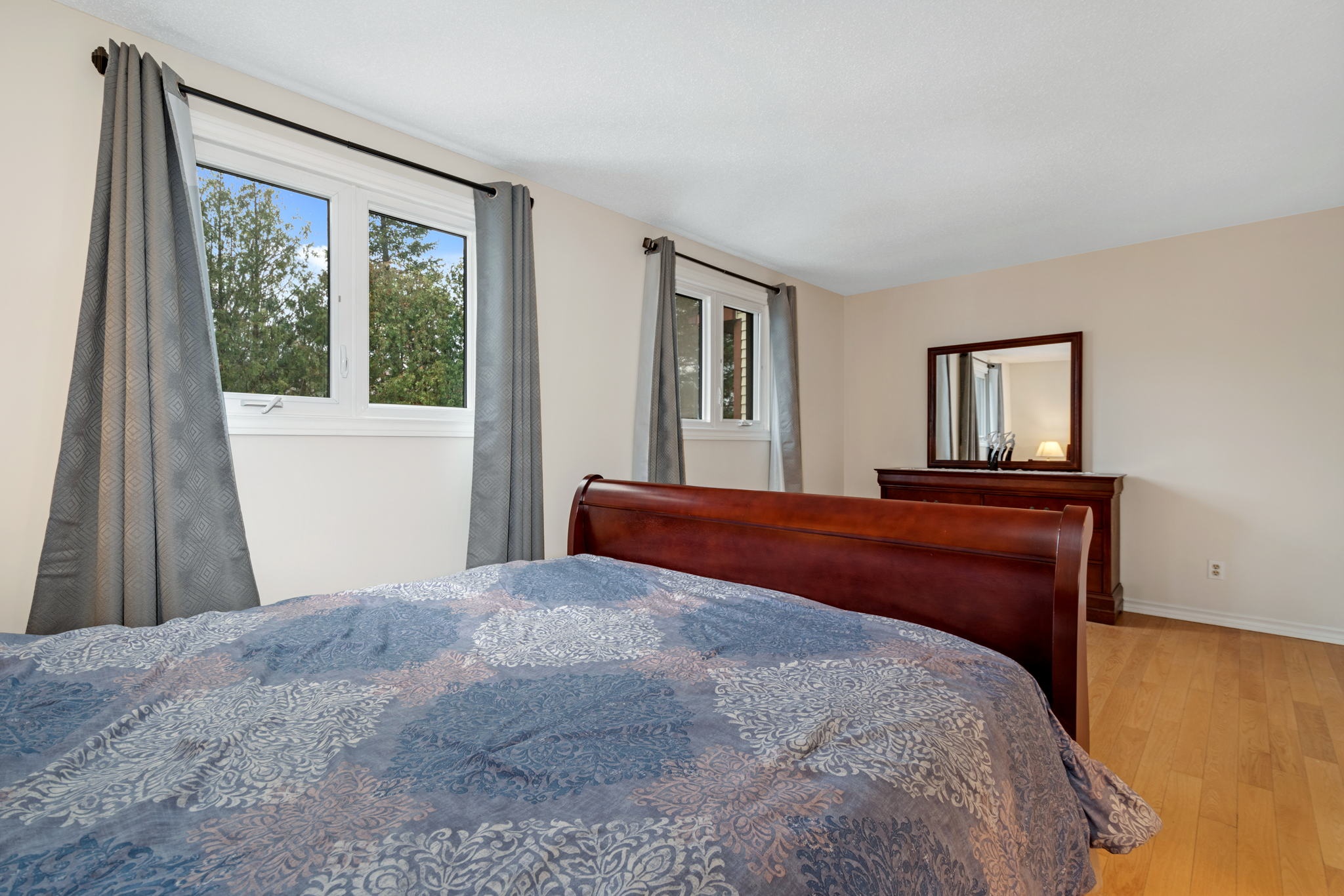 Close to shopping, major transit routes, river/bike paths and schools, this well-appointed condo townhome with an attached single car garage in the heart of Convent Glen is not to be missed. The welcoming tiled foyer leads to a tastefully updated eat-in kitchen with plenty of counter and cupboard space and newer S/S appliances. New hardwood floors grace the spacious L-shaped living room and dining room with access to the fenced rear yard with an inviting deck. New hardwood floors run throughout the 2nd level where you will discover 2 generous bedrooms and an updated full bathroom that accompany the large primary bedroom complete with a walk-in closet and 2 piece ensuite. A large rec room with laminate flooring on the lower offers bonus living space along with a storage room and utility room. Furnace/AC 2018, Roof 2009, Windows 2004. Condo Fee includes Water/Sewer.