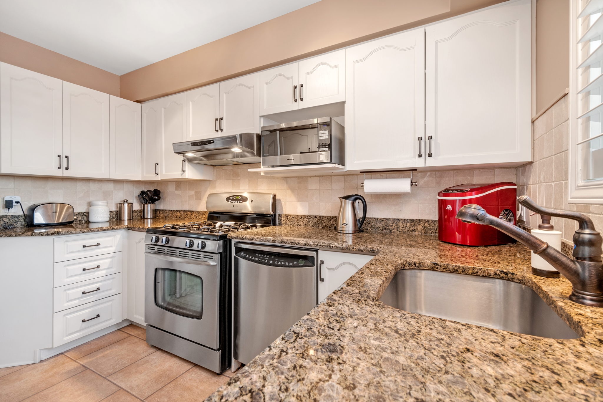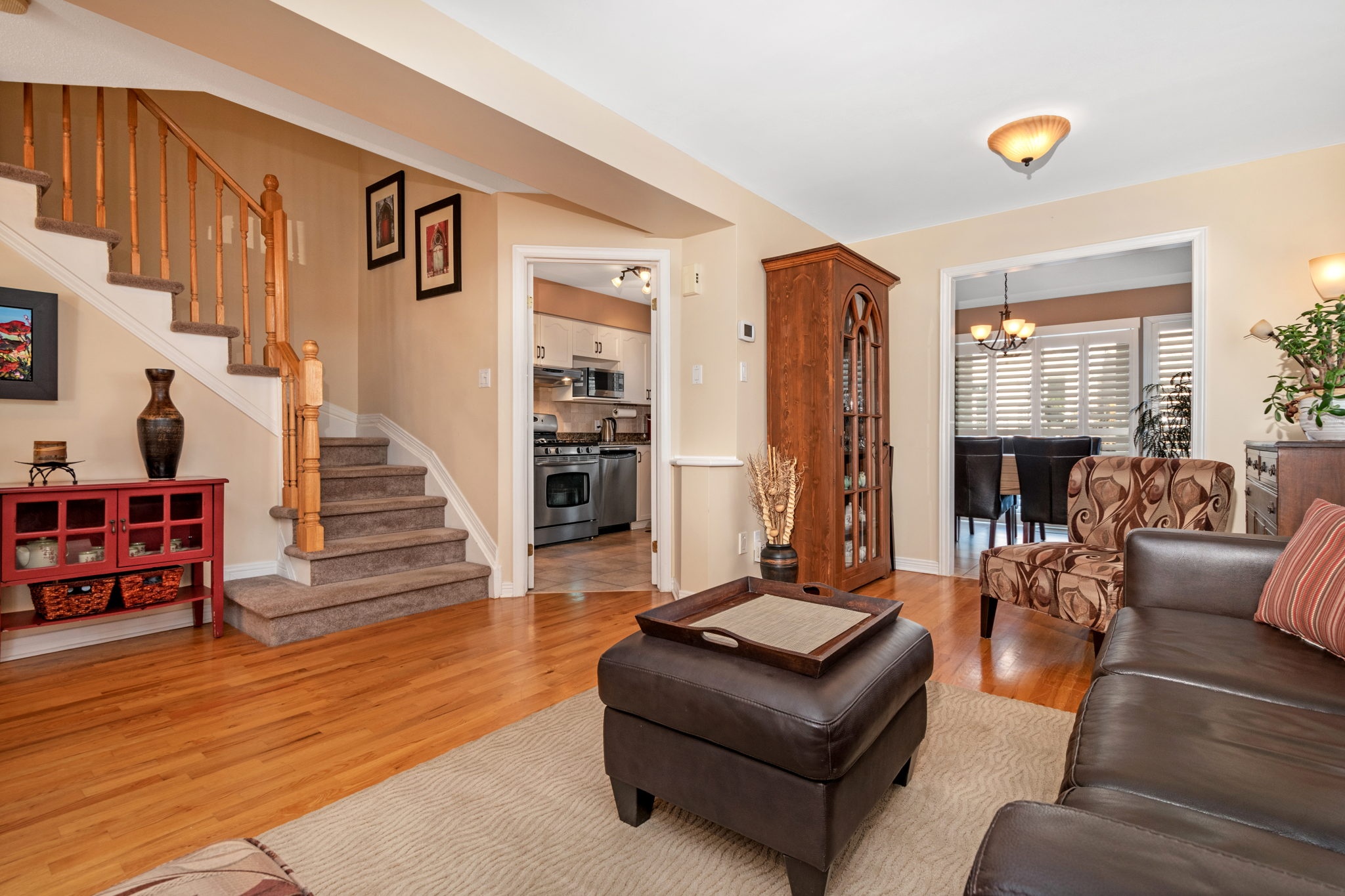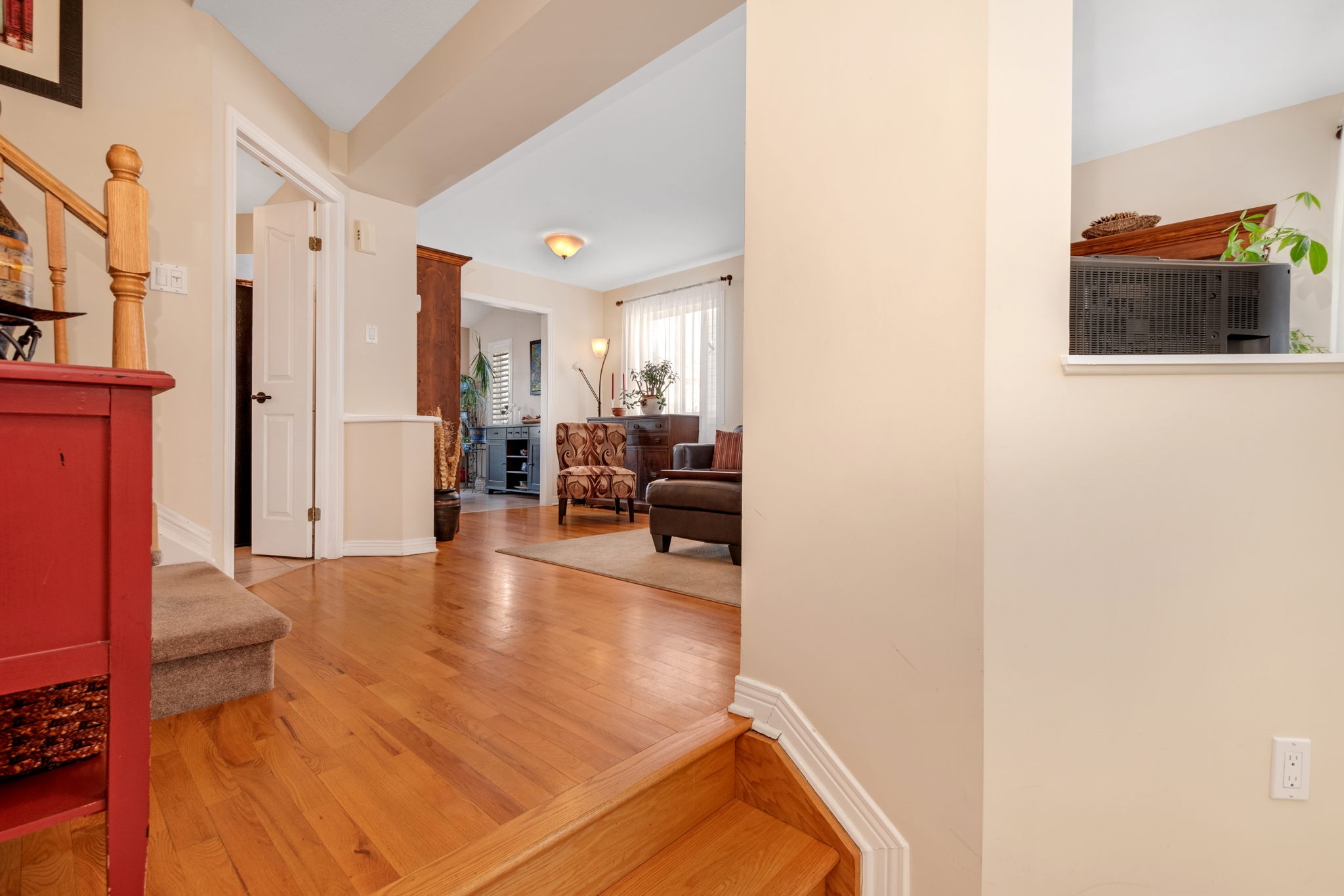 Pride of ownership radiates throughout this well maintained and lovingly cared for end unit townhome in family friendly Emerald Meadows. A welcoming sunken foyer leads to the sun filled living room, ornamented with picture windows and hardwood floors. The timeless and bright white kitchen with complimentary granite counter tops and a neutral backsplash leads to the cheerful dining room that oversees the back yard with lush garden beds and an inviting patio. The 2nd level hosts a spacious primary bedroom with an elegant 3 piece ensuite bathroom complete with glass shower and a walk-in closet, 2 generous sized secondary bedrooms and an updated family bathroom. A welcoming family room with plenty of space for a growing family, laundry area and ample storage completes the lower level. Close to schools, parks, trails and all amenities.