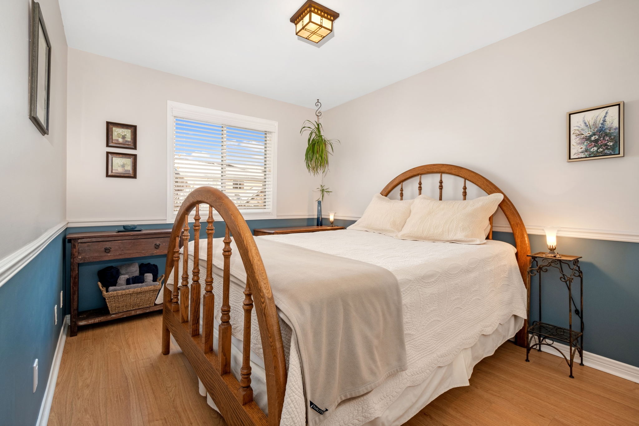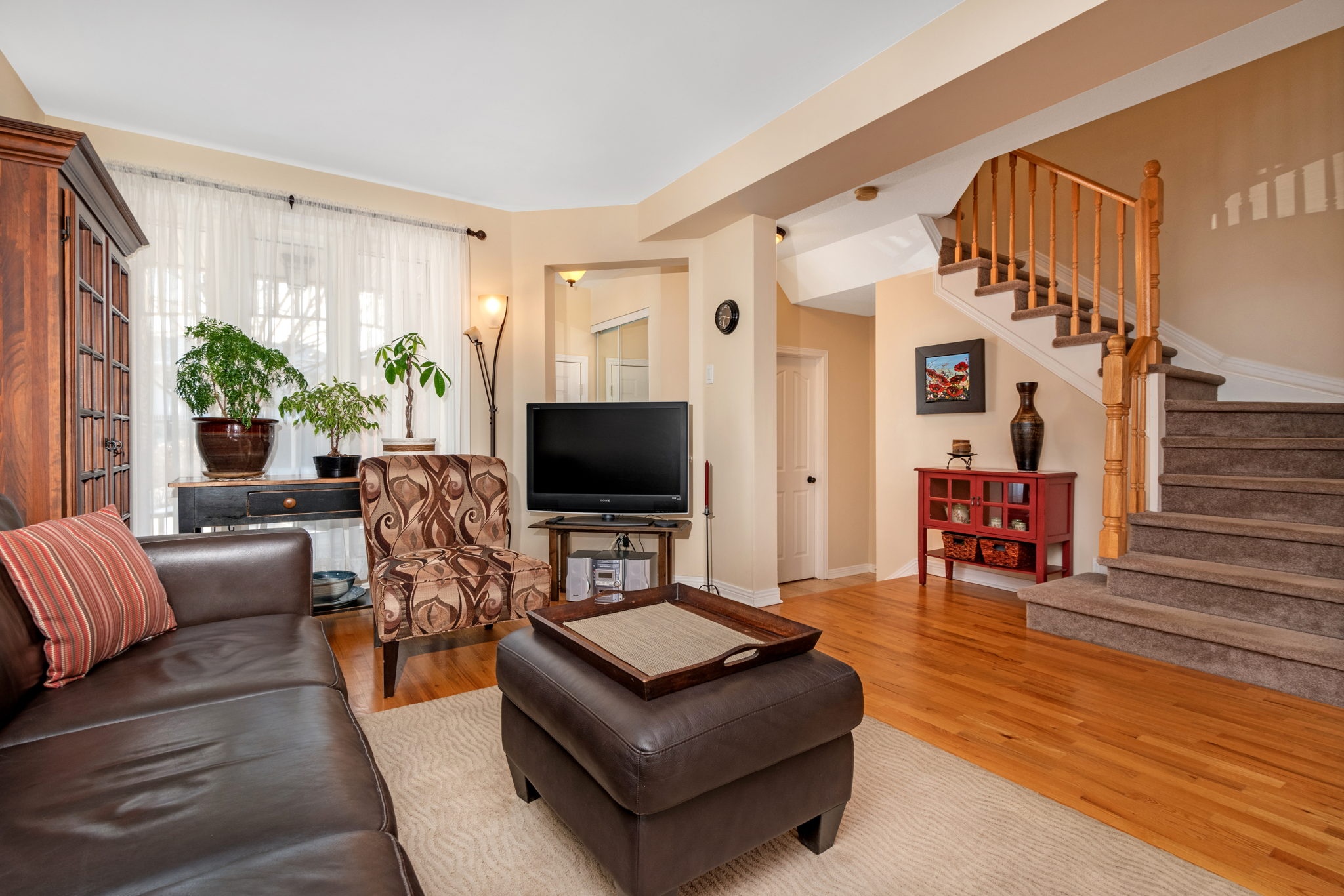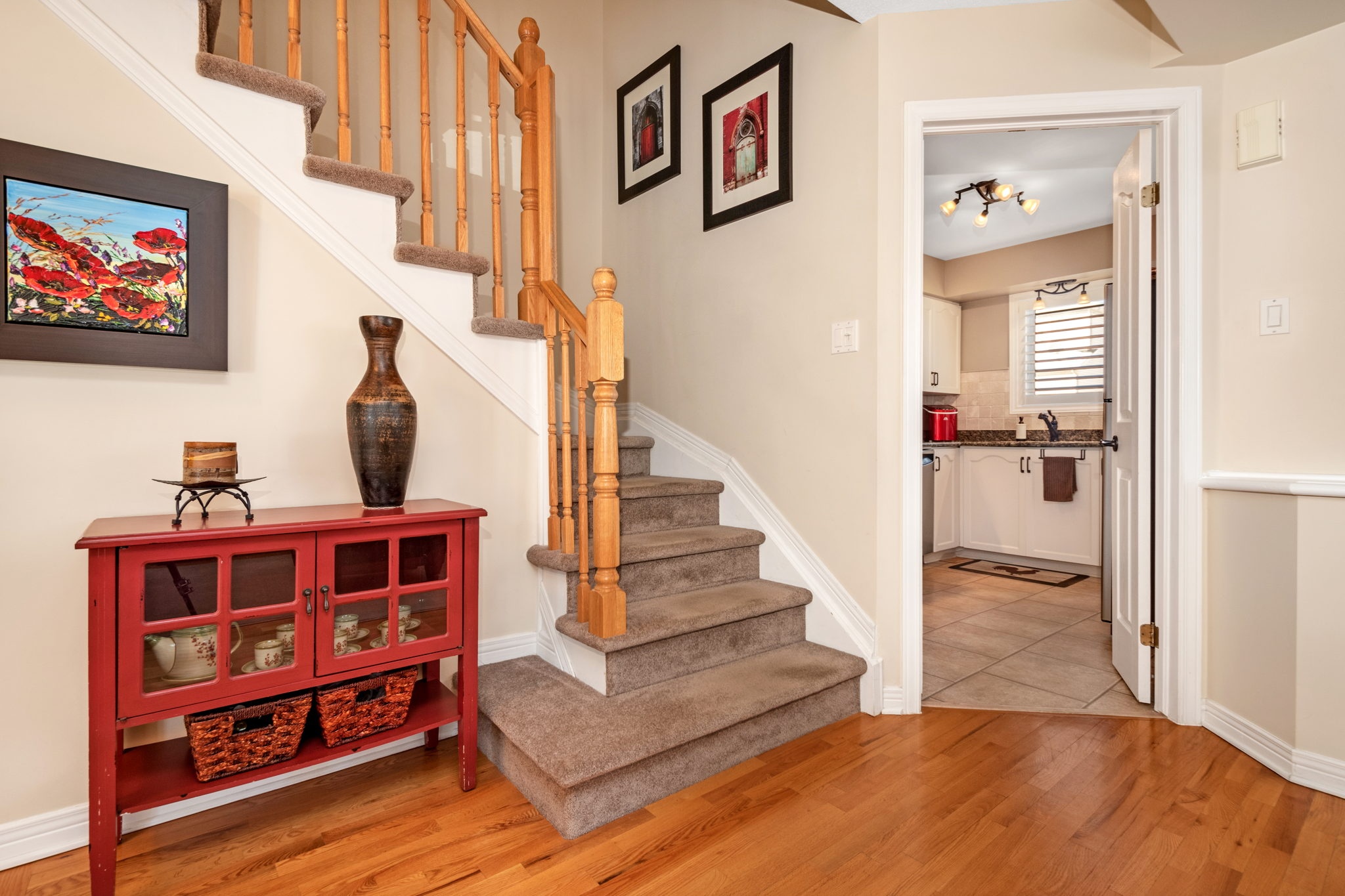 Pride of ownership radiates throughout this well maintained and lovingly cared for end unit townhome in family friendly Emerald Meadows. A welcoming sunken foyer leads to the sun filled living room, ornamented with picture windows and hardwood floors. The timeless and bright white kitchen with complimentary granite counter tops and a neutral backsplash leads to the cheerful dining room that oversees the back yard with lush garden beds and an inviting patio. The 2nd level hosts a spacious primary bedroom with an elegant 3 piece ensuite bathroom complete with glass shower and a walk-in closet, 2 generous sized secondary bedrooms and an updated family bathroom. A welcoming family room with plenty of space for a growing family, laundry area and ample storage completes the lower level. Close to schools, parks, trails and all amenities.